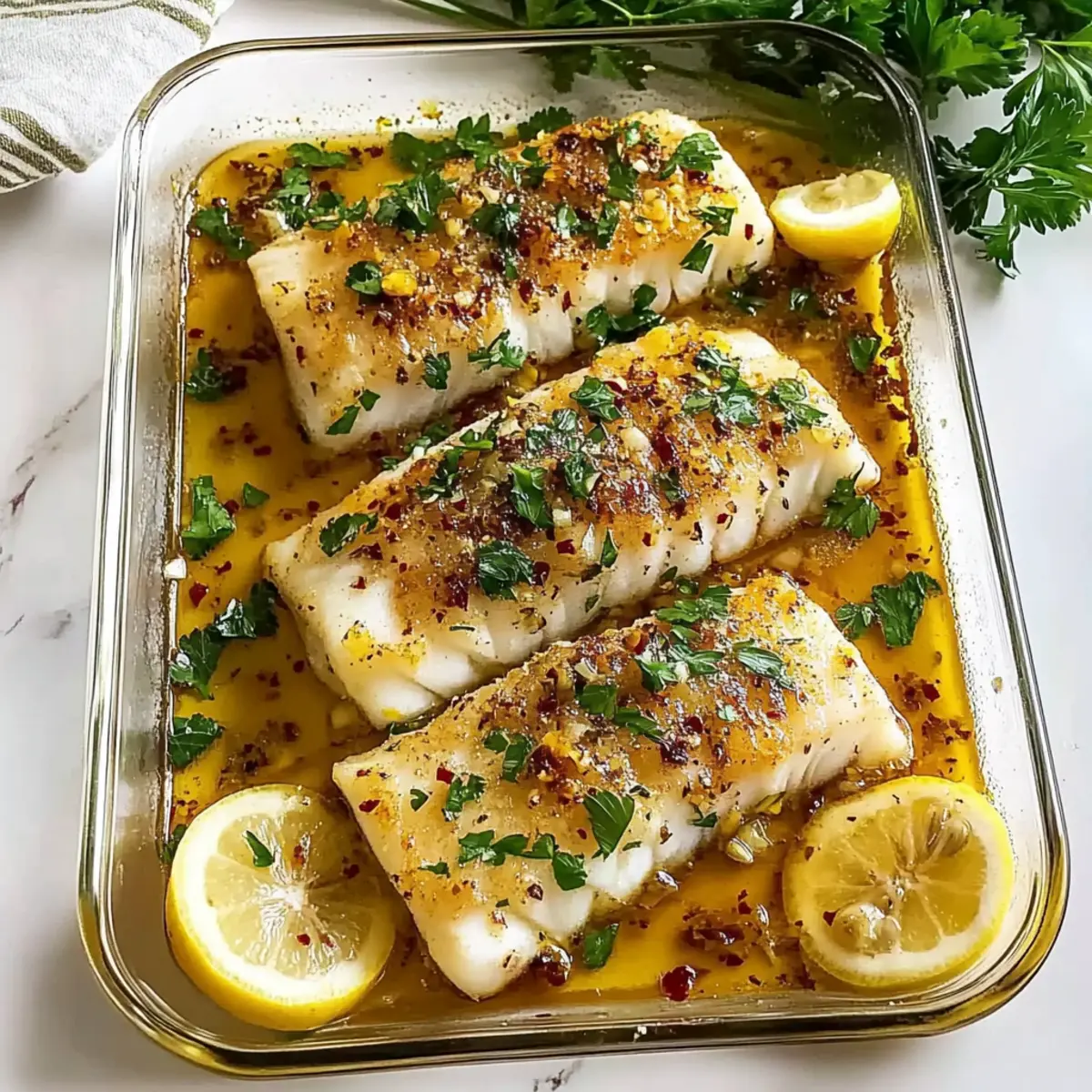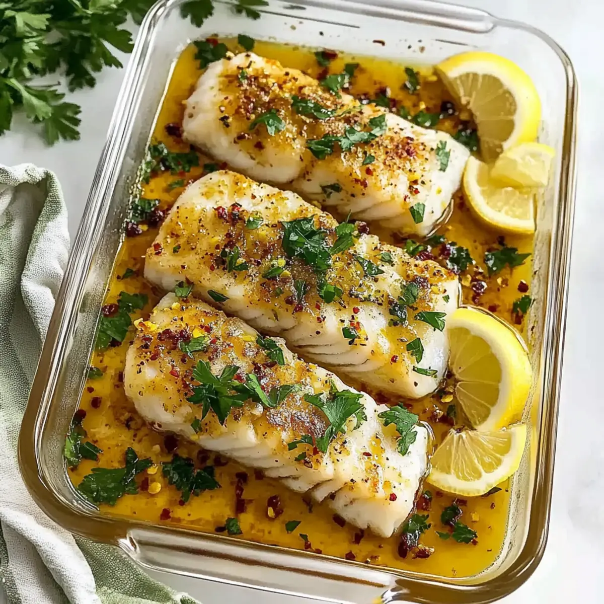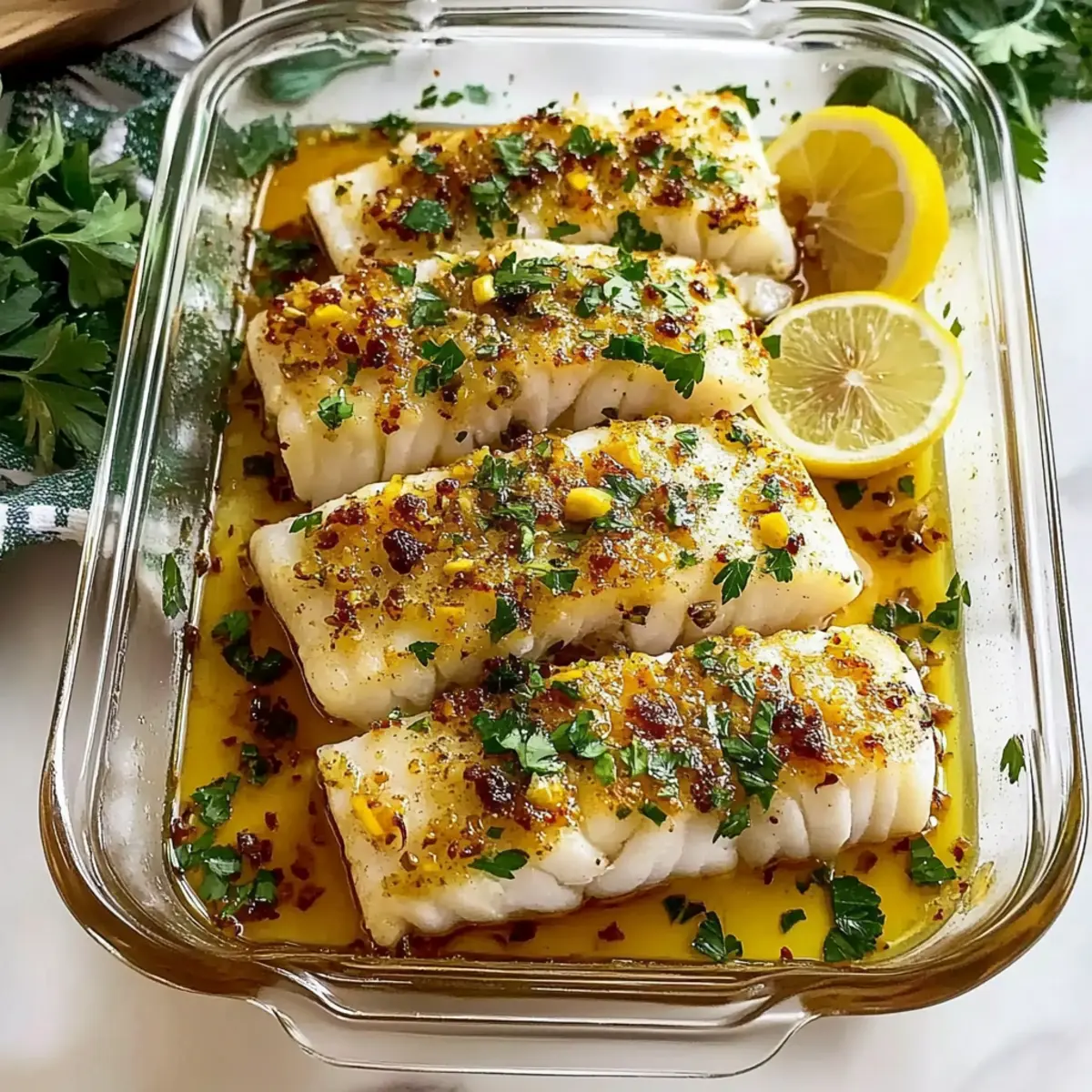 The more the merrier! If cod isn’t available, feel free to substitute with other firm white fish such as halibut or trout. Adjust cooking times slightly based on the thickness of the fish. Just remember that the flavor profiles will complement your lemon-garlic sauce wonderfully!