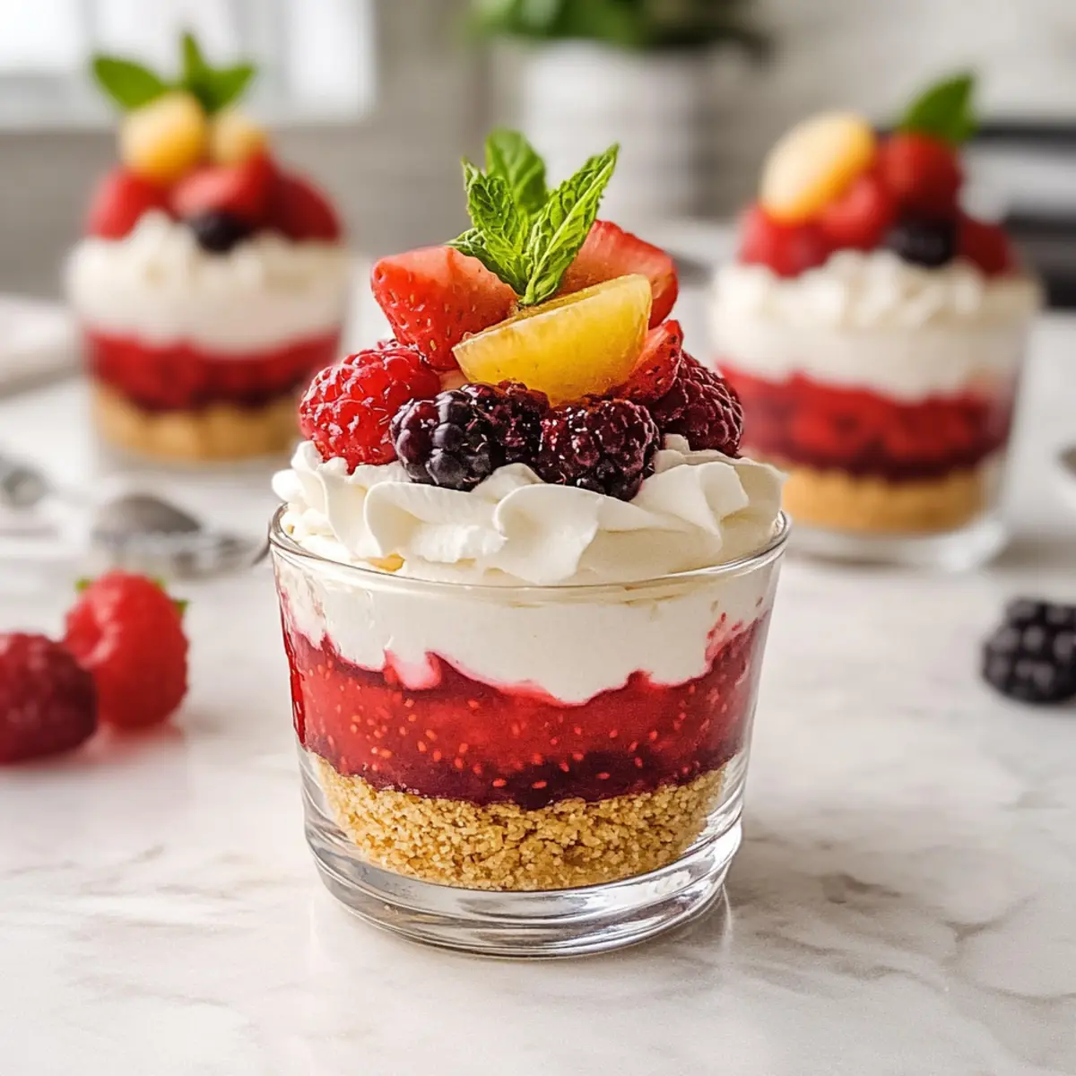 As I stood in my kitchen, the scent of whipped cream and cream cheese wafted through the air, instantly evoking sweet childhood memories of family gatherings and laughter around the dinner table. These gorgeous dessert cups are not just a treat for the taste buds but a playful masterpiece that anyone can create. With their effortless no-bake preparation, they transform simple ingredients into stunning layered delights, making them perfect for any occasion—be it a festive celebration or a cozy night in. Plus, they’re a breeze to make ahead of time and serve as charming single portions that will wow your guests. What flavor combo will you try first: a classic tiramisu or a whimsical banana pudding? Let’s dive into the world of irresistible no-bake dessert cups! Why Are These Dessert Cups So Irresistible? Effortless Elegance: These gorgeous dessert cups are an eye-catching addition to any gathering, effortlessly elevating your dessert game without the fuss of baking. Versatile Flavors: From creamy tiramisu to zesty lemon cheesecake mousse, there’s a flavor for everyone’s taste. You can even mix and match layers for a delightful surprise! Perfect Portioning: Individual servings make these cups ideal for parties, easy to share, and even easier to enjoy without the mess. Make-Ahead Magic: Prep them a day in advance for seamless entertaining—just chill and they’re ready to impress! Try them alongside our Turtle Cheesecake Dessert for a dessert table that wows. Refreshing Textures: Experience the perfect marriage of smooth, creamy layers with a crunchy crust, delivering satisfaction in every spoonful. Gorgeous Dessert Cups Ingredients For the Crust • Graham cracker crumbs – Provides base structure and texture; can substitute with biscuit crumbs or gluten-free alternatives. • Butter – Holds the crust together, providing richness; use coconut oil or vegan butter for a dairy-free option. For the Filling • Cream cheese – Adds a creamy texture and richness; mascarpone can be used for a richer taste. • Heavy cream – Whips to lightness, creating a fluffy texture; coconut cream is a great dairy-free option. • Powdered sugar – Sweetens the filling and stabilizes whipped cream; granulated sugar can be used but may alter texture. • Flavor add-ins (e.g., vanilla extract, cocoa powder) – Enhance flavor profiles; use extracts or spices based on the flavor profile of choice. For the Toppings • Fruits or sauces (e.g., berry compote, chocolate sauce) – Add freshness, flavor, and visual appeal; avoid wet toppings until serving to prevent sogginess. These gorgeous dessert cups are not only a feast for the eyes but a delight for the palate, perfect for your next gathering! Step‑by‑Step Instructions for Gorgeous Dessert Cups Step 1: Prepare the Crust In a mixing bowl, combine graham cracker crumbs and melted butter until the mixture resembles wet sand. Spoon this mixture evenly into the bottom of your dessert cups, pressing down firmly using the back of a spoon or your fingers to create a solid crust. Place the cups in the refrigerator for about 30 minutes to allow the crusts to set. Step 2: Make the Filling In a chilled bowl, whip heavy cream with an electric mixer until soft peaks form, typically around 3-4 minutes on medium speed. In another bowl, blend room-temperature cream cheese with powdered sugar and your chosen flavor add-ins, mixing until smooth. Gently fold the whipped cream into the cream cheese mixture until fully combined, ensuring not to deflate the lightness. Step 3: Layer the Cups Begin the layering process by adding a generous spoonful of the filling over the chilled crust in each cup—aim for even distribution. Follow this with another layer of crust, and then repeat the filling process until the cups are nearly full, leaving some room for a decorative topping. The final layer should be the creamy filling to create a beautiful top. Step 4: Chill the Dessert Cups Cover the assembled cups with plastic wrap or foil, and refrigerate them for at least 2 hours to allow the flavors to meld and the filling to firm up. This chill time is essential for achieving the ideal texture in your gorgeous dessert cups, making them easy to scoop and enjoy later. Step 5: Serve with Toppings Just before serving, remove the dessert cups from the refrigerator and add your desired toppings—this could be fresh fruits, a drizzle of chocolate sauce, or a sprinkle of cookie crumbs. Keep wet toppings minimal until serving to prevent sogginess. These final touches enhance both the flavor and presentation of your stunning dessert cups. Gorgeous Dessert Cups Variations & Substitutions Feel free to let your creativity shine as you customize these delightful dessert cups to suit your taste and occasion! Mini Cannoli: Swap the filling for a sweet ricotta mixture with chocolate chips, and use crushed cannoli shells for the crust. The rich flavors will transport you to a cozy Italian bakery! Tiramisu Twist: Add espresso and a touch of coffee liqueur to the cream filling for a classic tiramisu flavor. A dusting of cocoa powder on top makes this irresistible! Banana Pudding: Layer sliced bananas with vanilla pudding and Nilla wafer crumbs for a comforting treat reminiscent of grandma’s kitchen. It’s pure nostalgia in a cup! Biscoff Cheesecake: Incorporate Biscoff spread into the cream cheese filling and use crumbled Biscoff cookies for the crust. The warm, spiced flavors will dazzle your palate! Lemon Cheesecake Mousse: Blend lemon zest and juice into the filling for a bright, zesty dessert. Top with lemon curd and blueberries for a refreshing finish! Chocolate Delight: Mix in melted dark chocolate into the filling for a luscious chocolate mousse effect, and drizzle with chocolate sauce for a decadent touch. Spicy Variation: For a zesty kick, add a pinch of cayenne pepper to a chocolate or vanilla filling, creating a surprising yet delightful flavor profile! Fruit Fusion: Experiment 