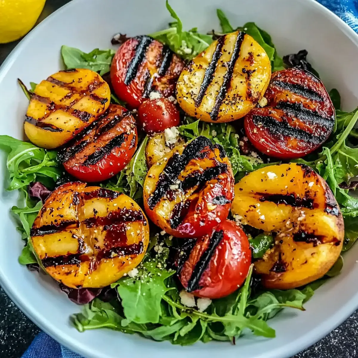 Before serving, generously drizzle your Grilled Peach and Tomato Salad with freshly squeezed lemon juice to add a zesty brightness. Sprinkle sea salt over the top, adjusting to your taste. The combination of flavors will burst with freshness, making this salad irresistible for your summer gatherings.