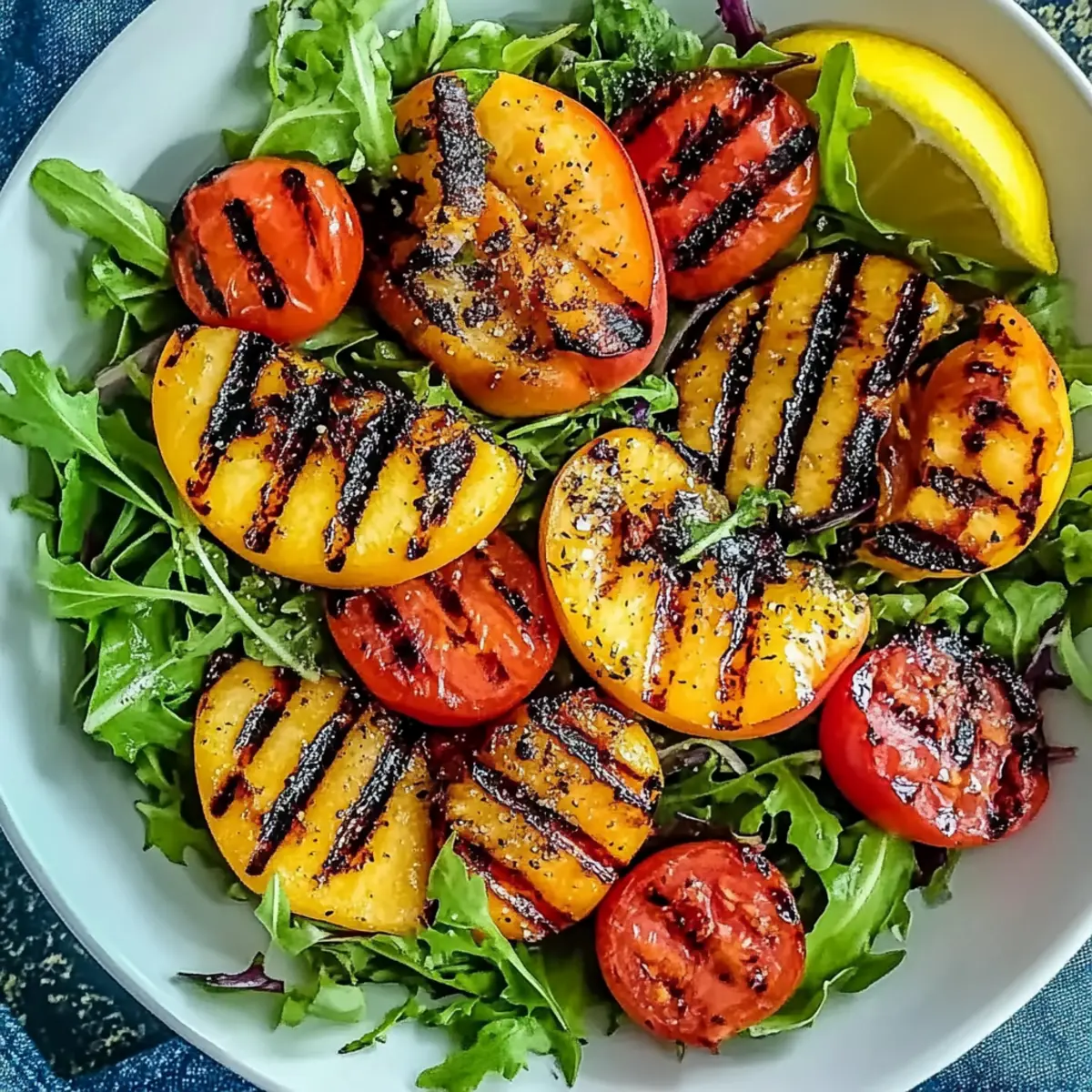 These Grilled Peach and Tomato Salad components are perfect for meal prep enthusiasts! You can slice the tomatoes (up to 3 days ahead) and store them in an airtight container in the refrigerator to preserve their juiciness. The grilled peaches can be prepared and stored separately (up to 24 hours) to maintain their texture; simply grill and let them cool before placing them in a sealed container. When you’re ready to serve, layer the mixed greens, grilled peaches, and sliced tomatoes together, drizzle with lemon juice, and sprinkle with sea salt. This way, you can achieve restaurant-quality results with minimal effort and enjoy a refreshing salad ready in no time!