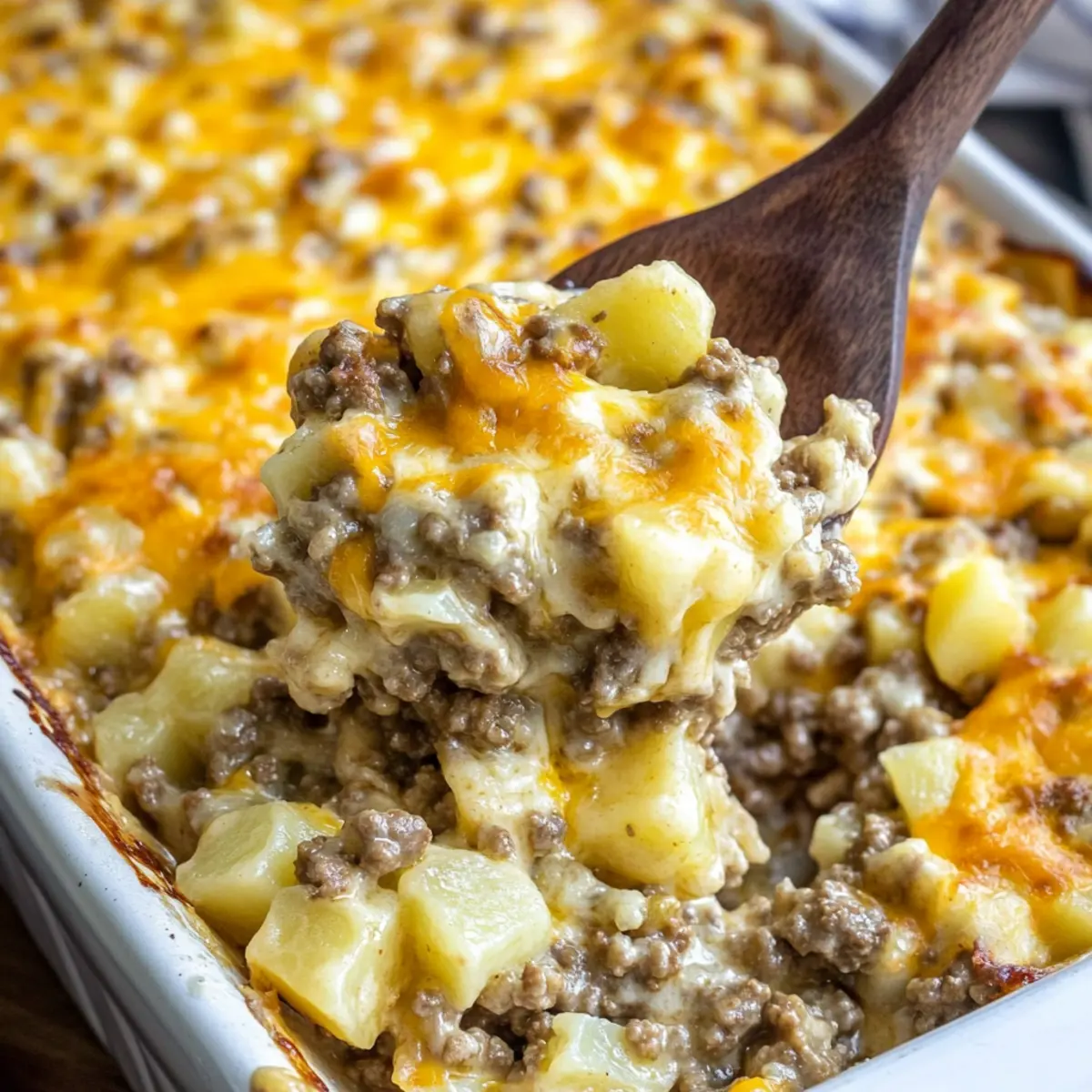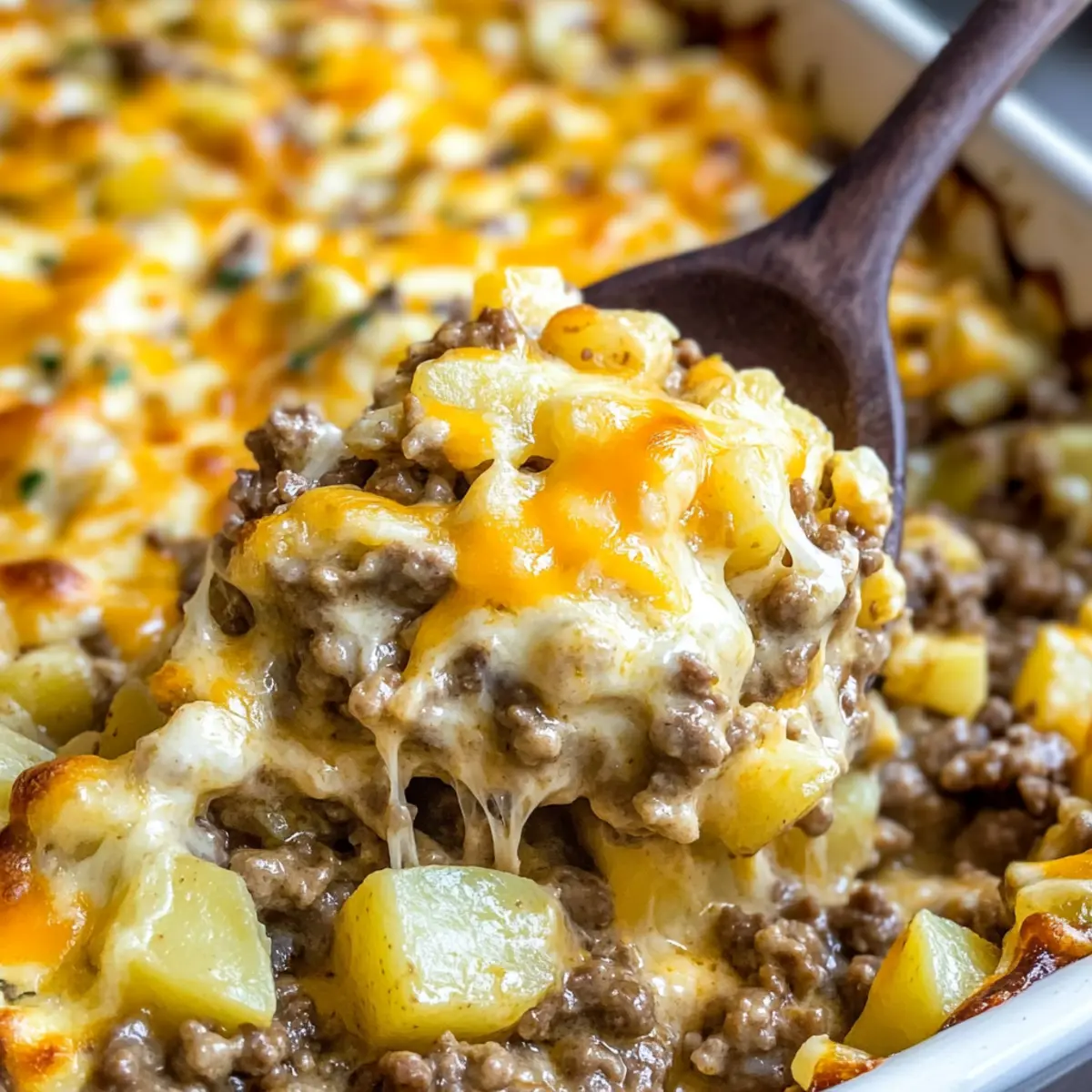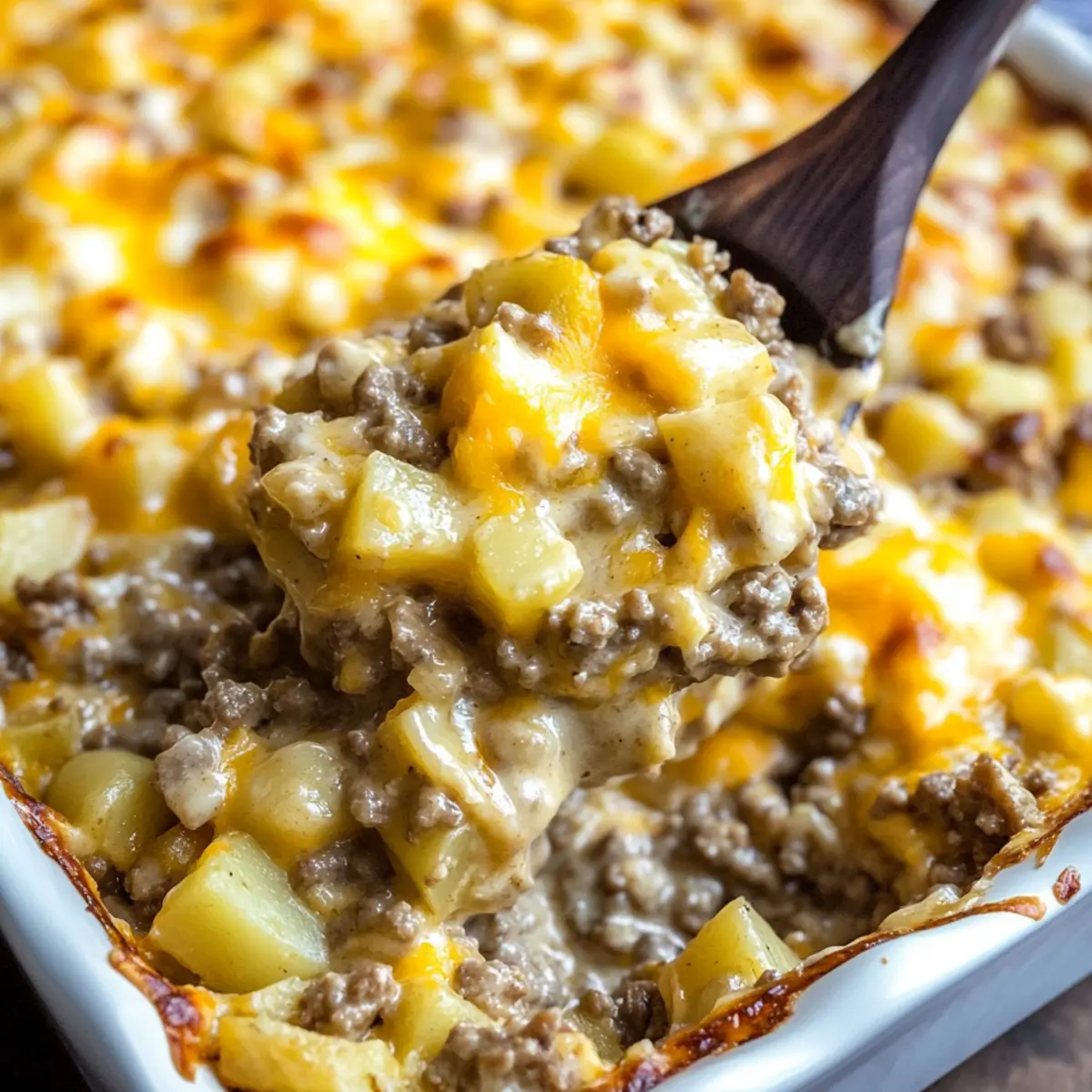 The kitchen filled with the inviting aroma of savory ground beef sizzling in the pan, and I couldn’t help but smile. It’s time for a comforting favorite: my Creamy Ground Beef Casserole with Cheddar and Potatoes. This dish captures the essence of home-cooked goodness, making it perfect for busy weeknights when you need a hearty meal without the fuss. Easy to whip up and even easier to enjoy, this casserole is a family-friendly delight that marries tender meat, rich creamy soups, and gooey cheddar cheese—all topped with crispy potatoes. Plus, it’s a dish that invites customization, letting you sneak in extra veggies if you feel adventurous. Are you ready to bring this cozy comfort food to your dinner table? Let’s dive right in! Why is Ground Beef Casserole a Family Favorite? Comfort food at its finest: This Ground Beef Casserole is the ultimate dish to wrap your family in warmth and flavor, making it perfect for chilly nights. Quick preparation: With just a few simple steps, you can have this hearty meal on the table in no time, easing the stress of busy weeknights. Cheesy goodness: The ooey-gooey cheddar melts beautifully, creating a luscious topping that everyone will love. Versatile options: Feel free to customize by adding veggies like corn or broccoli, or even swapping beef for ground turkey for a lighter dish! Crowd-pleasing appeal: This casserole’s rich flavor and creamy texture make it a hit at potlucks and family gatherings. For more ground beef inspiration, check out our Savory Ground Beef and Korean Ground Beef Bowl recipes! Ground Beef Casserole Ingredients • Here’s everything you’ll need for a mouthwatering Ground Beef Casserole! For the Casserole Lean Ground Beef (1 lb) – Adds protein and heartiness to the dish. Use 93% lean for reduced fat content. Condensed Cream of Celery Soup (1-10.5 oz can) – Provides creaminess and flavor base. Substitute with mushroom or chicken soup if desired. Cream of Cheddar Cheese Soup (1-10.5 oz can) – Enhances the cheesy flavor profile. Can be replaced with a homemade cheese sauce for a fresher taste. Frozen Cubed Potatoes with Onion and Bell Peppers (1-28 oz bag) – Offers convenience and texture; no need to pre-cook. Fresh diced potatoes can be used but will require additional cooking time. Salt and Pepper to Taste – Essential for flavor enhancement. Shredded Cheddar Cheese (2 cups divided) – Adds melty goodness on top. Use any cheese blend or a sharp cheddar for a more intense flavor. Step‑by‑Step Instructions for Ground Beef Casserole Step 1: Preheat the Oven Begin by preheating your oven to 350°F (175°C). This ensures the perfect cooking temperature for your Ground Beef Casserole. While the oven heats up, gather your ingredients and prepare your workspace to streamline the next steps. Step 2: Brown the Ground Beef In a large skillet, brown 1 pound of lean ground beef over medium heat, stirring occasionally. Cook it for about 8-10 minutes until it’s no longer pink, and drain any excess fat from the pan. This process enhances the flavors and creates a hearty base for your delicious casserole. Step 3: Mix the Ingredients In a large mixing bowl, combine the cooked ground beef, an entire 28 oz bag of frozen cubed potatoes, 1 can of condensed cream of celery soup, and 1 can of cream of cheddar cheese soup. Add 1 cup of shredded cheddar cheese, salt, and pepper to taste. Stir everything together until well combined, ensuring the creamy goodness coats all the ingredients. Step 4: Transfer to Casserole Dish Next, transfer the mixed ingredients into a greased 9×13-inch casserole dish. Spread the mixture evenly using a spatula for uniform cooking. This ensures that every bite of your Ground Beef Casserole is loaded with the delicious flavors you’ve created. Step 5: Add Cheddar Cheese Topping Sprinkle the remaining 1 cup of shredded cheddar cheese evenly over the top of the casserole. This cheesy layer will melt beautifully as the casserole bakes, creating that irresistible gooey topping everyone loves. Step 6: Bake the Casserole Cover the casserole dish with aluminum foil and bake it in your preheated oven for 30 minutes. This helps to steam the potatoes and blend the flavors together nicely. After 30 minutes, carefully remove the foil and bake for an additional 15 minutes, until the cheese is melted and bubbling with a golden brown hue. Step 7: Cool and Serve Once baked, remove the Ground Beef Casserole from the oven and let it cool for about 5 minutes. This resting period allows the flavors to settle and makes it easier to serve. Dish it up and enjoy a cozy family dinner, filled with warmth and satisfaction! Expert Tips for Ground Beef Casserole Room Temperature Beef: Ensure your cooked ground beef is at room temperature before mixing to prevent uneven cooking and texture. Easy Cleanup: Line your casserole dish with parchment paper for hassle-free cleanup; it makes removing the casserole effortless! Store Leftovers Right: Keep leftovers in an airtight container for up to 4 days in the fridge. You can freeze portions for up to 4 months! Potato Options: If using fresh potatoes, remember they’ll need extra cooking time. Opt for frozen for a quicker and easier meal. Cheese Variety: Mix up the cheese! Try using sharp cheddar or a cheese blend for a unique flavor twist on your Ground Beef Casserole. Ground Beef Casserole Variations Feel free to get creative with your Ground Beef Casserole and make it truly your own! Turkey Swap: Replace ground beef with ground turkey or chicken for a lighter, leaner option. The flavors will still shine through beautifully. Extra Veggies: Add in a cup of frozen peas, sweet corn, or chopped broccoli for a nutritious flair. Your family won’t even notice they’re eating more veggies! Cheesy Experiment: Swap cheddar cheese with pepper jack or gouda for a flavor boost that’ll have everyone guessing what’s different. The intrigue in taste will be simply delightful! Spicy Kick: Fo