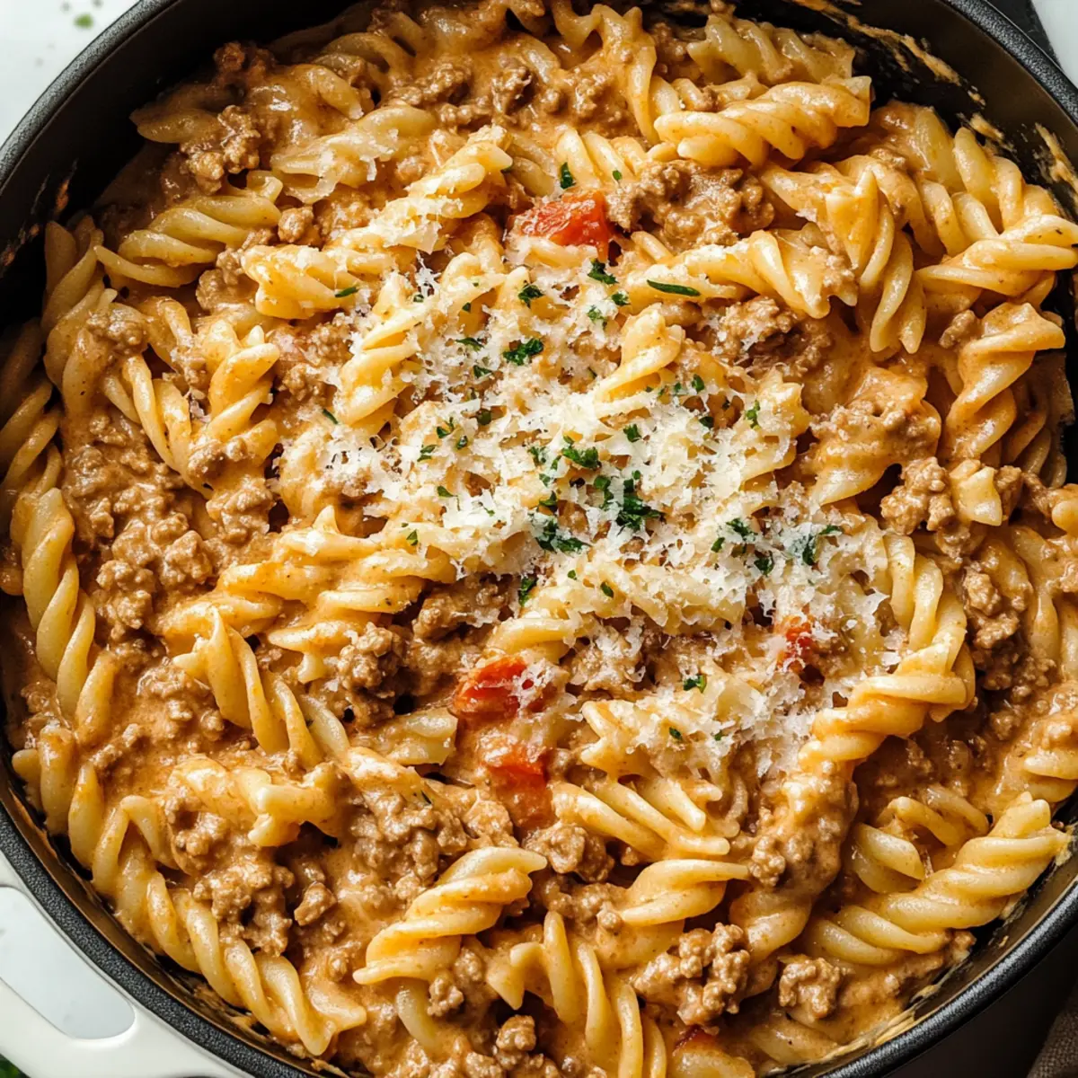 The aroma wafting through my kitchen was irresistible—a fragrant dance of garlic, beef, and spices that quickly transformed my evening. As I stirred the pot, I knew tonight’s dinner would hit the sweet spot: a dreamy, Easy Stovetop Creamy Ground Beef Pasta. This comforting dish relies on simple, hearty ingredients to create a satisfying meal that can be whipped up in no time—a true lifesaver for those busy weeknights when fast food just won’t cut it. With creamy sauce mingling with al dente pasta, it’s a bowl of joy that’s both family-friendly and completely customizable. As you dive into this recipe, get ready to elevate your weeknight dinners from mundane to memorable. What will you add to make it uniquely yours? Why is this Ground Beef Pasta a must-try? Comforting and filling: This creamy pasta dish offers the beloved comfort of home-cooked meals that everyone craves after a long day. Quick preparation: In less than 30 minutes, you can have a delicious dinner on the table, making it perfect for busy weeknights. Customizable: Feel free to switch up the ingredients—add extra veggies, swap proteins, or try different types of pasta to suit your family’s preferences! Crowd-pleaser: With its rich flavors and creamy texture, this dish is sure to be a hit with both children and adults alike, leaving everyone satisfied. Affordable: Utilizing common pantry staples means you can whip this up without breaking the bank, beating out fast food every time! Don’t miss out on other comforting options like Savory Ground Beef or try something fun like Ground Beef Taquitos for variety! Ground Beef Pasta Ingredients For the Sauce • Ground Beef – Provides a hearty protein base that adds richness to the dish. Substitute with ground turkey for a lighter option or spicy Italian sausage for a kick. • Heavy/Whipping Cream – Gives the sauce its luxurious creaminess; can be replaced with milk or blended cottage cheese in a pinch. • Canned Diced Tomatoes – Adds moisture and a tangy flavor; consider choosing tomatoes with added herbs for extra depth. • Tomato Paste – Concentrates and enhances the tomato flavor in the sauce; if unavailable, you might reduce the total tomato quantity instead. • Dijon Mustard – Introduces a subtle tanginess to the sauce; yellow mustard serves as a suitable substitute if needed. • Italian Seasoning – Essential for authentic flavor; if you don’t have it, mix together basil, oregano, and thyme for a similar effect. • Salt and Black Pepper – Enhances the overall taste of the dish; always adjust according to your preference. For the Pasta • Uncooked Pasta – The main element that absorbs the delicious sauce; elbow macaroni or pasta shells works best for this creamy ground beef pasta. For Sautéing • Olive Oil – Used to sauté the onion and beef, enriching the dish’s flavor; avocado oil or butter can be great alternatives. • Sweet Yellow Onion – Adds a naturally sweet depth to the sauce; shallots can be a lovely substitute if you have them on hand. • Minced Garlic – A necessary staple for flavor; fresh garlic may be substituted with garlic powder (1/4 teaspoon for every clove). To Finish • Freshly Grated Parmesan Cheese – An optional garnish that elevates the richness; feel free to swap with pecorino or nutritional yeast for a non-dairy option. Dive into this delicious family-friendly ground beef pasta recipe that’s bound to spice up your weeknight meals! Step‑by‑Step Instructions for Easy Stovetop Creamy Ground Beef Pasta Step 1: Cook the Pasta Begin by bringing a large pot of salted water to a rolling boil over high heat. Add uncooked pasta, such as elbow macaroni or pasta shells, and cook according to package instructions until al dente, usually about 8-10 minutes. Stir occasionally to prevent sticking, and once cooked, drain the pasta in a colander and set aside while you prepare the sauce. Step 2: Sauté the Onion In a large skillet, heat 2 tablespoons of olive oil over medium-high heat. Once the oil is shimmering, add the chopped sweet yellow onion and sauté for 4-5 minutes, stirring frequently, until the onion is soft and translucent. This step builds a wonderful flavor base for your ground beef pasta, making sure the onions are fragrant before moving on. Step 3: Brown the Beef Add the ground beef to the skillet with the sautéed onions, breaking it apart with a spatula. Cook for about 8 minutes, stirring occasionally, until the meat is browned all over and no longer pink. If there’s excess fat, carefully drain it from the skillet, ensuring your creamy sauce remains rich without being greasy. Step 4: Add Flavors Stir in the minced garlic, cooking for an additional minute until fragrant, then add the canned diced tomatoes, tomato paste, Dijon mustard, and Italian seasoning to the skillet. Allow everything to simmer on medium heat for 4-5 minutes, stirring occasionally until the mixture is heated through and well combined, creating a robust sauce for your ground beef pasta. Step 5: Incorporate the Cream Reduce the heat to low and pour in the heavy cream, stirring gently to combine with the sauce. Let the mixture simmer for another 3-5 minutes, allowing it to thicken slightly. The creamy richness will create a luxurious texture that perfectly envelops each bite of your ground beef pasta. Step 6: Final Seasoning and Combine Season the creamy sauce with salt and black pepper to taste, adjusting as needed. Gently fold the drained pasta into the sauce, ensuring every piece is well-coated. The harmony of flavors will come together beautifully, making your easy stovetop creamy ground beef pasta a delightful meal ready to serve. Step 7: Serve and Garnish Scoop generous portions of creamy ground beef pasta onto plates, and for an extra touch, sprinkle freshly grated Parmesan cheese on top if desired. The richness from the cheese will enhance the dish even more. Enjoy this comforting dinner alongside a fresh salad or so