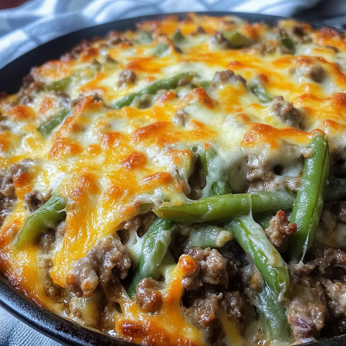 A comforting Hamburger Green Bean Casserole that combines savory beef, green beans, and creamy sauce into a hearty family meal.