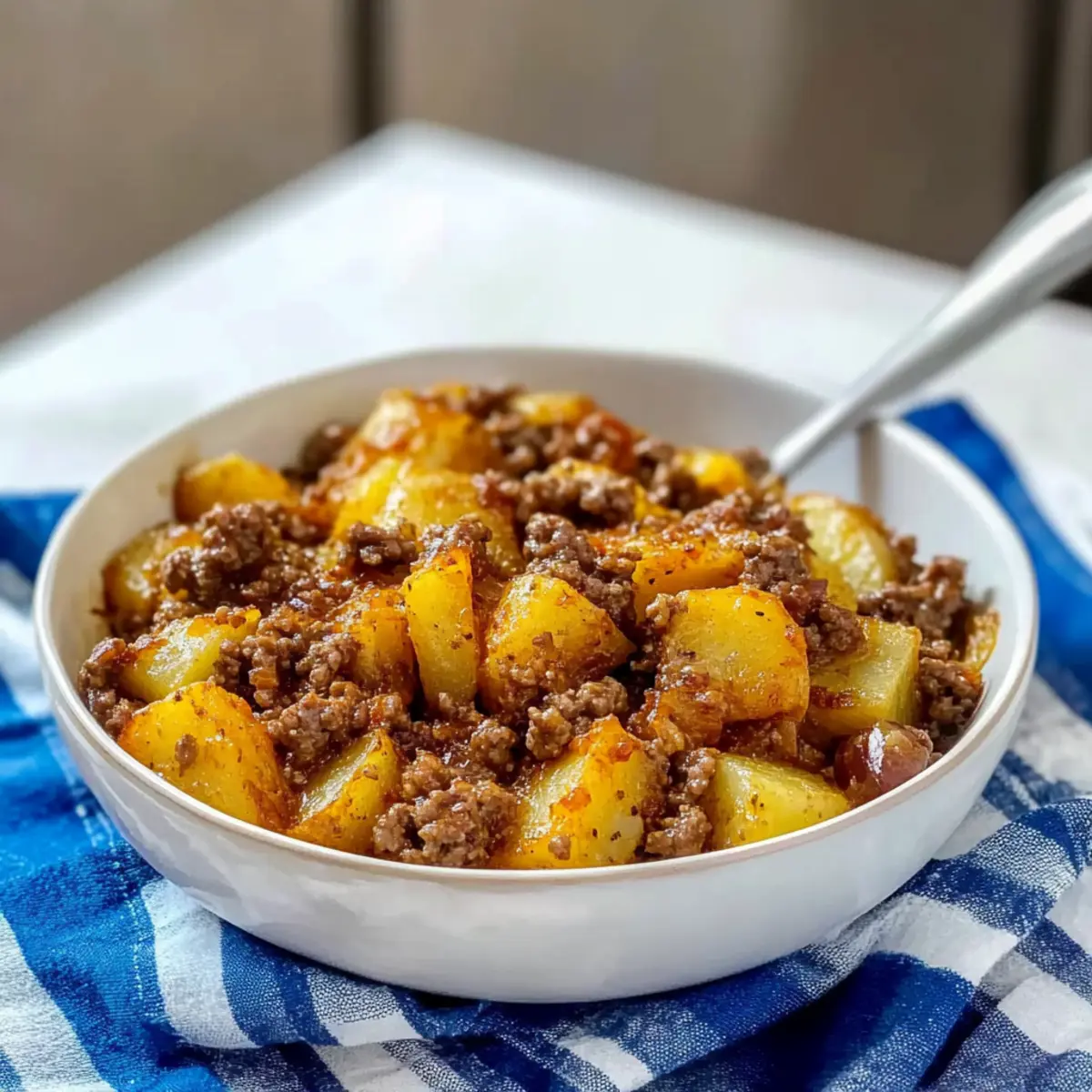 As I stood in my kitchen, the sound of sizzling meat filled the air, instantly whisking me away to family dinners of my childhood. My Homemade Hamburger Hash captures that warm, nostalgic feeling, marrying crispy golden potatoes with savory ground beef and sweet caramelized onions. Best of all, this easy, budget-friendly dish is ready in under 30 minutes and cooked in just one pan, making cleanup a breeze. It’s not just a meal; it’s a comforting hug in food form, perfect for those busy weeknights when time seems to slip away. Ready to elevate your dinner game? Let’s dive into this simple yet delicious recipe that’s sure to become a new family favorite! Why is Hamburger Hash a Must-Try? Simplicity at its finest: Just one skillet and a quick prep make this dish a go-to for any home cook. Flavor-packed goodness: Savory beef combined with caramelized onions creates a delightful taste that will have your family coming back for seconds. Versatile meal: Feel free to customize your Hamburger Hash with extras like bell peppers or spicy jalapeños to suit your palate. Budget-friendly option: Using common pantry ingredients, this recipe is perfect for those looking to whip up a satisfying dinner without breaking the bank. Quick cooking time: Enjoy a hearty meal in under 30 minutes, giving you more time to relax or spend with loved ones. Discover more easy dishes, like Cheesy Hamburger Rice, that won’t keep you in the kitchen all night! Hamburger Hash Ingredients For the Skillet Meal • Ground Beef – Use 80/20 for the best savory flavor and moisture in your Hamburger Hash. • Potatoes (Russet or Yukon Gold) – These become crispy on the edges and tender inside, forming the hearty base of the dish. • Onion – Yellow onions are recommended for their sweetness that adds depth to the dish. • Garlic – Fresh garlic enhances the savory depth; don’t skimp on this aromatic! • Butter – Essential for richness in the skillet, adding that comforting touch to your meal. • Olive Oil – Helps prevent burning and aids in getting that perfect golden texture. • Beef Broth – Provides moisture and amplifies the savory notes of the Hamburger Hash. • Paprika – Adds warmth and a subtle smokiness to the flavor profile. • Salt & Black Pepper – Essential for seasoning; adjust generously for a well-rounded flavor. Optional Ingredients • Fresh Parsley – Use as a bright garnish to elevate the presentation before serving. • Chili Powder – For those who enjoy a bit of heat, add to taste for a spicy kick! • Ketchup – A touch of sweetness that can be drizzled on top for added flavor. Step‑by‑Step Instructions for Hamburger Hash Step 1: Heat the Skillet In a large skillet, heat over medium heat. Combine 2 tablespoons of olive oil and 1 tablespoon of butter until melted and sizzling. The butter should foam slightly but not brown; this ensures the perfect base for your Hamburger Hash. Watch for the enticing aroma of the oil, signaling it’s ready for the next step. Step 2: Brown the Ground Beef Add 1 pound of ground beef to the hot skillet. Use a spatula to break it into crumbles while cooking for about 5–7 minutes or until it’s well browned and no longer pink. Stir occasionally to evenly brown the meat. Once cooked, transfer the beef to a plate and set it aside, leaving any drippings in the pan for extra flavor. Step 3: Sauté Onions and Garlic In the same skillet, add one chopped yellow onion, stirring to coat in the remaining drippings. Sauté for about 4–5 minutes until the onions are soft and golden. Add 2 minced garlic cloves, stirring for an additional 30 seconds until fragrant. This beautiful mixture lays a flavorful foundation for your Hamburger Hash. Step 4: Add Potatoes Next, toss in 2 cups of diced potatoes into the skillet. Season with salt, black pepper, and 1 teaspoon of paprika for a warming touch. Mix everything well, ensuring the potatoes are coated in the flavorful mixture, which should look vibrant and appealing in your skillet. Step 5: Cover and Cook Pour in 1 cup of beef broth, bringing it to a gentle simmer. Cover the skillet with a lid and let it cook for about 10–12 minutes, checking occasionally. The potatoes should be fork-tender but not mushy, offering a comforting base for the Hamburger Hash as they soak up all the delicious flavors. Step 6: Return Beef After the potatoes are tender, return the browned ground beef to the skillet, gently stirring to combine all ingredients. Allow it to heat through for about 2–3 minutes. The savory aroma of your Hamburger Hash will begin to fill the kitchen, signaling that a satisfying meal is just around the corner. Step 7: Crisp the Hash Uncover the skillet and set the heat to medium-high. Cook for another 5–7 minutes, stirring occasionally to help everything brown nicely. The key is to achieve a beautiful golden color on the potatoes and edges of the hash while allowing those rich flavors to meld together. Step 8: Finish and Serve Taste your Hamburger Hash and adjust the seasoning if needed. Once you’re satisfied with the flavor, sprinkle fresh parsley on top for a bright touch. Serve hot, either on its own or with optional ketchup for added sweetness, inviting everyone to enjoy this comforting dish right from the skillet! What to Serve with Homemade Hamburger Hash To create a delightful, well-rounded meal that complements the comforting flavors of Hamburger Hash, consider the following pairing options. Fresh Green Salad: A crisp salad with a light vinaigrette adds a refreshing contrast to the hearty hash, balancing richness and brightness on the plate. Coleslaw: Creamy or vinegar-based coleslaw offers a crunchy texture and tangy flavor that elevates your meal, making each bite more interesting and enjoyable. Dinner Rolls: Soft, buttery dinner rolls are perfect for soaking up the savory juices of your Hamburger Hash. They invite a warm, cozy feeling to your dining experience. Roasted Veggies: Opt fo