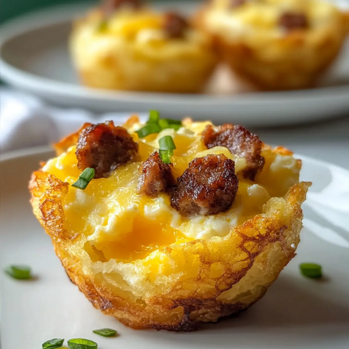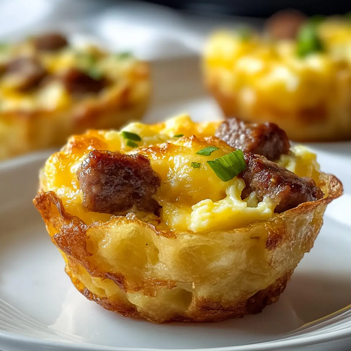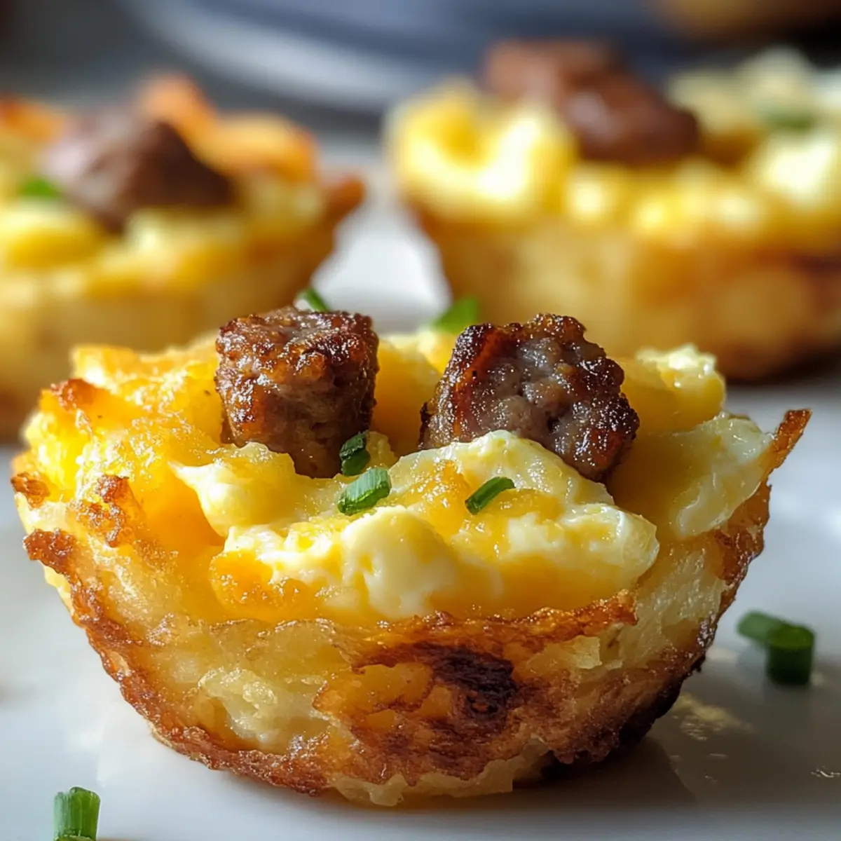 Mornings can often feel like a race against the clock, but with these Hashbrown Breakfast Cups With Eggs And Sausage, you can savor a homemade meal without the stress. Picture a golden, crispy hashbrown crust cradling fluffy scrambled eggs and savory beef sausage—all baked to perfection in handy cups. Not only are they incredibly easy to whip up, but they also make for a perfect, grab-and-go breakfast option for your busy days. Whether you’re meal prepping for the week or hosting a cozy brunch, these little delights promise to impress both family and friends. Curious about how to customize them to your taste? Let’s dive into the recipe! Why Are Hashbrown Breakfast Cups Great? Convenience: These cups are perfect for busy mornings; simply bake them ahead for a quick breakfast on the go. Flavorful Combination: Enjoy the delicious contrast of crispy hashbrowns, fluffy eggs, and savory beef sausage with every bite. Endless Customization: Feel free to experiment with different fillings; swap the sausage for turkey, add your favorite veggies, or try unique cheeses for added flair. Meal Prep Marvel: Make a big batch and store them in the fridge for easy reheating throughout your week. You’ll never miss the fast food again! Crowd-Pleaser: These bite-sized breakfast cups are a hit at any gathering, making them the ideal dish for brunch parties. They truly elevate the breakfast experience! Hashbrown Breakfast Cups Ingredients For the Hashbrown Base • Hashbrowns – Use thawed hashbrowns for a crispy texture, ensuring to squeeze out excess moisture. For the Filling • Eggs – Scramble or whisk eggs to create a fluffy filling that binds the ingredients together. • Beef Sausage – Adds a savory richness; you can substitute with turkey or plant-based sausage for a lighter option. • Cheese (optional) – Choose your favorite cheese, like cheddar or mozzarella, to enhance flavor and creaminess. • Vegetables (optional) – Customize with diced bell peppers, spinach, or onions for added nutrition and flavor. Feel free to mix and match these ingredients to create your ideal Hashbrown Breakfast Cups with Eggs and Sausage! Step‑by‑Step Instructions for Hashbrown Breakfast Cups With Eggs And Sausage Step 1: Preheat the Oven Begin by preheating your oven to 400°F (200°C). This ensures that it reaches the optimal temperature for baking these delicious Hashbrown Breakfast Cups with Eggs and Sausage. Grab your oven mitts and a reliable oven thermometer, if available, to check the heat levels for perfect results. Step 2: Prepare the Hashbrowns Take your thawed hashbrowns and squeeze out any excess moisture to avoid sogginess. In a large mixing bowl, lightly season them and then evenly layer the hashbrowns into a greased muffin tin, pressing them down to form sturdy cups. Bake in the preheated oven for about 20 minutes, or until they’re golden brown and crispy. Step 3: Cook the Sausage While the hashbrowns are baking, cook the beef sausage in a skillet over medium heat, breaking it into small pieces as it browns. Cook until it’s fully cooked through and no longer pink, about 5-7 minutes. Set it aside to cool slightly while you whisk the eggs. Step 4: Whisk the Eggs In a mixing bowl, crack and whisk together your eggs until they are well mixed and slightly frothy. Season with salt and pepper to taste, ensuring that the flavors will shine in your Hashbrown Breakfast Cups. This mixture is what will bind everything together once combined with the sausage. Step 5: Assemble the Cups Once the hashbrowns are crispy, remove the muffin tin from the oven. Carefully spoon the cooked sausage into each hashbrown cup, filling them about halfway. Then, pour the whisked eggs over the sausage in each cup until filled just below the top. The combination of flavors within each cup is what makes these breakfast delights truly scrumptious. Step 6: Final Bake Return the filled muffin tin to the oven and bake for an additional 10-15 minutes. You’ll want to look for the eggs to be set and lightly golden on top. The aroma of the Hashbrown Breakfast Cups with Eggs and Sausage will fill your kitchen and have everyone eagerly awaiting breakfast. Step 7: Cool and Serve Once baked, remove the muffin tin from the oven and allow the cups to cool for a few minutes. This will help them firm up, making them easier to remove. Gently use a fork to lift the cups out, and serve warm. They’re perfect for meal prep or enjoying fresh from the oven! What to Serve with Hashbrown Breakfast Cups With Eggs And Sausage Elevate your breakfast experience with delightful sides that complement the crispy, flavorful cups. Fresh Fruit Salad: Vibrant, juicy fruits add a refreshing contrast, brightening up your meal and enhancing the morning vibes. A mix of berries or melons can provide just the right sweetness! Light Green Salad: A salad with mixed greens, cherry tomatoes, and a zingy vinaigrette balances the richness of the breakfast cups, making for a wholesome brunch experience. Avocado Toast: Creamy avocado spread on toasted bread offers a creamy texture that pairs wonderfully with the crispy hashbrowns and savory sausage. This duo is a delightful, satisfying combination. Greek Yogurt Parfait: Layered with granola and mixed berries, this parfait brings a cool, creamy element to your breakfast table while adding a healthy twist. Herbed Cottage Cheese: This protein-packed option serves as a perfect dip or side and adds a creamy richness that complements the savory flavors of the cups. Sprinkle fresh herbs on top for added flair! Coffee or Tea: A warm beverage such as freshly brewed coffee or herbal tea will enhance your breakfast experience, providing comfort and relaxation to start your day right. Hashbrown Breakfast Cups Variations Feel free to get creative and adapt these tasty Hashbrown Breakfast Cups to suit your cravings and dietary needs! Turkey Sausage: Swap out beef sausage for turkey sausage for a lighter option without sacrif