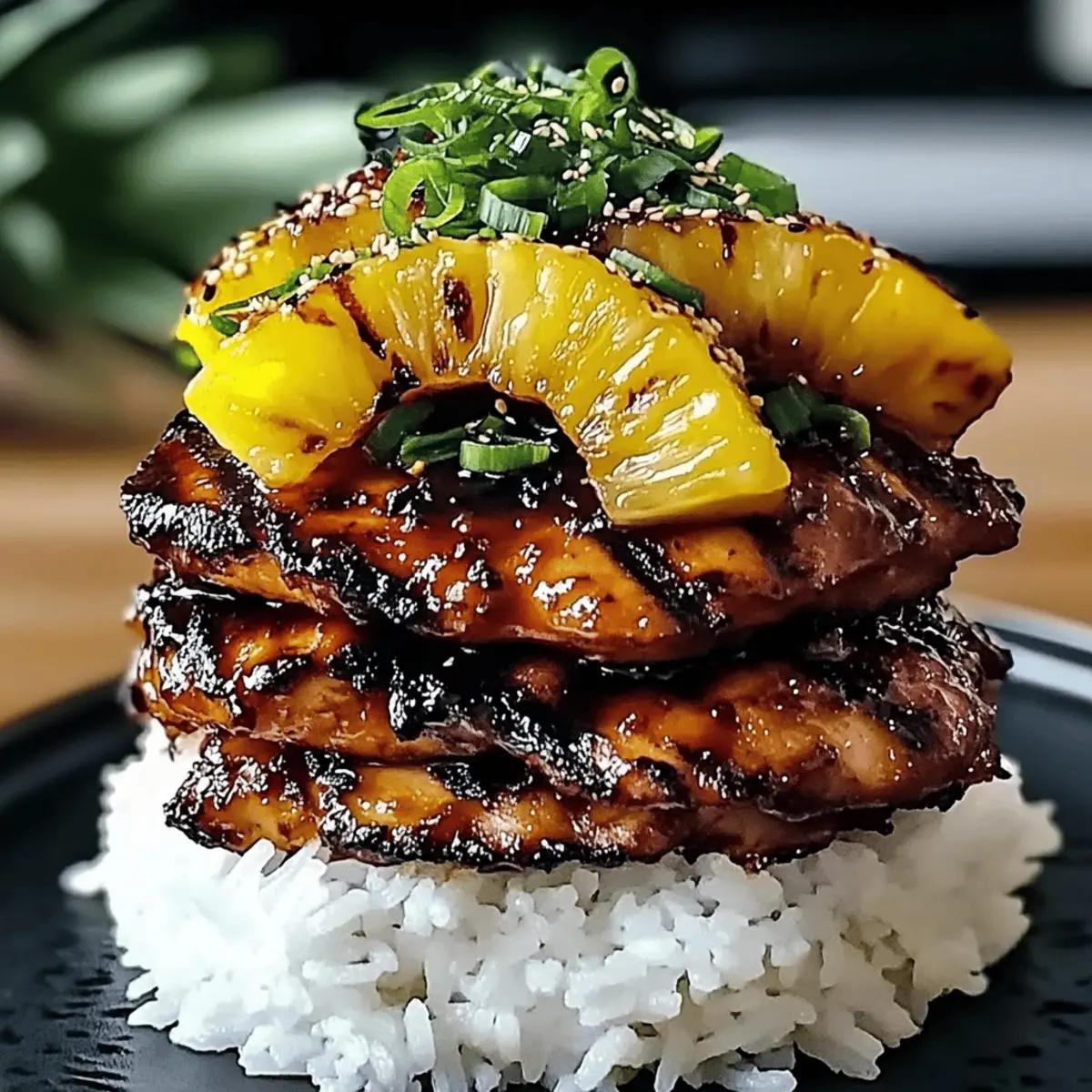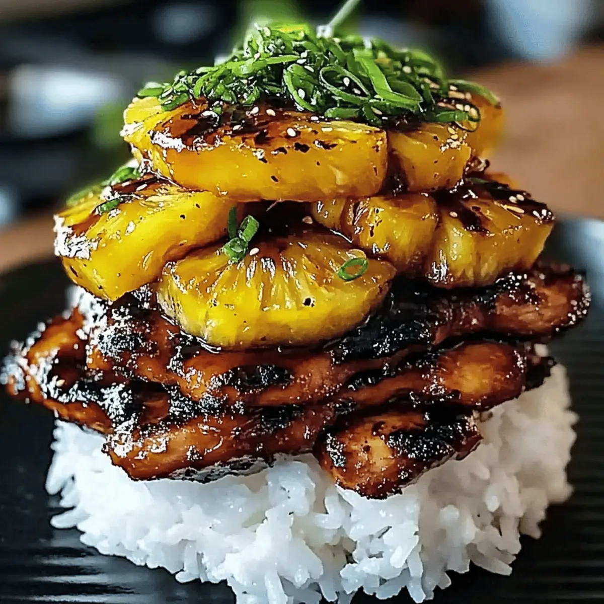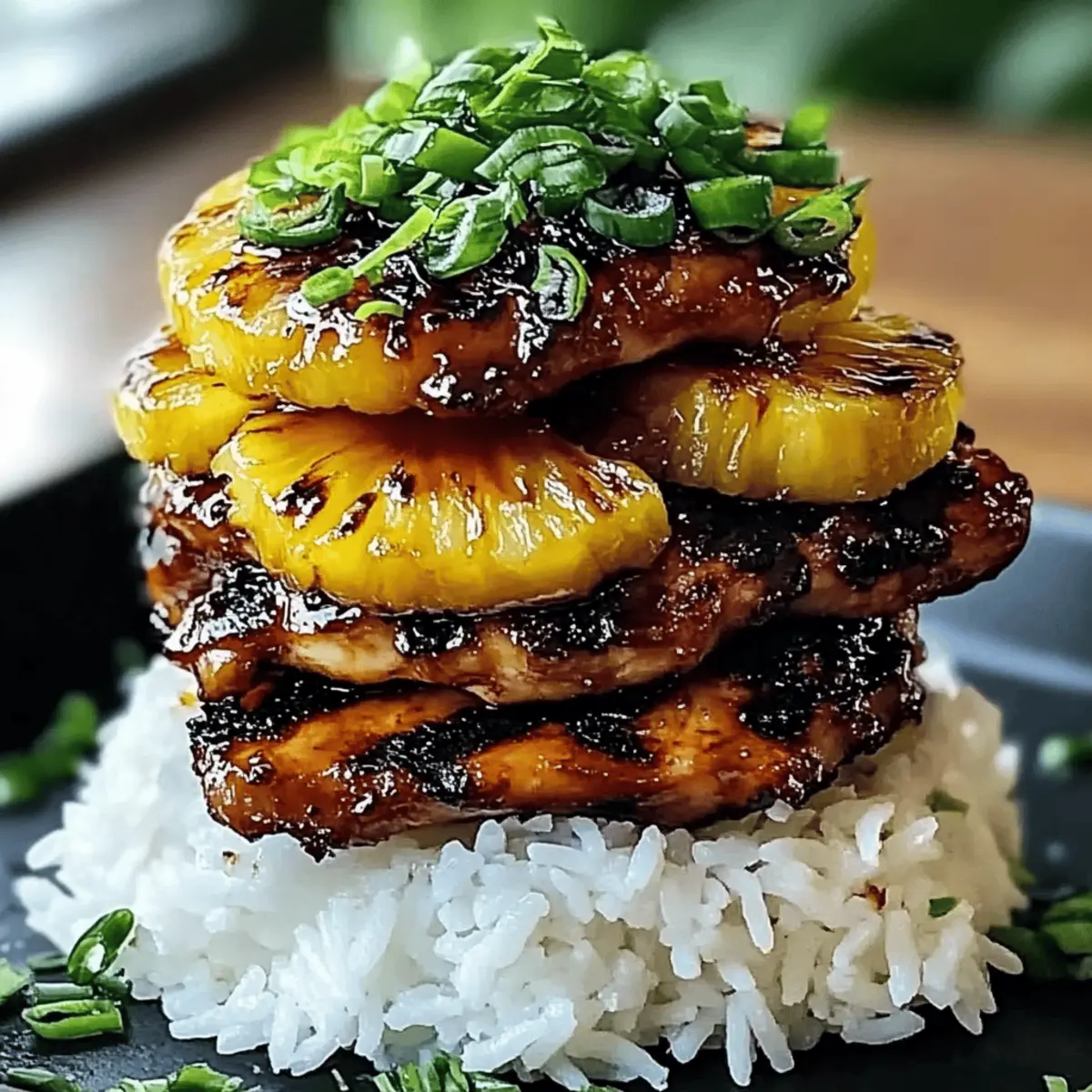 The sound of sizzling chicken on a grill instantly transports me to the breezy shores of Hawaii, where the air is filled with the aroma of sweet teriyaki and tangy pineapple. Let me introduce you to my favorite summer dish: the Hawaiian Huli Huli Chicken Stack. This colorful creation features tender, marinated chicken layered with caramelized pineapple, all resting on a bed of fluffy rice. Not only is it incredibly quick to whip up on busy weeknights, but it also transforms any gathering into a tropical escape, impressing friends and family alike. Ready to take your taste buds on a vacation without leaving your kitchen? Grab your grill, and let’s dive into this delightful recipe! Why is this recipe a must-try? Flavor Explosion: Bold, teriyaki-marinated chicken meets sweet, caramelized pineapple for a truly mouthwatering experience. Easy to Prepare: Just a little marination and grilling, making it approachable for both beginners and seasoned chefs alike. Versatile Dish: Enjoy it as a stand-alone stack or serve it with a refreshing side like a tropical coleslaw for a complete meal. Crowd-Pleaser: This dish is perfect for summer barbecues or weeknight dinners, sure to impress family and friends. Health-Conscious: Utilizing low-sodium ingredients keeps it tasty without the extra salt—great for those watching their intake! Elevate your mealtime with this Hawaiian Huli Huli Chicken Stack, and consider pairing it with a refreshing side like Tzatziki Chicken Veggie Naan Pizza for a delightful culinary journey. Hawaiian Huli Huli Chicken Stack Ingredients For the Chicken Marinade Boneless, skinless chicken breasts/thighs – This is your main source of protein; opting for organic ensures richer flavor. Low-sodium teriyaki sauce – Adds a sweet depth; you may want to choose naturally brewed for an authentic taste. Pure pineapple juice (no sugar added) – This brings a naturally sweet tropical essence to your marinade. Low-sodium soy sauce – Introduces a savory umami flavor; feel free to swap it for tamari if gluten-free. Dark brown sugar – Infuses a rich sweetness along with caramel notes; light brown sugar can be used as a substitute. Large garlic cloves, minced – Elevates your dish with a savory kick; garlic powder is a handy alternative if you’re short on time. Freshly grated ginger – Provides a zesty freshness that complements the chicken perfectly; ground ginger works too if needed. Toasted sesame oil – Adds a lovely nuttiness; regular sesame oil works just as well if that’s what you have on hand. For the Grilled Components Fresh pineapple rings – Grilling these caramelizes their natural sugars, creating heavenly flavor; canned versions can work—just be sure they’re well-drained. Cooked white rice – This fluffy base is perfect for stacking; coconut rice can kick the tropical vibes up a notch! For Garnishing Sliced green onions – These add a fresh and colorful touch; chives serve as a great substitute. Sesame seeds – Not only enhances presentation but adds a nutty crunch; feel free to skip if you don’t have any on hand. Dive into this Hawaiian Huli Huli Chicken Stack, and experience a burst of flavor that will whisk you away to the islands with every bite! Step‑by‑Step Instructions for Hawaiian Huli Huli Chicken Stack Step 1: Make the Marinade In a medium bowl, whisk together the low-sodium teriyaki sauce, pure pineapple juice, low-sodium soy sauce, dark brown sugar, minced garlic, freshly grated ginger, and toasted sesame oil until fully combined and the sugar has dissolved. This fragrant marinade will infuse your chicken with wonderful flavors, creating the perfect base for your Hawaiian Huli Huli Chicken Stack. Step 2: Marinate the Chicken Place the boneless, skinless chicken breasts or thighs into a zip-top bag or shallow dish. Pour the marinade over the chicken, ensuring it is well-coated. Seal the bag or cover the dish and refrigerate for at least 2 hours—overnight is best for maximum flavor. This step allows the chicken to absorb the delicious teriyaki and pineapple notes before grilling. Step 3: Grill the Chicken Preheat your grill to medium-high heat, around 400°F (200°C). Remove the chicken from the marinade, letting any excess drip off before placing it on the grill. Grill the chicken for 6–7 minutes per side, or until the internal temperature reaches 165°F (75°C) and the chicken has nice char marks. Save the leftover marinade for the glaze to enhance the stack. Step 4: Grill Pineapple While the chicken cooks, slice fresh pineapple into rings. Once the chicken is almost finished, place the pineapple rings on the grill. Grill each side for about 2–3 minutes until the pineapple caramelizes and develops a golden-brown color, intensifying its natural sweetness. The grilled pineapple will add a delightful topping for your Huli Huli Chicken Stack. Step 5: Make the Glaze In a small saucepan, pour in the reserved marinade and bring it to a boil over medium heat. Reduce the heat and let it simmer for 5–6 minutes, stirring occasionally, until it thickens into a glossy glaze. This step is crucial for safety, as boiling the marinade eliminates any harmful bacteria, transforming it into a flavorful drizzle for your Hawaiian Huli Huli Chicken Stack. Step 6: Assemble the Stack To put together your Hawaiian Huli Huli Chicken Stack, start by spooning a generous layer of cooked white rice onto a plate. Top the rice with a piece of grilled chicken, then layer on the charred pineapple rings. Drizzle the thickened glaze over the top, adding both flavor and visual appeal. Finish with a sprinkle of sliced green onions and sesame seeds for that extra touch of presentation. Hawaiian Huli Huli Chicken Stack Variations Feel free to let your creativity shine as you customize this dish for your taste buds and dietary needs! Spicy Kick: Add sriracha or crushed red pepper to the marinade for an extra layer of heat and flavor. Your taste buds will thank you! Canned