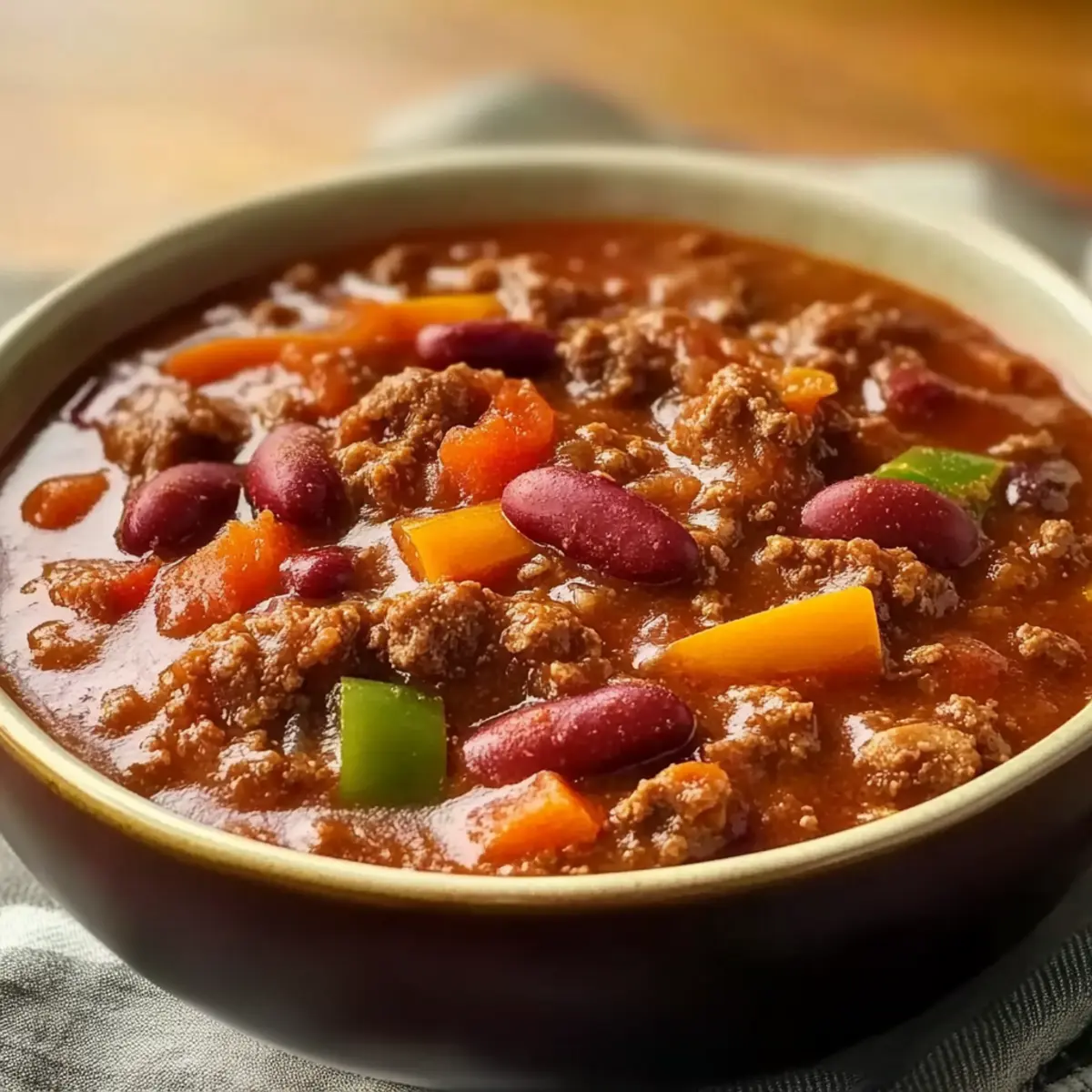 Experience the comforting aroma of Hearty Beef & Bean Chili, perfect for chilly evenings and gatherings.