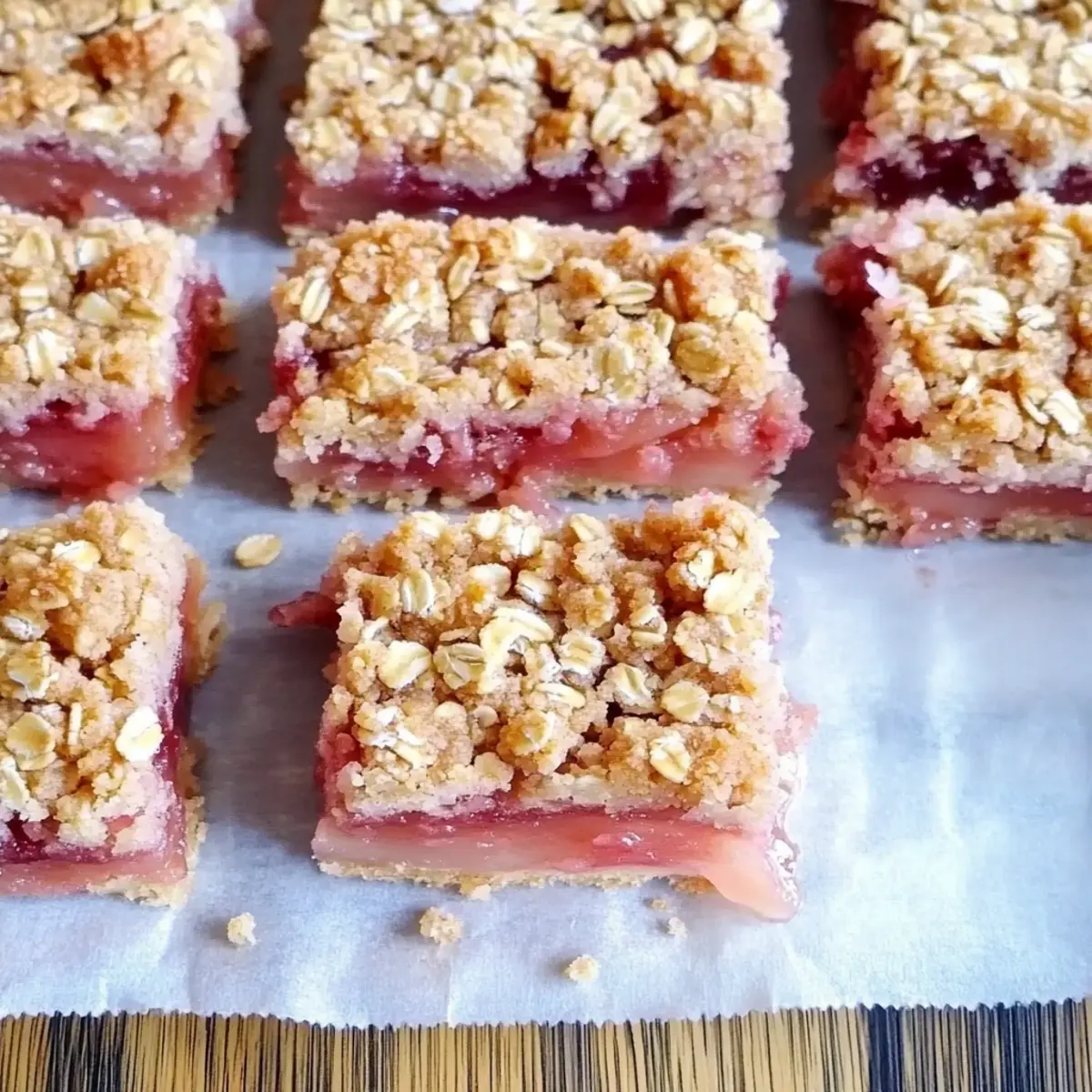 As the vibrant colors of spring start to emerge, I find myself drawn to the kitchen, dreaming of delightful desserts that celebrate the season. That’s when I stumbled upon these Homemade Rhubarb Crumble Bars, a joyous blend of tart rhubarb and sweet, buttery goodness that feels like wrapped sunshine on a plate. Not only do they evoke that perfect springtime vibe, but their make-ahead nature makes them ideal for gatherings or a cozy afternoon treat. With just a handful of pantry staples, you can whip up this vegetarian delight that promises laughter and satisfaction around the table. Ready to savor a slice of sunshine? Let’s dive into this easy recipe and bring a taste of spring into your home! Why Are These Bars So Delicious? Homemade Rhubarb Crumble Bars are the epitome of comfort food, merging tartness from fresh rhubarb with a sweet, buttery crust. Easy to prepare, you’ll be amazed at how quickly these bars come together using common pantry ingredients. Perfect for gatherings, they are an impressive addition to any dessert table. The wonderful textures—a soft base, jammy filling, and crunchy topping—create a delightful treat for all. For a twist, consider exploring our Mixed Berry Crumble recipe for a fruity variation! Whether enjoyed warm or chilled, these bars are a guaranteed crowd-pleaser! Homemade Rhubarb Crumble Bars Ingredients For the Base • All-Purpose Flour – Provides structure; feel free to use whole wheat for a nuttier flavor. • Granulated Sugar – Sweetens both the base and topping; coconut sugar can offer a healthier alternative. • Baking Powder – Acts as a leavening agent to create a tender texture. • Salted Butter – Adds richness; switch to unsalted butter and add a pinch of salt if preferred. • Large Egg – Binds the crust together seamlessly. For the Filling • Rhubarb Stalks – The star ingredient adding tanginess; use about 3 ½ cups diced, being careful to avoid the toxic leaves. • Lemon Zest and Juice – Brightens the flavor and balances the tartness; don’t skip this! • Cornstarch – Thicken your filling to prevent sogginess; arrowroot powder makes a suitable substitute. For the Topping • Rolled Oats – Creates texture and crunch; quick oats can be used but will change the texture slightly. • Vanilla-Infused Sugar – Provides sweetness and a hint of vanilla flavor; regular sugar with vanilla extract is a perfect swap. • Melted Butter – Binds the topping ingredients together for a delightful crumble. Crafted with warmth and care, these Homemade Rhubarb Crumble Bars are destined to become a cherished addition to your recipe repertoire! Step‑by‑Step Instructions for Homemade Rhubarb Crumble Bars Step 1: Preheat Your Oven and Prepare the Pan Start by preheating your oven to 400°F (200°C). While it heats up, take a 9-inch square pan and grease it lightly with butter or cooking spray. This will ensure your delicious homemade rhubarb crumble bars release easily after baking. Set the pan aside as you prepare the crust. Step 2: Make the Dough Base In a mixing bowl, combine all-purpose flour, granulated sugar, and baking powder. Use a fork or your fingers to rub softened butter into the dry ingredients until the mixture resembles coarse crumbs. Next, crack in a large egg and mix until everything comes together into a cohesive dough. This forms the tasty base for your bars. Step 3: Press the Dough into the Pan Take the dough you just mixed and press it evenly into the bottom of the prepared square pan. Use your fingers or the back of a spatula to create an even layer, ensuring the dough reaches all corners. Bake the crust in the preheated oven for about 10 minutes, just until it begins to set but not brown. Step 4: Prepare the Rhubarb Filling While the base is baking, prepare the rhubarb filling. In a medium saucepan over medium heat, combine the diced rhubarb, sugar, lemon zest, and lemon juice. Stir frequently and cook until the mixture starts to bubble and the rhubarb softens, about 5 minutes. The tangy aroma will fill your kitchen, signaling a delicious filling is on the way! Step 5: Thicken the Filling Once bubbling, reduce the heat to low and stir in cornstarch. Keep stirring and simmer the mixture for an additional 3 to 5 minutes, or until it thickens to a jam-like consistency. This thickened filling is crucial for your homemade rhubarb crumble bars, preventing sogginess and ensuring a delightful texture. Step 6: Assemble the Bars Remove the crust from the oven and spread the thickened rhubarb filling evenly over the hot base. Make sure to cover it completely to create that beautiful layer of tangy rhubarb goodness. This step will add the sweet-tart flavor that makes these bars irresistible. Step 7: Prepare the Crumble Topping In a separate bowl, mix together rolled oats, sugar, and melted butter until the mixture is combined and crumbly. This topping will give your rhubarb crumble bars a delightful crunch. Make sure not to overmix; you want a crumbly texture rather than a smooth paste! Step 8: Add the Topping and Bake Sprinkle the oat mixture evenly over the rhubarb filling, covering it well. Place the assembled bars back into the oven and bake for 20 to 25 minutes, or until the topping is golden brown and the filling is bubbly. The aroma of baking will be simply heavenly. Step 9: Cool and Slice Once baked, remove the pan from the oven and let the bars cool completely in the pan. This cooling time is essential for them to set properly. After about 30 minutes at room temperature, slice your homemade rhubarb crumble bars into squares, ready to be enjoyed! Make Ahead Options These Homemade Rhubarb Crumble Bars are perfect for busy home cooks looking to save time during weeknight meal prep! You can prepare the base and rhubarb filling up to 24 hours in advance; just refrigerate them separately to maintain freshness and prevent sogginess. When you’re ready to finish, simply assemble the bars by spreading the filling