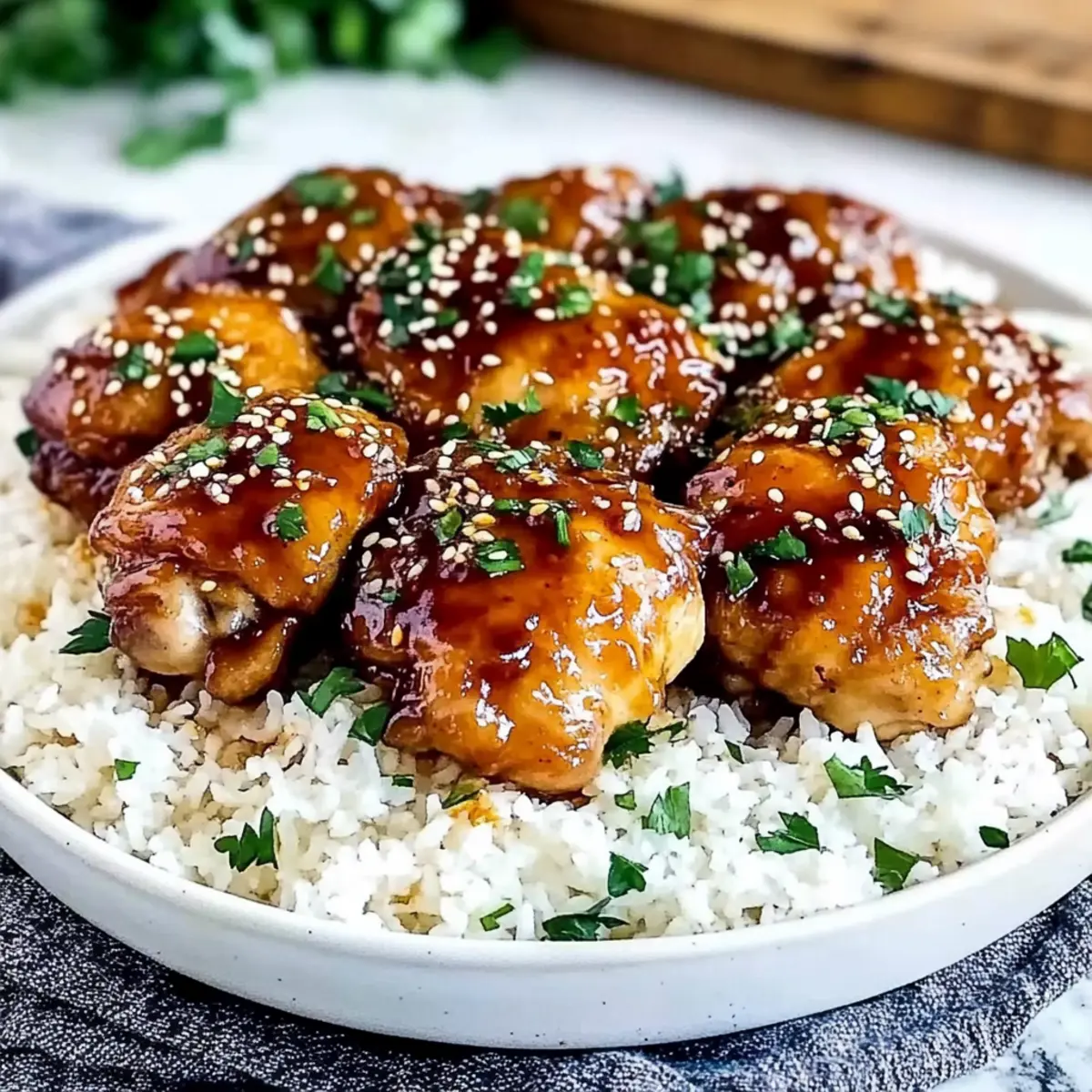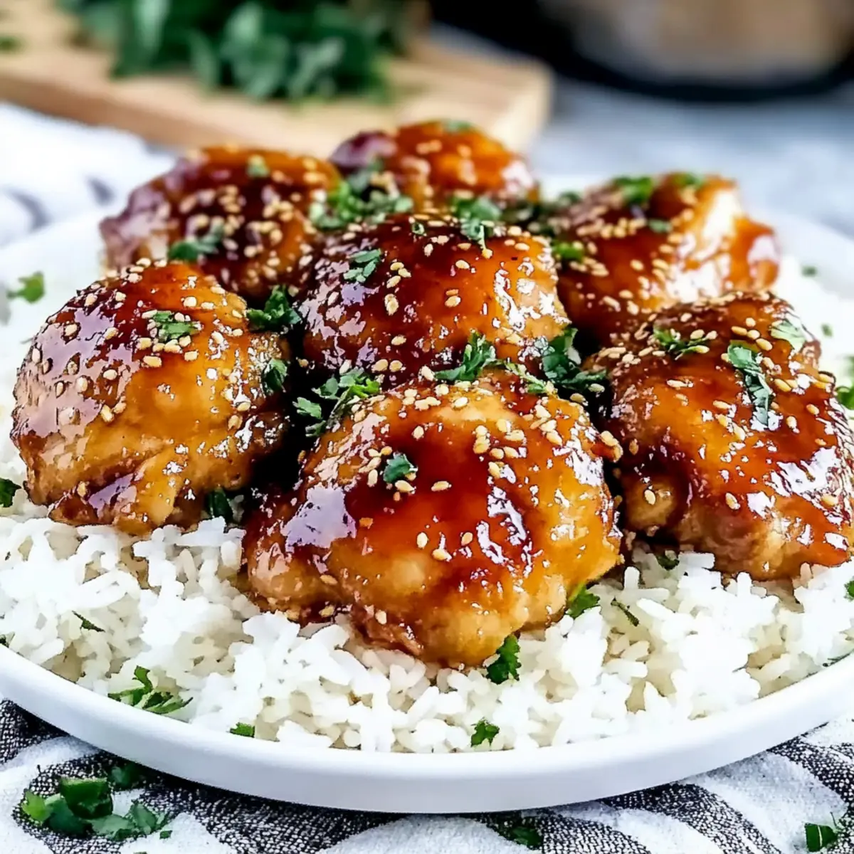 As I stood by my stove, the aroma of sizzling chicken enveloped my kitchen, instantly transporting me to a favorite takeout spot. This quick and easy honey garlic chicken thighs recipe is a game-changer for busy weeknights—a blend of sweet and savory that comes together in just 20 minutes. Using simple pantry staples, you can create a sticky, glossy dish that’s sure to captivate even the pickiest eaters. Not only is this meal customizable to fit any dietary preference, including gluten-free and meatless options, but it’s also packed with flavor and perfect for those who crave a home-cooked meal without the fuss. Ready to discover the joy of quick dinners? Let’s dive into this delightful recipe together! Why is Honey Garlic Chicken a Must-Try? Quick & Easy: This recipe comes together in just 20 minutes, making it ideal for hectic weeknights. Versatile Options: Whether you want to switch to chicken breasts or even tofu, you can easily adapt this dish to suit your dietary preferences. Flavor-Packed: The sweet and savory glaze elevates the chicken, creating a mouthwatering sensation that rivals your favorite takeout. Crowd-Pleaser: Even the pickiest eaters will be asking for seconds, making it perfect for family dinners or gatherings. Serve it with jasmine rice or a simple veggie stir-fry for a complete meal! For more ideas on tantalizing chicken dishes, check out my Garlic Parmesan Chicken and Honey Hot Chicken recipes! Honey Garlic Chicken Thighs Ingredients For the Chicken • Boneless Skinless Chicken Thighs – This is the main protein which stays juicy and tender during cooking, perfect for honey garlic chicken thighs. • Cornflour (or Cornstarch) – Essential for creating a crispy outer layer, contributing to a delightful texture. • Salt – Enhances overall flavor; adjust according to your dietary needs. • Black Pepper – Adds a touch of warmth; feel free to leave it out for a milder taste. For the Cooking Base • Vegetable Oil – Ideal for searing the chicken; can be replaced with olive oil for a different flavor. • Unsalted Butter – Provides that rich, buttery taste; for a dairy-free option, plant-based butter works well. For the Flavorful Sauce • Garlic (finely minced) – Brings aromatic depth and a flavor boost; fresh garlic is highly recommended for the best taste. • Honey – Sweetens the dish while balancing the flavors; agave syrup is a great lower-glycemic substitute. • Chicken Stock – Adds moisture and extra flavor; switch to vegetable stock for a vegetarian version. • Rice Vinegar – Introduces acidity to balance the sweetness; apple cider vinegar makes a suitable alternative. • Light Soy Sauce – Contributes a delightful umami flavor; for gluten-free, opt for tamari. Embrace the wonderful world of honey garlic chicken thighs and enjoy a deliciously simple meal that you can customize to your heart’s content! Step‑by‑Step Instructions for Honey Garlic Chicken Thighs Step 1: Prepare Chicken Start by patting your boneless skinless chicken thighs dry with paper towels to ensure a crispy texture. In a large bowl, toss the chicken thoroughly with cornflour, salt, and black pepper. This will create a delicious outer layer that crisps up beautifully during cooking. Step 2: Sear Chicken Heat a skillet over medium-high heat and add vegetable oil, allowing it to get hot. Once shimmering, carefully place the chicken thighs in the skillet without overcrowding them. Sear for 4-5 minutes until they develop a golden brown crust, then flip and cook for an additional 2-3 minutes until cooked through. Step 3: Add Garlic and Butter Reduce the heat to medium-low and add unsalted butter and finely minced garlic to the skillet. Stir gently as the butter melts, allowing the garlic to sauté for about 1 minute until fragrant but not burnt. This step will infuse the chicken with aromatic flavors that highlight the dish. Step 4: Make Sauce In a small bowl, whisk together honey, chicken stock, rice vinegar, and light soy sauce until well combined. Pour this delectable sauce over the chicken in the skillet, ensuring each piece is well coated. The sweet and savory mixture will create a glossy glaze during cooking. Step 5: Simmer & Thicken Bring the sauce to a gentle boil, then reduce the heat and let it simmer for about 5-6 minutes. As it cooks, stir occasionally to ensure the chicken absorbs the flavors and the sauce thickens, coating the chicken thighs in a deliciously sticky glaze. Step 6: Serve Once thickened, remove the skillet from heat. Serve the honey garlic chicken thighs immediately over a bed of cooked rice. For an added touch, garnish with chopped parsley and optional chili flakes, giving your meal a beautiful color and flavor boost that will impress your family and friends. How to Store and Freeze Honey Garlic Chicken Thighs Fridge: Store cooked honey garlic chicken thighs in an airtight container for up to 4 days. This keeps them juicy and ready for quick reheating. Freezer: For longer storage, freeze the chicken in a freezer-safe container or bag for up to 3 months. Make sure to label the bag with the date to stay organized. Reheating: When you’re ready to enjoy leftovers, reheat in the oven at 350°F (175°C) for about 15 minutes, or use the microwave until heated through. Enjoy that sticky goodness again! Thawing: If frozen, thaw overnight in the fridge before reheating to ensure even heating and maintain texture in your honey garlic chicken thighs. Honey Garlic Chicken Thighs Variations Invite your culinary creativity to dance with these delightful twists on honey garlic chicken thighs! Dairy-Free: Substitute unsalted butter with plant-based butter for a completely dairy-free dish. You’ll keep that irresistible richness while accommodating dietary needs. Gluten-Free: Use tamari instead of light soy sauce to maintain the umami flavor without the gluten. Your meal can be just as delicious while fitting your lifestyle! Spicy Kick: Add a teasp