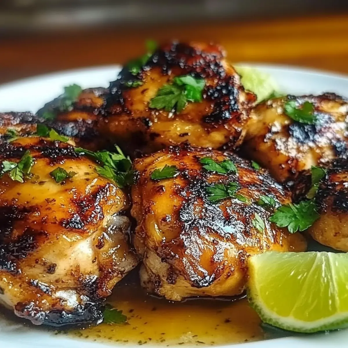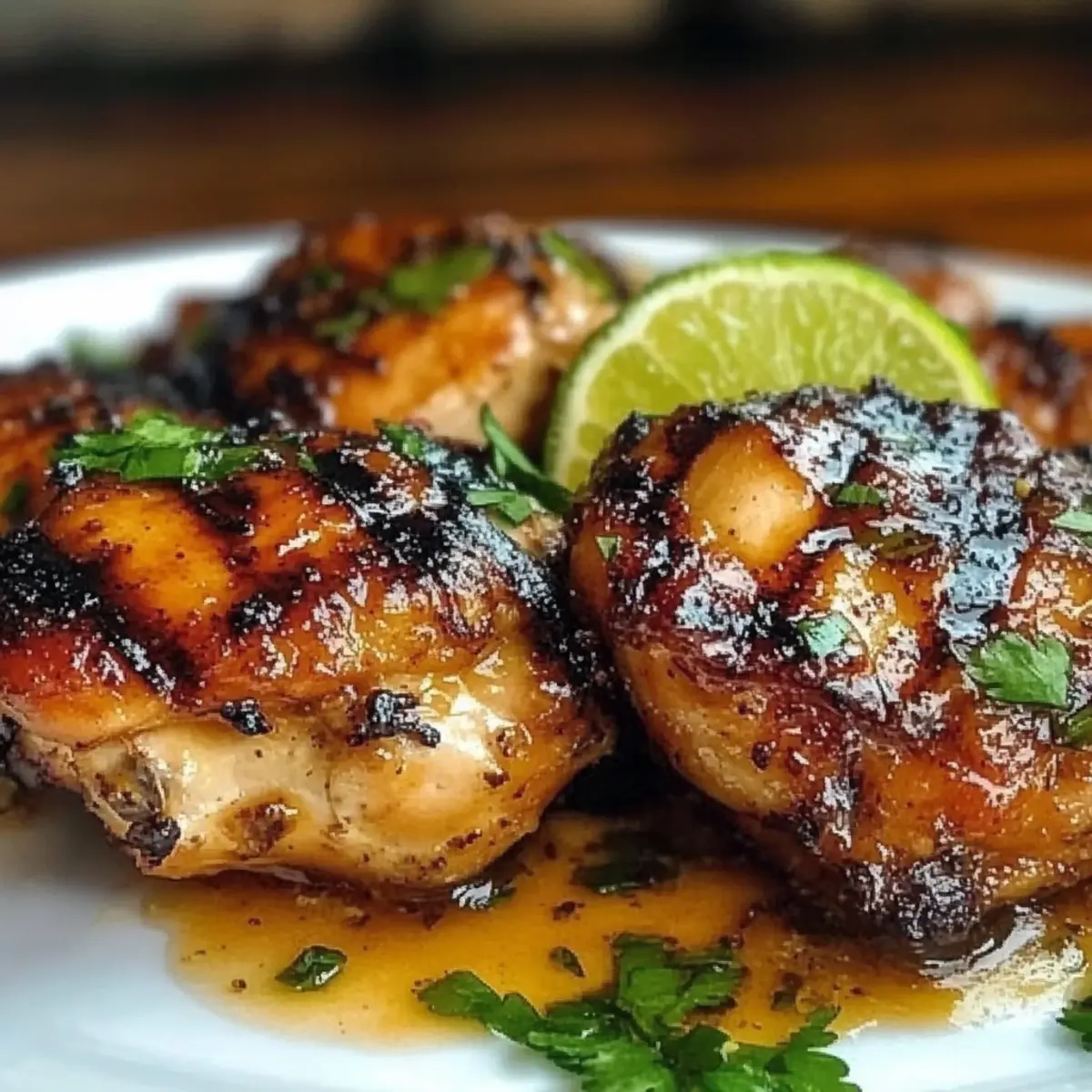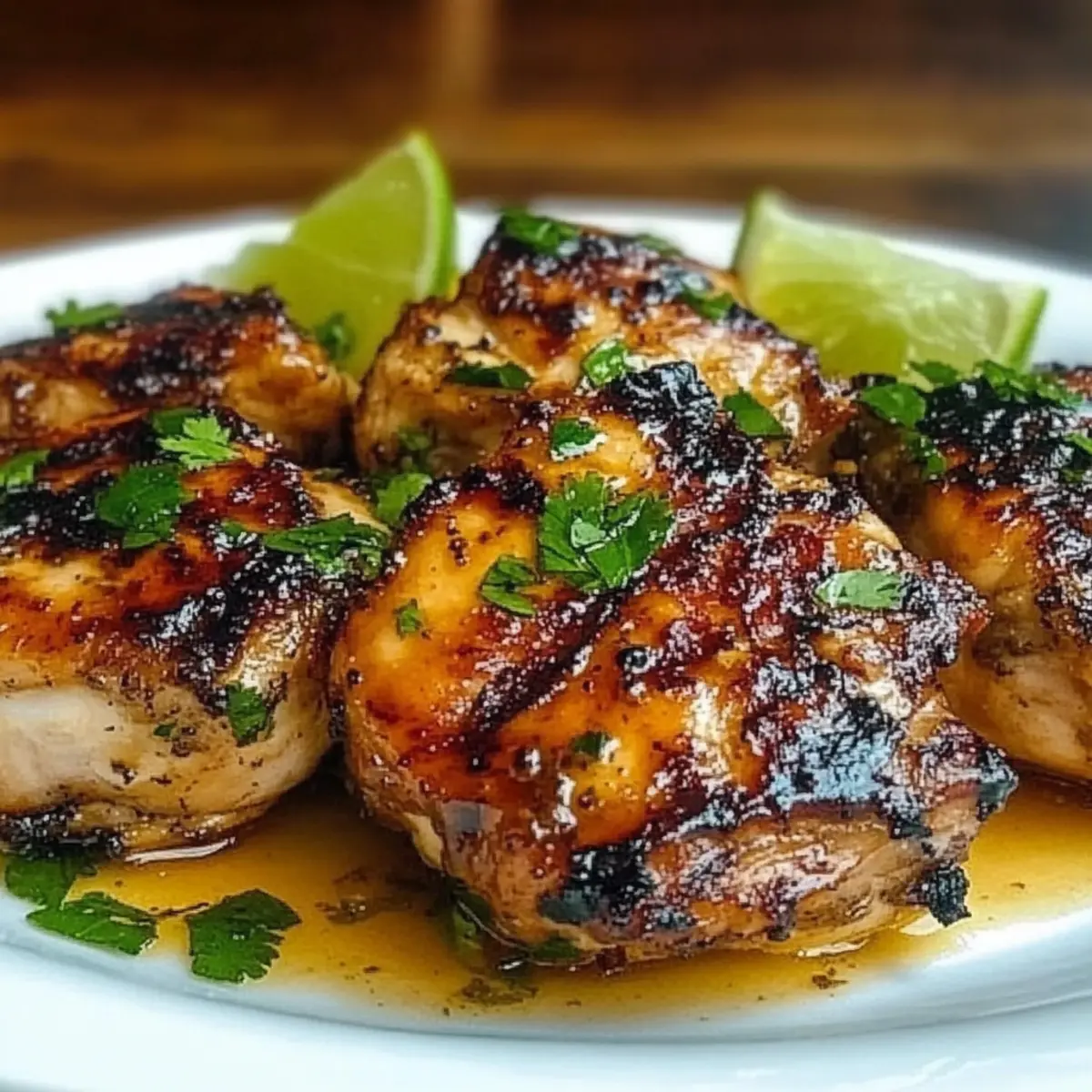 As I stepped onto my porch, the warm evening air wrapped around me like a cozy blanket, igniting my craving for something bold yet refreshing. Enter the star of my weeknight culinary adventures: Honey Lime Grilled Chicken Thighs! This quick recipe marries juicy chicken with a zesty honey and lime marinade, making it a delightful choice for both casual dinners and festive gatherings. Not only does it come together in a flash, allowing you to retreat from the chaos of takeout, but it also brings a healthy twist to your grilling routine, ensuring you feel great as you savor each bite. Ready to transform your dinner experience into something irresistibly delicious? Let’s dive in! Why are Honey Lime Grilled Chicken Thighs irresistible? Simplicity at Its Best: This recipe is a breeze to make, requiring just a handful of ingredients and minimal prep time. Bursting with Flavor: The sweet honey and tangy lime marinade infuses the chicken with a delightful zest that dances on your taste buds. Healthy Grilling Option: Enjoy a guilt-free meal that’s low in calories yet high in flavor, making it perfect for summer BBQs. Versatile Pairings: Serve these grilled thighs with a refreshing cucumber salad or crispy tortilla chips for a deliciously complete meal. Crowd-Pleaser: Ideal for gatherings or busy weeknights, these juicy thighs are guaranteed to impress your family and friends! If you’re looking for more grilled delights, also try the Grilled Chimichurri Chicken. Honey Lime Grilled Chicken Thighs Ingredients • Perfect for your next BBQ! For the Marinade Honey – Adds sweetness and moisture; substitute with agave syrup for a vegan option. Fresh lime juice – Brings tanginess and acidity to balance the sweet flavors; lemon juice can work as an alternative. Olive oil – Ensures the chicken stays moist and helps the marinade adhere; can be swapped with avocado oil. Garlic (minced) – Contributes savory depth; in a pinch, use garlic powder. Ground cumin – Imparts earthy notes that complement the sweetness; omit for a milder flavor. Chili powder (optional) – Adds a hint of heat; adjust to taste or replace with smoky paprika for a different profile. Salt and pepper – Basic seasonings to enhance flavor; adjust according to your preference. For the Chicken Chicken thighs (bone-in or boneless) – The main protein, juicy and rich; substitute with chicken breasts if preferred. For Garnish and Serving Fresh cilantro – Adds a pop of freshness and color; can be replaced with parsley or omitted if desired. Lime wedges – Enhances flavor and presentation; highly recommended for serving alongside the chicken. Step‑by‑Step Instructions for Honey Lime Grilled Chicken Thighs Step 1: Prepare the Marinade In a medium bowl, whisk together honey, fresh lime juice, olive oil, minced garlic, ground cumin, optional chili powder, salt, and pepper until fully combined. The mixture should be smooth and fragrant. This zesty marinade will bring the Honey Lime Grilled Chicken Thighs to life, so make sure every ingredient is well incorporated before moving on to the next step. Step 2: Marinate the Chicken Place the chicken thighs in a resealable plastic bag or a shallow dish, then pour the prepared marinade over the top. Seal the bag or cover the dish, ensuring the chicken is generously coated. Refrigerate for at least 30 minutes to allow the flavors to meld, but for an even deeper profile, consider marinating for up to 4 hours. Smile as you anticipate that delicious taste! Step 3: Preheat the Grill While the chicken is marinating, preheat your grill to medium-high heat, aiming for around 400°F (200°C). This step is crucial as the right temperature guarantees that your Honey Lime Grilled Chicken Thighs will cook evenly and develop those lovely grill marks that add incredible flavor. Prepare your grill grates by lightly oiling them to prevent sticking. Step 4: Prepare the Chicken for Grilling Once the marinating time is up, remove the chicken thighs from the bag or dish and let any excess marinade drip off. Discard any leftover marinade to maintain food safety. The chicken should look glossy and well-coated, ready to be transformed by the heat of the grill. Step 5: Grill the Chicken Place the chicken thighs skin-side down on the hot grill. Cook for 6-8 minutes, without moving them, until they have developed a nice char and release easily from the grill. Flip the thighs and continue grilling for an additional 6-8 minutes until the internal temperature reaches 165°F (75°C). The fragrant steam and sizzling sounds will fill the air, promising a delightful meal. Step 6: Let It Rest Once cooked, transfer the juicy Honey Lime Grilled Chicken Thighs to a platter. Allow them to rest for about 5 minutes, which helps the juices redistribute and keeps the meat tender. This brief pause is an exciting time to prepare your garnishes and side dishes, so they’re ready to complement the grilled chicken beautifully. Step 7: Garnish and Serve Finally, garnish your grilled chicken thighs with fresh cilantro and serve with lime wedges for an extra burst of brightness. Arrange alongside your favorite sides, like a cucumber salad or tortilla chips, to create a delicious meal that is sure to please everyone. Enjoy the tantalizing flavors of every juicy bite! Honey Lime Grilled Chicken Thighs Variations Customize your Honey Lime Grilled Chicken Thighs with these delightful twists, bringing new flavors and textures to the table! Maple Syrup: Swap honey for maple syrup to add a unique sweetness that complements the lime perfectly. The slight smokiness of maple syrup lends a cozy warmth to the dish. Basil Infusion: Replace cilantro with fresh basil for a refreshing herb twist that screams summer. The aromatic notes of basil harmonize beautifully with the honey and lime flavors. Garlic Lovers: Increase the garlic to two cloves or use roasted garlic for a deep, sweet, and savory taste. This change really elevates the flavor profile, 