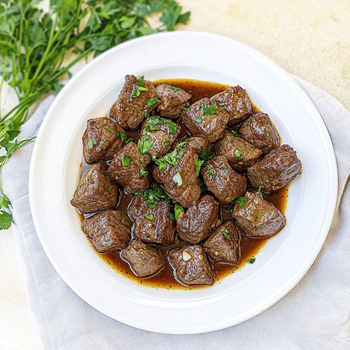 The sizzling sound of steak hitting a hot pan is music to my ears—it sparks memories of cozy family dinners filled with laughter and good food. Today, I’m thrilled to share my Instant Pot Garlic Butter Steak Bites recipe that beautifully captures that essence. With just a handful of affordable cuts of beef and a rich garlic-butter sauce, you’ll have a quick meal that’s bound to impress. Not only does this dish save time and cleanup—perfect for busy weeknights—but it also delivers the juicy, tender bites that are sure to turn any meal into a special occasion. Curious about how simple ingredients can create such deliciousness? Let’s dive in and make some magic! Why Will You Love This Recipe? Simplicity at Its Best: Creating these steak bites is a breeze, with just a few easy steps and minimal prep time. Rich, Savory Flavor: The combination of garlic and buttery goodness ensures each bite is packed with mouthwatering flavor. Versatile Choices: Use affordable cuts like strip steak, or switch it up with sirloin or chuck—whatever fits your taste and budget! Perfect for Any Occasion: Whether it’s a weeknight dinner or special get-together, these steak bites shine as a delicious main course or tantalizing appetizer, much like my Garlic Butter Scallops. Family-Approved: Packed with protein and those nostalgic flavors we all love, your family will keep coming back for more! Don’t forget that leftovers make a fantastic addition to a salad or grain bowl, just like in my Garlic Parmesan One Pot Pasta Recipe. Instant Pot Garlic Butter Steak Bites Ingredients • Cook up a flavorful dish with these essential ingredients! For the Steak Bites Strip Steak – This is the ideal protein choice for juicy, melt-in-your-mouth bites due to its marbling. Unsalted Butter – Adds a luxurious richness to the sauce; substitute with olive oil for a lighter twist. Garlic – Fresh minced garlic is essential for that aromatic punch in every bite. Beef Broth – Depth and flavor powerhouse; feel free to use vegetable broth for a lighter flavor. Salt – A key enhancer for all flavors; adjust according to your dietary needs. Ground Black Pepper – Adds just the right amount of mild heat; freshly ground is best for maximum flavor. For Garnishing Fresh Parsley – Brightens up your dish with color and freshness; cilantro can be an excellent alternative. There you have it—every ingredient you need to whip up mouthwatering Instant Pot Garlic Butter Steak Bites! Step‑by‑Step Instructions for Instant Pot Garlic Butter Steak Bites Step 1: Gather Ingredients Start by assembling all your ingredients for the Instant Pot Garlic Butter Steak Bites. You will need strip steak, unsalted butter, fresh garlic, beef broth, salt, and ground black pepper, along with fresh parsley for garnish. Having everything at your fingertips ensures a smooth cooking process and helps keep the kitchen organized. Step 2: Heat the Instant Pot Set your Instant Pot to the “Sauté” function and allow it to heat for approximately 5 minutes. You want the pot to become hot enough to sear the steak, creating a nice browning that adds rich flavor. As an indicator, you should see a bit of steam rising from the pot, signaling it’s ready for action. Step 3: Prepare the Steak While the Instant Pot heats, pat the steak cubes dry with paper towels and generously season them with salt. This extra step helps achieve that beautiful caramelization when you sear the meat. It’s crucial to have dry steak pieces to avoid steaming during the sauté process. Step 4: Sear the Steak Melt half of the unsalted butter in the hot Instant Pot, then add the seasoned steak cubes. Sear them for about 3 minutes on each side until they develop a nice brown crust. Once browned, transfer the steak to a plate and set it aside; this helps to lock the juiciness inside each bite of your steak. Step 5: Deglaze the Pot Pour in the beef broth, scraping up any browned bits from the bottom of the pot with a wooden spoon. This step is crucial as it adds flavor to your sauce and prevents burning during pressure cooking. The pot should be aromatic, and any remaining steak residue will enhance your garlic butter sauce. Step 6: Add Remaining Ingredients Now, return the seared steak cubes to the pot along with the remaining butter and minced garlic. Season with ground black pepper and stir gently to combine, ensuring each bite is coated in that savory butter-garlic mixture. The instant aroma will have you eager to taste your creation. Step 7: Pressure Cook the Steak Bites Secure the lid of the Instant Pot and select the “Sealing” option. Cook on High Pressure for 10 minutes. The pot will take a few moments to build pressure before the timer starts, so use this time to prepare any sides or garnishes you plan to serve with your Instant Pot Garlic Butter Steak Bites. Step 8: Release Pressure After the cooking time is complete, let the pressure release naturally for about 5 minutes. This method allows the steak bites to stay tender. Once 5 minutes have passed, carefully switch to manual release to let out any remaining pressure. Listen for the hissing sound; it’s the final touch before you unveil your delicious meal. Step 9: Garnish and Serve Remove the lid and give the steak bites a gentle stir to redisperse the flavors. Finely chop some fresh parsley and sprinkle it over the top for a pop of color and freshness. Serve your luscious Instant Pot Garlic Butter Steak Bites immediately, paired with sides like mashed potatoes or fresh vegetables for a complete meal experience. How to Store and Freeze Instant Pot Garlic Butter Steak Bites Fridge: Store your leftovers in an airtight container for up to 3 days. This keeps your Instant Pot Garlic Butter Steak Bites fresh and flavorful, ready for quick reheating. Freezer: For longer storage, freeze your steak bites in a freezer-safe container for up to 3 months. Allow them to cool completely before freezing to prevent freezer bur