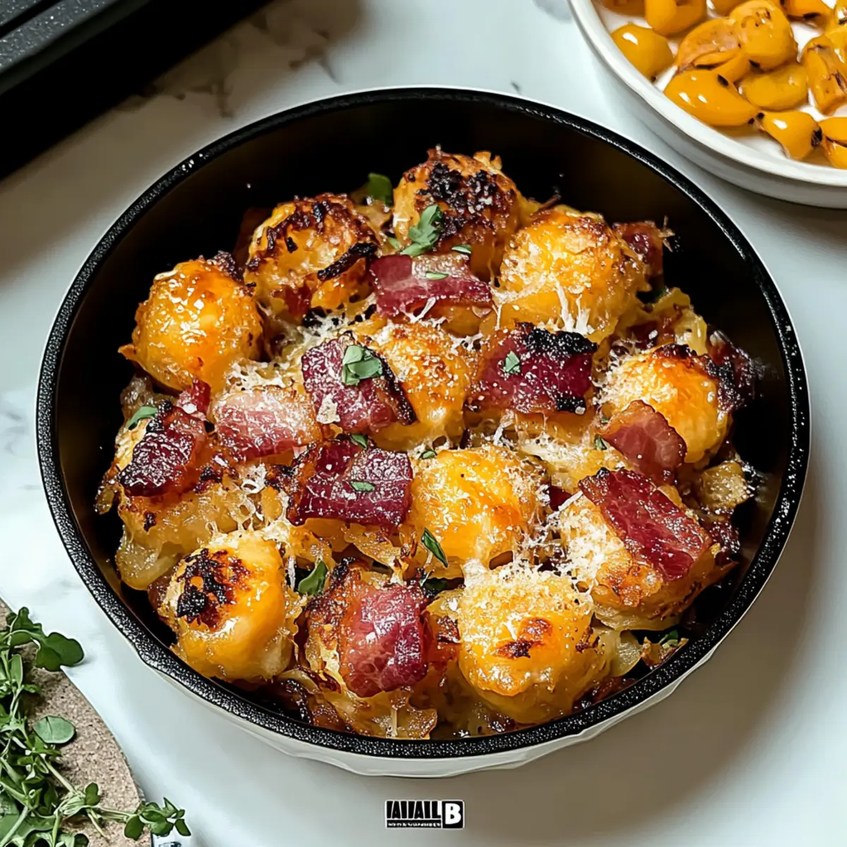As the aroma of smoky bacon fills the kitchen, I can’t help but smile knowing that something truly special is in the works. Meet Iowa Party Bites: these savory, cheesy hashbrown snacks are a delightful combination of flavors that will make any gathering shine. With a crispy exterior and a warm, gooey center, they’re not just a crowd-pleaser; they’re also incredibly easy to prepare. Say goodbye to complicated recipes and fast food lines—these bites promise quick prep and the joy of homemade goodness. Whether you’re hosting a game day party or a cozy get-together, these irresistible morsels will have everyone reaching for seconds. Are you ready to dive into this flavor-filled adventure? Why Love Iowa Party Bites? Simplicity at Its Best: The preparation is a breeze, making these bites perfect for beginner cooks and seasoned chefs alike. Rich, Hearty Flavor: A blend of smoky bacon, creamy cheddar, and zesty jalapeño creates an irresistible taste that keeps everyone coming back for more. Crowd-Pleasing Appeal: Perfect for game days, parties, or casual gatherings, they disappear faster than you can say “Iowa Party Bites.” Versatile Options: Feel free to experiment with different cheeses or add jalapeños for an extra kick to customize them to your liking. Time-Saving Treat: Bake them in just 15-20 minutes, giving you more time to mingle with guests rather than slaving in the kitchen. Serve them with your favorite dip or pair them with other snacks like Cheesy Mashed Bites to create a complete snack platter that will impress everyone! Iowa Party Bites Ingredients For the Bites • Frozen Hashbrowns – The main base providing a soft texture; substitute with fresh grated potatoes, slightly cooked to hold shape. • Shredded Cheddar Cheese – Adds a rich, tangy flavor and gooey texture; any cheese that melts well can be used for variety. • Cooked and Crumbled Bacon – The smoky, salty crunch that enriches the flavor; alternatives include turkey bacon or pancetta for a lighter option. • Onion Powder – Enhances flavor depth with its mellow note; fresh chopped onions can be used but may alter the texture. • Garlic Powder – Adds warmth and savory sharpness; feel free to substitute with fresh minced garlic, reducing the amount slightly. • Dried Parsley – Brings color and a slight earthiness to balance the richness; fresh parsley works too but changes the texture. • Black Pepper – A touch of heat to elevate the taste; adjust according to your spice preference. • Salt – Essential for flavor enhancement; try using sea salt or Himalayan salt for a different taste profile. • Sour Cream – Adds creaminess and a hint of tang; Greek yogurt is a great lighter alternative. • Mayonnaise – Acts as a binding agent for a smooth texture; can be substituted with extra sour cream or Greek yogurt. • Dijon Mustard – Provides a tangy zip to the mix; yellow mustard can be a milder substitute. Let the flavors dance and embrace the joy of homemade snacks with these delightful Iowa Party Bites! Step‑by‑Step Instructions for Iowa Party Bites Step 1: Preheat the Oven Start by preheating your oven to 375°F (190°C). This temperature is crucial for achieving that perfect crispiness in your Iowa Party Bites. While the oven heats up, you can prepare your ingredients, ensuring everything will be ready to go. Step 2: Prepare the Hashbrowns Take your frozen hashbrowns and let them thaw completely. Once thawed, chop them into small, manageable pieces. This helps them fully incorporate into the mixture, ensuring every bite of your Iowa Party Bites is flavorful and full of texture. Step 3: Cook the Bacon In a skillet over medium heat, cook the bacon until it’s crispy and golden brown, about 5–7 minutes. Once cooked, crumble it into small pieces and set it aside to cool slightly. The bacon will add a delicious smoky flavor to your Iowa Party Bites, enhancing their savory profile. Step 4: Mix the Dry Ingredients In a large mixing bowl, combine the thawed hashbrowns, crumbled bacon, shredded cheddar cheese, onion powder, garlic powder, dried parsley, black pepper, and salt. Stir these ingredients together until they are evenly mixed; this ensures that every bite will be packed with that signature Iowa Party Bites flavor. Step 5: Prepare the Creamy Mixture In a separate bowl, whisk together the sour cream, mayonnaise, and Dijon mustard until smooth. This creamy mixture will help bind your Iowa Party Bites together while adding a luscious creaminess. Take a moment to appreciate the rich texture before combining it with the dry ingredients. Step 6: Combine Mixtures Add the creamy mixture to the bowl of hashbrowns and other ingredients. Gently fold everything together until fully combined, ensuring that the hashbrowns are well-coated. The result should be a thick, cohesive mixture that’s ready to be shaped into delicious bites. Step 7: Form the Bites Using your hands, scoop out tablespoon-sized portions of the mixture and form them into balls. Place each ball on a lined baking sheet, making sure they are spaced apart. This will help your Iowa Party Bites bake evenly, allowing for a golden, crispy exterior. Step 8: Bake in the Oven Place the baking sheet in the preheated oven and bake for 15-20 minutes, or until the Iowa Party Bites are golden brown and crispy. Keep an eye on them as they bake; the visual cue of a golden crust signifies they are perfectly done and ready to be enjoyed! What to Serve with Iowa Party Bites? Indulging in the crispy, cheesy goodness of these bites is just the beginning. Let’s explore the perfect accompaniments to elevate your snacking experience! Creamy Dips: A rich, tangy ranch dressing pairs beautifully with the savory bites, offering a cool contrast that enhances their flavor. Spicy Salsa: The zesty freshness of homemade salsa brings a delightful kick, complementing the smoky bacon while adding a burst of color. Lightly Dressed Salad: A crisp green sa
