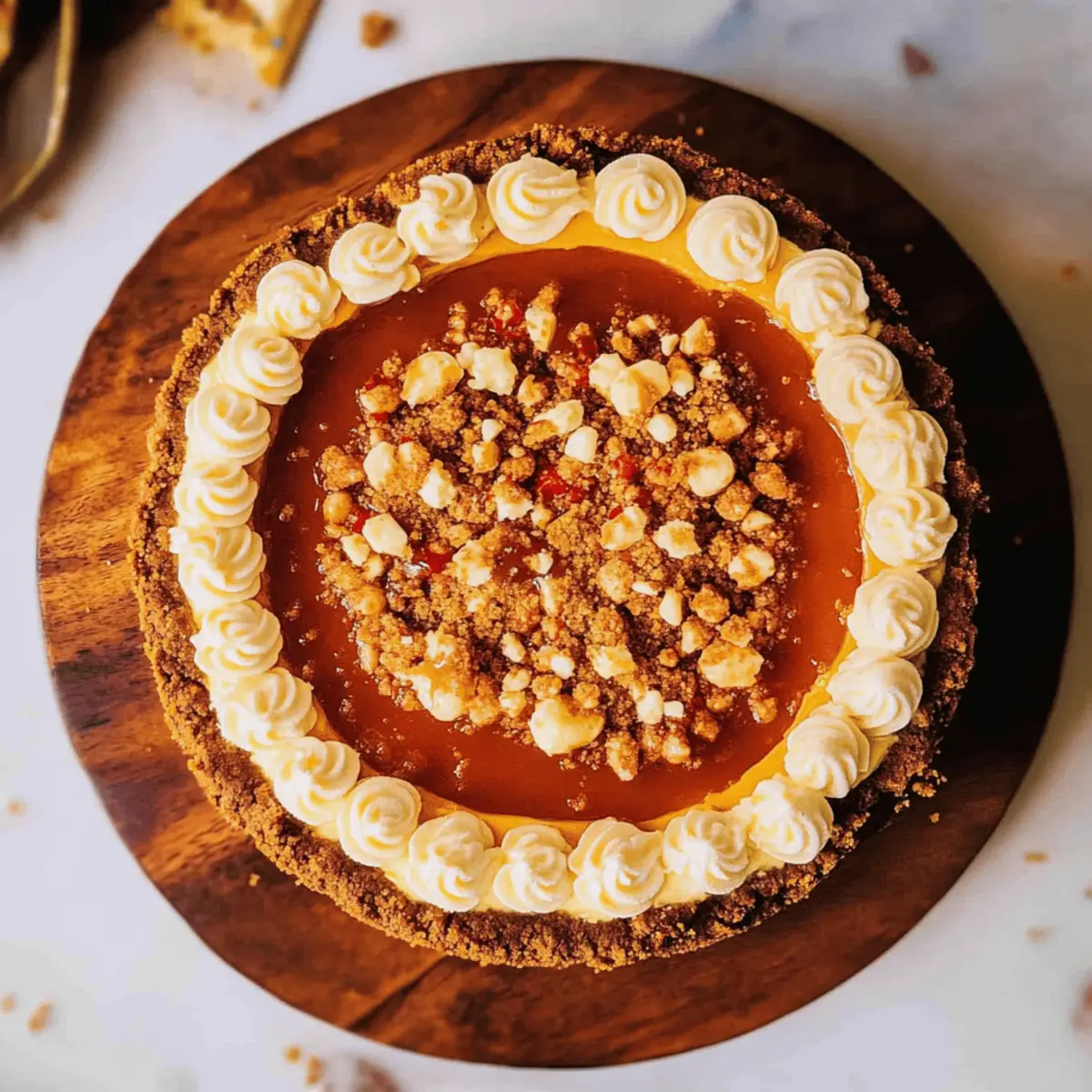 As the leaves turn golden and the air fills with the warm scent of spices, my thoughts inevitably drift to creating the perfect fall dessert: an Irresistible Pumpkin Cheesecake. This recipe combines a creamy pumpkin-infused filling with a delightfully crunchy spiced cookie crust, making it a standout centerpiece for any holiday gathering or cozy family dinner. One of the best parts? It’s a breeze to prepare ahead of time, allowing you to focus on celebrating instead of scrambling in the kitchen. Plus, each slice is a rich indulgence that turns even the simplest occasions into something special. Curious about how to whip up this heavenly treat? Let’s dive into the comforting world of pumpkin cheesecake together! Why is this cheesecake so irresistible? Indulgent Flavor: The creamy pumpkin filling combined with the rich spiced cookie crust brings an explosion of fall flavors that will have everyone coming back for more. Effortless Preparation: With just a few simple steps, you’ll create an impressive dessert that looks and tastes gourmet. It’s perfect for novice bakers looking to impress! Make-Ahead Delight: This cheesecake is a champion in the make-ahead department. Prepare it in advance and let it chill overnight for the best flavor and texture. Versatile Toppings: Dress it up with caramel sauce, crushed Biscoff cookies, or even a dollop of whipped cream for extra flair—and don’t forget to try it with a cup of coffee or herbal tea! Perfect for All Occasions: Whether it’s Thanksgiving, a family gathering, or just a cozy weekend treat, this pumpkin cheesecake is bound to be the star of the show. Don’t forget to check out other delightful recipes like Brownie Cheesecake Indulge for more sweet inspiration! Irresistible Pumpkin Cheesecake Ingredients For the Crust • Biscoff cookies – Provides the base crust; can substitute with graham crackers for a milder flavor. • Butter – Binds the crust ingredients together for stability; use unsalted butter for better control of salt levels. For the Filling • Cream cheese – Creates the creamy cheesecake texture; ensure it is softened to avoid lumps. • Pumpkin puree – Adds the signature flavor of the cheesecake; use pure pumpkin puree, avoiding pumpkin pie filling which contains added sugar. • Brown sugar – Sweetness and depth of flavor; can be substituted with white sugar if needed. • Eggs – Provides structure and richness to the filling; use large eggs as specified for best results. • All-purpose flour – Helps bind the filling and gives it a sturdier texture. For the Toppings • Caramel sauce – For decoration and added sweetness; optional for those who prefer a less sweet topping. • Crushed Biscoff cookies – For garnish, adding texture and visual appeal; can be replaced with additional cookie crumbs or chopped nuts. • Whipping cream – Optional for serving; adds a light topping to the rich dessert. • White chocolate chips – Optional garnish; adds a sweet touch against the pumpkin. Discover the magic of this Irresistible Pumpkin Cheesecake and enjoy a fall dessert that’s perfect for every occasion! Step‑by‑Step Instructions for Irresistible Pumpkin Cheesecake Step 1: Preheat and Prepare the Pan Begin by preheating your oven to 390°F (200°C). While it’s heating, take a 9-inch springform pan and line the outside with aluminum foil to prevent any water from seeping in during the baking process. This simple step sets the stage for a perfectly baked Irresistible Pumpkin Cheesecake. Step 2: Create the Cookie Crust Crush the Biscoff cookies using a food processor until they resemble fine crumbs. Combine the crumbs with melted unsalted butter, mixing until well combined. Press this mixture firmly into the bottom of the prepared springform pan to create a solid crust. Bake it in the preheated oven for 10 minutes until it’s golden and fragrant, enhancing that delicious cookie flavor. Step 3: Lower the Oven Temperature Once the crust is baked, lower the oven temperature to 230°F (110°C). While the oven cools, prepare a boiling water bath by bringing water to a boil in a kettle or pot. This technique helps create a moist environment in the oven, crucial for the smooth texture of your pumpkin cheesecake. Step 4: Mix the Filling In a large mixing bowl, begin by beating the softened cream cheese until it’s smooth and creamy, ensuring there are no lumps. Gradually add the pumpkin puree and brown sugar, mixing well until fully incorporated. Next, add the eggs one at a time, beating after each addition, and then gently fold in the sifted all-purpose flour until just combined. Step 5: Assemble and Bake Pour the luscious pumpkin filling into your cooled crust. Carefully place the springform pan into a larger baking tray, pouring boiling water around the pan until it reaches halfway up the sides of the cheesecake. This water bath will help keep your cheesecake moist. Bake for 90 minutes, watching for a slight jiggle in the center, indicating it’s done. Step 6: Cool Gradually After baking, turn off the oven and crack the door open slightly, allowing the cheesecake to cool gradually inside. This gentle cooling method helps prevent cracks from forming on the surface. Leave the cheesecake in the oven for about an hour, after which you can remove it from the water bath. Step 7: Chill the Cheesecake Let the cheesecake cool completely at room temperature before transferring it to the refrigerator. For the best results, cover it lightly and chill for at least 4 hours, though overnight is ideal for achieving optimal flavor and consistency in your Irresistible Pumpkin Cheesecake. Step 8: Add the Finishing Touches Just before serving, drizzle caramel sauce over the chilled cheesecake, allowing it to cascade down the sides. Sprinkle crushed Biscoff cookies on top for a delightful crunch and garnish with whipped cream or white chocolate chips if desired. This final touch enhances both the look and flavor of your p