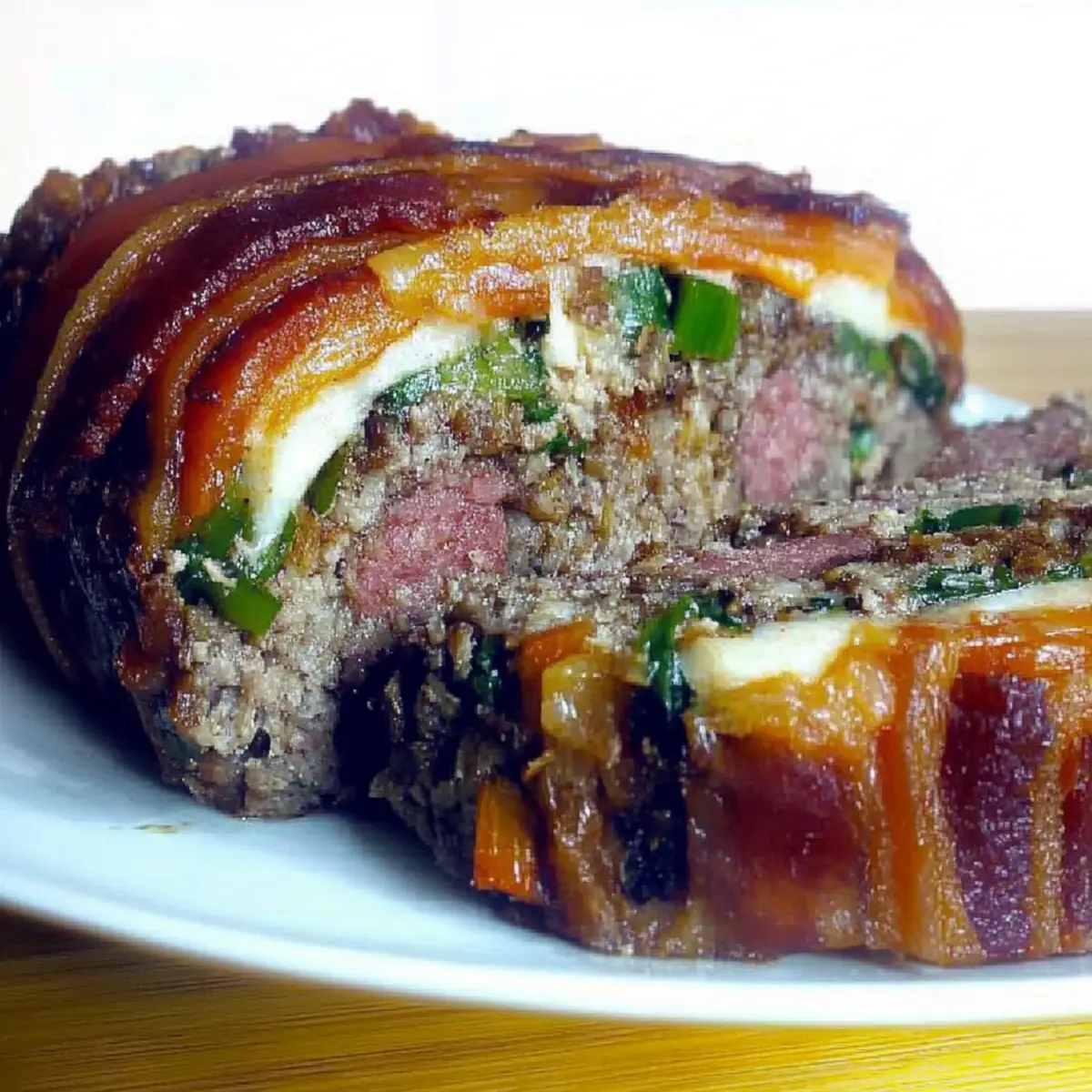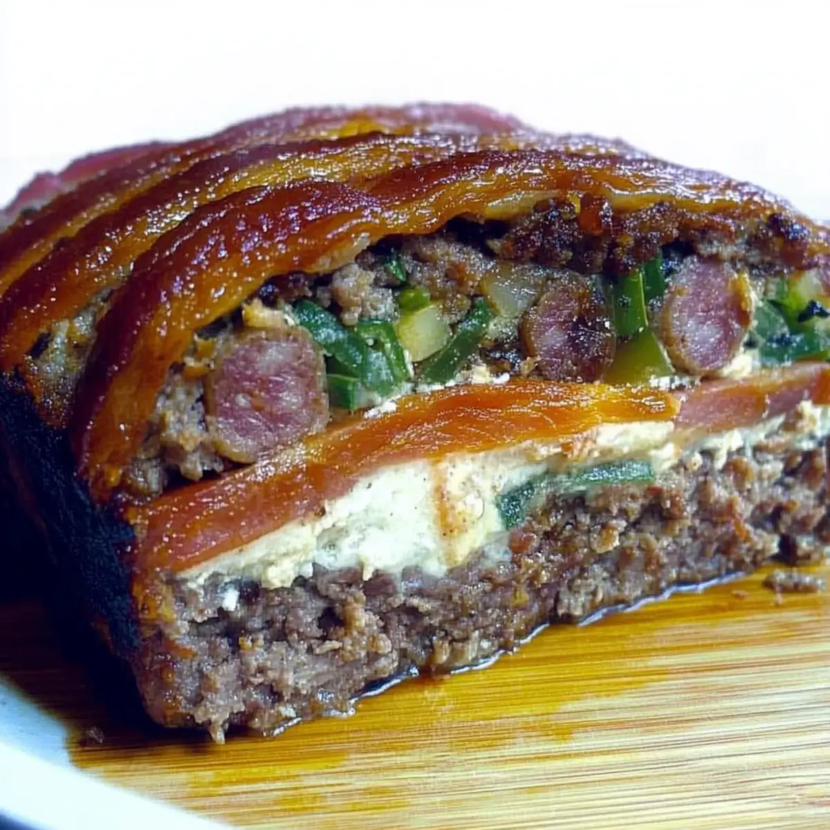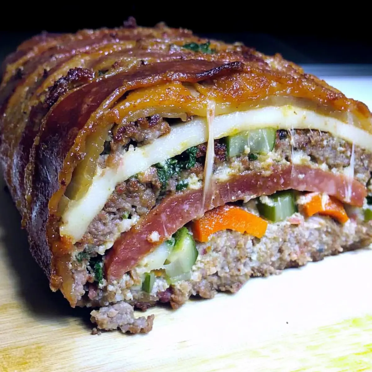As I stood in my kitchen, the enticing aroma of sautéing garlic and onion brought back memories of my grandmother’s Sunday dinners—where the heart of Italian cuisine came alive. This Hearty Italian Stuffed Meatloaf, or Polpettona Ripiena, is my homage to her legendary creations. Combining ground beef and pork sausage with fresh vegetables and aromatic herbs, this recipe not only packs a punch of flavor but also offers comfort in every bite. With its moist and savory filling, it’s the perfect centerpiece for family gatherings or those cozy evenings when you crave something hearty and fulfilling. Plus, it’s easy to prepare, making it an ideal choice for both beginners and seasoned home chefs. Ready to bring a taste of Italy to your table? Let’s dive into this deliciously satisfying dish! Why Is This Meatloaf So Special? Hearty Comfort: This Italian Stuffed Meatloaf is not just a meal; it’s a warm embrace on a plate, evoking the cozy family dinners of your childhood. Savory Layers: The blend of ground beef and pork sausage, enriched with gooey cheese and vibrant vegetables, ensures each bite bursts with rich flavors. Versatile Ingredients: Use whatever you have on hand! Swap spinach for kale or choose a mix of meats to suit your taste. Effortless Preparation: Ideal for busy nights, this recipe allows you to create an impressive meal in just an hour. Crowd-Pleaser: Perfect for family gatherings or dinner parties, this dish is guaranteed to impress even the pickiest eaters, much like our delicious Italian Beef Sandwich. With its delicious flavors and satisfying texture, this dish will quickly become a family favorite! Italian Stuffed Meatloaf Ingredients For the Meatloaf Olive Oil – Fat for sautéing. Substitute with vegetable oil if preferred. Red Onion (1 Medium, minced) – Adds sweetness and forms the flavor base for soffritto. Carrots (2 Medium, minced + 4 Medium, cut lengthwise) – Provides sweetness and texture. Use parsnips as a substitute for additional flavor. Celery (3 Stalks, minced) – Adds aromatic freshness. Parsley (1/2 Cup, chopped fine) – Fresh herb for flavor. Substitute with basil or cilantro for different herb profiles. Salt and Pepper (Pinch of each) – Essential seasoning. Adjust to taste. Garlic (4 Cloves, minced) – Aromatic flavor enhancer. Ground Beef (2 Pounds) – Main protein; offers rich flavor. Can use ground turkey for a lighter option. Italian Style Pork Sausage (1 Pound) – Adds moisture and depth; can substitute with chicken sausage for a leaner version. Spinach (1 Cup) – Optional vegetable for added nutrition. Italian Style Bread Crumbs (3 Cups) – Binds the meat mixture. Gluten-free breadcrumbs can be used as a substitute. Whole Milk (3/4 Cup) – Keeps the meatloaf moist; use cream for richness or almond milk for a lactose-free version. Scallions (12, prepared for filling) – Adds a mild onion flavor. Genoa Salami (12 slices) – Flavorful filling layer; can skip or substitute with cooked ham. Provolone Cheese (1/2 Pound, freshly shredded) – Adds creaminess and flavor. Mozzarella can be used for a milder taste. Thick Slice Bacon (1/2 Pound) – Adds fat and smoky flavor; can omit for a leaner dish. This delightful Italian Stuffed Meatloaf recipe is not just about combining ingredients; it’s about crafting a relatable dish filled with love and family traditions! Step‑by‑Step Instructions for Hearty Italian Stuffed Meatloaf Step 1: Prepare the Soffritto In a large skillet, heat 2 tablespoons of olive oil over medium heat. Add 1 minced red onion, 2 minced carrots, 3 minced celery stalks, and 4 minced garlic cloves. Sauté for 5–7 minutes until the vegetables are soft and fragrant. Stir in ½ cup of chopped parsley, along with a pinch of salt and pepper to enhance the flavors while the sofritto cooks. Step 2: Mix Meat Mixture In a spacious mixing bowl, combine 2 pounds of ground beef, 1 pound of Italian-style pork sausage, and the sautéed sofritto. Add 1 cup of chopped spinach (if using), 3 cups of Italian-style breadcrumbs, and ¾ cup of whole milk. Gently mix with your hands until just combined, being careful not to overwork the mixture to ensure a tender meatloaf. Step 3: Form the Loaf Place a large sheet of parchment paper on a clean surface. Transfer the meat mixture onto the parchment and shape it into a rectangle, about 1 inch thick. Layer 12 prepared scallions, 12 slices of Genoa salami, and ½ pound of shredded provolone cheese on top. Carefully roll the meatloaf away from you, sealing the filling inside as you go, creating a cylindrical shape. Step 4: Wrap with Bacon Preheat your oven to 350°F (175°C). Lay ½ pound of thick-sliced bacon out in a slightly overlapping row. Place the rolled meatloaf on top and wrap the bacon around it securely, pinching the ends together to maintain shape. This not only adds flavor but also keeps the meatloaf moist during baking. Step 5: Cook Transfer the bacon-wrapped meatloaf to a greased baking dish or a lined baking sheet. Bake in the preheated oven for approximately 1 hour or until the internal temperature reaches 160°F (70°C). Look for a golden-brown exterior as a visual cue that it’s nearly done. Step 6: Rest Once cooked, remove the Hearty Italian Stuffed Meatloaf from the oven and let it rest for about 10 minutes. This crucial step allows the juices to redistribute, making each slice perfectly moist and flavorful when you serve it. After resting, slice and enjoy! Expert Tips for Italian Stuffed Meatloaf Gentle Mixing: Avoid overworking the meat mixture to keep the texture tender; an airy meatloaf is a happy meatloaf! Temperature Check: Always use a meat thermometer to ensure the internal temperature reaches 160°F (70°C) for safe and thoroughly cooked Italian Stuffed Meatloaf. Resting Time: Let your meatloaf rest for at least 10 minutes after baking; this step retains moisture and improves flavor! Flavor Variations: Don’t hesitate to swap vegetables or meats accord