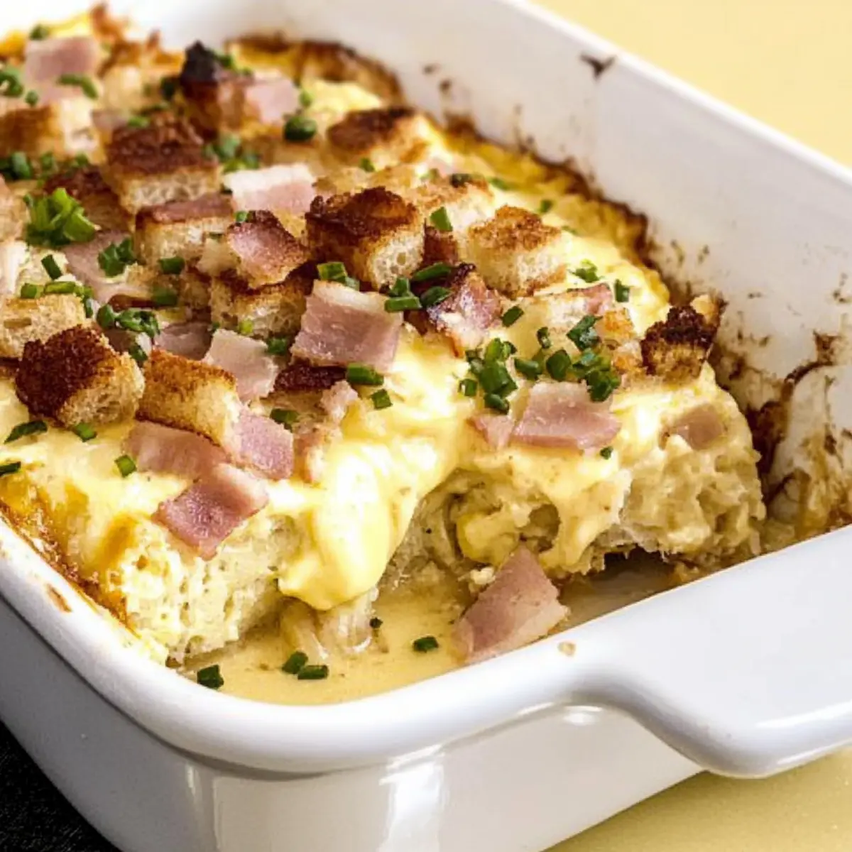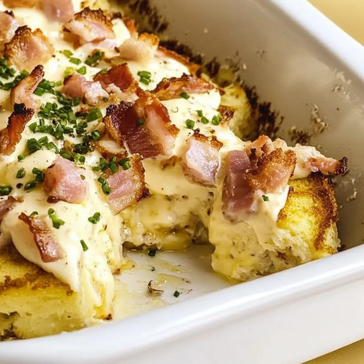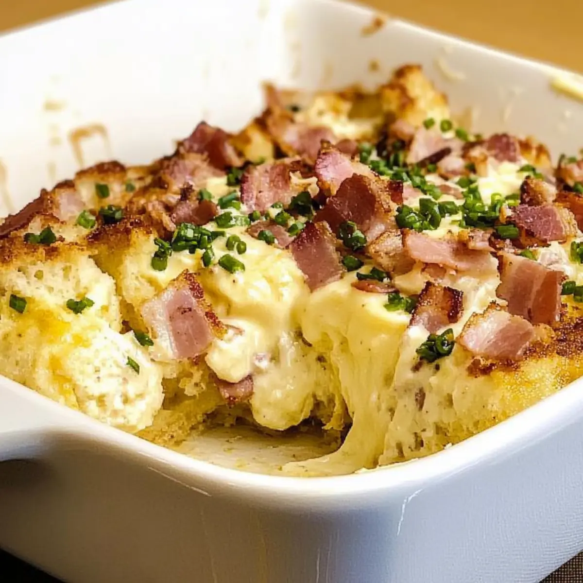 Early morning kitchen chaos is a familiar scene, but what if I told you there’s a way to transform breakfast into a stress-free delight? Introducing my Easy Joanna Gaines Eggs Benedict Casserole—a make-ahead dish that brings all the cozy, comfort food vibes right to your brunch table. This exceptional recipe combines creamy Hollandaise sauce, savory Canadian bacon, and fluffy English muffins into a dreamy casserole that you can prepare in advance. Not only does it allow you to enjoy gourmet flavors with minimal effort, but it also makes hosting a breeze. Whether it’s a lazy Sunday or a celebratory gathering, this crowd-pleaser will have your loved ones asking for seconds. Curious about how to take your breakfast game to the next level? Keep reading! Why is this casserole a game-changer? Simplicity at Its Best: This Easy Joanna Gaines Eggs Benedict Casserole requires minimal effort, making it perfect for busy mornings or brunch parties. Flavor Explosion: With creamy Hollandaise sauce and savory Canadian bacon, every bite is a delicious delight that will tantalize your taste buds. Make-Ahead Marvel: Prepare it the night before and simply bake it in the morning—ideal for welcoming guests without the kitchen chaos! Versatile Option: Want a vegetarian twist? Substitute sautéed mushrooms or add spinach for a fresh green touch. You can explore other delightful casseroles too, like Pizza Tot Casserole or Savory Turkey Casserole for more ideas. Crowd-Pleasing Comfort: This dish is not only rich in protein but also exudes coziness, making it a hit for family gatherings or casual brunches! Joanna Gaines Eggs Benedict Casserole Ingredients For the Casserole • Milk – Adds moisture to the dish; for a dairy-free version, use almond milk. • Eggs – Provide structure and richness; organic eggs yield better flavor. • Green Onions – Adds a mild onion flavor; substitute with chives if needed. • Onion Powder – Enhances flavor depth without texture; garlic powder is a suitable alternative. • Salt – Essential for enhancing flavors; sea salt is recommended for improved taste. • Canadian Bacon – Offers a savory meat component; swap with ham or smoked turkey for variety. • English Muffins – Forms the casserole’s base structure; whole-grain muffins make a healthier choice. • Paprika – Adds a hint of color and flavor; smoked paprika can elevate the taste further. • Hollandaise Sauce Mix – Quickly provides the classic sauce; for homemade, mix egg yolks, lemon juice, and butter. • Butter – Adds richness and flavor; olive oil can lighten it up as a substitute. Feel free to gather these ingredients and get ready to create a delightful make-ahead dish that’s sure to impress everyone at the brunch table! Step‑by‑Step Instructions for Joanna Gaines Eggs Benedict Casserole Step 1: Preheat the Oven Begin by preheating your oven to 350°F (175°C). This ensures that the Joanna Gaines Eggs Benedict Casserole will bake evenly, creating a delightful golden top. While the oven warms, gather your ingredients and get your 9×13-inch baking dish ready by greasing it generously with butter or cooking spray to prevent sticking. Step 2: Whisk the Egg Mixture In a large mixing bowl, whisk together 2 cups of milk, 8 eggs, ½ cup of chopped green onions, 1 teaspoon of onion powder, and 1 teaspoon of salt. Beat these ingredients until they are well combined and frothy, which should take about 2-3 minutes. This mixture will become the flavorful base of your casserole, so ensure it’s smooth and fully blended. Step 3: Combine Bread and Meat Next, fold in 1 cup of diced Canadian bacon and 4 cups of cubed English muffins into your egg mixture. Use a spatula to gently mix everything together, ensuring that the bacon and bread are evenly distributed. This step is crucial for achieving a balanced flavor in your Joanna Gaines Eggs Benedict Casserole; let the mixture sit for 10-15 minutes to allow the bread to absorb the flavors. Step 4: Transfer to Baking Dish Pour the egg and bread mixture into the greased baking dish, spreading it evenly with your spatula. Make sure all the ingredients are well distributed, so every bite of the casserole is equally delicious. This will be the hearty base of your breakfast, which you’ll soon transform into a glorious brunch dish. Step 5: Bake the Casserole Place the baking dish in the preheated oven and bake for 35-40 minutes. Keep an eye on it; the casserole is ready when the top is golden brown and the center is set but still slightly jiggly. You can gently insert a toothpick into the center to check for doneness; it should come out clean when it’s fully baked. Step 6: Prepare Hollandaise Sauce While the casserole is baking, prepare your Hollandaise sauce according to the package instructions, or whip up your homemade version using egg yolks, lemon juice, and melted butter. This creamy sauce is essential for drizzling over the assembled Joanna Gaines Eggs Benedict Casserole, adding richness and flavor to every bite. Step 7: Serve and Enjoy Once the casserole is done, remove it from the oven and let it cool for 5-10 minutes before slicing. This resting time helps the casserole hold its shape when served. Drizzle the prepared Hollandaise sauce generously over each serving, and garnish with a sprinkle of paprika for color. Enjoy your delicious creation, perfect for any brunch gathering! What to Serve with Joanna Gaines Eggs Benedict Casserole Building a delightful brunch around this casserole sets the stage for comfort and indulgence, featuring a variety of complementary flavors and textures. Fresh Fruit Salad: The sweetness of seasonal fruits offers a refreshing contrast, enhancing the richness of the casserole with a burst of natural flavor. Crispy Hash Browns: Golden, crispy hash browns provide the perfect crunchy side, balancing the soft, savory elements of the casserole. Light Green Salad: A simple salad with mixed greens and a citrus vinaigrette a