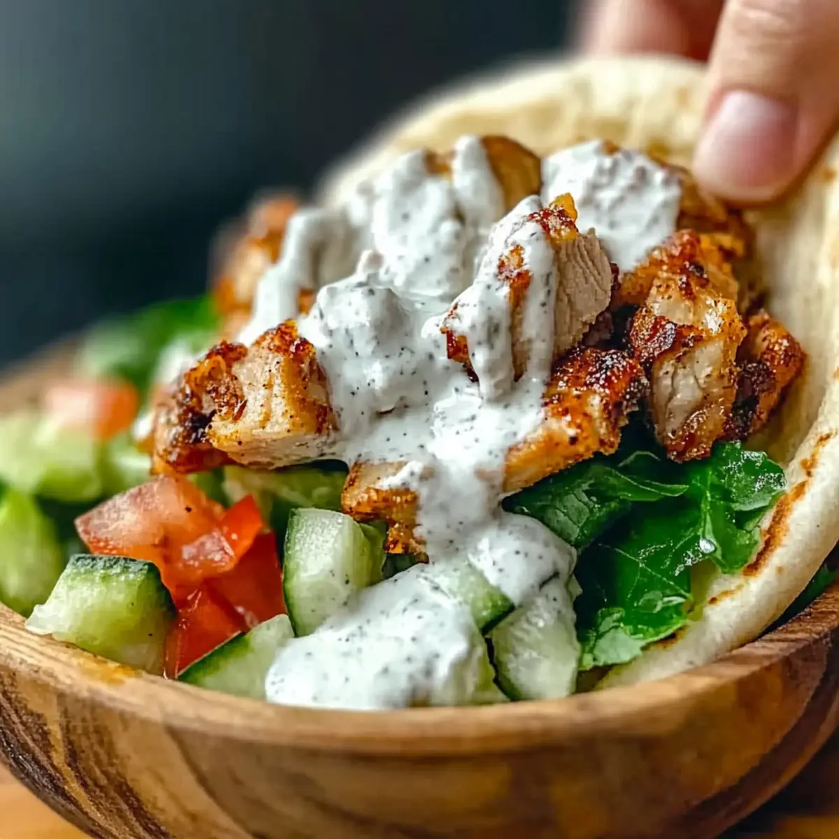 • Creamy Hummus: Serve this classic dip as a spread in your pita, enhancing the meal with a rich, nutty flavor that perfectly complements the garlic sauce.