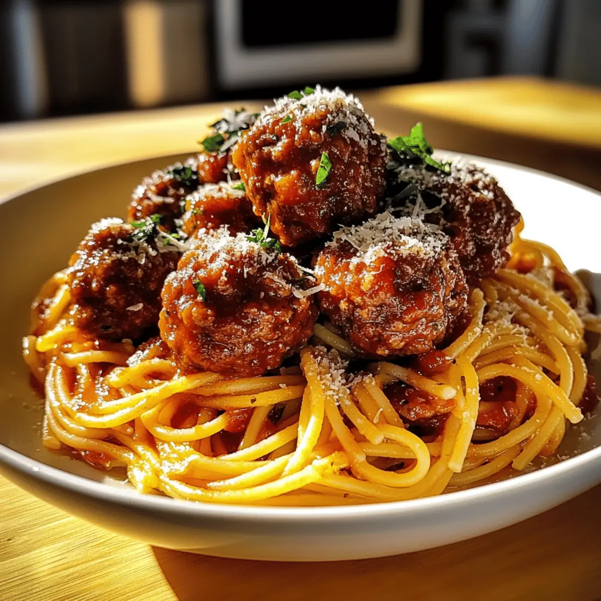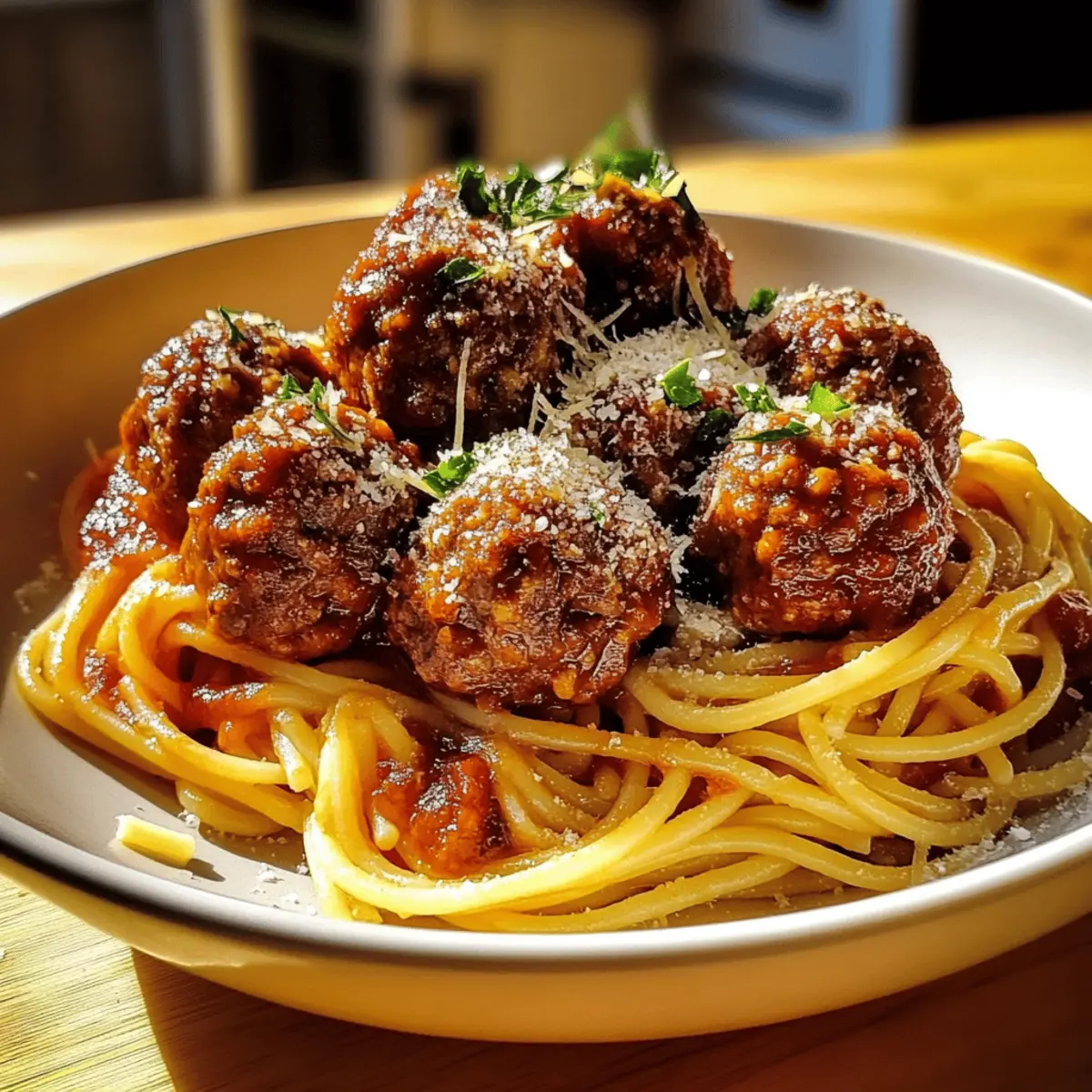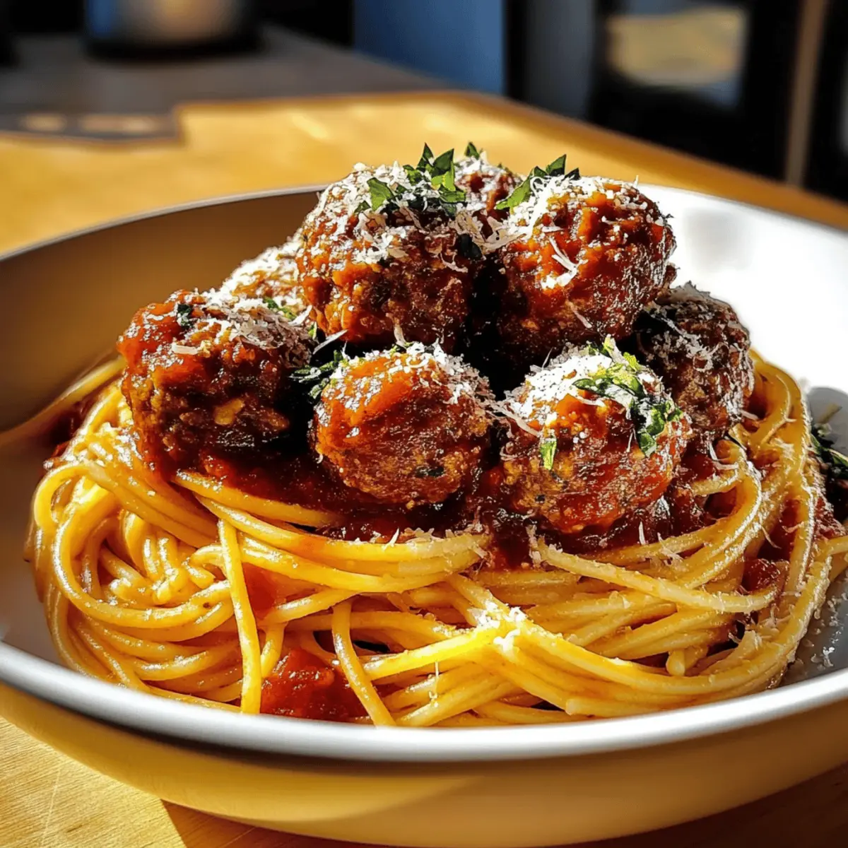 There’s something heartwarming about twirling a fork around a plate of Juicy Spaghetti and Meatballs, isn’t there? As the rich aroma of simmering tomato sauce fills the kitchen, I can almost hear the laughter of loved ones gathered for a cozy dinner—the perfect antidote to a busy week. This Italian classic not only satisfies with its comforting flavors but also offers versatility, allowing you to swap in turkey for a lighter touch or use gluten-free pasta for those with dietary needs. In just 45 minutes, you can create a meal that not only delights the taste buds but also fosters connections, making it an ideal weeknight dinner or a family gathering staple. Are you ready to make some delicious memories with your own plate of spaghetti and meatballs? Why is this Spaghetti and Meatballs Recipe a Must-Try? Comforting Nostalgia: This dish brings back memories of family dinners, making it a favorite for all ages. Endless Versatility: With options like turkey or gluten-free pasta, every preference is catered to, ensuring inclusivity for your dinner guests. Simple and Quick: Prepare this feast in under 45 minutes, making it perfect for busy weeknights. Crowd-Pleasing Flavor: Juicy meatballs in a rich tomato sauce topped with Parmesan create an explosion of deliciousness that everyone will love. Easy Storage: Leftovers keep well, allowing you to enjoy this comfort food multiple times. Whether served with a side salad or some warm garlic bread, this dish is sure to impress, just as a classic Caesar Croissant Sandwich would! Juicy Spaghetti and Meatballs Ingredients • Dive into this beloved classic with these essential ingredients! For the Meatballs Ground Beef – Provides the main protein; flavorful and satisfying. Substitution: Ground turkey for a lighter option; add 1 tbsp olive oil to maintain juiciness. Breadcrumbs – Help bind the meatballs and add texture. Substitution: Use gluten-free breadcrumbs for a gluten-free option. Parmesan Cheese – Adds richness and depth of flavor. Note: Measure lightly packed to avoid excess. Egg – Acts as a binder for meatballs; keeps moisture in. Garlic – Enhances flavor profile. Substitution: Use garlic powder if fresh garlic is unavailable. Salt & Pepper – Basic seasonings to enhance all flavors. For Cooking Olive Oil – Used for browning meatballs, contributes flavor. Tomato Sauce – Base for the meatball sauce contributing sweetness and acidity. Note: Use quality tomato sauce for best results. Oregano & Basil – Provide herbaceous notes to the sauce. For Serving Spaghetti – Main carbohydrate base to serve with meatballs. Substitution: Gluten-free pasta can be used; adjust cooking time accordingly. Step‑by‑Step Instructions for Juicy Spaghetti and Meatballs Step 1: Boil the Spaghetti Begin by bringing a large pot of water (5 quarts) to a rolling boil over high heat. Once boiling, generously salt the water until it resembles the sea. Add the spaghetti and cook for 8-9 minutes until al dente, stirring occasionally to prevent sticking. Reserve ½ cup of the starchy pasta water before draining the spaghetti and set it aside while you prepare the meatballs. Step 2: Prepare the Meatball Mixture In a mixing bowl, combine the ground beef, breadcrumbs, grated Parmesan cheese, egg, minced garlic, salt, and pepper. Mix the ingredients gently with your hands until just combined—be careful not to overwork the meat. Shape the mixture into 1-inch meatballs, rolling them lightly for a uniform texture. This step is key to creating juicy meatballs for your spaghetti and meatballs. Step 3: Brown the Meatballs Heat a large skillet over medium heat and add a splash of olive oil to coat the bottom. Once the oil shimmers, carefully place the meatballs in the skillet in a single layer, leaving space between them. Brown the meatballs for about 2-3 minutes on each side until they are golden and crispy. Work in batches if necessary to avoid overcrowding, which ensures they brown evenly. Step 4: Create the Sauce After the meatballs have browned, reduce the heat and carefully pour in the tomato sauce, followed by the dried oregano and basil. Stir well to combine the flavors while incorporating any browned bits from the skillet. Return the meatballs to the skillet, allowing them to nestle into the sauce. Simmer covered on low heat for 15 minutes, letting the flavors meld into a rich, hearty sauce. Step 5: Adjust the Sauce Consistency After 15 minutes, check the sauce consistency; if it appears too thick, gradually add reserved pasta water to achieve your desired thickness. Stir the meatballs gently to coat them in the sauce. This step enhances the overall flavor of your Juicy Spaghetti and Meatballs and ensures a perfect texture that clings to the pasta beautifully. Step 6: Serve Your Dish To serve, plate the cooked spaghetti and generously top it with the succulent meatballs and tomato sauce. Sprinkle extra Parmesan cheese on top for a delicious finish and add fresh basil for a pop of color. Enjoy this comforting dish that captures the essence of family gatherings and the joy of homemade cooking. Expert Tips for Juicy Spaghetti and Meatballs Hand-Mixed Perfection: Ensure to mix the meatball ingredients gently with your hands. Overmixing can lead to dense meatballs—nobody wants that in their Juicy Spaghetti and Meatballs! Breadcrumb Balance: Be cautious not to let your breadcrumbs soak too long. If they’re too soggy, the meatballs may fall apart while cooking, affecting their overall texture. Optimal Browning: When browning the meatballs, remember not to overcrowd the pan. This will ensure they develop a beautiful crust and cook evenly. Sauce Consistency: If your sauce is too thick at the end, gradually add in the reserved pasta water until you reach a smooth, clinging consistency that beautifully coats the spaghetti. Leftover Love: To reheat leftovers, opt for the stovetop with a splash of water or broth. This keeps the meatballs juicy and the sauce from