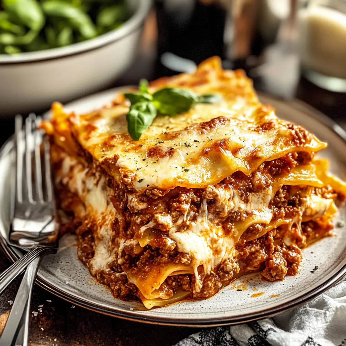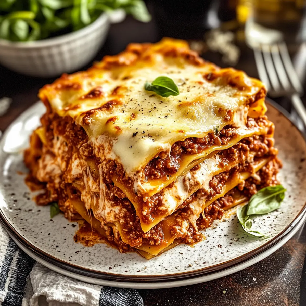 As I stood in my kitchen, the rich aroma of slow-simmering Bolognese sauce wrapped around me like a warm hug. There’s something so comforting and satisfying about crafting a classic Lasagna Bolognese—layering egg lasagna noodles with that deep, flavorful meat sauce and a dreamy béchamel. This recipe is not just about food; it’s about creating a labor of love that transforms a simple gathering into a joyful celebration. It’s perfect for those special occasions or cozy family dinners, striking a perfect balance between indulgence and comfort. Plus, it’s surprisingly rewarding to have this gourmet dish come out of your own oven! So, are you ready to elevate your dinner game? Let’s dive into making this classic Italian masterpiece together! Why will you crave this lasagna? Rich, Layered Delight: Each bite of this Lasagna Bolognese is a harmonious blend of flavors, thanks to the slow-cooked Bolognese and creamy béchamel. No-Fuss Assembly: With simple steps and readily available ingredients, this recipe takes the stress out of meal prep, perfect for weeknight indulgence or festive gatherings. Crowd-Pleasing Comfort: This dish is a guaranteed hit at any dinner table, making it ideal for family and friends alike. Versatile Variations: Feel free to experiment by adding favorite vegetables or cheeses, allowing this classic to adapt to your tastes! For a twist, check out my Mexican Lasagna Twist. Time-Rewarded Flavors: Although it takes time to cook, the result is unbeatable satisfaction, making your labor of love truly worth it. Don’t miss out on this classic Italian experience! Lasagna Bolognese Ingredients Get ready to create a comforting classic! For the Bolognese Sauce Bolognese Sauce (6-7 cups) – The main flavor and protein base; can refrigerate or freeze leftovers for later enjoyment. Olive Oil (1 tablespoon) – Used for crisping pancetta; substitute with vegetable oil if needed. Pancetta (6 oz, diced small) – Adds depth of flavor; you can replace it with bacon if unavailable. Ground Sirloin (1 lb, 90/10) – Provides protein and texture; opt for ground turkey for a leaner option. Ground Italian Sausage (1 lb) – Introduces spices and fat to the sauce; can substitute with ground beef or turkey for a different taste profile. Yellow Onion (1, roughly chopped) – Enhances the base flavor of the sauce. Carrots (2, peeled and chopped) – Adds sweetness; consider using sweet potatoes as a substitute. Celery Ribs (2, chopped) – Contributes depth; can omit if you don’t have it on hand. Garlic (4 cloves, minced) – A key aromatic flavor; garlic powder is a good backup in a pinch. Tomato Paste (6 oz) – Intensifies the tomato flavor; no direct substitute needed, but crushed tomatoes can work if necessary. Canned Crushed Tomatoes (28 oz, high-quality brand) – Provides primary acidity and texture, an essential for Bolognese. Medium-Bodied Red Wine (1 1/2 cups) – Adds a rich flavor; for a non-alcoholic option, substitute with beef broth. Bay Leaves (2) – Infuses flavor; don’t forget to remove before serving! Parmesan Rind (1) – Adds umami; can be skipped if you don’t have it. Kosher Salt and Freshly Cracked Pepper – Essential for seasoning. For the Béchamel Sauce Unsalted Butter (5 tablespoons) – Provides flavor and body; margarine can be used as a substitute. All-Purpose Flour (1/4 cup) – Thickening agent for the béchamel; replace with gluten-free flour for a gluten-free variation. Whole Milk (4 cups, warmed) – Adds moisture and richness; nut milk is a suitable alternative. Freshly Grated Nutmeg (1/8 tsp) – An aromatic flavor enhancer; omitting it is fine for a nut-free option. Freshly Grated Parmesan (2 1/2 cups, divided) – Adds richness; use Pecorino Romano for a sharper taste. For the Noodles and Assembly Egg Lasagna Noodles (20 sheets) – Provides structure; fresh noodles are preferred, but adjust cooking time if using dried. Fresh Mozzarella (16 oz, diced) – Adds gooey texture and moisture; essential for a perfect lasagna. Butter (1 tablespoon) – Used for cooking the pancetta to enhance flavor. Now that you’re armed with all the ingredients, let’s bring this luscious Lasagna Bolognese to life! Step‑by‑Step Instructions for Lasagna Bolognese Step 1: Prepare Bolognese Sauce Start by heating 1 tablespoon of olive oil and 1 tablespoon of butter in a large pot over medium heat. Add 6 oz of diced pancetta, cooking until it’s crispy and browned. Then, finely mince 1 onion, 2 carrots, 2 celery ribs, and 4 garlic cloves using a food processor, and incorporate them into the pot. Sauté for 5 minutes until they soften, then add 1 lb of ground sirloin and 1 lb of ground Italian sausage, cooking on low until thoroughly cooked, about 10-12 minutes, without browning. Step 2: Build Flavor in the Sauce Once the meats are cooked, stir in 6 oz of tomato paste and let it cook for about 2-3 minutes until darkened. Next, pour in 1.5 cups of medium-bodied red wine to deglaze the pot, scraping any bits stuck to the bottom. Add 28 oz of canned crushed tomatoes, 1 cup of whole milk, 2 bay leaves, and the parmesan rind if using. Bring the sauce to a simmer, then cover and cook on low for 2.5 to 3 hours until thickened, stirring occasionally. Step 3: Boil Noodles While the Bolognese sauce is simmering, bring a large pot of salted water to a boil over high heat. Carefully add 20 sheets of lasagna noodles, cooking them until al dente according to package instructions, usually about 8-10 minutes. Once done, drain the noodles and drizzle with a little olive oil to prevent sticking, then set them aside to cool. Step 4: Prepare Béchamel In another saucepan, melt 5 tablespoons of unsalted butter over medium heat. Whisk in 1/4 cup of all-purpose flour and cook for about 2 minutes, stirring constantly to eliminate the raw flour taste. Gradually add 4 cups of warmed whole milk, whisking until the mixture thickens and bubbles, which should take around 10 minutes. Re