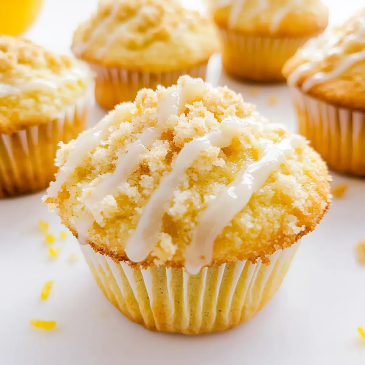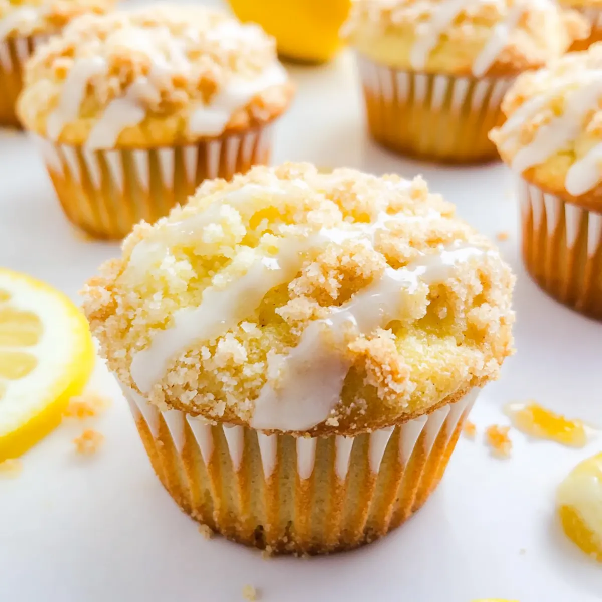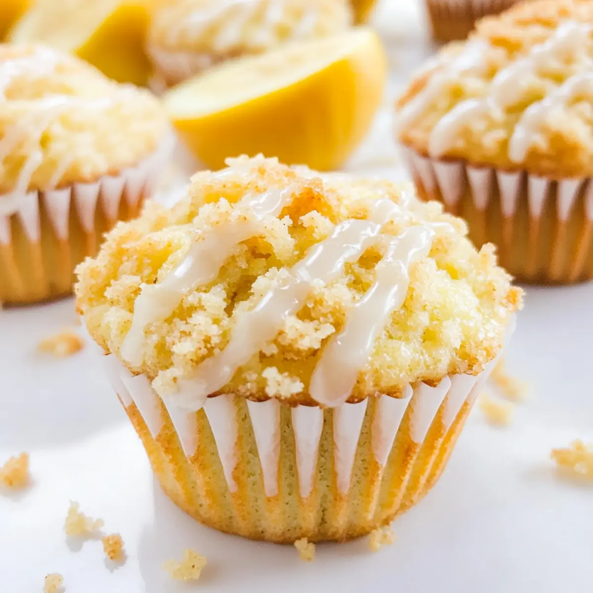 As I stood in my kitchen, the scent of fresh lemons enveloped me, sparking joy and nostalgia for sun-filled mornings. These supremely moist Lemon Crumb Muffins are my go-to recipe for brightening any day and are perfect for those cozy brunches or festive gatherings. With their wonderful crumb topping and sweet lemon glaze, they’re not just any ordinary muffin; they bring a bit of springtime sunshine right to your table. Plus, they’re easy to whip up, making them a fantastic choice for home chefs of all levels. Whether you’re celebrating Easter or simply looking for a delicious homemade treat, these muffins will leave everyone coming back for seconds. Wouldn’t you love to tantalize your taste buds with a slice of sunshine? Why Are Lemon Crumb Muffins So Irresistible? Bright, Tangy Flavor: The explosion of fresh lemon zest and juice in every bite brings a refreshing twist that energizes your mornings. Texture Wonderland: You’ll adore the contrast of the light muffin base paired with a crunchy crumb topping that’s simply delightful. Easy to Make: With straightforward steps, these muffins can be mastered by anyone, making them perfect for both seasoned chefs and beginners alike. Perfect for Any Occasion: Whether you’re hosting brunch or enjoying a quiet morning, they elevate any setting, just like my Lemon Pepper Smashed Potato Salad does for savory lovers. Make Ahead Delight: You can whip up a batch in advance and freeze them for a quick treat whenever cravings strike, just like with my Mixed Berry Crumble. Family Favorite: These muffins are bound to become a staple in your household, captivating hearts and taste buds alike! Lemon Crumb Muffin Ingredients For the Muffins • Granulated Sugar – Provides sweetness for the muffins, ensuring a delightful flavor from the very first bite. • All-Purpose Flour – Key structural ingredient for a tender muffin base; gluten-free flour is a great alternative if needed. • Unsalted Butter – Adds richness and moisture; you can opt for coconut oil or vegan butter as a dairy-free substitute. • Baking Powder – Essential for leavening the muffins; always check its expiration date for best results. • Salt – Enhances the flavors; there are no substitutes necessary for this key ingredient. • Lemon Zest – Infuses the muffins with an intense lemon flavor; feel free to use Meyer lemon zest for a milder taste. • Pure Vanilla Extract – Adds depth and richness to the flavor profile; vanilla paste or imitation can work in a pinch. • Lemon Extract – For that concentrated lemon flavor; if you’re out, just add an extra tablespoon of lemon zest. • Egg – Binds the ingredients and adds structure; for a vegan option, substitute with a flax egg or applesauce. • Whole Milk – Provides moisture and is crucial for the batter; non-dairy milk such as almond milk can be used as a replacement. • Fresh Lemon Juice – Adds tartness that’s essential for flavor; while bottled juice works, nothing beats freshly squeezed! For the Crumb Topping • Granulated Sugar – Sweetens the crumb topping, bringing balance to the tartness of the muffins. • All-Purpose Flour – Provides structure and crunch, just like in the muffin base; again, use gluten-free flour as needed. • Cold Unsalted Butter – Keeps the topping crumbly and adds a rich flavor; chill it before mixing for the best texture. For the Glaze • Confectioners’ Sugar – Ensures a smooth, sweet glaze that beautifully coats the muffins; a powdered sugar alternative works if needed. • Lemon Extract – Enhances the glaze’s flavor for a delightful citrus kick; adjust to your personal taste. • Whole Milk – Adjusts the consistency of the glaze to your liking; substitutes can include any non-dairy milk. These Lemon Crumb Muffins are not just a breakfast treat; they are a burst of sunshine that can brighten any occasion! Step‑by‑Step Instructions for Lemon Crumb Muffins Step 1: Prepare Crumb Topping In a medium bowl, combine granulated sugar, flour, and cold unsalted butter. Use a pastry cutter or your fingers to mix until the mixture forms a crumbly texture, resembling small peas. Once combined, refrigerate the crumb topping while you prepare the muffin batter to maintain its chunky consistency. Step 2: Preheat Oven Preheat your oven to 400°F (200°C) to ensure a perfect baking environment for your Lemon Crumb Muffins. While the oven heats, line a muffin tin with paper liners or grease it lightly to prevent sticking. This preparation step is crucial for easy muffin removal and a lovely presentation. Step 3: Mix Dry Ingredients In a large mixing bowl, sift together the all-purpose flour, baking powder, and salt. This process aerates the flour, making it easier for the muffins to rise beautifully. Set aside your dry mixture, as you will soon combine it with the wet ingredients to create a fluffy batter. Step 4: Cream Butter and Sugar In another bowl, cream together the softened unsalted butter and granulated sugar using an electric mixer. Beat for about 3 minutes until the mixture is light and fluffy. Add in the lemon zest, pure vanilla extract, and lemon extract, blending well to incorporate these flavorful ingredients into your base. Step 5: Add Eggs Once your butter-sugar mixture is fluffy, add the whole egg and yolks. Mix thoroughly until the eggs are well incorporated and the batter appears smooth. The eggs will help add moisture and structure to your Lemon Crumb Muffins, ensuring a tender crumb. Step 6: Combine Ingredients Slowly add the dry ingredients to the wet mixture, alternating with the whole milk. Begin and end with the dry ingredients, mixing gently with a spatula until just combined. Finally, fold in the fresh lemon juice until fully integrated, being careful not to overmix, as this can lead to dense muffins. Step 7: Fill Muffin Tins Spoon the muffin batter evenly into the prepared liners, filling each about two-thirds full. Generously sprinkle appro