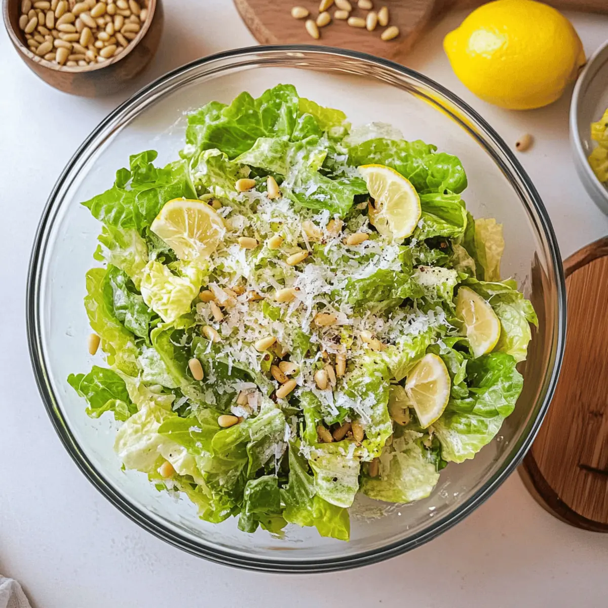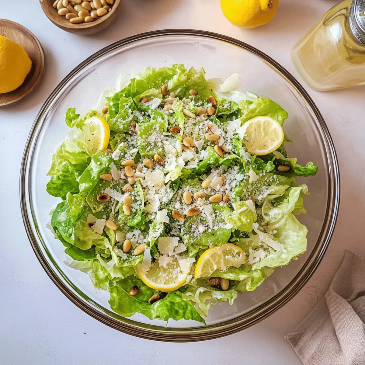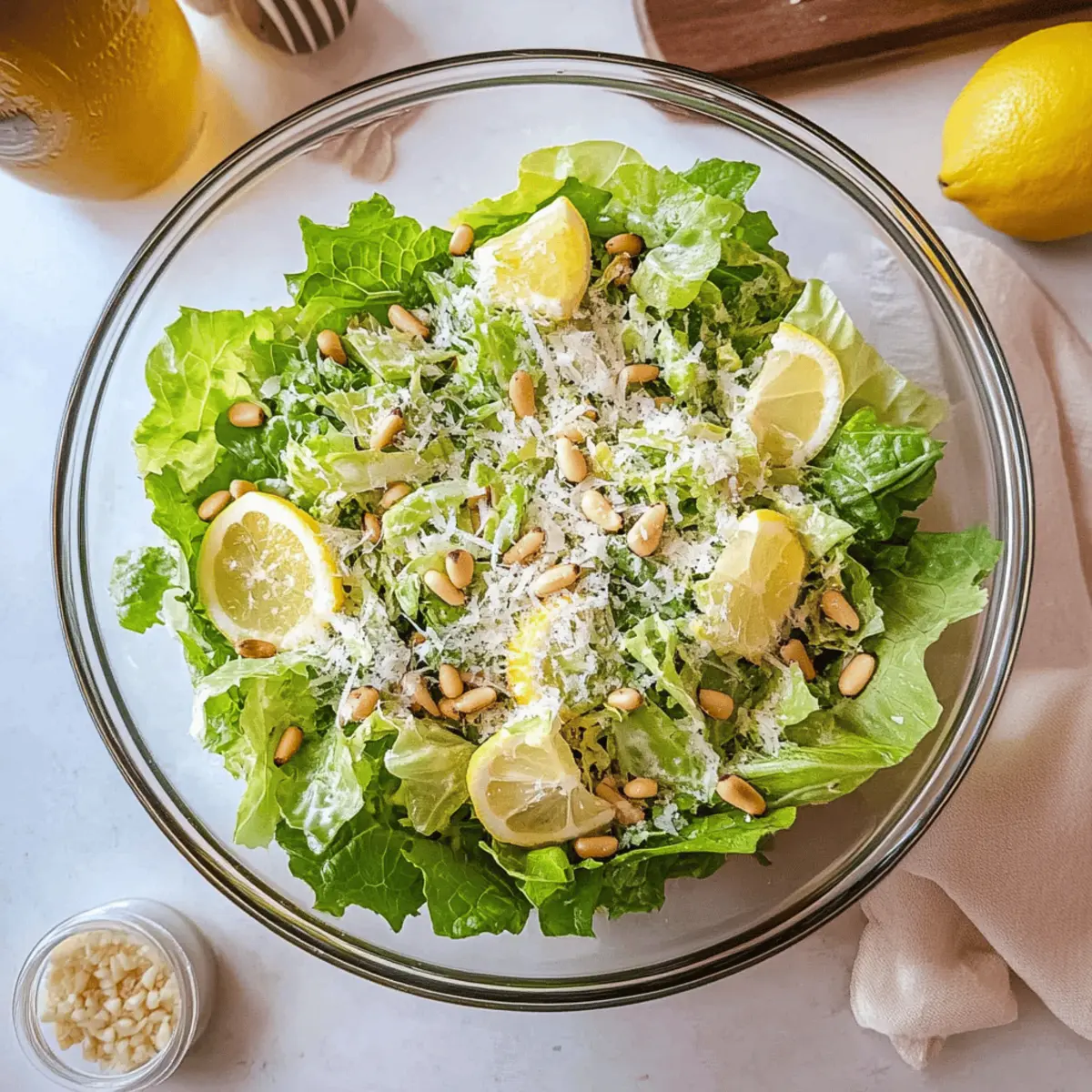 While sitting in the sun with a crisp breeze, I couldn’t help but think about how a simple salad could elevate my day. Enter the Lemon Parmesan Salad—a bright and cheerful dish that effortlessly brings together fresh romaine, rich Parmesan, and the delightful crunch of toasted pine nuts. This quick and easy recipe fits perfectly into my busy schedule, allowing me to whip up a refreshing side in just 15 minutes. Not only is it gluten-free and low-calorie, but it also serves as a versatile companion for any meal—from Italian feasts to summertime barbecues. Imagine impressing your guests with such a colorful dish that takes barely any time to make! Curious how to bring this vibrant salad to life? Let’s dive into the details! Why is Lemon Parmesan Salad a Must-Try? Quick Preparation: This salad comes together in just 15 minutes, making it perfect for a busy weeknight or a last-minute gathering. Fresh Ingredients: The vibrant romaine, zesty lemon, and creamy Parmesan deliver a delightful combination of flavors. Versatile Side Dish: Pair it with grilled chicken or fish, or serve it alongside your favorite Mediterranean dishes. Health-Conscious Choice: Gluten-free, low-calorie, and low-carb, you can enjoy it guilt-free! Crowd-Pleasing Appeal: Impress your friends and family with this eye-catching salad that’s bursting with flavor. Looking for more light dishes? Check out this refreshing Mediterranean Chickpea Salad! Lemon Parmesan Salad Ingredients • Fresh ingredients are the key to this vibrant dish! Romaine Lettuce – Provides crunch and freshness; use 6 cups from 1 head or 2 hearts. Parmesan Cheese – Adds a rich, salty flavor; use ½ cup finely shredded for a delightful taste. Pine Nuts – Introduce a buttery texture and nutty flavor; optional but recommended; use 2-3 tablespoons. Extra-Virgin Olive Oil – Serves as the dressing base, contributing richness; use 3 tablespoons. White Wine Vinegar – Adds the acidity needed to brighten up the dressing; use 1 tablespoon for balance. Lemon – Brings freshness and tang; zest and juice 1 lemon for that zesty kick (Meyer lemons preferred). Sugar – Balances the acidity in the vinaigrette; use ½ teaspoon, or adjust based on your taste preference. Dijon Mustard – Provides depth of flavor and helps emulsify the dressing; use ½ teaspoon for best results. Salt & Black Pepper – Essential for seasoning; use ¼ teaspoon salt and freshly ground pepper to taste. Transform your dining experience with this delightful Lemon Parmesan Salad! Step‑by‑Step Instructions for Lemon Parmesan Salad Step 1: Prepare the Lemon Vinaigrette In a mason jar, combine 3 tablespoons of extra-virgin olive oil, 1 tablespoon of white wine vinegar, the zest and juice of 1 Meyer lemon, ½ teaspoon of sugar, and ½ teaspoon of Dijon mustard. Seal the jar tightly and shake vigorously for about 30 seconds until the mixture is well emulsified and smooth. This zesty dressing will bring the Lemon Parmesan Salad to life, so set it aside for now. Step 2: Toast the Pine Nuts Place a small skillet over low heat and add 2-3 tablespoons of pine nuts. Stir constantly for about 1-2 minutes, or until they become fragrant and lightly golden, being careful not to burn them. Once toasted, transfer the nuts to a plate to cool down; this step adds a lovely buttery crunch to your Lemon Parmesan Salad. Step 3: Assemble the Salad In a large serving bowl, add roughly 6 cups of chopped romaine lettuce. Pour approximately ¾ of the lemon vinaigrette over the romaine and gently toss the salad using salad tongs or your hands, ensuring the leaves are evenly coated with the dressing. This vibrant mixture serves as the foundation for your flavorful Lemon Parmesan Salad. Step 4: Season the Salad Sprinkle about ¼ teaspoon of salt and freshly ground black pepper over the salad, adjusting to your taste preference. Gently fold in ½ cup of finely shredded Parmesan cheese, reserving a small amount for garnishing later. The cheese will melt slightly into the warm romaine and create delightful salty bites throughout the salad. Step 5: Serve the Salad Plate the Lemon Parmesan Salad, drizzling additional dressing on top if desired. Sprinkle the cooled, toasted pine nuts and reserved Parmesan cheese over the salad as a finishing touch. Serve immediately to maintain the crispness of the romaine and enjoy this refreshing side dish that elevates any meal! Expert Tips for Lemon Parmesan Salad Freshness Matters: Always use fresh romaine lettuce and high-quality Parmesan cheese; this enhances the overall flavor of the Lemon Parmesan Salad. Toast Carefully: When toasting pine nuts, keep the heat low and stir constantly to prevent burning; burnt nuts will ruin your salad’s flavor. Vinaigrette Balance: Taste the dressing before adding to the salad; adjust the sweetness and acidity by modifying the sugar or lemon juice based on your preference. Serve Immediately: For the best texture, assemble the salad just before serving to keep the romaine crisp and vibrant. Customize Easily: Don’t hesitate to swap out nuts or add fresh herbs to personalize your Lemon Parmesan Salad further! What to Serve with Lemon Parmesan Salad This vibrant salad not only uplifts your meal but also opens up a world of delightful pairings to create a full dining experience. Grilled Chicken: Juicy, tender chicken enhances the salad’s fresh flavors, making it a complete protein-packed meal. Shrimp Skewers: The lightness of grilled shrimp complements the crisp greens beautifully, resulting in a seafood delight. Mediterranean Quinoa: This dish adds a nutty, wholesome element with generous herbs, amplifying the fresh lemon notes. Roasted Vegetables: Caramelized veggies like bell peppers and zucchini provide a warm, savory contrast to the crisp salad. Garlic Bread: Crunchy, buttery slices enhance the dining experience, perfect for sopping up any leftover dressing. White Wine Spritzer: A refreshing drink made with lemon and sparkling w