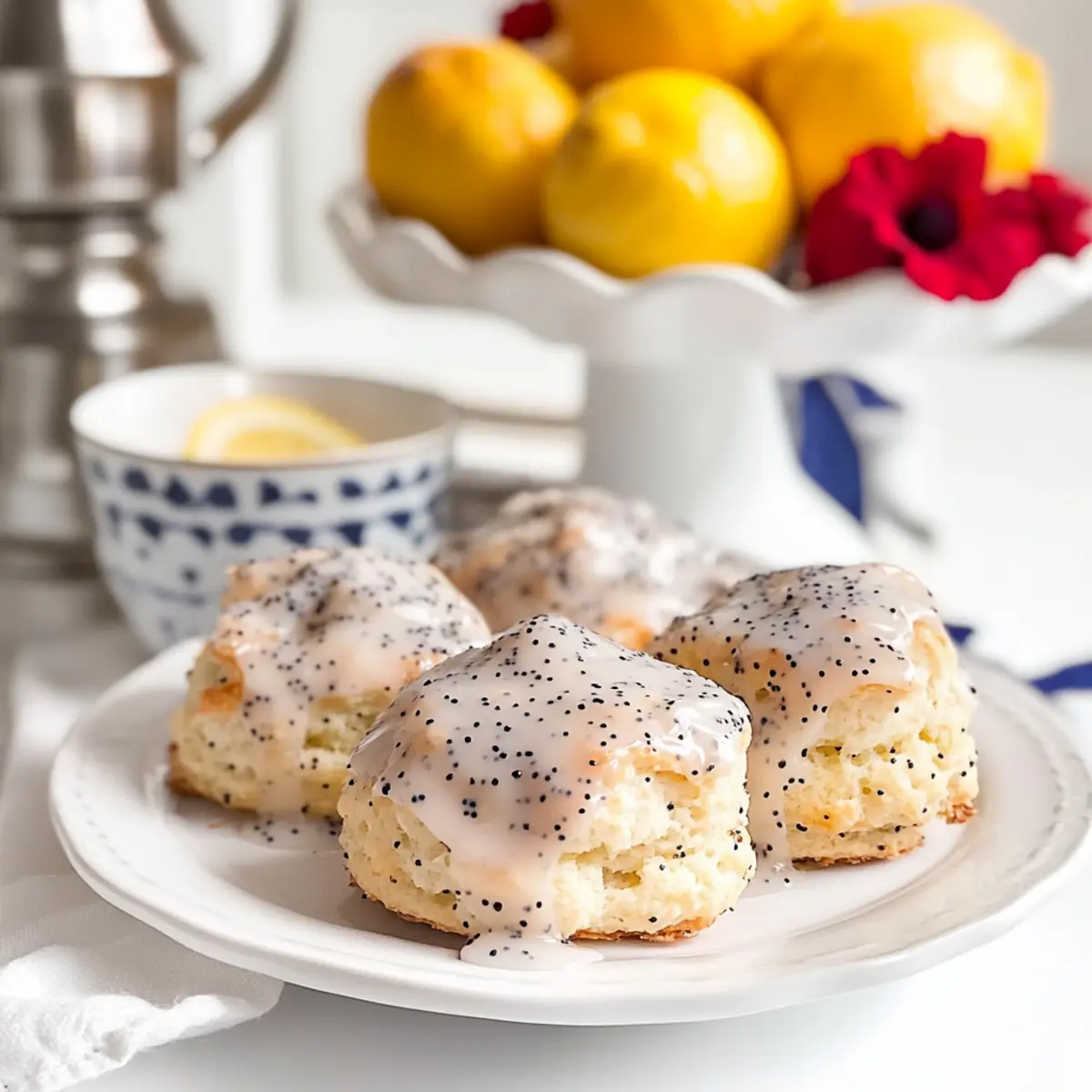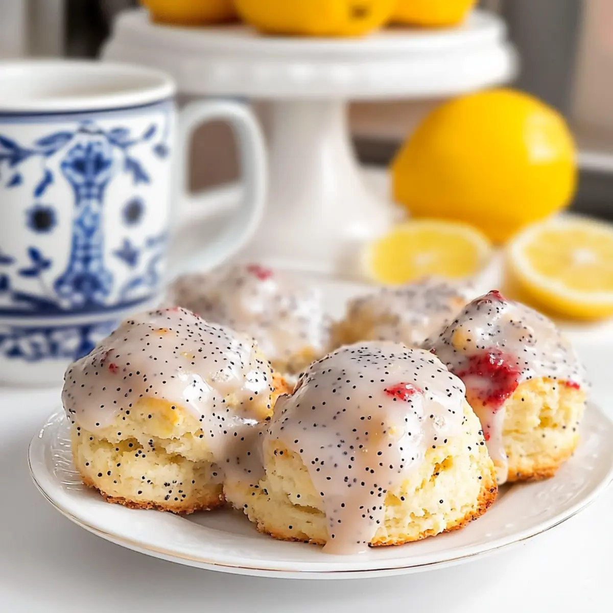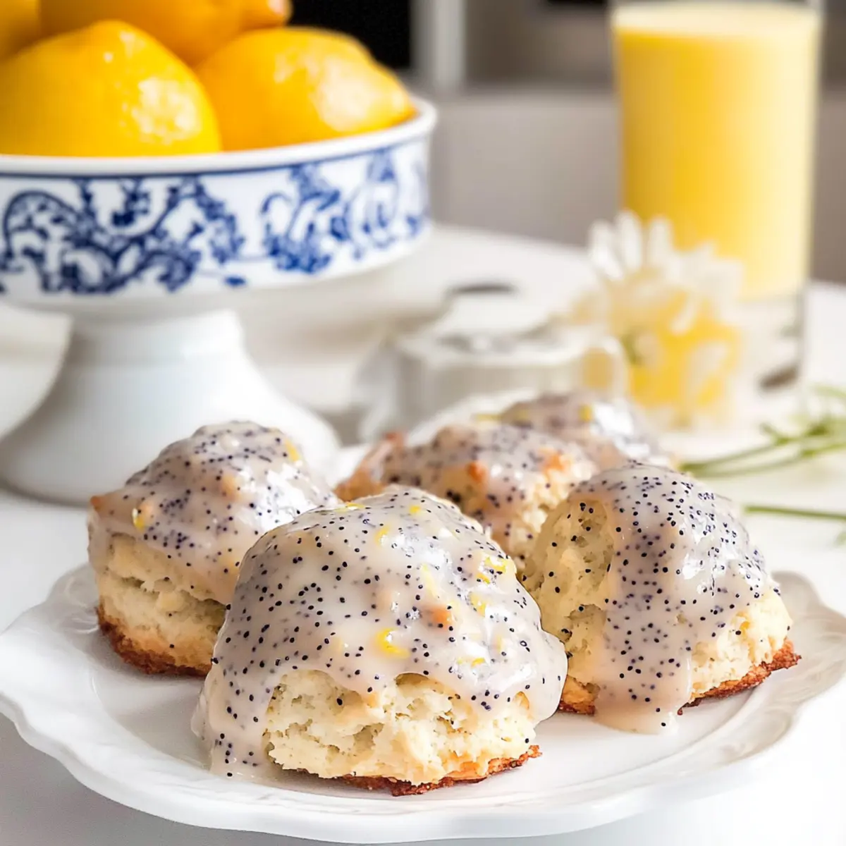 The scent of zesty lemon and nutty poppy seeds wafts through the kitchen, and suddenly, the mundane becomes magical. Today, I’m excited to share my ridiculously easy Lemon Poppy Seed Scones—a recipe that shatters the myth that scones are anything but approachable. With a few simple ingredients and innovative techniques, you’ll discover how effortlessly you can whip up these moist, tender bites that are perfect for breakfast or brunch. Not only do these scones impress with their delightful flavor, but they also allow you to shine as a kitchen rockstar without breaking a sweat. So, why settle for ordinary when you can elevate your mornings with this delightful treat? What’s your favorite way to enjoy scones—plain or drizzled with glaze? Why Are These Scones So Irresistible? Moist and Tender: These scones are not your average dry pastries; they’re a delightfully fluffy treat that melts in your mouth. Quick and Simple: You won’t need to spend hours in the kitchen—whipping these up is a breeze, perfect for busy mornings. Versatile Treat: Enjoy them warm, elegantly drizzled with a lemon glaze, or even switch things up with chocolate chips or dried fruits! Impressive Flavor: The blend of zesty lemon and subtle poppy seeds creates a unique flavor profile that will impress anyone. For a refreshing twist, check out my take on Lemon Pepper Smashed potatoes for a complete brunch experience! Lemon Poppy Seed Scones Ingredients For the Scone Dough Heavy Cream – Adds moisture and richness; can substitute with half-and-half for a lighter option. Butter – Provides flavor and flakiness; use salted for added taste, or unsalted with a pinch of salt. All-Purpose Flour – The main structure of the scone; ensure it’s well-sifted for best results. Sugar – Sweetens the scones; adjust according to your taste preferences. Corn Starch – Helps create a softer crumb; no direct substitution recommended. Poppy Seeds – Adds texture and flavor; optional if you prefer a different twist. Baking Powder & Baking Soda – Essential leavening agents for rise and fluffiness. Salt – Enhances flavor and is necessary for proper chemistry in baking. Lemon Zest – Brings a fresh citrus note; can substitute with orange or lime zest for variation. For the Glaze Powdered Sugar – Adds sweetness and texture to the glaze; adjust consistency with milk or sugar as needed. Milk or Half-and-Half – Used for glazing, contributing to the desired smooth texture. These delightful Lemon Poppy Seed Scones are bound to become your new favorite morning treat! Step‑by‑Step Instructions for Lemon Poppy Seed Scones Step 1: Preheat and Prepare Begin by preheating your oven to 400°F (200°C). While the oven is warming up, line a baking sheet with parchment paper to ensure your Lemon Poppy Seed Scones won’t stick during baking. This step will create an easy cleanup and help the scones achieve a lovely, golden-brown finish. Step 2: Chill the Cream Pour 1 cup of heavy cream into a bowl and place it in the freezer for about 10 minutes. Chilling the cream helps to create a rich and tender scone texture. Keep an eye on it—just long enough to cool but not freeze. This step is crucial for achieving the perfect moist crumb in your scones. Step 3: Melt the Butter Next, melt a stick of butter in the microwave until fully liquid, which should take about 30-40 seconds. Once melted, allow it to cool slightly. This melted butter will enrich your dough, adding delicious flavor to the Lemon Poppy Seed Scones, while creating a flaky texture that everyone will love. Step 4: Mix Dry Ingredients In a large mixing bowl, whisk together 2 cups of all-purpose flour, 1/3 cup of sugar, 2 tablespoons of cornstarch, 2 tablespoons of poppy seeds, 1 tablespoon of baking powder, 1/2 teaspoon of baking soda, 1/2 teaspoon of salt, and the zest of 1 lemon. Make sure to sift the flour before measuring to avoid any lumps. This mixture creates the dry base that will transform into your delightful scones. Step 5: Combine Wet Ingredients Once the cream is chilled, combine it with the melted butter in another bowl. Stir gently until small clumps begin to form; this will ensure an even distribution of moisture throughout your dough. Watch for the creamy texture of the mixture, as this is key to achieving tender Lemon Poppy Seed Scones. Step 6: Mix Wet and Dry Now, add the cream and butter mixture to the bowl of dry ingredients. Using a rubber spatula, gently fold everything together until just combined. Be cautious not to over-mix; you want to maintain the light and fluffy texture. The dough should be slightly sticky yet cohesive, and perfect for scooping. Step 7: Portion the Dough Utilize a cookie scoop or spoon to portion out the dough onto your prepared baking sheet, spacing each mound about 2 inches apart. This spacing allows for even baking and room for rising. You should see a rustic shape to the scones, which will bake into delightful, golden treats. Step 8: Chill Before Baking To help define their shape and prevent spreading, place the unbaked scones in the refrigerator for at least 15 minutes. This extra chilling time is important for ensuring your scones rise beautifully, giving them that perfect bakery-style appearance and texture. Step 9: Bake the Scones Bake your chilled Lemon Poppy Seed Scones in the preheated oven for 12 to 20 minutes, or until they turn golden brown on top. Keep an eye on them in the last few minutes; you want them to be puffed and lightly golden. The aroma of lemon and poppy seeds filling your kitchen will be heavenly! Step 10: Cool and Glaze Once baked, transfer the scones to a wire rack to cool slightly. After about 5 minutes, drizzle them with a lemon glaze made of powdered sugar and a splash of milk or half-and-half. This glaze adds a sweet, tangy finish that perfectly complements the scones’ flavors. Enjoy your freshly made Lemon Poppy Seed Scones! How to Store and Freeze Lemon Poppy Seed Scones Room Temperature: