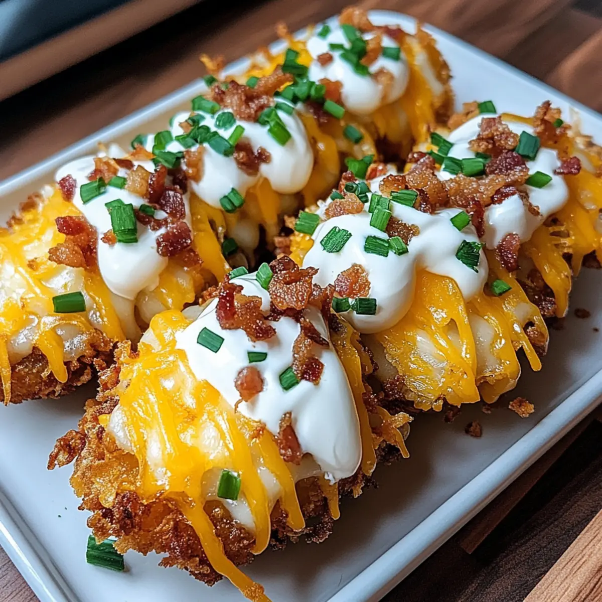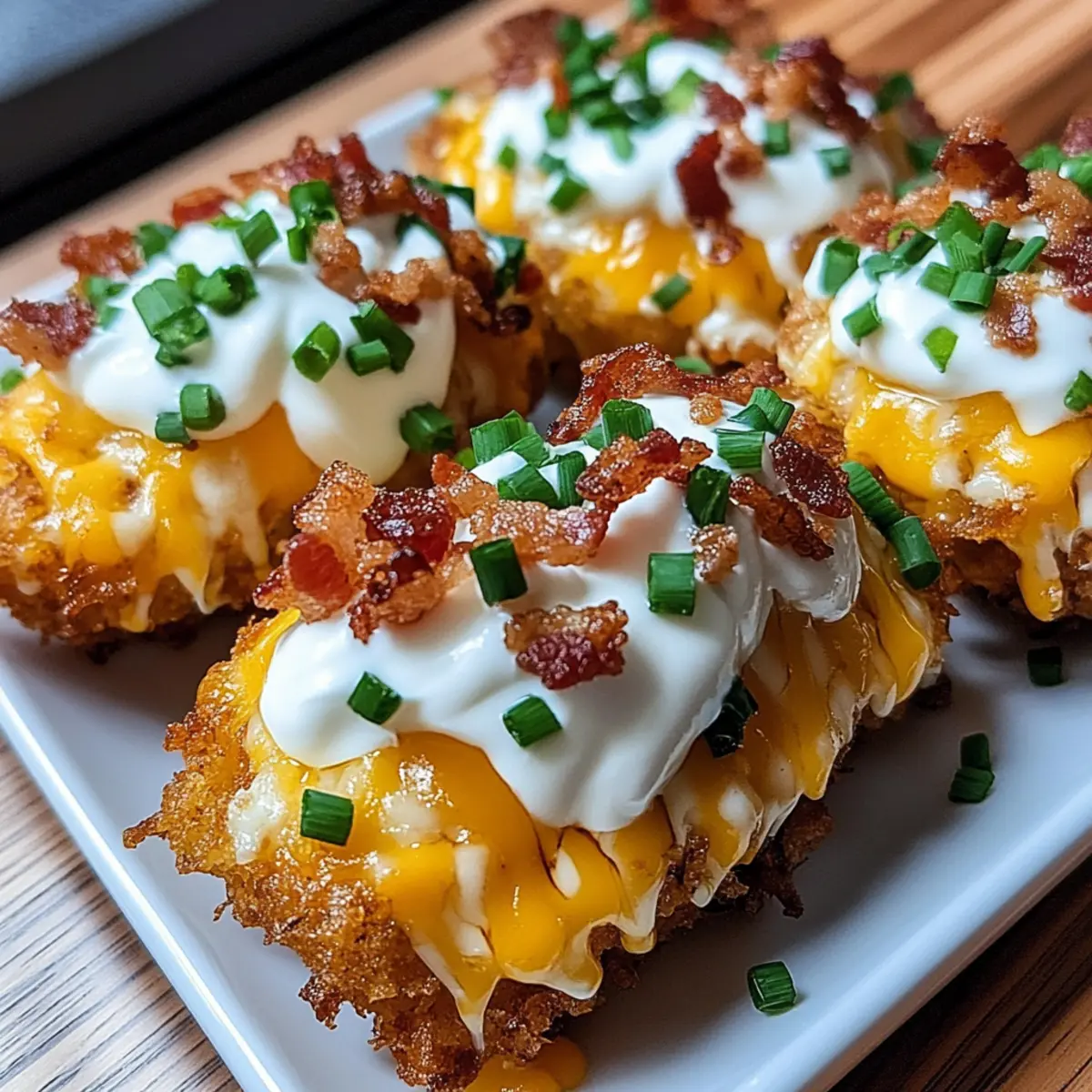 As I reached for a plate at the bustling brunch table, I couldn’t help but be captivated by those enticing Loaded Hashbrown Bites. These snacks beautifully merge the comforting flavors of a loaded baked potato into an irresistible, bite-sized treat. Perfect for game nights, brunches, or midnight cravings, they promise crispy exteriors and a warm, fluffy center—comfort food at its finest! The best part? They’re incredibly customizable, allowing you to mix and match toppings to suit every taste bud, from zesty ranch to savory bacon bits. Not only are these bites super easy to whip up, but they also make a delightful addition to any gathering. Ready to dive into this delicious recipe and discover your favorite topping combination? Why are Loaded Hashbrown Bites a must-try? Crispy Texture: These bites boast a golden-brown crust that delivers satisfying crunch in every bite, making them irresistibly snackable. Endless Customization: With toppings like ranch, bacon, and veggies, you can easily adjust the flavor to create your perfect bite for every mood and occasion. Quick & Easy: In just a few simple steps, you can whip up these delicious snacks in an air fryer or oven, saving you time without sacrificing taste. Crowd-Pleasing: Whether it’s game day or a casual weekend brunch, Loaded Hashbrown Bites are sure to impress family and friends, leaving them wanting more! For a cheesy delight that’s just as easy, check out my Cheesy Mashed Bites to elevate your snack game further! Loaded Hashbrown Bites Ingredients For the Bites Frozen hashbrown patties – Use any brand to ensure a crispy foundation for your Loaded Hashbrown Bites. Shredded cheddar cheese – Provides creaminess and a classic sharp flavor perfect for melting. ½ cup sour cream – Balances richness and adds creaminess; Greek yogurt can be used for a lighter option. 1 tbsp chives – Adds fresh flavor and a pop of color; fresh or dried varieties work well. 1 tsp ranch seasoning – Brings zesty, herby notes; can be swapped with Italian seasoning for a new twist. Crumbled cooked bacon – Enhances richness and adds a delightful smoky flavor; leave out for a vegetarian option. For Topping Extra ranch & chives – Use as desired to enhance presentation and flavor; a must for that perfect finish! Step‑by‑Step Instructions for Loaded Hashbrown Bites Step 1: Preheat the Air Fryer Begin by preheating your air fryer to 400°F (200°C). This temperature will ensure that your Loaded Hashbrown Bites crisp up beautifully. While it heats, take your frozen hashbrown patties and allow them to sit for a moment to reach a slightly softer texture for even cooking. Step 2: Cook the Hashbrowns Once your air fryer is preheated, arrange the hashbrown patties in a single layer within the basket. Ensure there’s space between each piece for optimal airflow, which will yield crispy results. Cook for about 20 minutes, flipping them halfway through, until they’re golden brown and crispy on both sides. Step 3: Add Cheese and Continue Cooking After 20 minutes, carefully open the air fryer and sprinkle a generous handful of shredded cheddar cheese over each hashbrown. Close the air fryer and cook for an additional 3 to 5 minutes, or until the cheese is melted and bubbly, creating a deliciously cheesy layer atop your Loaded Hashbrown Bites. Step 4: Prepare the Sour Cream Mixture While the hashbrowns finish cooking, grab a small bowl and combine ½ cup of sour cream, 1 tablespoon of chives, and 1 teaspoon of ranch seasoning. Mix thoroughly until well blended. This creamy topping will add a delightful freshness and zing to each bite of your Loaded Hashbrown Bites. Step 5: Assemble Your Bites Once the hashbrowns are perfectly cooked, carefully remove them from the air fryer. Place each crispy hashbrown bite on a serving platter, and generously dollop the prepared sour cream mixture onto each one. Top with crumbled bacon and an extra sprinkle of cheddar cheese for a flavor explosion that enhances your Loaded Hashbrown Bites. Step 6: Garnish and Serve Finish your Loaded Hashbrown Bites with a drizzle of ranch dressing and a sprinkle of additional chives for that perfect pop of flavor and color. These bites are now ready to be served on a large platter, allowing everyone to enjoy this delightful snack at gatherings or casual meals. Expert Tips for Loaded Hashbrown Bites Space It Out: Ensure to arrange hashbrowns with ample space in the air fryer. Crowding can lead to soggy bites instead of crispy Loaded Hashbrown Bites. Oven Adjustments: If using the oven, remember to increase the temperature to 425°F and extend cooking to 25-30 minutes, flipping once for even browning. Customization is Key: Don’t hesitate to experiment with toppings! Adding extra spices or different cheeses can elevate your Loaded Hashbrown Bites to new heights of deliciousness. Leftover Love: For best results, enjoy these bites fresh. If you have leftovers, store them in an airtight container and reheat in the air fryer for that beloved crispiness. Bacon Alternatives: If you’re looking for a vegetarian option, simply leave out the crumbled bacon or substitute it with sautéed mushrooms for a rich, earthy flavor. Storage Tips for Loaded Hashbrown Bites Fridge: Store leftover Loaded Hashbrown Bites in an airtight container for up to 2 days to maintain freshness and flavor. Freezer: For longer storage, freeze the bites in a single layer on a baking sheet, then transfer to a freezer bag after frozen. They can be stored for up to 3 months. Reheating: Reheat in an air fryer at 350°F for about 5-7 minutes or in the oven at 375°F for 10-15 minutes until crispy. This helps restore their crunchy texture! Serving Fresh: These bites are best enjoyed fresh, so consider preparing only what you need for your gathering and save leftovers for another day! Make Ahead Options These Loaded Hashbrown Bites are perfect for meal prep, making busy weeknights a breeze! You can prepare the hashbrown pa