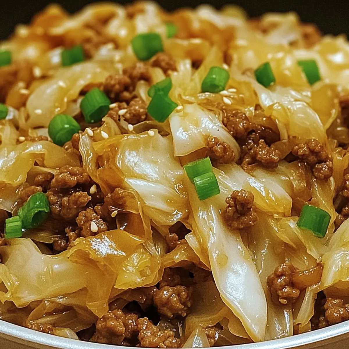 As I stood over the stovetop, the tantalizing aroma of garlic and ginger filled the air, instantly whisking me away to a bustling Mongolian market. Today, I’m thrilled to share my recipe for Low-Carb Mongolian Ground Beef and Cabbage, a delightful one-skillet meal that marries convenience with deliciousness. Ready in under 30 minutes, this dish features tender ground beef and crispy cabbage, making it a fantastic option for both busy weeknights and meal prep sessions. With minimal cleanup and a healthy twist, it’s perfect for anyone craving comfort food without the carbs. Are you ready to savor this quick, satisfying creation that will have your loved ones asking for seconds? Why Is This Recipe a Must-Try? Simplicity and Speed: In under 30 minutes, you can whip up a delicious meal with minimal effort. Flavorful Twist: The rich combination of ground beef, garlic, and ginger brings an irresistible Mongolian flair to your table. One-Skillet Wonder: Enjoy a stress-free cooking experience and easy cleanup with this single-pan masterpiece. Meal Prep Friendly: Make ahead and store portions for quick meals throughout the week—deliciousness at your fingertips! Healthy Comfort: This low-carb dish satisfies your cravings while keeping your health goals in check, perfect alongside a light salad or steamed veggies. Indulge in this Low-Carb Mongolian Ground Beef and Cabbage! For more options, consider trying my Ground Beef Taquitos for a fun twist or the Korean Ground Beef Bowl for a flavorful journey. Low-Carb Mongolian Ground Beef and Cabbage Ingredients For the Skillet • Ground Beef – Provides rich flavor and protein; opt for lean ground beef to cut back on fat. • Onion – Adds sweetness and depth; diced shallots can substitute for a milder taste. • Garlic – Enhances aroma and taste; minced fresh garlic is recommended, but garlic powder works in a pinch. • Cabbage – Offers crunch and bulk to the dish; fresh shredded Brussels sprouts can be a delightful alternative. For the Sauce • Soy Sauce or Coconut Aminos – Delivers umami flavor; coconut aminos provide a soy-free option. • Sesame Oil – Adds nuttiness to the dish; olive oil can be a suitable substitute. • Rice Vinegar – Balances flavors with acidity; apple cider vinegar is an excellent alternative. • Ground Ginger – Infuses warmth and spice; adjust to taste or use freshly grated ginger for intensity. • Red Pepper Flakes – Offers a kick of heat; use according to your spice preference or omit for a milder flavor. For Garnishing • Green Onions – Adds a fresh bite for garnish; chives can be a suitable substitute. • Toasted Sesame Seeds – Provides a delightful crunch and nutty flavor; crushed nuts can offer a fun twist. Dive into this Low-Carb Mongolian Ground Beef and Cabbage and let yourself be transported to flavor paradise! Step‑by‑Step Instructions for Low-Carb Mongolian Ground Beef and Cabbage Step 1: Prepare Your Skillet Begin by heating a large skillet over medium heat. Allow it to warm for about 2 minutes until a drop of water sizzles upon contact. This ensures that your cooking surface is ready for browning the ground beef, which is the foundation of your Low-Carb Mongolian Ground Beef and Cabbage dish. Step 2: Brown the Ground Beef Add the lean ground beef to the heated skillet, breaking it apart with a spatula. Cook for 5-7 minutes, stirring occasionally until the beef is browned and cooked through. Watch for any excess fat that may accumulate; drain it off to keep the dish light and healthy while maintaining the rich flavors. Step 3: Sauté Aromatics Once the beef is browned, toss in the diced onion and minced garlic. Cook for 2-3 minutes, stirring frequently until the onion becomes translucent and fragrant. This step infuses the base of the Low-Carb Mongolian Ground Beef and Cabbage with aromatic goodness, setting the stage for the other ingredients to shine. Step 4: Add Cabbage Next, stir in the shredded cabbage. Cook for about 5 minutes, allowing it to wilt slightly but still retain a bright crunch. This creates a delightful texture contrast in your dish—each bite of crisp cabbage pairs perfectly with the tender beef and aromatic garlic. Step 5: Incorporate the Sauce Pour in the soy sauce (or coconut aminos), sesame oil, rice vinegar, ground ginger, and red pepper flakes. Stir well to combine all the flavors, ensuring everything is evenly coated. Let the mixture cook for an additional 2-3 minutes, allowing the cabbage to soak up the savory sauce while the aromas fill your kitchen. Step 6: Garnish and Serve Finally, remove the skillet from heat and garnish your Low-Carb Mongolian Ground Beef and Cabbage with sliced green onions and toasted sesame seeds. Plate the vibrant dish warm, savoring the enticing aromas. It’s ready to be enjoyed, offering both comfort and a healthy twist to your dinner table. What to Serve with Low-Carb Mongolian Ground Beef and Cabbage Create a harmonious meal with delightful accompaniments that elevate your dining experience. Crispy Green Salad: A refreshing mix of greens balances the savory dish and adds a burst of freshness. Garlic Roasted Broccoli: The nutty flavors of roasted broccoli pair beautifully, complementing the beef while adding a touch of crunch. Cauliflower Rice: This low-carb alternative absorbs the savory sauce perfectly, making every bite satisfying without extra carbs. Stir-Fried Zucchini Noodles: Light and tangy, these noodles offer a delightful texture that complements the dish’s richness well. Sautéed Mushrooms and Spinach: The earthiness of mushrooms and the brightness of spinach add depth and color, enhancing your overall plate. Sesame Cucumber Salad: Crisp cucumbers dressed in sesame dressing provide a refreshing contrast to the savory beef while adding vibrant color to the table. Chilled Sake or Green Tea: Both beverages serve as palate cleansers, allowing the flavors of the meal to shine through and tantalize your taste buds.