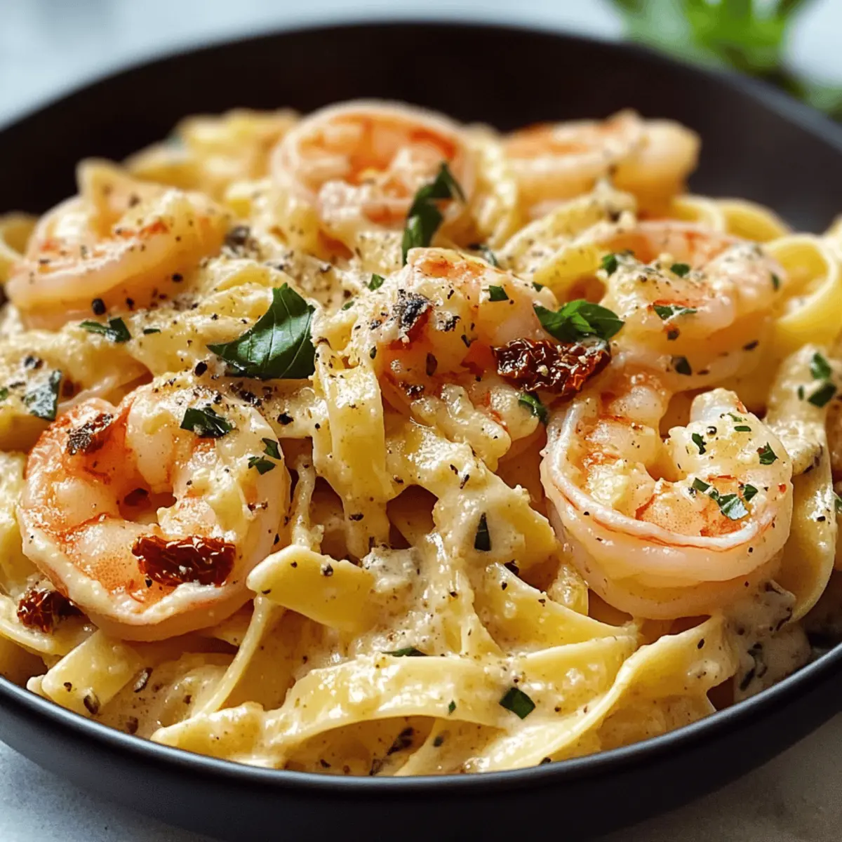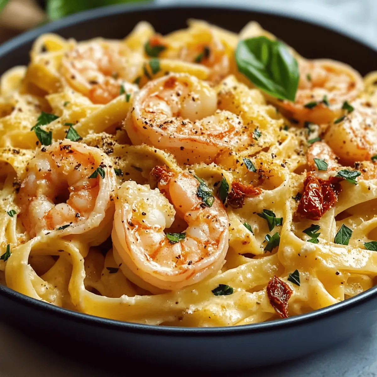 In a cozy Italian bistro tucked away from the bustling streets, I savored a dish that instantly became a treasured memory. The creamy Marry Me Shrimp Pasta, with its luscious garlic and sun-dried tomato flavors, has a way of sweeping you off your feet. This elegant yet simple date-night dish is what you’re looking for to create a cozy and romantic atmosphere, all while keeping your cooking stress-free. With just under an hour of prep time, you’ll impress your loved ones with rich, velvety shrimp enveloped in perfectly cooked pasta. Plus, this dish is delightfully adaptable, so you can make it your own with a few easy tweaks! Are you ready to fall in love with a bowl of pasta? Why is Marry Me Shrimp Pasta irresistible? Creaminess that captivates your palate: The rich and velvety sauce clings to every noodle, providing a comforting indulgence. Flavor explosion of garlic and sun-dried tomatoes: These ingredients elevate this dish, transforming simple pasta into a romantic feast. Quick and easy to make: Perfect for those busy nights when you crave something special without spending hours in the kitchen. Versatility allows you to customize: Add spinach for nutrition or switch shrimp for grilled chicken to cater to your taste. Crowd-pleaser for any occasion: Whether it’s a cozy dinner for two or a gathering with friends, this dish never fails to impress. Pair it with a crisp salad and a glass of chilled white wine for the ultimate dining experience, just like with our Garlic Parmesan Pasta! Marry Me Shrimp Pasta Ingredients • Unleash your culinary creativity with these flavorful components! For the Pasta Fettuccine or Linguine – The perfect base for this creamy dish, but feel free to substitute with spaghetti, penne, or tagliatelle. For the Shrimp Large Shrimp – Offers delicious flavor and protein; can be swapped for grilled chicken or seared scallops if desired. Seasoning and Flavorings Salt and Black Pepper – Essential for enhancing flavors; adjust quantities based on personal preference. Olive Oil – Ideal for sautéing the shrimp to perfection. Butter – Adds a richness that beautifully complements the garlic base. Garlic (4 cloves, minced) – Infuses aromatic layers into the sauce, making it irresistible. Sun-dried Tomatoes (½ cup, chopped) – Contribute tangy sweetness and depth; ensure they’re packed in oil and well-drained for maximum flavor. Red Pepper Flakes (1 tsp, optional) – Offers a hint of heat; add more if you like it spicy! For the Creamy Sauce Heavy Cream (1 cup) – Delivers the dreamy creaminess that defines this dish; substitute with half-and-half for a lighter option, keeping in mind it will be thinner. Chicken Broth (½ cup) – Enhances the flavor while adjusting sauce consistency. Parmesan Cheese (¾ cup, grated) – Adds a nutty flavor and creaminess to the sauce. Dried Oregano (1 tsp) & Dried Thyme (1 tsp) – These herbs enhance the aroma and complexity of the dish. Fresh Basil or Parsley – Used as a garnish for bright, fresh flavor and a pop of color. Step‑by‑Step Instructions for Marry Me Shrimp Pasta Step 1: Cook the Pasta Begin by bringing a large pot of salted water to a rolling boil over high heat. Once boiling, add your fettuccine or linguine, stirring gently. Cook the pasta until al dente, typically around 8-10 minutes, depending on package instructions. When done, drain the pasta, reserving about a cup of pasta water for later use. Step 2: Sauté the Shrimp While the pasta cooks, season your large shrimp with salt and pepper to taste. In a large skillet, heat 2 tablespoons of olive oil over medium-high heat. Once hot, add the shrimp in a single layer, cooking them for 1-2 minutes on each side, until they turn pink and opaque. Remove the shrimp from the skillet and set aside in a warm place. Step 3: Create the Flavor Base In the same skillet, reduce the heat to medium and add 2 tablespoons of butter. Once melted, toss in 4 minced garlic cloves, sautéing for about 1 minute until fragrant. Next, stir in ½ cup of chopped sun-dried tomatoes and 1 teaspoon of red pepper flakes (if using) and cook for an additional minute, allowing the flavors to meld beautifully. Step 4: Make the Creamy Sauce Pour in 1 cup of heavy cream and ½ cup of chicken broth into the skillet, stirring well to combine. Bring the mixture to a gentle simmer, allowing it to reduce slightly for about 3-5 minutes until the sauce thickens. Keep an eye on it to prevent boiling over while ensuring it remains creamy and fragrant. Step 5: Incorporate the Cheese Once the sauce has thickened, stir in ¾ cup of grated Parmesan cheese along with 1 teaspoon each of dried oregano and thyme. Mix until the cheese melts completely and the sauce is smooth and velvety. If it appears too thick, gradually incorporate some reserved pasta water until you achieve your desired consistency. Step 6: Combine the Shrimp Return the cooked shrimp to the skillet, gently folding them into the creamy sauce. Let the shrimp simmer in the sauce for an additional 2-3 minutes, allowing the flavors to blend together beautifully. Ensure that the shrimp are evenly coated and heated through before moving on to the final step. Step 7: Toss the Pasta Finally, add the drained pasta into the skillet with the shrimp and sauce. Using tongs or a large fork, gently toss everything together until the pasta is thoroughly coated with the creamy sauce. Be careful not to break the shrimp while mixing, ensuring a beautiful presentation of your Marry Me Shrimp Pasta. Make Ahead Options These Marry Me Shrimp Pasta is perfect for meal prep enthusiasts looking to save time on busy weeknights! You can cook the pasta and sauté the shrimp up to 24 hours in advance. Simply store the cooked pasta in an airtight container with a splash of olive oil to prevent sticking, while the shrimp can be refrigerated in a separate container. When you’re ready to serve, just reheat the shrimp in a skillet with a bit of olive oil, add the