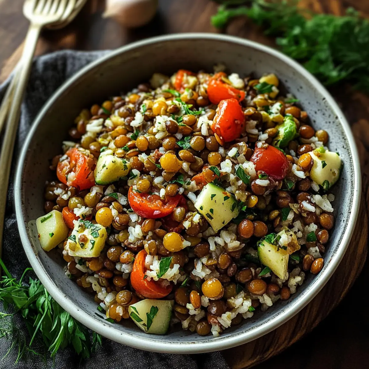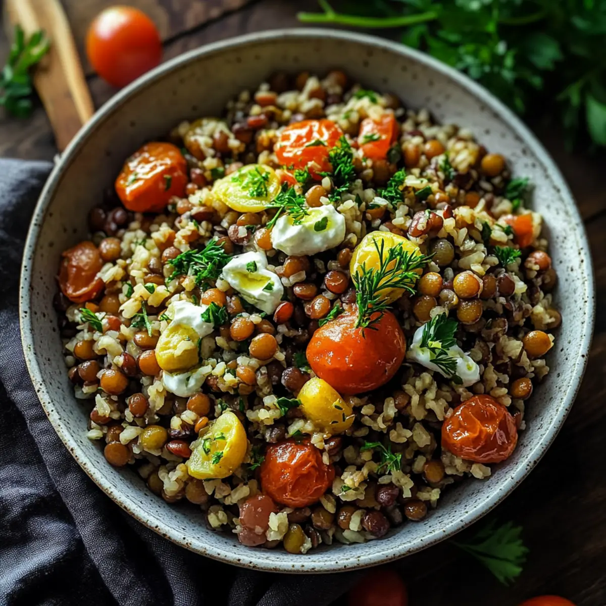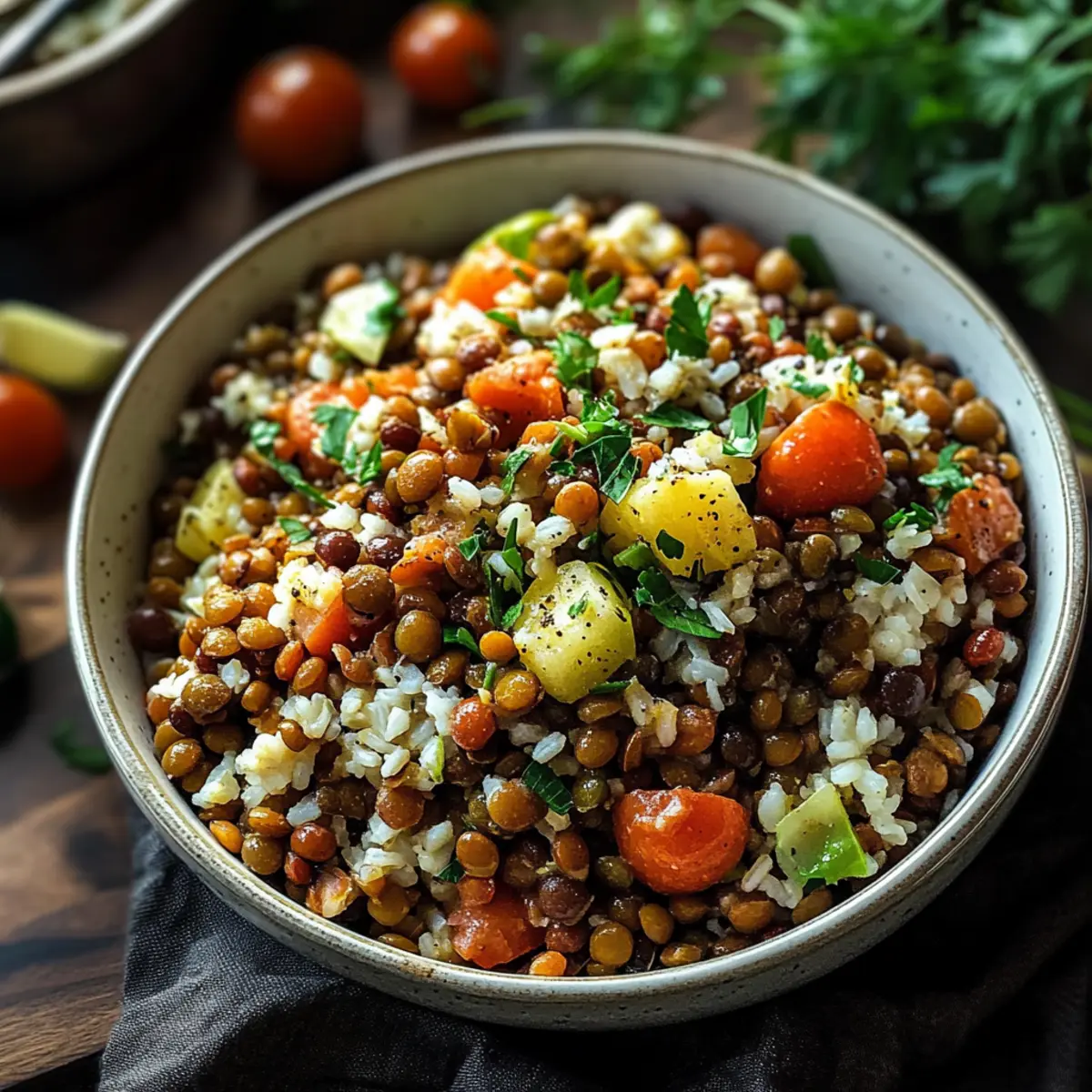 As I stirred the pot, the rich aroma of spices wafted through my kitchen, effortlessly transporting me to sun-drenched Mediterranean shores. This Easy Mediterranean Lentils and Rice recipe is a delightful fusion that brings comfort and nutrition together in one simple, one-pot meal. Bursting with fragrant herbs and wholesome ingredients, it’s perfect for those bustling weeknights when you crave something satisfying yet healthy. Not only is this dish loaded with protein and fiber, making it an excellent choice for vegetarians, but it’s also a fantastic option for meal prepping. You’ll spend less time in the kitchen and more time enjoying the comforting blend of flavors that your loved ones will adore. Curious to bring this taste of the Mediterranean to your table? Let’s get cooking! Why is this recipe a must-try? Simplicity: This Easy Mediterranean Lentils and Rice is a one-pot wonder that requires minimal effort and cleanup, making it a breeze for busy weeknights. Healthful: Packed with protein and fiber, this dish is not only filling but also nutritious, catering perfectly to those seeking healthy vegetarian options. Flavor-Packed: With fragrant spices like cumin and paprika, plus fresh herbs, every bite offers a burst of bold Mediterranean taste that will transport you to sunny shores. Meal Prep Friendly: Perfect for make-ahead meals, it can be stored in the fridge for up to four days, providing a delicious ready-to-eat option for your hectic days. Versatile: Want to spice things up? Consider adding roasted vegetables or swapping rice for quinoa to easily customize this delightful dish. This recipe is sure to become a staple—much like other favorites such as Mediterranean Chickpea Salad or the hearty Caramelized Soy Rice. Enjoy! Mediterranean Lentils and Rice Ingredients For the Base • Brown Lentils – Provides protein and texture; rinse and drain before use. • Long-Grain White Rice – Creates a fluffy base for the dish; rinse to remove excess starch. • Medium Onion – Adds sweetness and depth of flavor; dice for even cooking. • Garlic (3 cloves) – Offers a pungent aroma and savory taste; mince for maximum flavor release. For the Broth and Seasoning • Vegetable Broth (3 cups) – Adds moisture and enhances the dish’s flavor; use low-sodium for a healthier option. • Olive Oil (2 tbsp) – Provides richness and helps sauté aromatics; substitute with vegetable oil if preferred. • Ground Cumin (1 tsp) – Imparts a warm, earthy flavor; no direct substitute, but coriander can add a similar profile. • Paprika (1 tsp) – Adds sweetness and color; can substitute with smoked paprika for a different flavor nuance. For the Finish • Fresh Parsley (0.25 cup, chopped) – Brightens the dish and adds freshness; other herbs like cilantro can be used as alternatives. • Salt (0.5 tsp) and Black Pepper (0.25 tsp) – Enhances overall flavor; adjust to taste. This Mediterranean Lentils and Rice recipe is the perfect combination of wholesome ingredients and rich flavors that will bring comfort to your table! Step‑by‑Step Instructions for Mediterranean Lentils and Rice Step 1: Sauté the Aromatics In a large pot, heat 2 tablespoons of olive oil over medium heat. Once shimmering, add the diced medium onion and cook for about 5 minutes until it softens and turns translucent. The aroma will start to fill your kitchen, giving a comforting hint of what’s to come. Step 2: Add Garlic and Spices Stir in 3 minced garlic cloves and sauté for about 1 minute until fragrant. Then, sprinkle 1 teaspoon of ground cumin and 1 teaspoon of paprika over the mixture, cooking for an additional 30 seconds. This step releases the vibrant flavors of your Mediterranean Lentils and Rice and adds an enticing aroma. Step 3: Combine Lentils and Broth Incorporate the rinsed brown lentils into the pot, stirring to mix well with the sautéed aromatics. Pour in 3 cups of vegetable broth, increasing the heat to bring the mixture to a boil. Once boiling, reduce the heat to low, cover, and let it simmer for 15 minutes, allowing the lentils to absorb the flavors. Step 4: Add Rice to the Pot After 15 minutes, uncover the pot and gently stir in the rinsed long-grain white rice. Ensure it’s evenly distributed, then cover again. Continue to simmer for another 15 to 20 minutes, or until both the lentils and rice are tender and cooked through, absorbing all the delightful broth. Step 5: Final Seasoning and Serve Remove the pot from heat and fold in 0.25 cup chopped fresh parsley, 0.5 teaspoon salt, and 0.25 teaspoon black pepper. Let the Mediterranean Lentils and Rice rest covered for 5 minutes to enhance the flavors. Fluff with a fork before serving, and enjoy this hearty, nutritious one-pot meal! Mediterranean Lentils and Rice Variations Feel free to get creative with this recipe and discover new flavors that excite your palate! Gluten-Free Quinoa: Substitute long-grain white rice with quinoa for a gluten-free, protein-packed base. It’s a delightful twist that maintains that wonderful fluffy texture! Roasted Veggies: Toss in roasted vegetables like bell peppers or zucchini during the last five minutes of cooking to add a splash of color and enhance nutritional value. These veggies bring an additional layer of sweetness and earthiness. Spicy Kick: For some heat, add a pinch of red pepper flakes or a diced jalapeño with the garlic. This simple addition can elevate your dish, transforming it into a delightful spicy creation reminiscent of Mediterranean street food. Herb Variations: Swap fresh parsley for cilantro or dill, or even a mix of fresh herbs. Each herb contributes its unique flavor; just imagine the refreshing twist from cilantro! Creamy Addition: Stir in a dollop of Greek yogurt or a drizzle of tahini just before serving for a creamy texture that adds richness. This can take your lentils and rice to a whole new level of indulgence! Lemon Zest: Brighten the dish with a touch of freshly grated