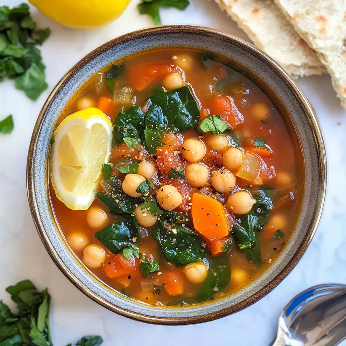 As the chill of evening settles in, there’s nothing more satisfying than a steaming bowl of soup to warm the soul. My Hearty Vegan Mediterranean Chickpea Soup is an inviting combination of earthy chickpeas, colorful vegetables, and vibrant spinach, all immersed in a rich tomato broth that sings of the Mediterranean. This Mediterranean soup not only cooks up in less than 30 minutes, making it a breeze for busy weeknights, but it’s also a powerhouse of nutrients, perfect for anyone seeking healthier meal options. With its comforting flavors and quick prep, it’s bound to become a cherished staple in your kitchen. What do you think will be your favorite ingredient in this wholesome delight? What makes this Mediterranean soup special? Quick and Easy: Ready in under 30 minutes, this soup is perfect for those hectic weeknights when you crave comfort without spending hours in the kitchen. Nutritious Goodness: Packed with chickpeas, vibrant spinach, and plenty of veggies, it’s not just filling but also loaded with vitamins and minerals. Flexibility: With ingredient substitutions suggested, feel free to tailor it to your pantry and preferences. Whether you’re using kale instead of spinach or swapping out chickpeas for lentils, the flavor remains incredible. Mouthwatering Taste: The blend of aromatic spices and fresh herbs transforms simple ingredients into a hearty meal that warms your soul—each bowl feels like a culinary journey to the Mediterranean. Crowd-Pleaser: Perfect for family dinners or gatherings, this Mediterranean soup will impress even the pickiest eaters. Pair it with crusty bread or served as an appetizer alongside my Mediterranean Chickpea Salad, and watch everyone come back for seconds! Mediterranean Soup Ingredients • Here’s everything you need to create a delicious Mediterranean soup from scratch. For the Base Olive Oil – Essential for sautéing and infusing flavor; you can substitute with a neutral oil if necessary. Onion – Offers a flavorful base; shallots or leeks can provide different taste nuances. Carrots – Adds natural sweetness and vibrant color; parsnips can be a delightful alternative. Celery – Provides texture and depth; fennel can also lend a unique aromatic flair. Garlic – Elevates the flavor; fresh minced garlic gives the best aroma. For Flavor Paprika – Imparts warmth; you can opt for smoked paprika for a different flavor profile or omit for a milder taste. Oregano & Thyme – Harmonize beautifully with the soup; Italian seasoning can be a convenient substitute. For Protein & Bulk Chickpeas – The heart of the soup, providing plant-based protein; other white beans like cannellini can be swapped. Canned Tomatoes – Balance acidity and sweetness; fresh tomatoes are perfect in a pinch—just modify cooking time. For Liquid & Seasoning Vegetable Broth – Forms the comforting foundation; any broth or even water works, but adjust the salt in that case. Salt & Black Pepper – Essential for flavor; adjust depending on how salty your broth is. Bay Leaves – An optional flavor enhancer; just omit if you don’t have any on hand. For Thickening & Greens Flour – Used for thickening the soup; cornstarch is a great gluten-free alternative. Spinach – Bursting with nutrients and freshness; feel free to substitute with kale or Swiss chard. For Brightness Lemon Juice – Brightens up the flavors; lime juice can also do the trick if you prefer. This Mediterranean soup is not only quick to whip up but also offers incredible taste and nutrients with each bite! Enjoy crafting this dish that brings warmth and joy straight from your kitchen. Step‑by‑Step Instructions for Mediterranean Soup Step 1: Heat the Base Begin by heating 2 tablespoons of olive oil in a large pot over medium heat. Make sure the oil shimmers, which indicates it’s hot enough. This oily base is essential for building flavors in your Mediterranean soup, so allow the oil to warm for about 2 minutes before adding your vegetables. Step 2: Sauté the Vegetables Add 1 diced onion, 2 diced carrots, and 2 chopped celery stalks to the pot, stirring frequently. Sauté the mixture for about 5 minutes until the onion turns translucent and the vegetables soften slightly, releasing their vibrant aromas. This step lays the fundamental flavor in your soup, creating a comforting base. Step 3: Add Garlic and Spices Stir in 4 minced cloves of garlic along with 1 teaspoon of paprika, 1 teaspoon of dried oregano, and 1 teaspoon of thyme. Cook this fragrant mix for about 1 minute, allowing the spices to bloom and fill your kitchen with warmth. This aromatic blend will elevate your Mediterranean soup’s flavor profile significantly. Step 4: Combine with Broth and Chickpeas Introduce 2 cans of drained chickpeas, 1 can of diced tomatoes, and 4 cups of vegetable broth into the pot. Season with salt and black pepper to taste, and add 2 bay leaves if using. Increase the heat to high and bring the mixture to a rolling boil, then cover the pot and let it simmer for 20 minutes, allowing the flavors to meld beautifully. Step 5: Thicken the Soup After simmering, remove the bay leaves and prepare a thickening slurry by mixing 2 tablespoons of flour with ¼ cup of cold water in a separate bowl. Stir the slurry into the soup, cooking for an additional 2-3 minutes until it slightly thickens. This step enhances the heartiness of your Mediterranean soup, giving it a comforting consistency. Step 6: Fold in the Greens Gradually add 4 cups of fresh spinach into the pot, stirring until it wilts, which takes about 2-3 minutes. If using frozen spinach, adjust your cooking time to ensure it thaws completely. The greens will add a nutritional boost and vibrant color to your Mediterranean soup. Step 7: Finish with Lemon Juice Stir in the juice of 1 lemon to brighten the flavors of your soup. Taste and adjust seasoning with additional salt or pepper as needed, ensuring that each spoonful is perfectly balanced. This final t