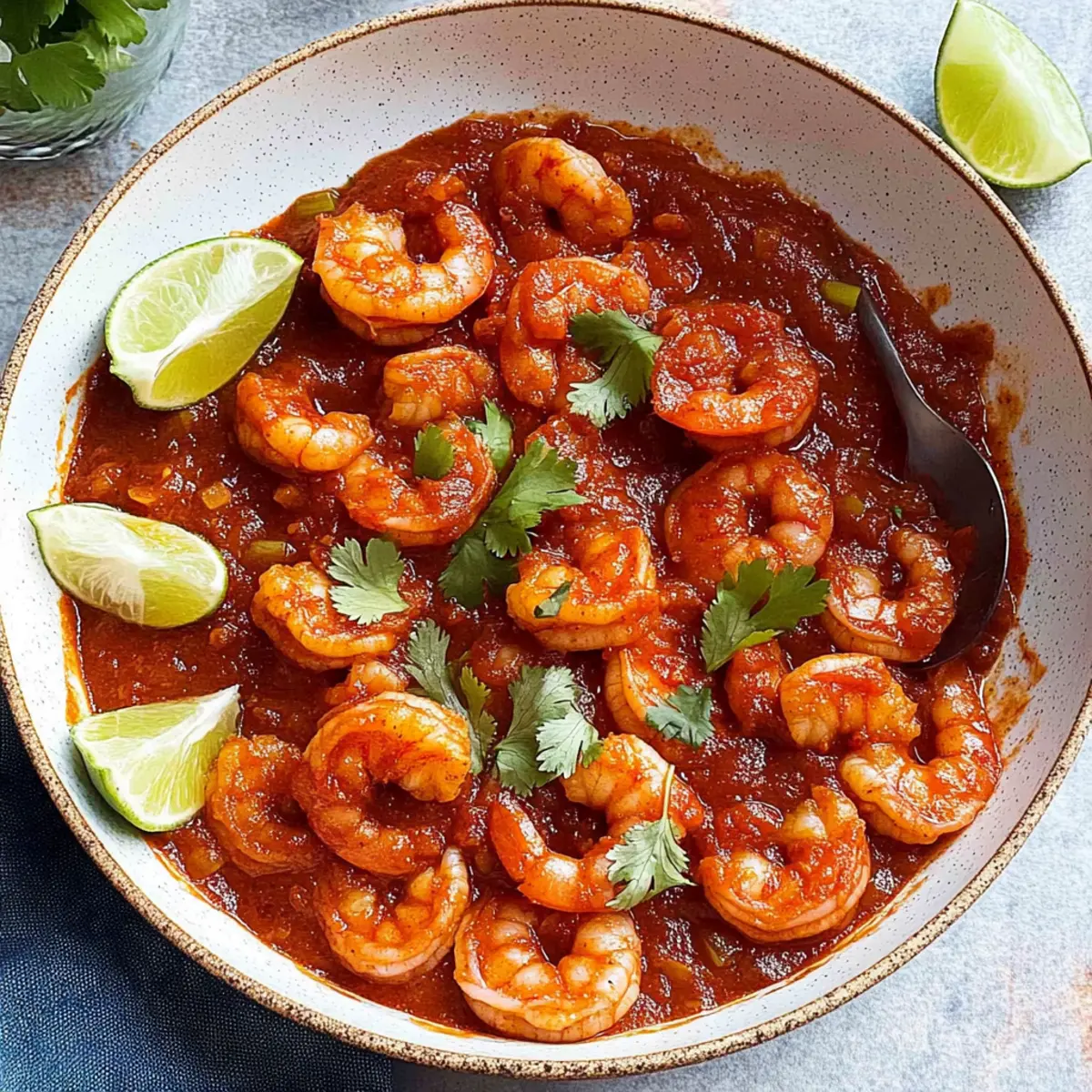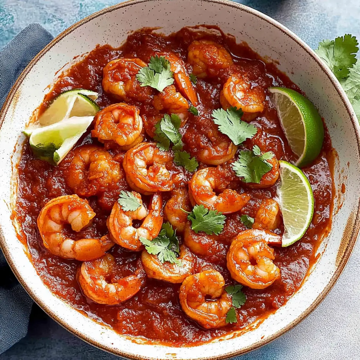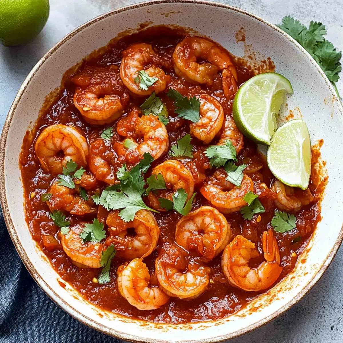 As I watched the vibrant colors dance in the pan, I couldn’t help but feel transported to a sun-soaked market in Mexico, where the air is thick with the aroma of chiles and spices. Today, I’m excited to share my recipe for Mexican Diablo Shrimp, or Camarones a la Diabla. This dish captures the essence of authentic Mexican cuisine, bringing a fiery kick to your dinner table in just 30 minutes! Not only is it quick and easy to whip up, but it’s also a glorious crowd-pleaser that promises to impress both family and friends. With succulent shrimp enveloped in a tantalizing, spicy tomato-chile sauce, you’ll find it hard to resist going back for seconds. So, are you ready to embark on a culinary adventure? Let’s dive into this deliciously bold recipe! Why is This Shrimp Recipe a Must-Try? Quick and Easy: You can whip up this dish in just 30 minutes, making it perfect for busy weeknights or last-minute entertaining. Robust Flavors: The blend of guajillo and chile de arbol delivers a fiery kick that will thrill spice lovers. Authentic Experience: Enjoy a taste of Mexico right at home with a recipe that stays true to traditional methods. Versatile Serving Options: Serve it hot over rice or tuck it into warm corn tortillas for fantastic tacos, just like with my Mexican Lasagna Twist or Honey Walnut Shrimp. Crowd-Pleaser: Impress your family and friends with this stunning dish that looks as good as it tastes! Mexican Diablo Shrimp Ingredients • For the perfect fiery sauce and tender shrimp, gather these ingredients! Roma Tomatoes – Base of the sauce for acidity and sweetness; use fresh for the best flavor. Dried Guajillo Chiles – Adds depth and mild heat; no direct substitute; for less spice, consider using fewer chiles. Dried Chile de Arbol – Provides an extra kick; reduce quantity for a milder flavor. Water – Used for simmering chiles and tomatoes; regulates sauce consistency. Chipotle Pepper in Adobo Sauce (optional) – Intensifies flavor and spice; omit for less heat. Raw Shrimp (1.5 lbs) – Main protein; large shrimp (31/35 count) recommended; can substitute with frozen shrimp, thawed. Lime or Lemon Juice – Balances spices with acidity; use fresh juice for best results. Salt and Ground Black Pepper – Essential seasonings for overall flavor enhancement. Butter and Olive Oil – For sautéing shrimp and developing flavor; olive oil is a good substitute for butter. Onion (½ medium, chopped) – Adds sweetness and depth of flavor; can use brown, yellow, or white onions. Garlic (2 cloves, minced) – Infuses the dish with aromatic flavor; fresh is best. Chopped Cilantro or Parsley – For garnish, adds freshness and color. Lime or Lemon Wedges – Serve with the dish to brighten flavors. Sour Cream – Optional cooling element to temper spiciness. Rice and Corn Tortillas – Suggested accompaniments for serving; adds comfort to the meal. Step‑by‑Step Instructions for Mexican Diablo Shrimp Step 1: Prepare Sauce In a saucepan, combine diced Roma tomatoes, dried guajillo chiles, and enough water to cover the ingredients. Bring the mixture to a boil over medium heat, then reduce the temperature and let it simmer for about 10 minutes until the tomatoes and chiles are softened. The tomatoes should become tender and mushy, creating the base for our zesty sauce. Step 2: Blend Sauce Transfer the softened tomato and chile mixture to a blender. Blend on high until it reaches a smooth consistency, adjusting thickness by adding reserved cooking water if needed. The blended sauce should be vibrant and glossy, showcasing the rich red color that indicates the flavor-packed sauce ready for our Mexican Diablo Shrimp. Step 3: Prep Shrimp While the sauce blends, take the raw shrimp and pat them dry with a paper towel. In a medium bowl, season the shrimp with fresh lime juice, salt, and ground black pepper. Allow the shrimp to marinate briefly while you sauté aromatics, enhancing their flavor before they meet the fiery sauce. Step 4: Sauté Shrimp Heat a large skillet over medium-high heat and melt two tablespoons of butter, adding an equal amount of olive oil to create a flavorful base. Once hot, add the seasoned shrimp in a single layer. Sauté for about 1 minute per side, just until they turn slightly translucent. Quickly transfer the shrimp to a plate, ensuring they remain juicy and don’t overcook. Step 5: Cook Aromatics In the same skillet, reduce the heat slightly and add the chopped onion, cooking for approximately 3 minutes until it becomes translucent and fragrant. Next, stir in the minced garlic and cook for an additional 30 seconds, releasing its aromatic flavor into the air. This mixture will provide the rich foundation for the spicy sauce. Step 6: Combine Pour the blended sauce back into the skillet containing the sautéed onions and garlic, stirring to combine and allow to simmer for 2 minutes. As the sauce bubbles, add the sautéed shrimp back to the pan, cooking until the shrimp are fully opaque and cooked through, about 2 more minutes. The shrimp should be tender and well-coated in the bold sauce. Step 7: Serve Taste and adjust seasoning with additional salt and pepper if necessary. Garnish your Mexican Diablo Shrimp with freshly chopped cilantro and serve immediately with wedges of lime on the side while the dish is hot. Providing a side of rice or warm corn tortillas will complete this delightful and spicy culinary experience. Make Ahead Options These Spicy Camarones a la Diabla are perfect for meal prep enthusiasts! To save time on busy weeknights, you can prepare the sauce up to 4 days in advance. Simply cook the sauce as instructed, let it cool, and refrigerate it in an airtight container. You can also season the shrimp with lime juice, salt, and pepper and store it separately in the refrigerator for up to 24 hours. When you’re ready to enjoy your dish, simply sauté the shrimp until opaque, combine it with the reheated sauce in the skillet, and let it simmer fo