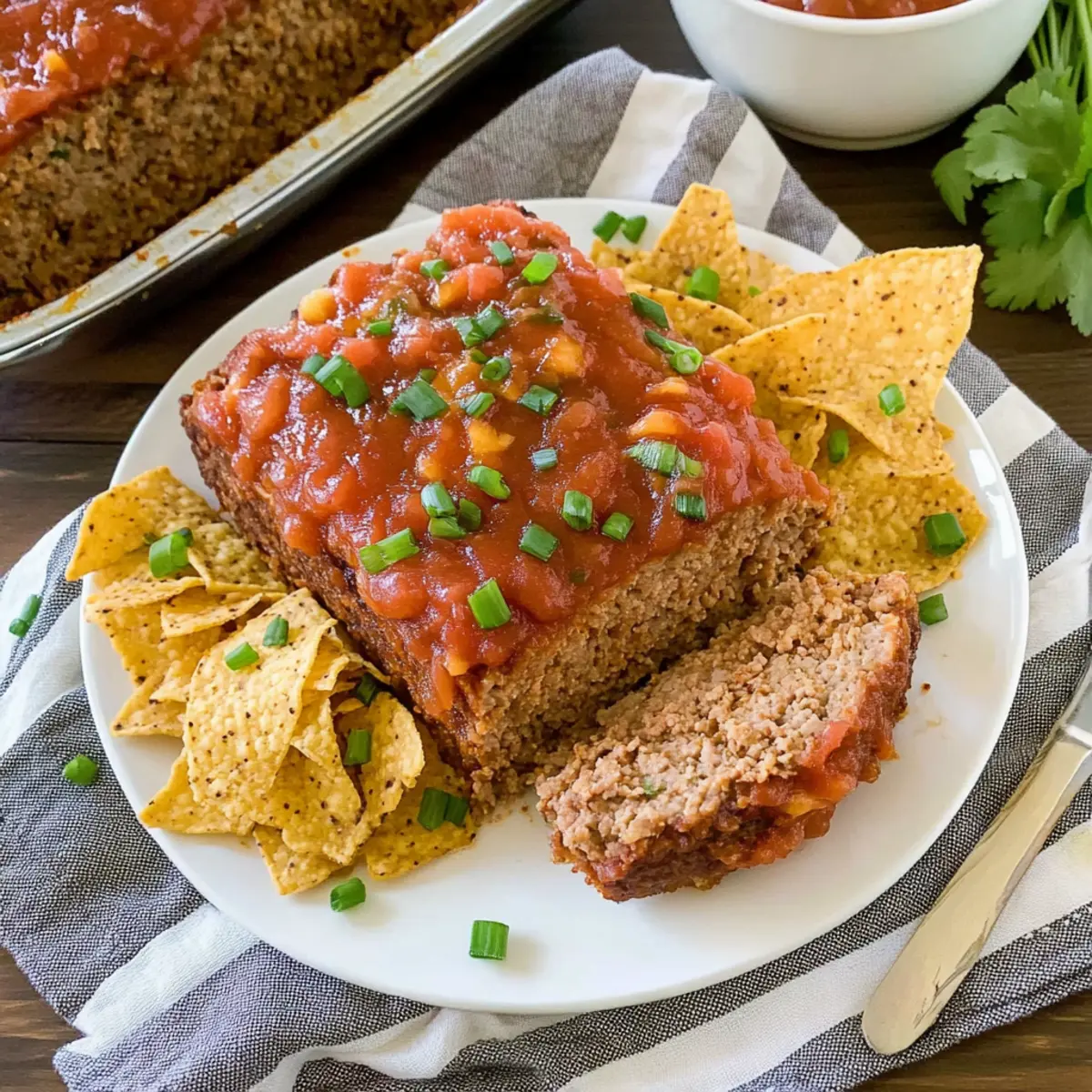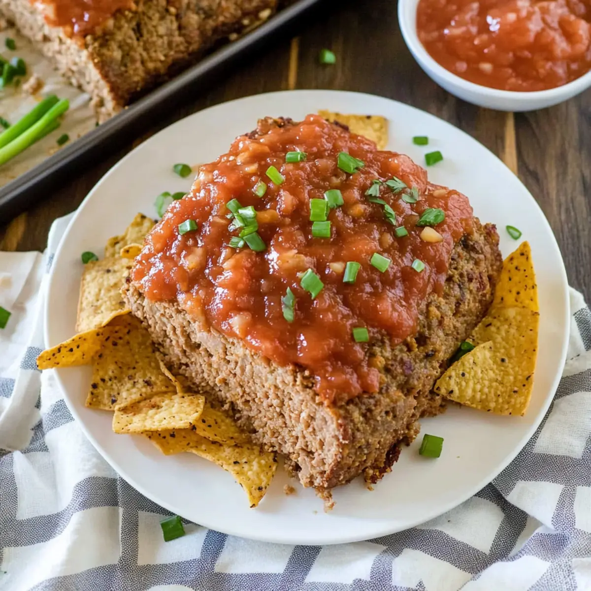 The aroma of sizzling spices and warm cheddar filled the air, instantly transporting me to a cozy kitchen in bustling Mexico. Today, I’m excited to share my latest creation: Easy Tex-Mex Mexican Meatloaf. This dish is more than just comfort food; it’s a vibrant twist on a classic that my family can’t get enough of. With the bold flavors of taco seasoning, zesty green chilies, and a delightful crunch from crushed tortilla chips, this recipe also boasts the convenience of quick prep, making it a perfect choice for busy weeknights. Trust me, once you take a bite, you’ll find yourself smiling as you savor each hearty slice. Curious about how such a delectable fusion can become a staple in your home? Let’s dive into the recipe! Why is This Meatloaf So Special? Flavor Explosion: With the boldness of taco seasoning and zesty green chilies, this dish promises a fiesta in every bite! Satisfying Texture: The crispy outer layer from crushed tortilla chips perfectly complements the tender interior—comfort food redefined. Quick & Easy: This recipe is straightforward and ideal for busy evenings; your family will love it without the hassle. Versatile Options: Swap in ground turkey for a lighter touch or add veggies for extra nutrients; the possibilities are endless! Crowd-Pleasing Delight: This Mexican Meatloaf is a hit at dinner parties and family gatherings alike. Pair it with a side of Mexican Street Corn for a complete meal! Mexican Meatloaf Ingredients For the Meatloaf • Ground Beef – Provides the main protein and structure; opt for extra lean for less grease. • Crushed Tortilla Chips – Adds crunch and a Tex-Mex flavor; substitute with gluten-free breadcrumbs for a similar texture. • Cheddar Cheese – Offers creaminess and flavor; can be swapped with Monterey Jack or pepper jack for a spicier kick. • Salsa – Adds moisture and flavor; use your favorite type, or substitute with diced tomatoes for a milder option. • Eggs – Binds the ingredients together; no substitute recommended for binding purposes. • Taco Seasoning – Provides robust flavor; for a homemade mix, combine chili powder, cumin, and garlic powder. • Green Chilies – Enhance flavor and add mild heat; use jalapeños for a spicier version. • Green Onions – Used for garnish and fresh flavor; chives can be a milder alternative. Feel the excitement building as you gather these ingredients for your delightful Mexican Meatloaf, a dish that will become a beloved family favorite! Step‑by‑Step Instructions for Easy Tex-Mex Mexican Meatloaf Step 1: Preheat the Oven Begin your culinary adventure by preheating your oven to 350°F (175°C). While the oven heats, grab a loaf pan and generously spray it with cooking spray to prevent sticking. This simple yet vital step sets the stage for your Mexican Meatloaf to achieve its perfect texture. Step 2: Combine the Ingredients In a large mixing bowl, combine 1 pound of ground beef, 1 cup of crushed tortilla chips, and 1 cup of shredded cheddar cheese. Add in ½ cup of salsa, 2 eggs, and 1 tablespoon of taco seasoning, along with 1 can of diced green chilies. Use your hands or a spoon to mix everything together gently until well combined, ensuring not to overmix for a tender meatloaf. Step 3: Shape the Meatloaf Pour the mixed ingredients into the prepared loaf pan. Using a spatula or your hands, shape the mixture into a loaf form within the pan, smoothing the top for even cooking. This is where the magic of your easy Tex-Mex Mexican Meatloaf begins, so make sure it’s nicely packed yet evenly shaped for a great rise. Step 4: Bake the Meatloaf Once shaped, place the loaf pan in the preheated oven and bake for 1 hour and 10 minutes. You’ll know when it’s done when the internal temperature reaches 160°F (70°C) and the juices run clear. Peek through the oven door to admire the golden crust forming on the top of your Mexican Meatloaf! Step 5: Cool and Serve After baking, carefully remove the meatloaf from the oven and let it cool in the pan for about 10 minutes. Then, gently flip it onto a serving platter. To elevate the flavor, top it with the remaining salsa and garnish with chopped green onions. This final touch adds freshness and vibrancy to your hearty dish, ready to delight your family at the dinner table. How to Store and Freeze Mexican Meatloaf Fridge: Leftover Mexican Meatloaf can be stored in an airtight container for up to 4 days. Ensure it’s completely cooled before refrigerating to maintain its moisture. Freezer: For longer storage, wrap individual slices tightly in plastic wrap or foil, then place them in a freezer-safe bag. They’ll last for up to 3 months and can be easily reheated. Reheating: To enjoy your frozen slices, thaw them in the refrigerator overnight. Reheat in the oven at 350°F (175°C) for about 20-30 minutes, or microwave on medium power until heated through. Make-Ahead Tip: You can prepare the Mexican Meatloaf the night before baking. Just mix your ingredients and refrigerate, then bake it fresh for dinner the next day. Mexican Meatloaf: Creative Twists Make this tasty Mexican Meatloaf even more exciting by exploring unique variations that cater to your preferences. Turkey Option: Swap ground beef for ground turkey for a lighter alternative without sacrificing flavor. Veggie Boost: Add diced bell peppers or corn to the mixture for a nutritious boost that enhances texture and taste. It’s like sneaking in extra goodness for your loved ones! Spicy Kick: Replace green chilies with jalapeños for a fiery flavor twist that spice lovers will adore. Cheese Variety: Try Monterey Jack or pepper jack cheese instead of cheddar for a zesty flavor upgrade. Vegan Delight: Use black beans or lentils instead of beef and adjust spices to create a hearty vegetarian meatloaf. Smoky Flavor: Incorporate smoked paprika into the taco seasoning mix for a depth of flavor that transports you to a Tex-Mex barbecue feast. Tortilla Topping: Top with more c