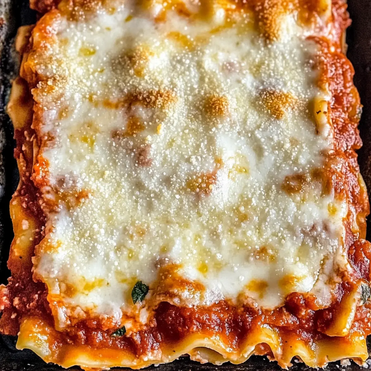 You’re about to discover a dish so comforting that it seems to wrap around you like a warm hug—Million Dollar Lasagna! This creamy, cheesy masterpiece brings families together and is bound to steal the spotlight at your next gathering. With its perfect balance of savory ground beef, rich marinara, and layers of melted cheese, it’s the ultimate comfort food that never fails to impress. Plus, with just a bit of prep and the ability to make it ahead of time, you’ll find it’s a fantastic go-to when you need a hearty meal without the fuss. Are you ready to dive into this cheesy delight and elevate your family’s dinner game? Let’s get cooking! Why Is Million Dollar Lasagna a Must-Try? Comforting Warmth: Each bite of this lasagna delivers a heartfelt hug, making it perfect for cozy family dinners. Easy Prep: With simple steps and common ingredients, even novice cooks can create this masterpiece effortlessly. Crowd-Pleasing Delight: This dish is sure to impress guests at any gathering, becoming a favorite they’ll request time and again. Make-Ahead Magic: Prepare it in advance and refrigerate or freeze for a stress-free solution to busy weeknight meals. Flavorful Layers: The combination of savory beef, tangy marinara, and creamy cheese creates a taste sensation you won’t forget. For even more delicious family meals, check out the Millionaire Peach Salad that pairs perfectly with any dish! Million Dollar Lasagna Ingredients • This list will guide you through what you need for the ultimate comfort food delight! For the Meat Sauce Ground Beef – A hearty protein that provides a satisfying texture and flavor. Marinara Sauce – Brings richness to your dish; consider using homemade for a personal touch. For the Layers Lasagna Noodles – Essential for structure; no-boil noodles save time in the kitchen. Ricotta Cheese – Adds creaminess; substitute with cottage cheese for a lighter option. Shredded Mozzarella Cheese – Melts beautifully, creating the gooey texture you crave. For the Flavor Grated Parmesan Cheese – Adds a nutty finish on top; try Pecorino Romano for a sharper taste. Egg – Binds the ricotta mixture; omit for a vegan version or swap for a flax egg. Italian Seasoning – Enhances the overall flavor; fresh herbs will amp up taste further. Salt and Pepper – Essential for seasoning; always adjust to your liking. Finishing Touches Aluminum Foil – Use to cover while baking to retain moisture before uncovering for a golden finish. Now that you have all the ingredients ready, it’s time to gather your loved ones and dive into the process of making this unforgettable Million Dollar Lasagna! Step‑by‑Step Instructions for Million Dollar Lasagna Step 1: Preheat and Cook Begin by preheating your oven to 375°F (190°C). In a large skillet over medium heat, add the ground beef and cook until browned, about 7-10 minutes. Drain any excess fat to keep the dish lighter. Stir in your marinara sauce, allowing it to simmer for 10 minutes until it thickens slightly and captures the delicious flavors of the beef. Step 2: Prepare the Noodles Cook the lasagna noodles according to the package instructions, usually boiling for about 8-10 minutes until al dente. Once done, drain them and lay them flat on a clean kitchen towel to prevent sticking. This will ensure your Million Dollar Lasagna layers stay neat and easy to assemble. Step 3: Mix the Ricotta Filling In a mixing bowl, combine the ricotta cheese, egg, Italian seasoning, salt, and pepper. Mix thoroughly until smooth and creamy, ensuring the ingredients are well incorporated. This rich mixture will add depth and creaminess to your lasagna, making every slice a delightful experience. Step 4: Assemble the Lasagna In a 9×13 inch baking dish, start by spreading a thin layer of the meat sauce on the bottom. Lay down 3 noodles, followed by half of the ricotta mixture, a layer of mozzarella, and a third of the meat sauce. Repeat the layering process until you finish with noodles topped with the remaining meat sauce and sprinkle with grated Parmesan cheese for the perfect finishing touch. Step 5: Bake the Lasagna Cover the assembled lasagna with aluminum foil to retain moisture and bake it in the preheated oven for 25 minutes. After this time, remove the foil and continue baking for an additional 15 minutes. You’ll know it’s done when the cheese is bubbling and golden brown, creating that irresistible cheesy crust. Step 6: Let It Rest Once you’ve taken the lasagna out of the oven, let it rest for 10 minutes before slicing. This will allow the layers to set, making it much easier to serve. The Million Dollar Lasagna will exude warmth and inviting aromas, ready to be enjoyed by your family and guests. Million Dollar Lasagna Variations Feel free to add your own twist to this comforting classic—your taste buds will thank you! Italian Sausage: Swap ground beef for Italian sausage for a spicier, more robust flavor that adds a delightful kick. Veggie Boost: Layer in sautéed spinach or mushrooms for extra nutrition and a burst of earthy goodness throughout the dish. Gluten-Free: Use gluten-free lasagna noodles to accommodate dietary preferences without sacrificing any of the delicious flavor. Spinach Ricotta: Mix fresh or frozen chopped spinach into your ricotta for a pop of color and nutrition that’s hidden between those cheesy layers. Creamy Alfredo: Replace marinara sauce with a homemade alfredo sauce for a rich and flavorful twist that elevates the creamy experience. Herbed Goodness: Enhance flavor by swapping dried Italian seasoning with fresh herbs like basil and oregano for a vibrant taste. Cheesy Trio: Incorporate a cheese blend like provolone or fontina along with mozzarella for a decadent melty surprise in every bite. Heat it Up: Add red pepper flakes to the sauce for a hint of warmth, creating a delicious balance to the creamy elements. For those searching for a refreshing salad to pair with your lasagna, don’t mi