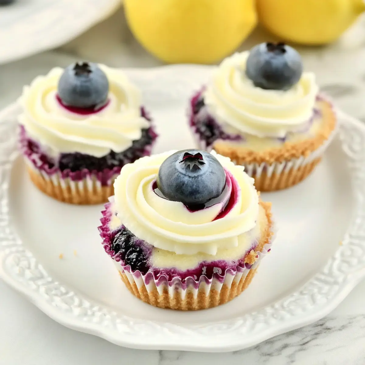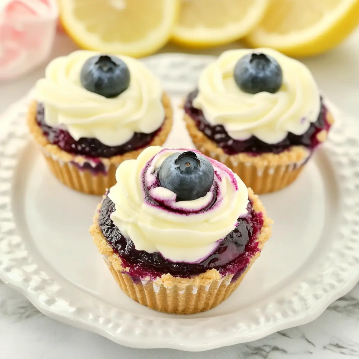 As I pulled open the fridge after a long day, an unexpected craving for something sweet washed over me. That’s when I remembered these delightful Mini Lemon Blueberry Cheesecakes. They’re the perfect balance of zingy lemon goodness intertwined with a luscious blueberry swirl, all enveloped in a buttery graham cracker crust. Not only are they a crowd-pleaser, but they also offer a refreshing twist on traditional desserts, making them ideal for spring gatherings like Mother’s Day. Plus, these little gems can be made ahead of time, freeing you up to enjoy the moment. Ready to treat yourself and your loved ones? Let’s dive into this light and creamy delight that’s sure to impress! Why are these cheesecakes a must-try? Delightful, These Mini Lemon Blueberry Cheesecakes offer a perfect blend of flavors that will tantalize your taste buds and refresh your palate. Versatile, You can easily switch up the berry swirl or skip it for a classic lemon cheesecake, making it suitable for any gathering. No-Bake Option, Ideal for warm days, these desserts require chilling, freeing you from time-consuming baking. Make Ahead, Prepare them a day in advance and simply refrigerate—perfect for busy schedules. Crowd-Pleasing, Their vibrant colors and luscious taste will impress loved ones at any event, especially for Mother’s Day. Serve with a dollop of whipped cream and perhaps alongside some lovely Fluffy Blueberry Pancakes Breakfast for a delightful brunch! Mother’s Day Mini Lemon Blueberry Cheesecakes Ingredients • Treat your mom to a delightful dessert with these Mother’s Day Mini Lemon Blueberry Cheesecakes—a refreshing addition to any celebration! For the Blueberry Swirl Fresh Blueberries – Adds natural sweetness and vibrant color; if unavailable, frozen blueberries work just as well. Granulated Sugar (for blueberry swirl) – Enhances sweetness of the blueberry mixture; adjust based on the tartness of your berries. Fresh Lemon Juice – Provides tartness to balance the sweetness of the cheesecake. Cornstarch – Thickens the blueberry swirl; can be omitted if you’re using store-bought blueberry compote. Water – Helps dissolve the cornstarch for a smooth consistency. For the Crust Graham Cracker Crumbs – Forms a buttery base; substitute with digestive biscuits if desired. Granulated Sugar (for crust) – Sweetens the crust slightly, enhancing flavor. Butter (melted) – Binds the crumb mixture together, giving it that perfect texture. For the Cheesecake Filling Cream Cheese – Creates a creamy, rich filling; ensure it’s softened to room temperature for easy mixing. Granulated Sugar (for filling) – Sweetens the cheesecake batter beautifully. Fresh Lemon Juice (for filling) – Reinforces the lemon flavor in the cheesecake for a refreshing taste. Lemon Zest – Adds aromatic citrus notes and enhances flavor. Pure Vanilla Extract – Introduces a lovely hint of sweetness and depth. Large Eggs – Provides structure and richness to the filling; ensure they are at room temperature for best results. These ingredients come together to create a dessert that your loved ones will adore! Step‑by‑Step Instructions for Mother’s Day Mini Lemon Blueberry Cheesecakes Step 1: Prepare Blueberry Swirl In a medium saucepan, combine fresh blueberries, sugar, and lemon juice over medium heat. Cook for about 5-7 minutes until the mixture starts bubbling, mashing the berries gently to release their juices. In a small bowl, whisk cornstarch with water until smooth, then pour it into the bubbling blueberry mixture, stirring continuously until thickened, about 2-3 minutes. Strain the sauce to remove solids and let it cool down to room temperature. Step 2: Make Graham Cracker Crust Preheat your oven to 325°F (165°C). In a mixing bowl, combine graham cracker crumbs, granulated sugar, and melted butter until well-blended and crumbly. Firmly press this crumb mixture into the bottom of a lined muffin pan, creating a solid base for the Mini Lemon Blueberry Cheesecakes. Bake for 5 minutes until lightly golden, then let them cool completely before adding the filling. Step 3: Prepare Lemon Cheesecake Filling In a large mixing bowl, use a hand mixer or stand mixer to beat softened cream cheese and sugar together until smooth and creamy, about 2-3 minutes. Gradually mix in fresh lemon juice, lemon zest, and vanilla extract until fully combined. Reduce the mixer speed and incorporate large eggs one at a time, ensuring not to overmix the filling to keep it smooth. Step 4: Assemble Carefully distribute the creamy cheesecake filling evenly into each cooled crust, filling them about three-quarters full. Spoon the cooled blueberry swirl over the top of each cheesecake, and use a toothpick to create a beautiful marbling effect by swirling the blueberry mixture into the cheesecake batter. Step 5: Bake Place the assembled mini cheesecakes in the preheated oven and bake at 325°F (165°C) for 17-20 minutes or until the edges are set but the centers remain a bit wobbly. After removing them from the oven, let them cool on a wire rack for about 1 hour. Step 6: Chill Before Serving Once cooled to room temperature, cover the mini cheesecakes with plastic wrap and refrigerate for at least 3-4 hours, or overnight if possible. Chilling enhances the flavors and allows them to set beautifully, making your Mother’s Day Mini Lemon Blueberry Cheesecakes perfect for serving at your gathering. What to Serve with Mini Lemon Blueberry Cheesecakes Looking to create a memorable dining experience that gloriously complements these delightful treats? Whipped Cream: This airy topping adds a lightness that balances the tangy lemon and the sweet blueberry swirl beautifully. Fresh Berries: A colorful assortment of strawberries or raspberries can brighten your plate and enhance the fruity flavor profile. Picture a scattering of juicy berries around each cheesecake, adding both visual appeal and freshness. Mint Leaves: Fresh mint not o