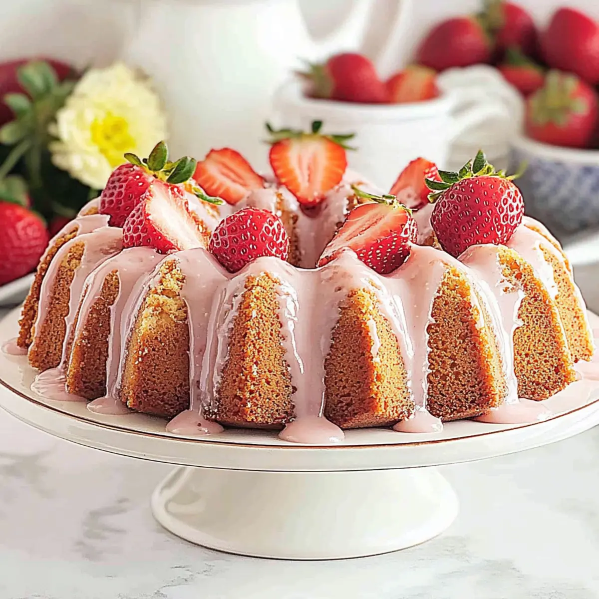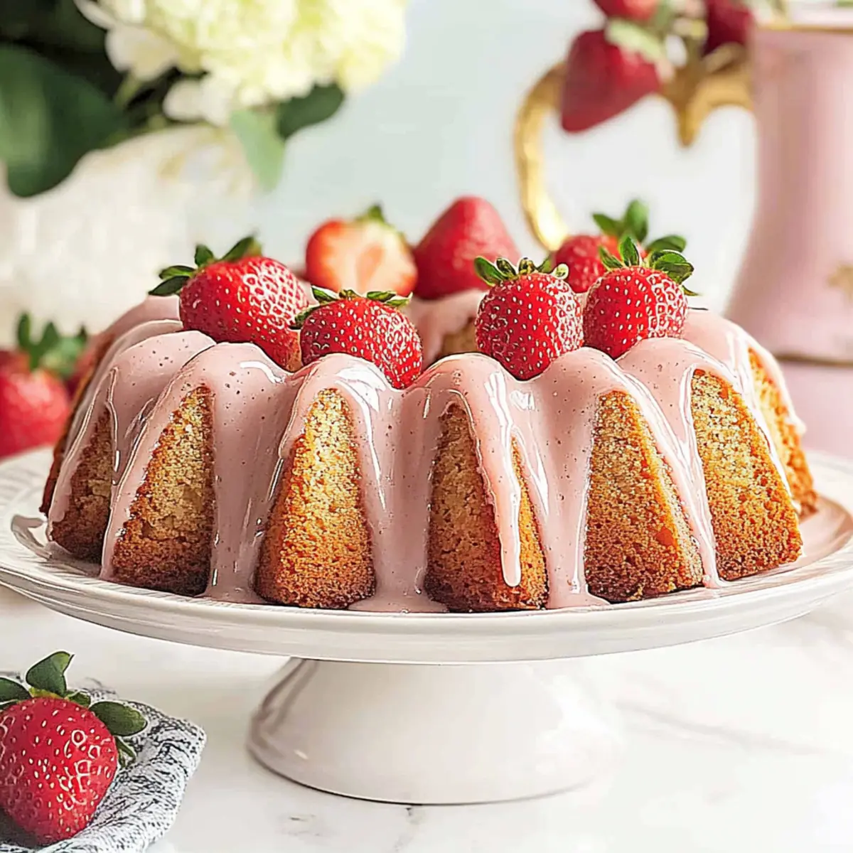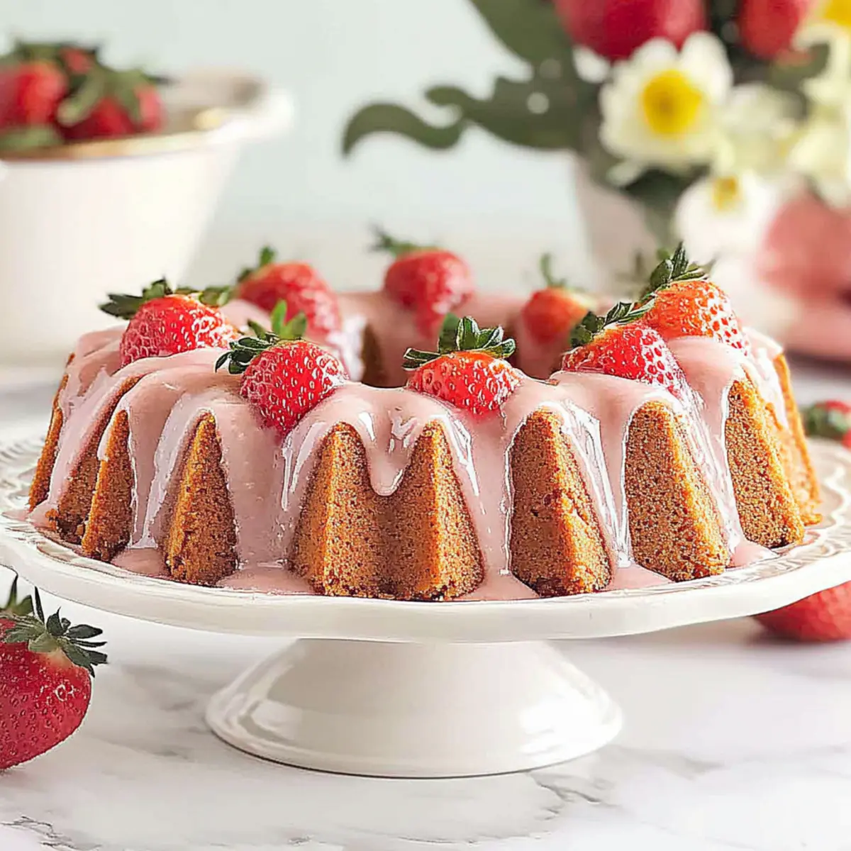As the scent of strawberries fills the air, I can’t help but smile at the thought of creating something as delightful as Mini Strawberry Bundt Cakes. These charming little treats are perfect for Mother’s Day, bringing a touch of sweetness that warms the heart. Not only do they boast an easy prep that even novice bakers can master, but they also present beautifully, making them a fantastic centerpiece for any spring gathering. Dressed with a luscious strawberry glaze and topped with fresh berries, these cakes add a vibrant pop of color and flavor to your table. Whether you’re planning a brunch or looking for a thoughtful gift, you’ll find these mini bundt cakes are sure to impress everyone. So why wait? Let’s dive into the joy of baking and create memories that taste as good as they look! Why Are Mini Bundt Cakes So Special? Irresistible Charm: These mini strawberry bundt cakes are not only cute but also filled with the delicious essence of fresh strawberries that will delight everyone at your gathering. Easy to Make: The straightforward steps ensure that even beginner bakers can whip these up quickly, just like our other popular recipes such as Fluffy Blueberry Pancakes Breakfast or Cucumber Strawberry Salad. Versatile Occasion: Perfect for Mother’s Day or any spring event, these sweet treats make an excellent addition to brunch or send as a delightful gift to loved ones. Beautiful Presentation: With a shiny strawberry glaze and fresh fruit on top, they create a striking centerpiece that enhances any dessert table. Light and Moist: Unlike traditional dense cakes, these mini delights are fluffy and moist, making them utterly satisfying. You’ll be sure to impress everyone, just like the Stuffed Cheesecake Pancakes you’ve enjoyed before! Mother’s Day Mini Strawberry Bundt Cakes Ingredients For the Batter • Granulated Sugar – Adds sweetness and helps create a tender crumb. Note: Essential for flavor; do not substitute with artificial sweeteners. • Unsalted Butter – Provides richness and moisture. Note: Ensure it’s at room temperature for proper creaming. • Eggs – Bind the ingredients and contribute to cake structure. Note: Large eggs are typically used; can substitute with flax eggs for a vegan option. • Milk – Keeps the batter smooth and light. Substitution: Half & Half or water can be used for the glaze. • Sour Cream – Keeps the cakes moist and adds a slight tang. Substitution: Plain yogurt can be used in place of sour cream. • Strawberry Extract – Enhances the strawberry flavor in the cakes. Note: Can be replaced with another extract, like vanilla or almond, for a different flavor. • Vanilla Extract – Adds warmth and depth to the cake flavor. Note: Optional but recommended; consider experimenting with other extracts. • All-Purpose Flour – Provides structure to the cakes. Substitution: Gluten-free flour can be used for a gluten-free version. • Baking Powder – Leavening agent that helps the cakes rise. Note: Ensure it is fresh for the best rise. • Salt – Enhances and balances the sweetness of the cake. Note: Only a small amount is needed. • Strawberry Gelatin (3-ounce box) – Intensifies strawberry flavor and color. Note: Optional but improves color; can use another flavor of gelatin if desired. • Food Coloring (optional) – For achieving a vibrant pink hue. Note: Adjust the amount used for desired pink shade; not necessary for flavor. For the Glaze • Icing Sugar – Base for the glaze that adds sweetness. • Milk – To create a smooth glaze consistency. • Strawberry Extract – Enhances the glaze flavor and ties it back to the cake. For Garnishing • Fresh Strawberries (for garnish) – Adds a fresh, juicy topping enhancing presentation and flavor of your Mother’s Day Mini Strawberry Bundt Cakes. Step‑by‑Step Instructions for Mother’s Day Mini Strawberry Bundt Cakes Step 1: Preheat and Prepare Preheat your oven to 350°F (175°C). While the oven warms up, generously grease and flour your mini bundt pans. This step ensures that your Mother’s Day Mini Strawberry Bundt Cakes will release easily after baking. Set the prepared pans aside in a safe place while you mix the batter. Step 2: Cream Sugar and Butter In a stand mixer, combine granulated sugar and room temperature unsalted butter. Beat on medium-high speed for about 2 minutes until the mixture is light and fluffy, turning a pale yellow. The creaming process helps to incorporate air into the cake, giving it a lovely rise and tender texture. Step 3: Add Eggs and Wet Ingredients Next, add in your eggs one at a time, ensuring each is fully incorporated before adding the next. Pour in the milk, sour cream, strawberry extract, and vanilla extract, mixing until just combined. This collective blend brings rich moistness and a delightful flavor to your Mini Strawberry Bundt Cakes. Step 4: Mix Dry Ingredients In a separate bowl, whisk together all-purpose flour, baking powder, salt, and strawberry gelatin. Gradually add this dry mixture to the wet ingredients in the mixer on low speed. Mix until just combined to avoid over-mixing, as it could lead to a tougher texture in your cakes. Step 5: Color the Batter (Optional) If you choose to use food coloring for a vibrant hue, now’s the time! Stir in small amounts gradually until the batter reaches your desired shade of pink. This step is optional, but it adds a cheerful touch to your Mother’s Day Mini Strawberry Bundt Cakes. Step 6: Fill the Pans and Bake Carefully pour the batter into your prepared mini bundt pans, filling each about two-thirds full to allow space for rising. Bake in the preheated oven for approximately 30 minutes, or until a toothpick inserted in the center comes out clean. Keep an eye on these beauties, as oven temperatures can vary! Step 7: Cool the Cakes Once baked, allow the mini bundt cakes to cool in the pans for about 15 minutes. Gently jiggle the pans to help release the cakes before caref