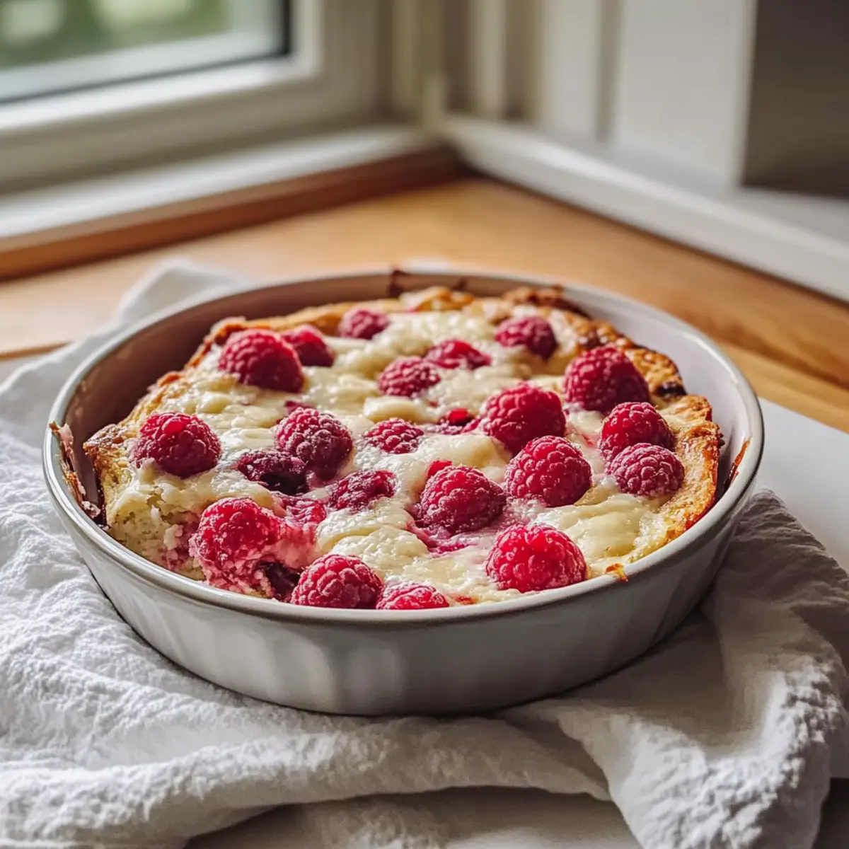 Amid the morning hustle, I stumbled upon a delightful little secret: the Raspberry and White Chocolate Bake, a perfect blend of tart and sweet that transforms breakfast into a special occasion. This dish captures the joy of homemade meals with its simple prep time of just 10 minutes, ensuring you won’t need to sacrifice convenience for flavor. Plus, it’s low lactose and wholesome, making it a guilt-free treat that feels indulgent yet nourishing. Imagine delighting your loved ones with a slice reminiscent of dessert while starting the day on a positive note! Are you ready to elevate your breakfast game this Mother’s Day? Why is this bake a must-try? Irresistible combination: Raspberry and white chocolate marry perfectly in this easy breakfast bake, making mornings feel delightfully indulgent. Quick prep: With just 10 minutes of prep time, you can whip this treat up in no time, perfect for when you have guests over or just want to spoil yourself. Wholesome goodness: Made with nutritious ingredients like cottage cheese and almond flour, this bake is a guilt-free pleasure that your family will adore. Versatile option: Don’t hesitate to experiment; try it with oat flour or dairy-free yogurt, making it accommodating for various dietary preferences. Crowd-pleaser: Perfect for Mother’s Day celebrations, this bake will impress everyone, turning breakfast into a memorable occasion. Pair it with a dollop of Greek yogurt for extra flavor! Mother’s Day Raspberry and White Chocolate Bake Ingredients For the Bake Frozen Raspberries – A tart burst of flavor; use these to avoid excess moisture from fresh berries. Cornstarch – Helps absorb liquid and keep the bake from getting soggy. Cottage Cheese – Adds creaminess and protein; swap with dairy-free yogurt for a dairy-free option, though the texture may differ. Eggs – Essential for binding the ingredients, providing structure for the bake. Almond Flour – Adds moisture and a nutty flavor; gluten-free flour can be substituted easily. Maple Syrup – Acts as a natural sweetener; feel free to use honey as a substitute. Vanilla Extract – Enhances the flavors of the bake magnificently. White Chocolate Chips – Offers sweet, creamy pockets throughout; vegan options are available for a dairy-free version. Optional Toppings Greek Yogurt – A delicious dollop adds creaminess when served, perfect for a Mother’s Day touch. Fresh Raspberries – Sprinkling these on top makes for a beautiful, eye-catching presentation that also adds freshness. Experience the joy of a Mother’s Day Raspberry and White Chocolate Bake that brightens your mornings and hearts alike! Step‑by‑Step Instructions for Mother’s Day Raspberry and White Chocolate Bake Step 1: Preheat and Prepare Begin by preheating your oven to 350°F (175°C). While the oven heats, grease a 9-inch pie dish with butter or non-stick spray to ensure easy removal of your delicious Mother’s Day Raspberry and White Chocolate Bake once it’s done baking. Set the prepared dish aside while you get your ingredients ready. Step 2: Toss the Raspberries In a small bowl, toss the frozen raspberries with a tablespoon of cornstarch. This step is crucial as it helps absorb any excess moisture during baking, preventing your bake from becoming soggy. After the raspberries are coated, set them aside to allow the cornstarch to work its magic while you focus on the batter. Step 3: Blend the Batter In a blender, combine cottage cheese, eggs, almond flour, maple syrup, and vanilla extract. Blend the mixture on high until it is smooth and silky, which should take about 30 seconds. This creamy blend forms the foundation of your Raspberry and White Chocolate Bake, ensuring it has a delightful texture and flavor profile. Step 4: Fold in the Chocolate Once your batter is perfectly blended, transfer it into a mixing bowl. Gently fold in the white chocolate chips, being careful not to over-mix. This will ensure the chocolate is evenly distributed throughout the batter while maintaining the light texture you want for your Mother’s Day Raspberry and White Chocolate Bake. Step 5: Assemble and Top Pour the batter into your greased pie dish, ensuring an even layer. Next, sprinkle the coated raspberries evenly over the top of the batter, creating a beautiful contrast of colors and adding bursts of tart flavor. This step not only enhances the presentation but also ensures each bite is packed with deliciousness. Step 6: Bake to Perfection Place the pie dish in the preheated oven and bake for 35-40 minutes. Keep an eye on the edges, which should turn a lovely golden brown, while the center may still jiggle slightly. This visual doneness signals that your Mother’s Day Raspberry and White Chocolate Bake is perfectly cooked, ready to be enjoyed. Step 7: Cool and Slice After baking, remove the dish from the oven and allow it to cool for about 15 minutes. This cooling time is important as it helps the bake set, making it easier to slice without crumbling. Once cooled, cut into wedges and serve to delight your family with this wholesome breakfast treat. Make Ahead Options These Mother’s Day Raspberry and White Chocolate Bake preparations are perfect for busy home cooks looking to save time! You can prepare the batter up to 24 hours in advance by blending together the cottage cheese, eggs, almond flour, maple syrup, and vanilla extract. Store it in an airtight container in the refrigerator to maintain its quality. Additionally, you can toss the frozen raspberries with cornstarch ahead of time to prevent excess moisture. When you’re ready to bake, simply fold in the white chocolate chips and pour the mixture into the prepared pie dish, then add the raspberries on top before baking. This way, you’ll have a delightful breakfast treat with minimal morning effort! What to Serve with Raspberry and White Chocolate Bake Imagine a delightful breakfast spread that perfectly complements the sweet and tart notes of this delic