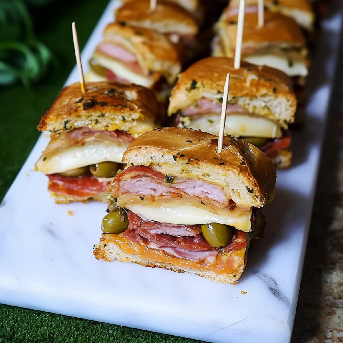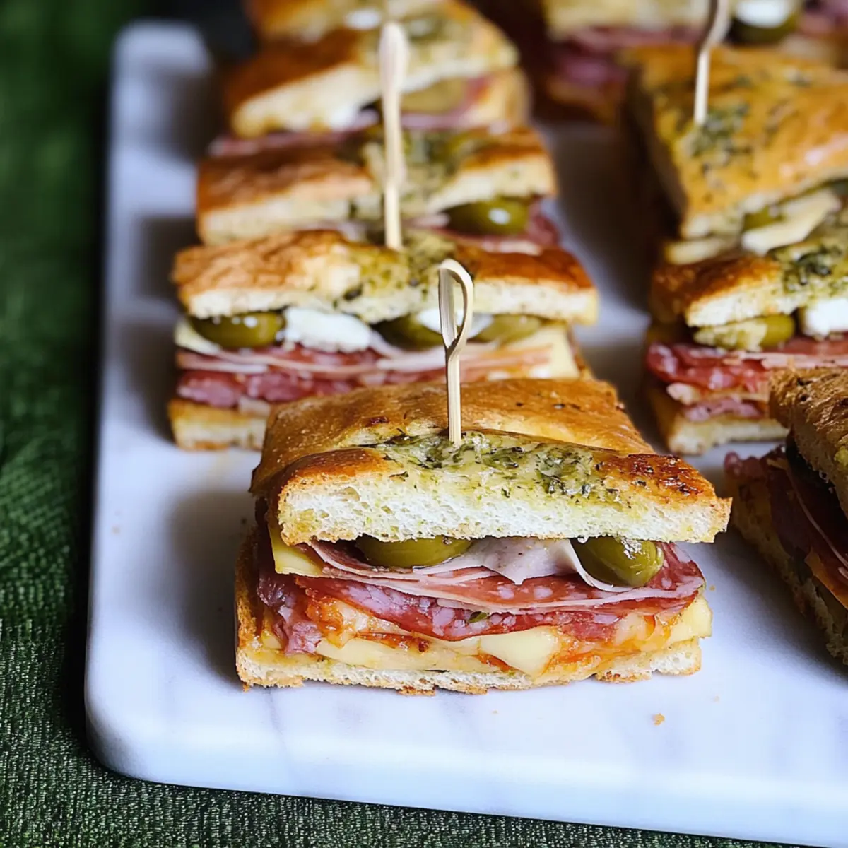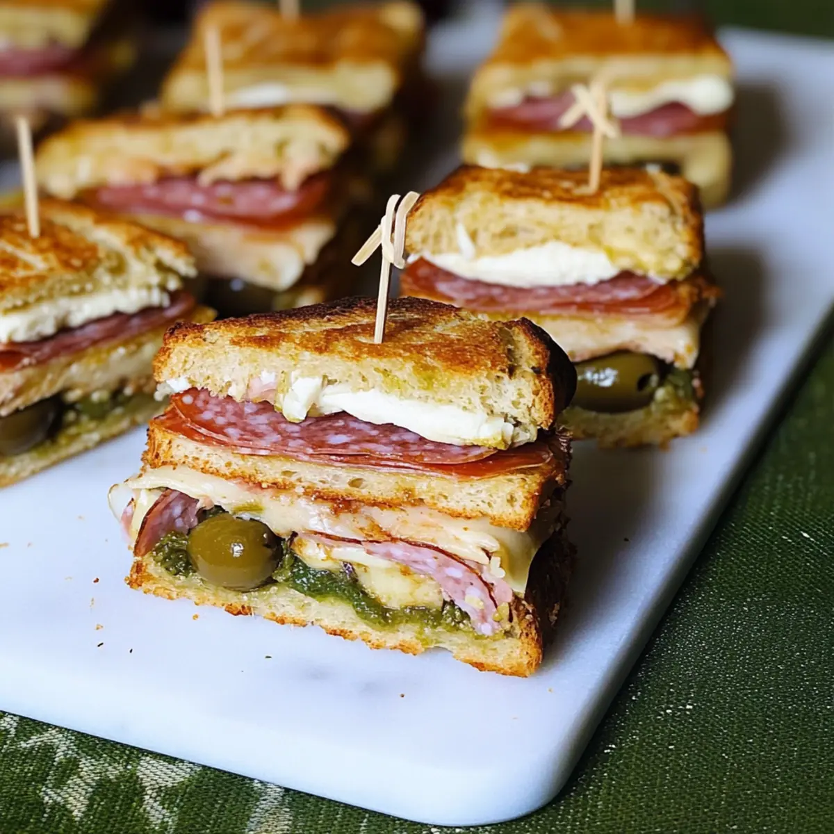 As I watched my friends gather around, eagerly reaching for bite-sized snacks, the craving for a little culinary adventure struck me. Enter the New Orleans Style Muffaletta Sandwich Bites—miniature wonders that pack a punch of flavor. These savory delights are not only a breeze to whip up, but they’re also the perfect crowd-pleaser for game days or gatherings. Crisp bread cradles a luscious, herb-infused olive tapenade accented with layers of assorted cold cuts, delivering a tasting experience that’s both satisfying and unforgettable. Plus, they’re customizable—perfect for any palate. Ready to impress your guests with a bite of Big Easy charm? Let’s dive in! Why are Muffaletta Sandwich Bites irresistible? Bold flavors: Enjoy the distinct taste of New Orleans in every bite, featuring a vibrant olive tapenade that’s packed with herbs. Quick and easy: These tasty bites come together with minimal prep, making them perfect for even novice cooks. Ultimate crowd-pleaser: Ideal for parties, game days, or casual gatherings, they’re sure to impress your guests and keep everyone coming back for more. Versatile options: Switch up the ingredients to cater to dietary preferences, like using grilled vegetables or a lighter protein, ensuring everyone can join the feast. Perfectly portable: These small snacks are easy to serve and great for on-the-go munching, whether you’re at home or hosting an event. For more delicious bites, don’t miss our Cheesy Mashed Bites or Butter Steak Bites. New Orleans Style Muffaletta Ingredients For the Bread Ciabatta or Italian loaf – Provides a sturdy base for the bites; gluten-free options can work well too. For the Olive Tapenade Green and black olives – Bursting with flavor and tang; jarred tapenade can be used for convenience. Olive oil – Helps blend the flavors while adding richness; high-quality oil makes a noticeable difference. Red wine vinegar – Adds a touch of acidity to balance the flavors; balsamic can substitute for a sweeter note. Fresh herbs (e.g., oregano, parsley) – Bring vibrant freshness to the tapenade; dried herbs can be used in a pinch. For the Filling Salami – A spicy, hearty component that enhances the bites; turkey or chicken provide a lighter alternative. Provolone cheese – Melts beautifully and complements the savory meats; mozzarella is a milder substitute. Pepperoncini – Adds a tangy kick; can be left out if you prefer a milder flavor. For Serving Toothpicks – Essential for easy serving and enjoyment; colorful ones can add a festive touch. Pickles or light salad – Pair these bites with a refreshing side for a complete appetizer experience. Experience the delightful tastes of New Orleans Style Muffaletta Sandwich Bites and impress your friends at any gathering! Step‑by‑Step Instructions for New Orleans Style Muffaletta Sandwich Bites Step 1: Prepare the Tapenade Begin by finely chopping equal parts green and black olives, about 1 cup total, and place them in a mixing bowl. Add 2 tablespoons of olive oil, 1 tablespoon of red wine vinegar, and a handful of freshly chopped herbs like oregano and parsley. Mix well and let the tapenade sit for at least 30 minutes, allowing the flavors to meld together beautifully. Step 2: Slice the Bread While the tapenade develops its flavor, slice your ciabatta or Italian loaf into even 1-inch thick rounds. For a bit of crunch, lightly toast the slices under the broiler for about 2-3 minutes per side until they turn golden and crispy. This ensures your New Orleans Style Muffaletta Sandwich Bites won’t become soggy once assembled. Step 3: Assemble the Bites On each toasted bread slice, layer a generous spread of olive tapenade. Next, add a slice of salami followed by a slice of provolone cheese. If you enjoy a bit of heat, tuck a few pepperoncini slices in there too. Repeat the process until all bread is topped with delicious fillings, creating those delightful Muffaletta bites ready for serving. Step 4: Secure and Serve Using colorful toothpicks, secure each assembled bite to keep everything in place. Arrange your New Orleans Style Muffaletta Sandwich Bites attractively on a serving platter. They’re best enjoyed immediately while the bread remains crispy, but can also be refrigerated for up to 24 hours if needed. Enjoy sharing these savory bites with your guests! New Orleans Style Muffaletta Sandwich Bites Variations Feel free to play around with these delightful bites, adding your own twist or catering to specific tastes today! Vegetarian Swap: Replace salami with grilled vegetables or a chickpea spread for a satisfying vegetarian option. Your veggie-loving friends will thank you! Dairy-Free Delight: Use dairy-free cheese alternatives instead of provolone to keep it creamy without the dairy. A cashew-based cheese adds a nice touch! Spicy Kick: Spice things up with a sliced jalapeño or a drizzle of hot sauce in each bite. For true heat seekers, this is a must-try! Flavorful Feta: Swap provolone for crumbly feta cheese to add a tangy twist that complements the tapenade beautifully. It’s a Mediterranean spin that’s sure to impress! Different Greens: Consider mixing fresh herbs into your tapenade, like basil and thyme for additional layers of flavor. Each herb brings its own unique freshness! Artisan Bread: Try using focaccia for a softer, more flavorful bread base. This twist will create a heartier bite that’s completely delicious on its own. Olive Tapenade Variations: Experiment with different olive mixtures or even add sun-dried tomatoes for an interesting flavor profile. It’s a great way to discover new tastes! Mini Muffaletta Sliders: Instead of bites, assemble mini sliders using smaller buns. These can be piled high and are a delightful twist at larger gatherings. Perfect for sharing, too! Each variation offers a new experience to savor while celebrating the classic taste of New Orleans. If you’re looking for more tasty appetizers to impress guests, che