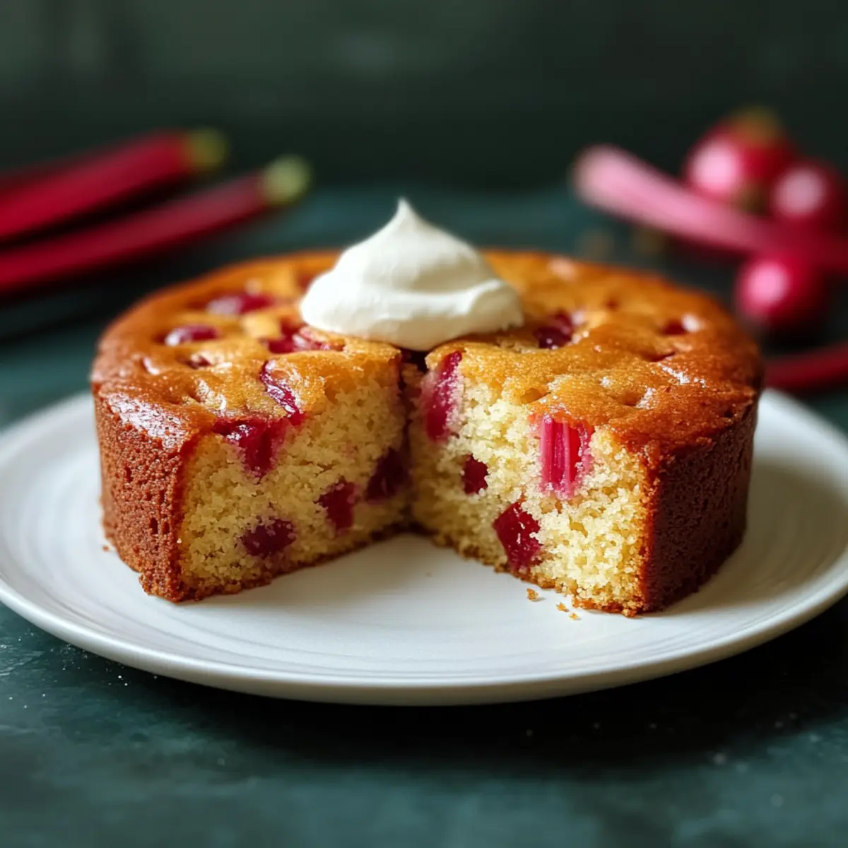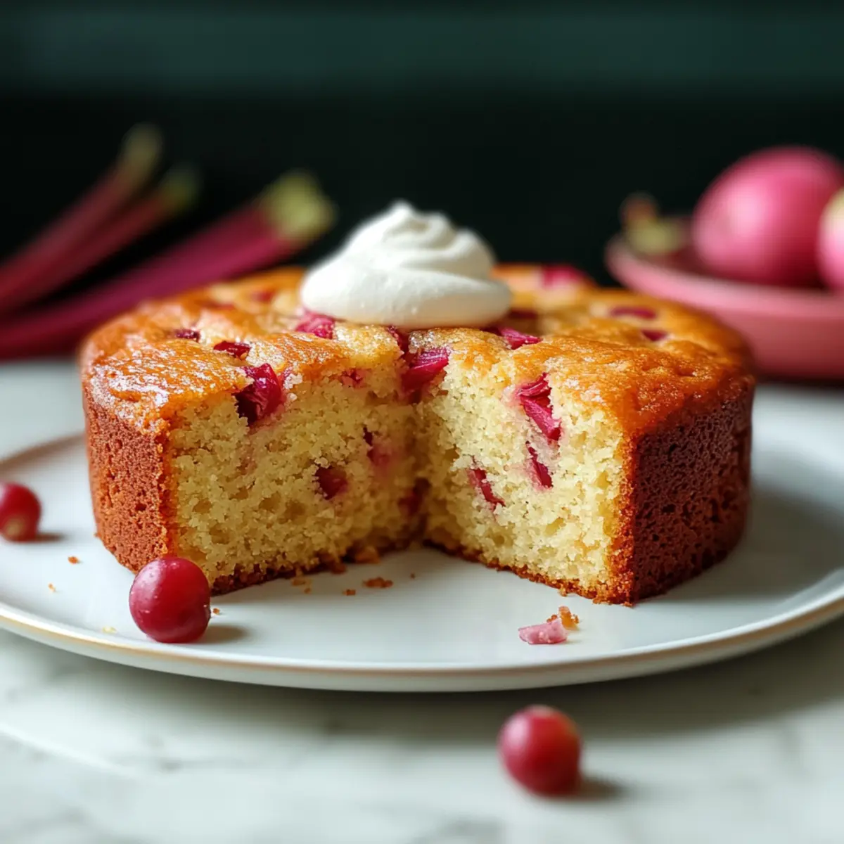 As I wandered through the garden the other day, I spotted the vibrant pink stalks of rhubarb peeking through the greenery—an unmistakable sign that spring had finally arrived. Inspired by this seasonal treasure, I couldn’t resist baking an Old-Fashioned Rhubarb Cake with Buttermilk. This recipe weaves together delightful tanginess and moist tenderness, reminiscent of cherished family gatherings where the aroma of fresh baking fills the air. With minimal fuss and straightforward steps, it’s perfect for both budding bakers and seasoned pros alike. Plus, it’s a wonderfully versatile recipe, allowing you to add your favorite fruits or toppings for an exciting twist. Curious about how a simple combination of ingredients can create such a comforting dessert? Let’s dive in! Why Is Rhubarb Cake So Special? Nostalgic Comfort: This Old-Fashioned Rhubarb Cake takes you back to those warm family gatherings, where every bite tells a story. Moist and Tender: Thanks to the rich buttermilk, you’ll enjoy a cake that’s incredibly soft with just the right amount of tang from the rhubarb. Versatile Delight: Feel free to mix in other fruits, like strawberries or blueberries, to create your own twist on this classic. Quick & Easy: With simple ingredients and straightforward steps, it’s perfect for bakers of all skill levels. Irresistible Aroma: The scent of this cake baking will fill your kitchen with warmth, making it ideal for afternoon snacks or cozy breakfasts. Old-Fashioned Rhubarb Cake Ingredients For the Cake • Rhubarb – Choose crisp, bright stalks; wash and chop just before use to maintain texture. • Buttermilk – Ensures a tender and moist cake due to its acidity breaking down gluten; if unavailable, use milk with a tablespoon of vinegar or lemon juice as a quick alternative. • Unsalted Butter – Adds richness and flavor; using unsalted allows better control over sodium. • Granulated Sugar – Sweetens the cake and contributes to its structure; consider using brown sugar for added moisture and depth. • Eggs – Binds ingredients and provides structure; for an egg-free option, substitute with flaxseed meal mixed with water. • All-Purpose Flour – Forms the base structure of the cake; gluten-free flour can be used for those with gluten sensitivity. • Baking Soda – Acts as a leavening agent; no substitutes are recommended. • Salt – Enhances flavor; essential for a well-balanced cake. For Optional Toppings • Whipped Cream – A dollop on top adds a light and creamy element to the tangy cake. • Ice Cream – Vanilla ice cream pairs wonderfully for an indulgent treat. • Nuts – Chopped nuts can be added for extra texture and flavor. Step-by-Step Instructions for Old-Fashioned Rhubarb Cake with Buttermilk Step 1: Preheat the Oven and Prepare the Pan Begin by preheating your oven to 350°F (175°C). While the oven warms up, take an 8-inch square baking pan and grease it with unsalted butter or line it with parchment paper for easy removal. This ensures your Old-Fashioned Rhubarb Cake with Buttermilk will bake evenly and won’t stick to the pan. Step 2: Cream Butter and Sugar In a large mixing bowl, combine softened unsalted butter and granulated sugar. Using an electric mixer, cream them together on medium speed for about 3-5 minutes until the mixture becomes light and fluffy. This step is essential for achieving a tender texture in your cake! Next, add in the eggs and vanilla extract, mixing until everything is well incorporated and smooth. Step 3: Combine Dry Ingredients In a separate bowl, whisk together all-purpose flour, baking soda, and a pinch of salt. If you prefer a hint of warmth, you can also include ground cinnamon or nutmeg. This mixture is essential for providing structure to your Old-Fashioned Rhubarb Cake with Buttermilk, so ensure there are no clumps and the ingredients are evenly mixed. Step 4: Mix Wet and Dry Ingredients Gradually add the dry ingredients to the wet mixture, alternating with the buttermilk to ensure everything is well combined. Start with a portion of the dry mix, then a splash of buttermilk, and continue this process until all ingredients are just combined. Be careful not to overmix, as this can affect the cake’s texture. Step 5: Fold in the Rhubarb After the batter is created, gently fold in the chopped rhubarb using a spatula. Ensure the rhubarb is evenly distributed throughout the batter, as it brings a delightful tanginess to your Old-Fashioned Rhubarb Cake with Buttermilk. Take care to maintain the airiness of the mixture to achieve that perfect tender crumb. Step 6: Transfer the Batter to the Pan Pour the rhubarb cake batter into the prepared baking pan, using a spatula to spread it out evenly. Smooth the top to create an even surface, which will help the cake rise uniformly in the oven. The vibrant colors of the rhubarb will peek out beautifully once baked! Step 7: Bake the Cake Place the pan in the preheated oven and bake for 35-40 minutes. To check if your Old-Fashioned Rhubarb Cake with Buttermilk is done, insert a toothpick into the center; it should come out clean or with a few moist crumbs, but not wet batter. Keep an eye on it to prevent over-baking, as each oven can vary. Step 8: Cool and Serve Once baked, remove the cake from the oven and let it cool in the pan for about 10-15 minutes. After it’s slightly cooled, gently transfer it to a wire rack to cool completely. Once cooled, slice your Old-Fashioned Rhubarb Cake with Buttermilk, and serve it warm or at room temperature—perhaps with a dollop of whipped cream or a scoop of vanilla ice cream for an extra treat! How to Store and Freeze Old-Fashioned Rhubarb Cake Room Temperature: Store the cake in an airtight container at room temperature for up to 3-4 days. This keeps it moist and delicious for your afternoon snacks or breakfast. Fridge: If you’d like to extend its freshness, refrigerate the cake. Wrapped tightly, it will last for up to a week, retai