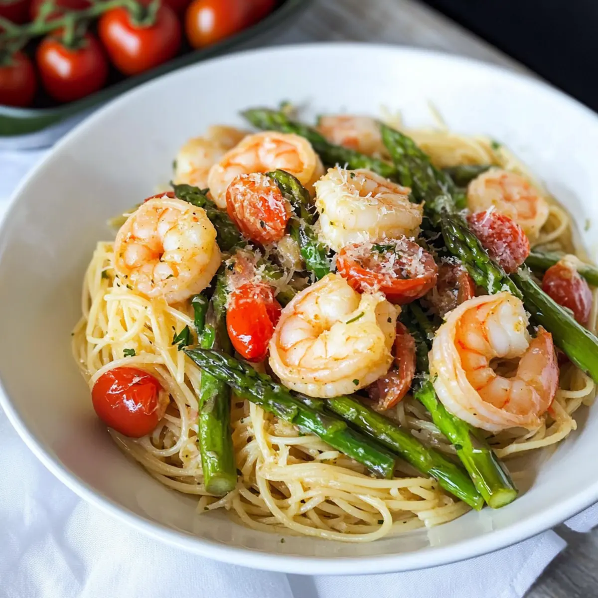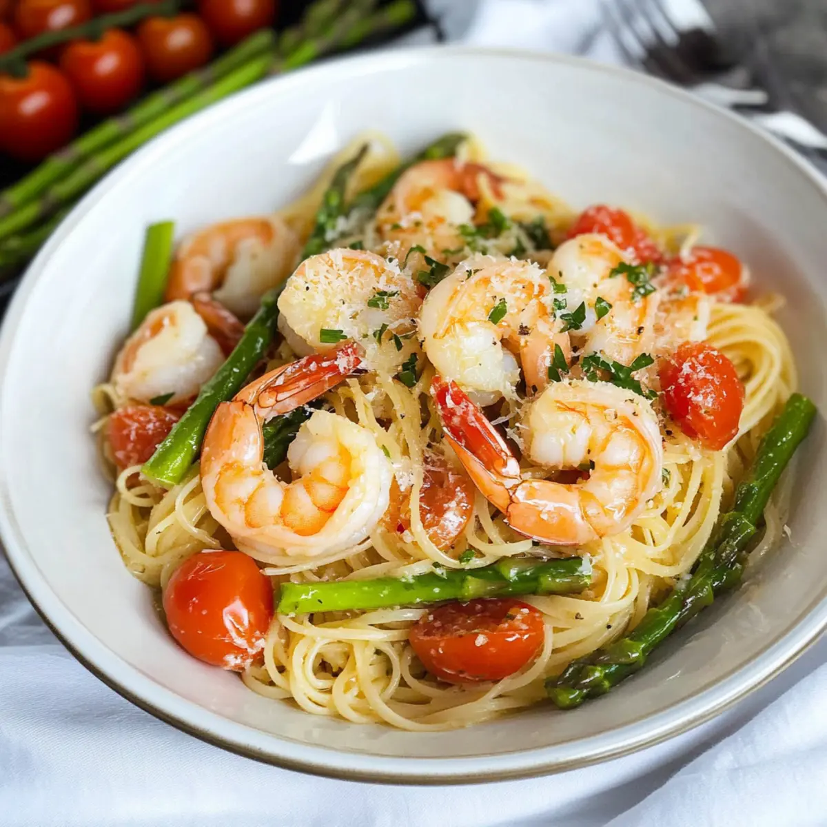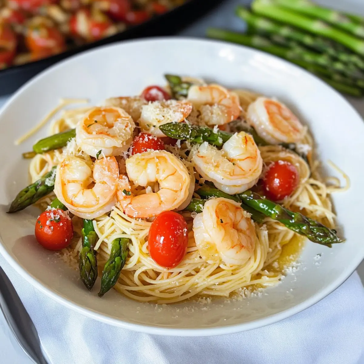 As I stirred the pot, the tantalizing smell of garlic and butter filled the kitchen, instantly transporting me to a cozy Italian bistro. This Copycat Olive Garden Shrimp Scampi is my go-to recipe for when I crave a quick dinner that feels like a night out. With just 20 minutes to spare, you can dive into a delightful plate of tender angel hair pasta, fresh shrimp, and vibrant veggies, making this dish not only a fantastic crowd-pleaser but also a healthy upgrade for your weeknight routine. Best of all, it’s a breeze to whip up, allowing you to savor those home-cooked flavors without the fuss. Don’t you want to know how to recreate that restaurant magic at home? Let’s get cooking! Why is this shrimp scampi a must-try? Quick and Easy: With just 20 minutes of your time, you can enjoy an impressive meal that rivals any restaurant dish. Flavor Explosion: The triumphant combination of buttery garlic, tender shrimp, and bright cherry tomatoes creates a savory experience worthy of a night out. Versatile Ingredients: Feel free to swap out shrimp for scallops or even chicken, making it adaptable for everyone at the table. Healthy Comfort: Packed with fresh veggies, this dish brings warmth and satisfaction without the guilt—perfect for elevating your weeknight meals! Fun to Make: Cooking becomes a joy as you fill your kitchen with delicious aromas, reminiscent of a charming Italian bistro. For a delicious side, consider pairing it with a Hearty Olive Garden salad! Olive Garden Shrimp Scampi Ingredients • Discover the magic behind this amazing pasta dish with these essential ingredients: For the Pasta Angel Hair Pasta – The foundation of this dish, providing a delicate texture; feel free to substitute with linguine if you prefer a different pasta type. For the Sauce Olive Oil – Key for sautéing, it brings out the rich flavors; butter can also be used for a heartier taste. Sweet Yellow Onion – Adds a beautiful sweetness and depth; shallots offer a milder alternative. Garlic – The aromatic star of the show; fresh minced garlic elevates the dish, while garlic powder can be a convenient substitute. Butter – Creates that luxurious sauce; for a lighter option, use half the amount or switch to margarine. White Wine – Infuses the sauce with acidity and depth; replace with chicken broth for a non-alcoholic version and still keep it delicious! For the Vegetables Asparagus – Provides a refreshing crunch and nutrition; consider green beans if you’re looking for a change or simply leave it out. Cherry Tomatoes – Add a sweet and tangy contrast; grape tomatoes are a perfect substitute or you can skip it altogether for simplicity. Parsley – Fresh herb for garnishing, adding a pop of color and a burst of freshness; basil or thyme are great alternatives. For the Flavor Crushed Red Pepper – Introduces a hint of heat; feel free to adjust to your spice preference or omit entirely if milder is your thing. Salt & Black Pepper – Essential seasonings to enhance all flavors, adjusting according to your taste. For the Protein Medium Raw Shrimp – The main protein, offering quick cooking and tender bites; always opt for fresh shrimp for the best flavor! With these Olive Garden Shrimp Scampi ingredients, you’re all set to create a delightful dish that brings the restaurant experience right to your home. Happy cooking! Step‑by‑Step Instructions for Olive Garden Shrimp Scampi Copycat Step 1: Cook the Pasta Begin by bringing a large pot of salted water to a rolling boil over high heat. Add the angel hair pasta and cook according to package instructions until al dente, usually about 4-6 minutes. Drain the pasta and set it aside in a colander, allowing it to rest while you prepare the rest of the dish. Step 2: Sauté the Onions In a large skillet, heat 3 tablespoons of olive oil over medium heat. Once the oil is shimmering, add the diced sweet yellow onion. Sauté the onions for about 2 minutes, stirring occasionally, until they are softened and translucent, creating a flavorful base for your Olive Garden Shrimp Scampi. Step 3: Add the Garlic Next, introduce the minced garlic to the skillet, stirring quickly to combine. Sauté for an additional minute, being careful not to let the garlic brown, as this may impart a bitter taste. The kitchen will be filled with a delightful aroma as the garlic cooks, enhancing the overall flavor of the sauce. Step 4: Create the Sauce Incorporate the butter, chopped asparagus, and sliced cherry tomatoes into the skillet, stirring gently. Pour in the white wine or chicken broth, followed by a pinch of crushed red pepper, salt, and black pepper. Allow the mixture to simmer for about 5 minutes, until the sauce has reduced by half, creating a rich and flavorful foundation. Step 5: Cook the Shrimp Gently add the raw shrimp to the pan, making sure they are evenly coated in the sauce. Cook for 1-2 minutes, stirring occasionally, until the shrimp turn opaque and curl up, indicating they are perfectly cooked. Be careful not to overcook the shrimp, as they can become tough if left too long in the heat. Step 6: Combine Pasta and Sauce Once the shrimp are cooked through, pour in ½ cup of reserved pasta water to the skillet, helping to combine everything. Add the drained angel hair pasta and gently toss everything together, ensuring the pasta is well-coated in the buttery garlic sauce. Remove the skillet from heat. Step 7: Garnish and Serve Finally, dish out the Olive Garden Shrimp Scampi onto plates. Sprinkle with freshly chopped parsley for a burst of color and freshness. For an extra touch, you may add a sprinkle of Parmesan cheese and a squeeze of fresh lemon juice. Serve immediately, delighting in your homemade Italian creation! How to Store and Freeze Olive Garden Shrimp Scampi Fridge: Store leftovers in an airtight container for up to 3 days. This allows you to enjoy your tasty Olive Garden Shrimp Scampi later without losing flavor. Freezer: Avoid freezing this dis