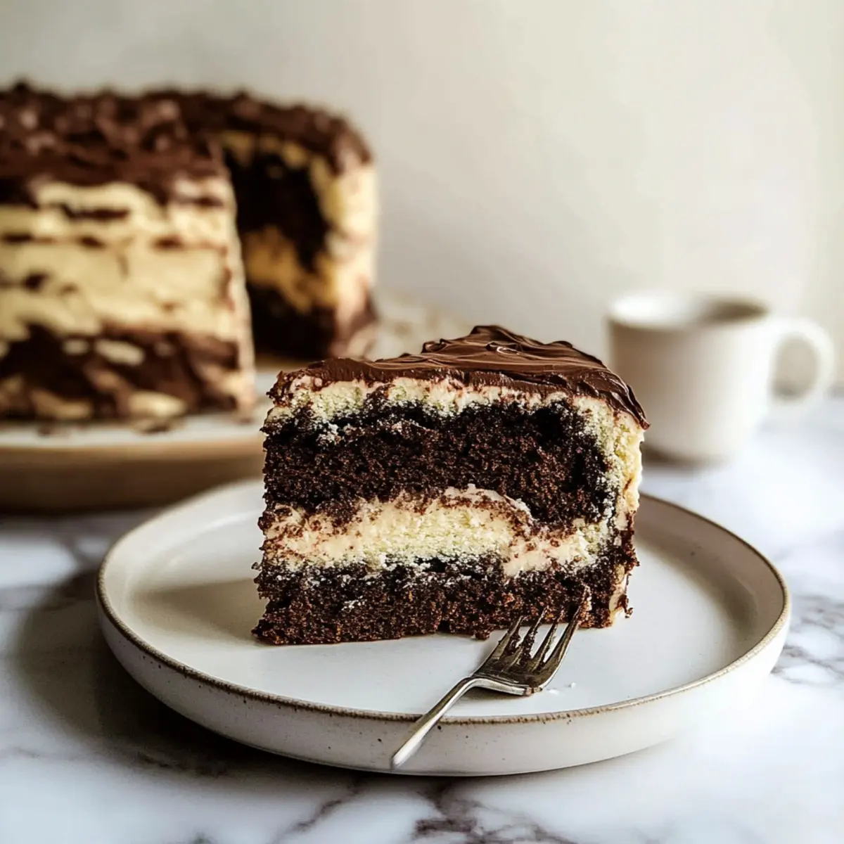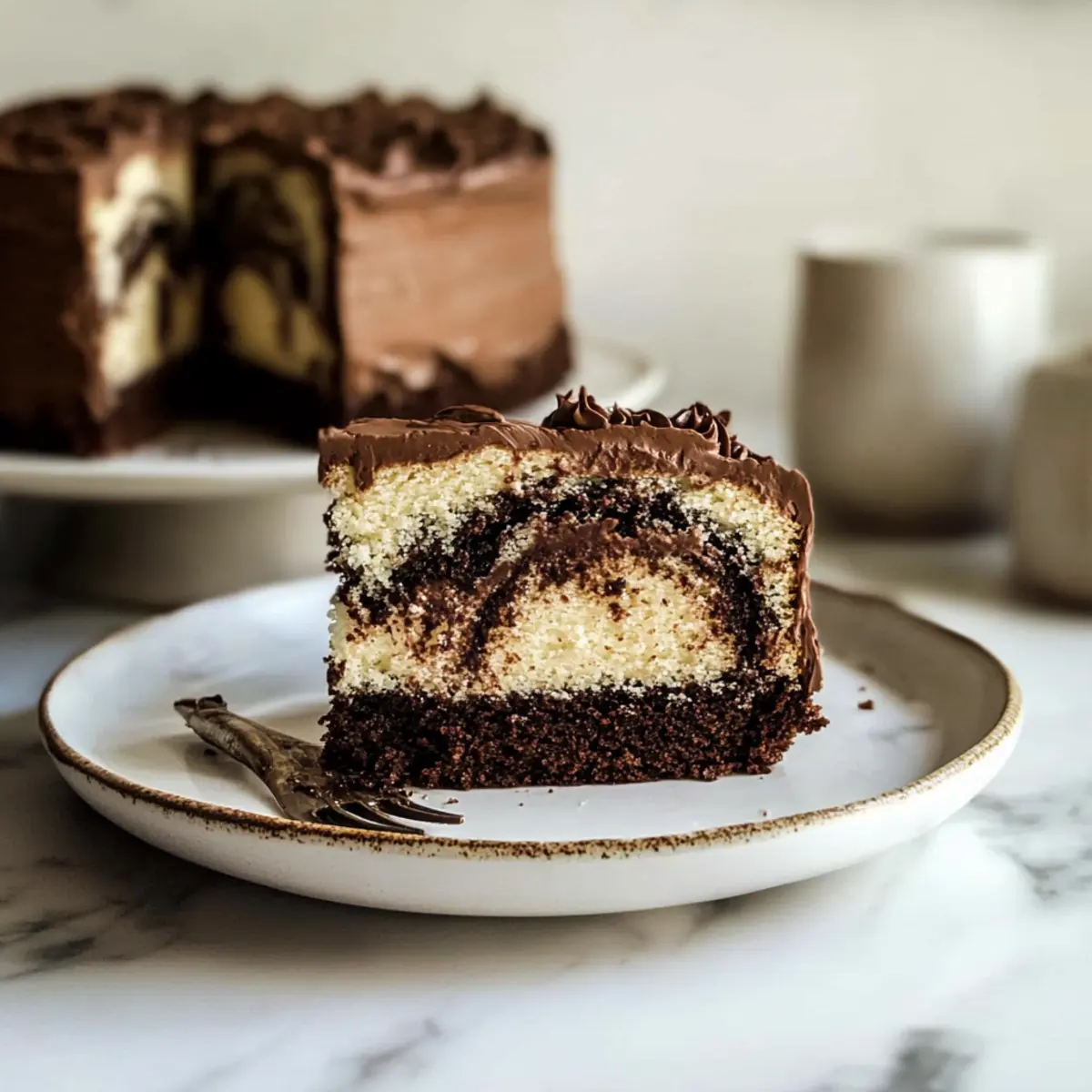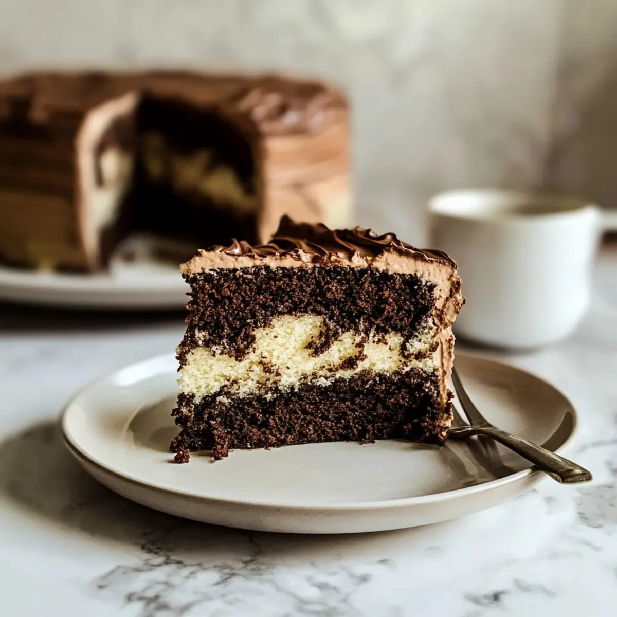 The aroma of freshly baked cake has a remarkable way of transporting me to cherished memories of family gatherings, where laughter filled the air and desserts stole the show. Today, I’m excited to share my go-to recipe for One Batter Moist Marble Cake—a delightful fusion of rich chocolate and light vanilla flavors that come together in perfect harmony. This easy-to-make cake not only boasts a wonderfully fluffy texture thanks to the use of buttermilk, but it’s also a crowd-pleaser for any occasion, from birthdays to casual brunches. With just one batter, you can create mesmerizing layers and swirls that are as pleasing to the eye as they are to the palate. What special occasion do you have in mind to share this scrumptious treat? Why Is This Cake a Must-Try? Simplicity: With just one batter, this recipe streamlines your baking process, making it perfect for bakers of all skill levels. Moist and Fluffy: Thanks to the buttermilk, every slice is delightfully moist and airy, ensuring the perfect texture you’ll crave. Versatility: Enjoy it as a loaf, cupcakes, or a beautiful bundt cake—endless options to delight your taste buds! Visual Appeal: The marbled design makes for an impressive centerpiece at any gathering, sure to earn compliments from guests. Quick to Make: This simple recipe allows you to whip up a stunning dessert in no time—ideal for those busy days when you want something special! Pair it with a scoop of ice cream or fresh fruit, just like I do with my Lemon Eclair Cake for an extra treat! One Batter Moist Marble Cake Ingredients Unlock the secrets to making this delightful treat with the following ingredients! For the Batter Butter (1 cup / 227g) – Adds richness and flavor; substitute with margarine for a dairy-free option. Sugar (2 cups / 400g) – Provides sweetness and enhances moisture; try coconut sugar for a lower glycemic index alternative. Vegetable Oil (¼ cup) – Adds moisture and creates a tender crumb; can be replaced with canola or melted coconut oil. Eggs (3 large, room temperature) – Essential for structure and leavening; use flax eggs for a vegan option. All-Purpose Flour (2¾ cups / 330g) – This is the main structural component for the cake; substitute with a gluten-free flour mix if needed. Baking Powder (1 tsp) – Provides leavening; ensure it’s fresh for the best results. Baking Soda (½ tsp) – Helps with leavening and tenderness. Salt (½ tsp) – Enhances flavor; you can use kosher or table salt interchangeably. Buttermilk (¾ cup + 1 tbsp, room temperature) – Keeps the cake moist and tender; mix milk with lemon juice or vinegar for a substitute. Vanilla Extract (1 tbsp) – Adds depth of flavor; always choose pure vanilla extract for the best taste. Cocoa Powder (2 tbsp) – Provides chocolate flavor and color; opt for Hershey’s Special Dark for a richer taste profile. Enjoy crafting your One Batter Moist Marble Cake and savor those delightful flavors! Step‑by‑Step Instructions for One Batter Moist Marble Cake Step 1: Preheat the Oven Begin by preheating your oven to 350°F (175°C). While the oven warms, take two 8-inch round cake pans and grease them thoroughly with baking spray. This step is crucial to ensure your One Batter Moist Marble Cake releases easily after baking. Step 2: Cream Butter and Sugar In a large mixing bowl, combine 1 cup of softened butter and 2 cups of sugar. Using an electric mixer, beat the mixture on medium speed for about 2 minutes until it becomes light and fluffy, turning pale yellow. This aeration is essential for creating a moist and fluffy cake, so ensure it’s well-mixed. Step 3: Add Oil and Eggs Next, blend in ¼ cup of vegetable oil until well incorporated. Then, add 3 large eggs one at a time, mixing thoroughly after each addition. This step builds the structure of your One Batter Moist Marble Cake while keeping it tender. The mixture should appear smooth and creamy. Step 4: Combine Dry Ingredients In a separate bowl, whisk together 2¾ cups of all-purpose flour, 1 teaspoon of baking powder, ½ teaspoon of baking soda, and ½ teaspoon of salt. This dry mixture is key for the right texture and rise, so ensure it’s evenly blended to avoid lumps in your batter. Step 5: Incorporate Wet Ingredients Gradually add the dry ingredients to the butter mixture, alternating with ¾ cup of buttermilk. Start and end with the dry ingredients, mixing just until combined. Be careful not to overmix, as this can lead to a dense cake. The batter should be slightly thick but smooth in consistency. Step 6: Prepare Batters To create the marbled effect, take 1 cup of the batter out and place it in a separate bowl. Mix in 2 tablespoons of cocoa powder along with the remaining 1 tablespoon of buttermilk until fully blended. This chocolate batter will complement the vanilla batter beautifully. Step 7: Layer and Swirl Evenly spread a layer of the vanilla batter in each prepared pan. Then, using a spoon, dollop the chocolate batter on top, followed by another layer of vanilla batter. Use a skewer to gently swirl the batters together, creating a marbled effect that looks visually appealing. Step 8: Bake the Cake Place the cake pans in the preheated oven and bake for 30-35 minutes. Keep an eye on them and check for doneness by inserting a toothpick in the center of the cakes—it should come out clean or with a few moist crumbs, signaling that your One Batter Moist Marble Cake is ready. Step 9: Cool Completely Once baked, remove the pans from the oven and let them cool in the pans for 10 minutes. Afterward, carefully transfer the cakes to a wire rack to cool completely. This step is important for ensuring that your cake holds its shape and maintains moisture. Step 10: Frost and Serve Once completely cooled, you may frost your One Batter Moist Marble Cake with your choice of chocolate buttercream or chocolate cream cheese frosting. Spread it generously between the layers and on top, creating a beautiful finish. Slice 