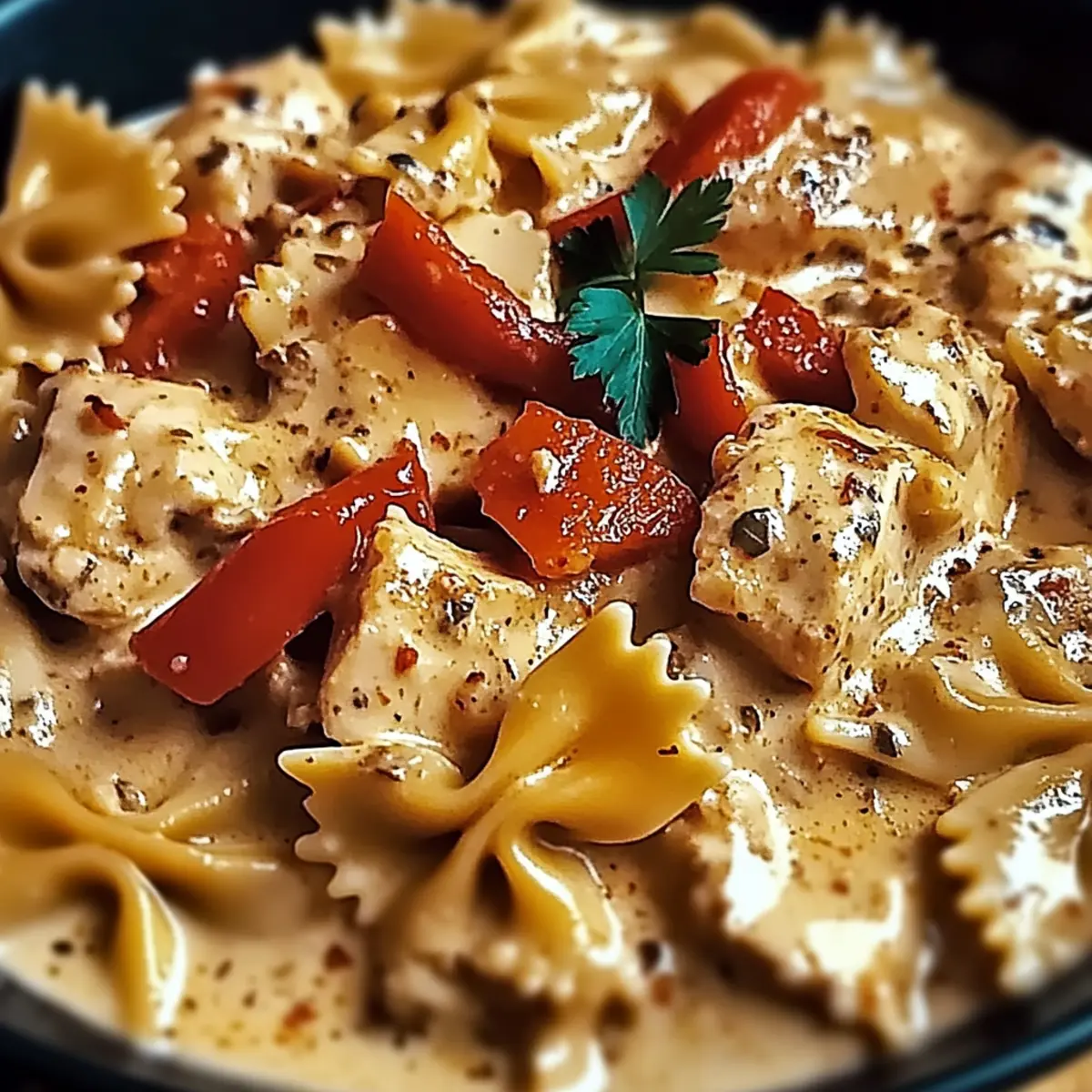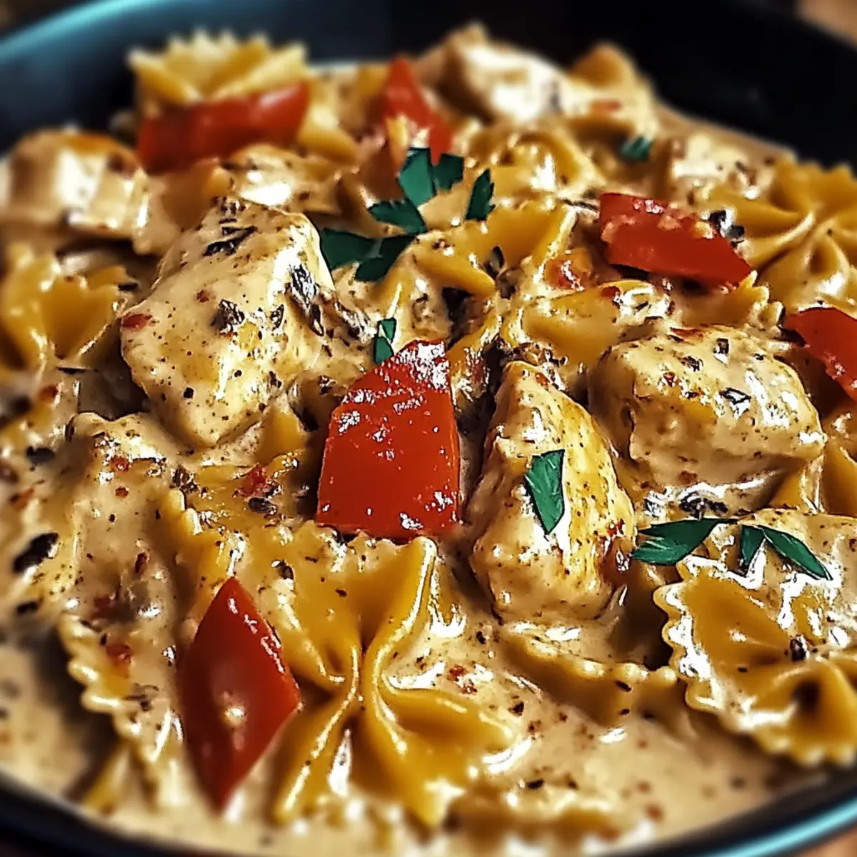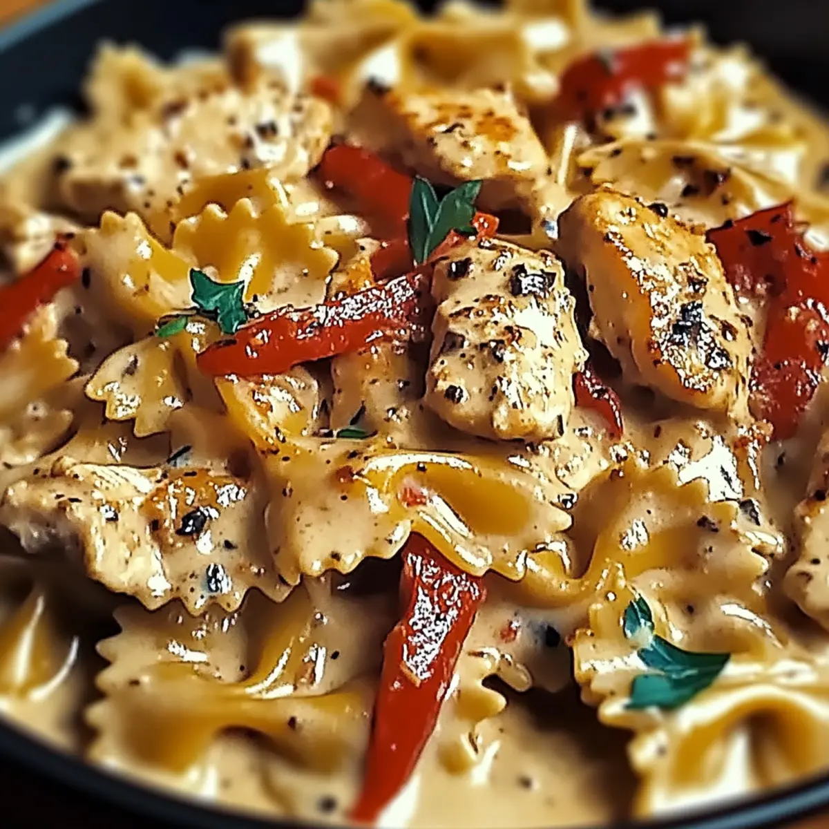 In a whirlwind of flavors, your evening just met its match! Let the enticing aroma of roasted red peppers and garlic fill your kitchen as you dive into making these Creamy Parmesan Roasted Red Pepper Chicken Bowties. This dish is not only a comfort food classic that reinforces the joys of a home-cooked meal, but it also promises to bring the family together—ready in just 30 minutes! Whether you’re a busy parent or an avid home chef, this customizable recipe can cater to picky eaters with its delightful versatility. With tender bowtie pasta enveloped in a creamy, sumptuous sauce, it’s sure to be a weeknight winner. Are you curious to discover how this dish can bring smiles around the dinner table? Why Will You Love This Recipe? Simplicity at Its Best: Cooking these Parmesan Roasted Red Pepper Chicken Bowties requires minimal effort. The straightforward process lets anyone whip up a comforting meal in 30 minutes! Customizable Goodness: This recipe is effortlessly adaptable—swap chicken for shrimp or tofu, and use different pasta shapes like penne or rotini for a meal that always feels fresh! Flavors That Delight: The creamy sauce, infused with roasted red peppers and garlic, creates a savory explosion, turning ordinary weeknight dinners into something extraordinary. Family-Friendly Appeal: Kids and adults alike will enjoy this dish, making it a perfect choice for busy families looking to create lasting dinner memories together. One-Pot Wonder: Fewer dishes to clean means more time spent enjoying your meal! Pair it with garlic bread or a fresh salad for the ultimate cozy dinner experience. Parmesan Roasted Red Pepper Chicken Bowties Ingredients For the Pasta • Bowtie Pasta (12 oz) – The base of the dish, holding the creamy sauce well. Substitution: Can be replaced with penne or rotini. For the Chicken • Boneless Skinless Chicken Breast (1 lb) – Provides lean protein. Substitution: Shrimp, Italian sausage, or grilled tofu can be used for variation. For the Sauce • Garlic Powder (1 tsp) – Adds savory depth to the chicken. • Salt & Black Pepper – Enhances overall flavor; adjust to taste. • Olive Oil (1 tbsp) – Essential for sautéing the chicken. • Butter (2 tbsp) – Creates a rich base for the creamy sauce. • Garlic, minced (4 cloves) – Fresh garlic infuses aromatic flavor. Preference for fresh over powder. • Roasted Red Peppers (½ cup, sliced) – Adds a smoky sweetness. Use jarred or homemade. • Heavy Cream (¾ cup) – Key ingredient for a creamy texture. • Cream Cheese (2 oz, optional) – Adds extra richness to the sauce. • Grated Parmesan Cheese (¾ cup) – Thickens the sauce and adds nutty flavor. • Italian or Southern Herb Blend (½ tsp) – Provides earthiness to the dish; herbs like thyme, oregano, or rosemary work well. For Garnish • Fresh Parsley or Basil – For garnish, adding freshness. • Red Pepper Flakes or Balsamic Drizzle (optional) – For added heat or tang. Step‑by‑Step Instructions for Parmesan Roasted Red Pepper Chicken Bowties Step 1: Boil Pasta Bring a large pot of salted water to a boil. Add the 12 ounces of bowtie pasta and cook for 10-12 minutes until al dente, stirring occasionally. Once done, reserve ½ cup of pasta water for later and drain the rest. Set the pasta aside, keeping it warm while you prepare the rest of your delicious Parmesan Roasted Red Pepper Chicken Bowties. Step 2: Sear Chicken While the pasta cooks, season 1 pound of boneless, skinless chicken breasts with garlic powder, salt, and black pepper. Heat 1 tablespoon of olive oil in a large skillet over medium-high heat. Sauté the chicken for about 6-7 minutes per side until it’s golden brown and the internal temperature reaches 165°F. Remove the chicken from the skillet and let it rest before cutting it into bite-sized pieces. Step 3: Create Sauce In the same skillet, melt 2 tablespoons of butter over medium heat. Add 4 minced cloves of garlic and sauté for about 1 minute until fragrant, being careful not to burn the garlic. Next, incorporate ½ cup of sliced roasted red peppers and cook for 2-3 minutes until heated through, which will enhance the smoky sweetness for your creamy sauce. Step 4: Assemble Creamy Mixture Pour in ¾ cup of heavy cream and optional 2 ounces of cream cheese into the skillet, stirring to combine. Heat the mixture gently until the cream cheese is fully melted and the sauce is smooth. Gradually stir in ¾ cup of grated Parmesan cheese along with ½ teaspoon of Italian herb blend, letting it cook for a couple of minutes until the sauce slightly thickens and becomes wonderfully creamy. Step 5: Combine Ingredients Add the chopped chicken back into the skillet along with the drained bowtie pasta. Toss everything together in the creamy sauce until well combined, ensuring the pasta is coated beautifully. If the sauce is too thick, add a bit of the reserved pasta water to achieve your desired consistency. This step brings the ultimate comfort in your Parmesan Roasted Red Pepper Chicken Bowties. Step 6: Garnish & Serve Finally, plate up your creamy delight! Garnish each serving with freshly chopped parsley or basil for a pop of color and flavor. Optionally, sprinkle red pepper flakes or drizzle balsamic for an extra kick. Serve immediately, and savor the satisfied smiles around the table with this comforting meal! Expert Tips for Perfect Parmesan Roasted Red Pepper Chicken Bowties Pasta Water Magic: Reserve some pasta water before draining. It’s a game-changer for adjusting the cream sauce’s thickness to your liking. Proper Searing: Don’t overcrowd the skillet when searing chicken. This ensures even cooking and a flavorful golden crust on your chicken for the Parmesan Roasted Red Pepper Chicken Bowties. Fresh Over Powder: Choose fresh garlic over garlic powder for a brighter flavor that enhances the overall taste of your dish. Herb Selection: Opt for fresh herbs like parsley or basil as a garnish. They elevate the f