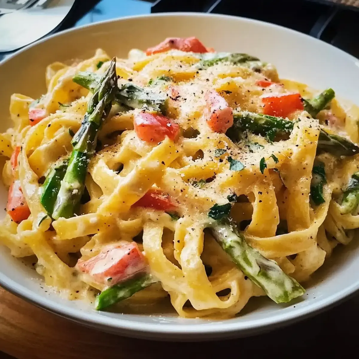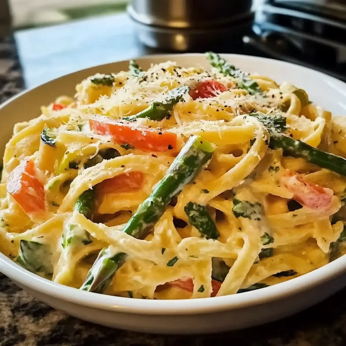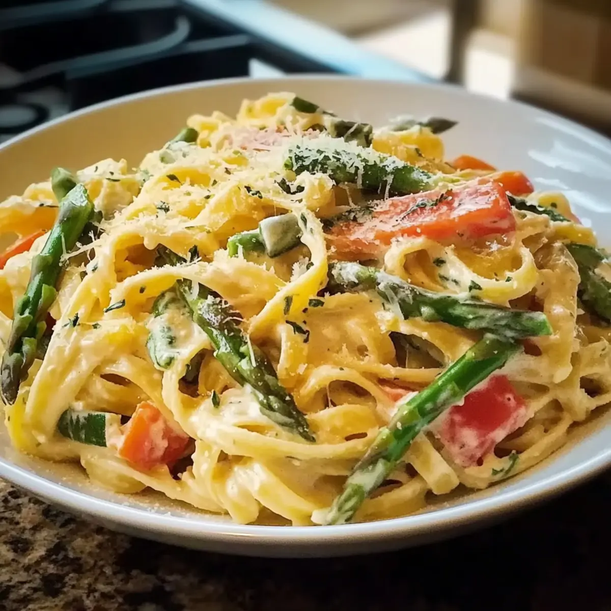 The first warm breeze of spring always stirs excitement in the kitchen for me. It’s the perfect time to whip up a delicious Pasta Primavera, where fresh seasonal vegetables take center stage, and a creamy Parmesan sauce envelops it all in warmth. This recipe is not just a feast for the eyes; it’s an easy weeknight dinner that fills your table with color and health. With its customizable nature, you can tailor the ingredients based on what’s in season, ensuring it remains a family favorite all year round. Plus, it’s a delightful way to introduce more veggies into your meals without sacrificing taste. What fresh surprises are you excited to add to your Pasta Primavera tonight? Why is Pasta Primavera a Must-Try? Seasonal Freshness: This dish shines with vibrant, fresh vegetables that celebrate spring, making every bite a delicious journey through the season. Creamy Indulgence: A luscious creamy Parmesan sauce brings comfort, perfectly coating each strand of pasta and enhancing the dish’s flavor profile. Quick & Easy: With just a few ingredients and minimal prep, it’s an ideal weeknight meal that can be ready in no time, leaving you free to enjoy your evening. Customizable Delight: Feel free to swap in your favorite veggies or add protein like grilled chicken or shrimp—this is a truly versatile dish. For other easy recipe options, check out Garlic Butter Steak or Garlic Parmesan Pasta. Family Favorite: From kids to adults, everyone loves it—making it a fantastic way to include more vegetables in your meals without complaints! Pasta Primavera Ingredients • Everything you need for this vibrant dish! For the Pasta Pasta – Use long-strand pasta like spaghetti or fettuccine for the best sauce adherence. For the Vegetables Asparagus – Adds a crisp, tender texture; blanch to maintain its bright green color. Carrots – Provide sweetness and vibrant color; they pair well with zucchini as a substitute. Bell Peppers – Contributes moisture and sweetness; any color works for a beautiful presentation. Zucchini – Enhances freshness and a slightly creamy texture in the dish; substitute with summer squash if desired. Fresh or Frozen Peas – Offers a pop of sweetness and bright green color; add towards the end for maximum vibrancy. For the Aromatics Garlic – Essential for a flavorful base; mince for a fragrant aroma. Shallot – Imparts a milder onion flavor; can be switched with yellow onion in a pinch. For the Sauce Heavy Cream – Creates the rich, luscious sauce you crave; half-and-half can lighten it up but avoid milk for less richness. Parmesan Cheese – Provides a nutty flavor; use freshly grated for the best melting quality. Lemon Juice & Zest – Brightens and balances the flavors in this Pasta Primavera; white wine makes a great substitute if needed. Seasonings Salt & Pepper – Use to taste, enhancing the natural flavors of the pasta and vegetables. Fresh Herbs (Parsley & Basil) – Fresh herbs lend a burst of flavor and freshness; perfect for finishing touches! Enjoy crafting this delightful dish in your kitchen; it’s sure to bring a smile to everyone at the table! Step‑by‑Step Instructions for Pasta Primavera Step 1: Prep Ingredients Begin by washing and peeling your vegetables. Chop the asparagus into 1-inch pieces, slice the carrots into thin rounds, and dice the bell peppers and zucchini. Mince the garlic and shallot, and ensure everything is prepped and ready to go. This will streamline your cooking process, allowing you to enjoy making your vibrant Pasta Primavera. Step 2: Cook Pasta In a large pot, bring salted water to a rolling boil. Add your long-strand pasta and cook according to package instructions until al dente, typically around 8-10 minutes. Reserve about 2 cups of pasta water before draining the pasta. Allow the pasta to rest in the colander while you move on to the next delicious steps. Step 3: Blanch Vegetables In the same boiling water used for the pasta, blanched the chopped asparagus and carrot slices for 2-3 minutes, just until bright green and tender-crisp. Carefully transfer the blanched vegetables into an ice bath using a slotted spoon; this stops the cooking process and maintains their vibrant color. Drain and set aside, ready to join your Pasta Primavera. Step 4: Sauté Aromatics In a large skillet, heat a mixture of butter and olive oil over medium heat. Once the butter melts, add the minced garlic and shallot, sautéing for 1-2 minutes until fragrant and lightly golden. Next, add the diced bell peppers and zucchini to the skillet, cooking for about 4-5 minutes until they soften but still retain a slight crunch for your Pasta Primavera. Step 5: Make Sauce Pour the heavy cream into the skillet with the sautéed vegetables, and bring the mixture to a gentle simmer for 2 minutes. This will create a creamy base that clings wonderfully to the pasta. Gradually stir in a little of the reserved pasta water, allowing it to emulsify with the cream, creating a rich yet light sauce for your Pasta Primavera. Step 6: Combine Everything Now it’s time to bring everything together! Add the drained pasta, blanched vegetables, frozen peas, grated Parmesan cheese, lemon zest, and juice to the skillet. Gently toss to coat the pasta, adjusting the consistency with more reserved pasta water if necessary. The colorful ingredients should meld beautifully, creating a delicious Pasta Primavera masterpiece. Step 7: Final Seasoning Finish your Pasta Primavera by stirring in a handful of freshly chopped parsley and basil for an aromatic lift. Taste, then season with salt and pepper to your liking, along with a pinch of red pepper flakes for a touch of heat if desired. Serve immediately, garnished with extra Parmesan for a delightful finish that your family will love. What to Serve with Spring-Inspired Pasta Primavera? Indulging in the vibrant flavors of spring with your creamy Pasta Primavera opens up a world of delightful pairings. Garlic Bread: This buttery 