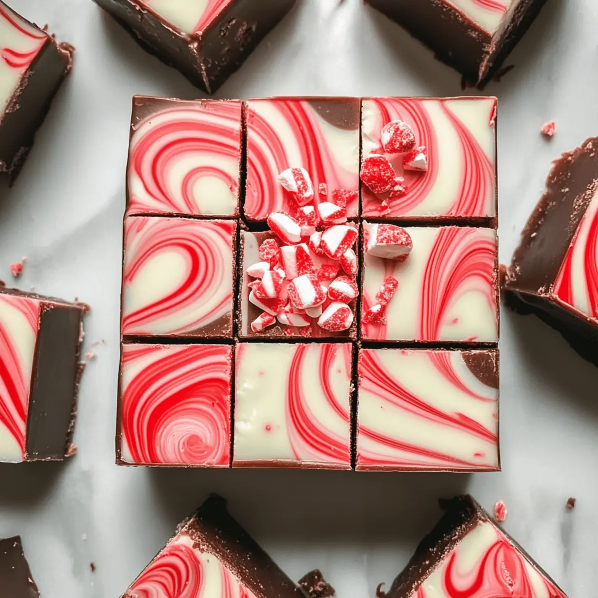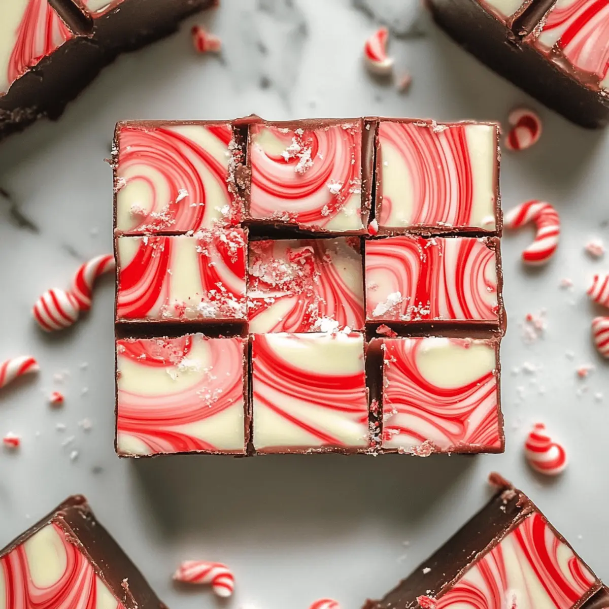 “Have you ever caught a whiff of peppermint that instantly transported you to cozy holiday gatherings? That’s the magic we’re capturing with this Peppermint Swirl Fudge! Not only is this recipe a delightful no-bake addition to your festive dessert table, but it also makes the sweetest homemade gift for your loved ones. With creamy layers of chocolate and a refreshing peppermint twist, each bite is like a little holiday celebration. Plus, it’s incredibly easy to whip up, leaving you more time to enjoy the season. Ready to make some holiday magic? Let’s dive into creating this enchanting treat together!” Why is Peppermint Swirl Fudge a Must-Try? Irresistible flavor combinations: The pairing of rich chocolate and cool peppermint creates a festive taste that embodies the holiday spirit. Effortless preparation: This no-bake recipe means you can whip it up in no time, making it perfect for busy holiday schedules. Stunning presentation: The swirls and crushed peppermint candies not only taste amazing but also look beautiful on any dessert table. Perfect for gifting: Pack it in decorative tins or cellophane for charming homemade gifts that show you care. Versatile options: Feel free to switch up the chocolate types or add other flavors for a unique twist. Enjoy the joy of sharing this delightful treat with family and friends! Peppermint Swirl Fudge Ingredients • Craft your festive delight with the following ingredients! For the Fudge Base Sweetened Condensed Milk – Adds creaminess and sweetness; store-bought is perfect for easy preparation. White Chocolate Chips – Creates a rich flavor and contrasting swirl; vegan chocolate chips work as a great dairy-free substitute. Semi-Sweet Chocolate Chips – Balances the sweetness and adds depth; swapping for dark chocolate chips will give a richer taste. For the Flavoring Peppermint Extract – Infuses the fudge with refreshing peppermint; mint extract can be used for a milder flavor. Crushed Peppermint Candies – Offers crunch and additional peppermint goodness; use crushed candy canes for a festive touch. Red Food Coloring (optional) – Enhances the visual appeal for vibrant swirls; omit for a more natural appearance. With these delicious ingredients, your Peppermint Swirl Fudge will be a holiday treat to remember! Step‑by‑Step Instructions for Peppermint Swirl Fudge Step 1: Prep Ingredients Begin by gathering all your ingredients for the Peppermint Swirl Fudge. Make sure to have sweetened condensed milk, white and semi-sweet chocolate chips, peppermint extract, and crushed peppermint candies ready. Line an 8×8-inch baking pan with parchment paper for easy removal later. This crucial prep step sets you up for a smooth and enjoyable fudge-making experience. Step 2: Melt Chocolates In a double boiler over medium heat, combine the white chocolate chips and the sweetened condensed milk. Stir the mixture gently until it becomes completely smooth and melty, which should take about 5-7 minutes. Keep the heat moderate to prevent scorching. Once melted, remove it from the heat and let it cool slightly to maintain a perfect pouring consistency. Step 3: Add Flavorings Once your white chocolate mixture has cooled just a bit, stir in the peppermint extract, ensuring it’s evenly distributed throughout the fudge base. This is the key step that infuses the Peppermint Swirl Fudge with its delightful minty flavor. The mixture should be thick but pourable, creating a rich foundation for your fudge. Step 4: Swirl Chocolate Pour the white chocolate mixture into your prepared baking pan, spreading it evenly. In a separate bowl, melt the semi-sweet chocolate chips using the same double boiler method. Once melted, drop spoonfuls of this chocolate on top of the white chocolate layer. Use a knife to gently swirl the two chocolates together for that beautiful marbled effect. Step 5: Finish with Peppermint Sprinkle the crushed peppermint candies generously over the top of the fudge, pressing them down lightly to secure them in place. If desired, add a few drops of red food coloring to the remaining fudge mixture and swirl again for a festive touch. This final flourish adds both flavor and a stunning visual appeal to your Peppermint Swirl Fudge. Step 6: Set Fudge Place the baking pan in the refrigerator and let the fudge chill for at least two hours, or until it’s firm to the touch. This cooling time allows the flavors to meld beautifully and achieves the ideal fudge texture. Once set, use the parchment paper to lift the fudge out of the pan and onto a cutting board for easy slicing into squares. Expert Tips for Perfect Peppermint Swirl Fudge Use Fresh Ingredients: Ensure your white chocolate and peppermint extract are fresh for the best flavor. Old ingredients can dull the taste of your Peppermint Swirl Fudge. Control the Heat: Melt chocolates gently over medium heat to avoid scorching. Too high of a heat can make the fudge too thick to swirl. Consistent Texture: If the fudge mixture thickens too much before swirling, gently reheat it with a splash of sweetened condensed milk to regain pourability. Chill Properly: Allow sufficient time for the fudge to set in the refrigerator for at least two hours. Rushing this step can affect the fudge’s texture. Decorative Touches: Don’t skimp on the crushed peppermint candies; they add delightful crunch and festive flair to your fudge. Peppermint Swirl Fudge Variations & Substitutions Feel free to get creative and make this Peppermint Swirl Fudge your own with these delightful variations! Dark Chocolate: Swap the white and semi-sweet chocolate chips for dark chocolate for a richer, more intense flavor. This change brings a sophisticated twist to your fudge. Dairy-Free: Use coconut condensed milk and dairy-free chocolate chips for a vegan-friendly treat. Your fudge will still be sweet and indulgent without the dairy. Nutty Texture: Incorporate chopped nuts, like walnuts or almonds, for a satisfying crunch. The 