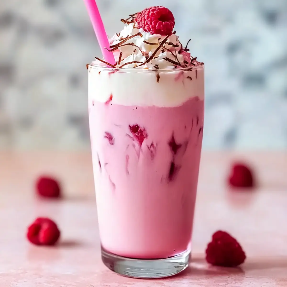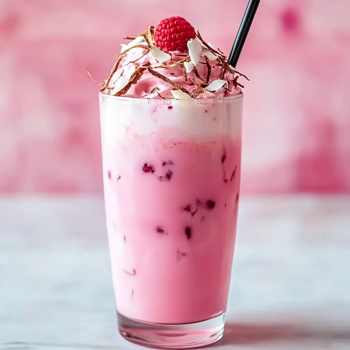 On a sun-drenched afternoon, there’s nothing quite like the refreshing sip of a Pink Coconut Iced Latte to revive your spirits. This creamy delight blends the robust flavor of brewed coffee with velvety coconut milk and a pop of fruity sweetness, creating a drink that’s perfect for a burst of energy or a leisurely brunch. Not only is this vegan treat quick to whip up in just 10 minutes, but it also doubles as an eye-catching centerpiece at your summer gatherings. Imagine serving a colorful, picturesque latte that tastes as good as it looks—your friends will think you’re a barista! Are you ready to dive into this tropical-inspired recipe that might just become your new go-to? Why is this latte a must-try? Creamy, Dreamy Delight: The Pink Coconut Iced Latte offers a luxurious blend of rich coffee and coconut milk, making each sip a tropical escape. Quick & Easy: In just 10 minutes, you can craft this refreshing drink without any complex steps, perfect for busy mornings or spontaneous gatherings. Vegan Friendly: Enjoy a guilt-free treat that caters to plant-based diets, so everyone can indulge without compromise. Versatile Flavors: Experiment with different fruit syrups like strawberry or blueberry to tailor the taste to your mood, making it a versatile choice for all seasons. Stunning Presentation: Its pretty pink hue and fun garnishes like fresh raspberries and coconut flakes not only impress but also add an artistic flair to your table. Pair it with light snacks or even a refreshing Mango Coconut Panna for the ultimate summer treat! Pink Coconut Iced Latte Ingredients For the Latte • Brewed Coffee – Use a strong blend for a rich coffee flavor that perfectly complements the creaminess of the coconut milk. • Coconut Milk – Adds a tropical richness; you can substitute with almond milk or oat milk for an alternative flavor. • Vanilla Syrup – Sweetens the drink; feel free to add more if you like it a bit sweeter. • Raspberry Syrup – Provides a fruity sweetness and vibrant color; switch it out for strawberry or blueberry syrup to mix things up. • Ice Cubes – Essential for chilling your latte; using larger cubes will help prevent quick melting. For Garnish • Fresh Raspberries – A delightful touch that adds visual appeal and fresh flavor to your latte. • Coconut Flakes – Sprinkling these on top enhances the tropical theme and adds a little texture. Enjoy making this Pink Coconut Iced Latte, your new go-to for summer refreshment! Step‑by‑Step Instructions for Pink Coconut Iced Latte Step 1: Brew the Coffee Start by brewing a strong cup of coffee using your favorite beans. Aim for a robust flavor by using about 2 tablespoons of coffee grounds per 6 ounces of water. Once brewed, allow the coffee to cool to room temperature or chill it in the fridge for about 10 minutes to enhance your Pink Coconut Iced Latte. Step 2: Mix the Base In a large glass, combine the cooled coffee with 1 cup of creamy coconut milk, 2 tablespoons of vanilla syrup, and 2 tablespoons of raspberry syrup. Stir well until all ingredients are thoroughly mixed, resulting in a beautifully blended base for your Pink Coconut Iced Latte that combines the rich coffee flavor with tropical notes. Step 3: Prepare the Glass Fill a tall glass with ice cubes, making sure to use larger cubes to minimize melting and maintain your drink’s chill. Aim to fill the glass about halfway, allowing ample space for the flavorful coffee mixture and making your beverage beautifully layered as you pour. Step 4: Pour Over Ice Carefully pour the coffee mixture over the ice, watching as the vibrant pink hue created by the raspberry syrup cascades over the cubes. This visual effect will be stunning and set the stage for a refreshing Pink Coconut Iced Latte that looks as delightful as it tastes. Step 5: Garnish Your Drink For an extra touch of flair, garnish your drink with a handful of fresh raspberries and a sprinkle of coconut flakes on top. This not only adds a burst of color but also enhances the tropical feel of your Pink Coconut Iced Latte, making it an irresistible treat. Step 6: Serve Immediately Serve your Pink Coconut Iced Latte right away, allowing the ice to keep it cool and refreshing. Relish in the delightful combination of flavors and enjoy every sip of this creamy, dreamy summer drink that’s perfect for any occasion. What to Serve with Pink Coconut Iced Latte On a sun-kissed day, this charming drink invites you to build a delightful summer meal. Tropical Fruit Salad: A refreshing mix of juicy seasonal fruits enhances the tropical feel of the latte, making every bite a burst of sunshine. Coconut Macaroons: These chewy delights offer a sweet, coconut-forward flavor that complements your latte’s rich coconut milk beautifully. Savory Vegan Wraps: Wraps filled with fresh veggies and hummus provide a crunchy and satisfying contrast, balancing the creaminess of the drink perfectly. Pineapple Fried Rice: The savory, slightly sweet flavor of this dish pairs well with the raspberry notes, creating an enjoyable culinary experience. Vanilla Chia Seed Pudding: This creamy and subtly sweet dessert echoes the vanilla notes in the latte, serving as a lovely complement. Sparkling Water with Lime: A refreshing, bubbly drink adds a zesty counterpoint to your latte’s creaminess, keeping your palate refreshed. Chocolate-Dipped Strawberries: These indulgent treats blend sweetness with a hint of acidity, enhancing the pink vibes while making for a perfect summer dessert. Let these suggestions transform your Pink Coconut Iced Latte into a feast for the senses, perfect for your next gathering! Expert Tips for Pink Coconut Iced Latte Coffee Choices: Use a strong coffee blend to ensure your Pink Coconut Iced Latte has a bold flavor that stands out against the creaminess of the coconut milk. Coconut Creaminess: Opt for full-fat coconut milk for a richer texture, or add a splash of heavy cream if you prefer an even creamier d