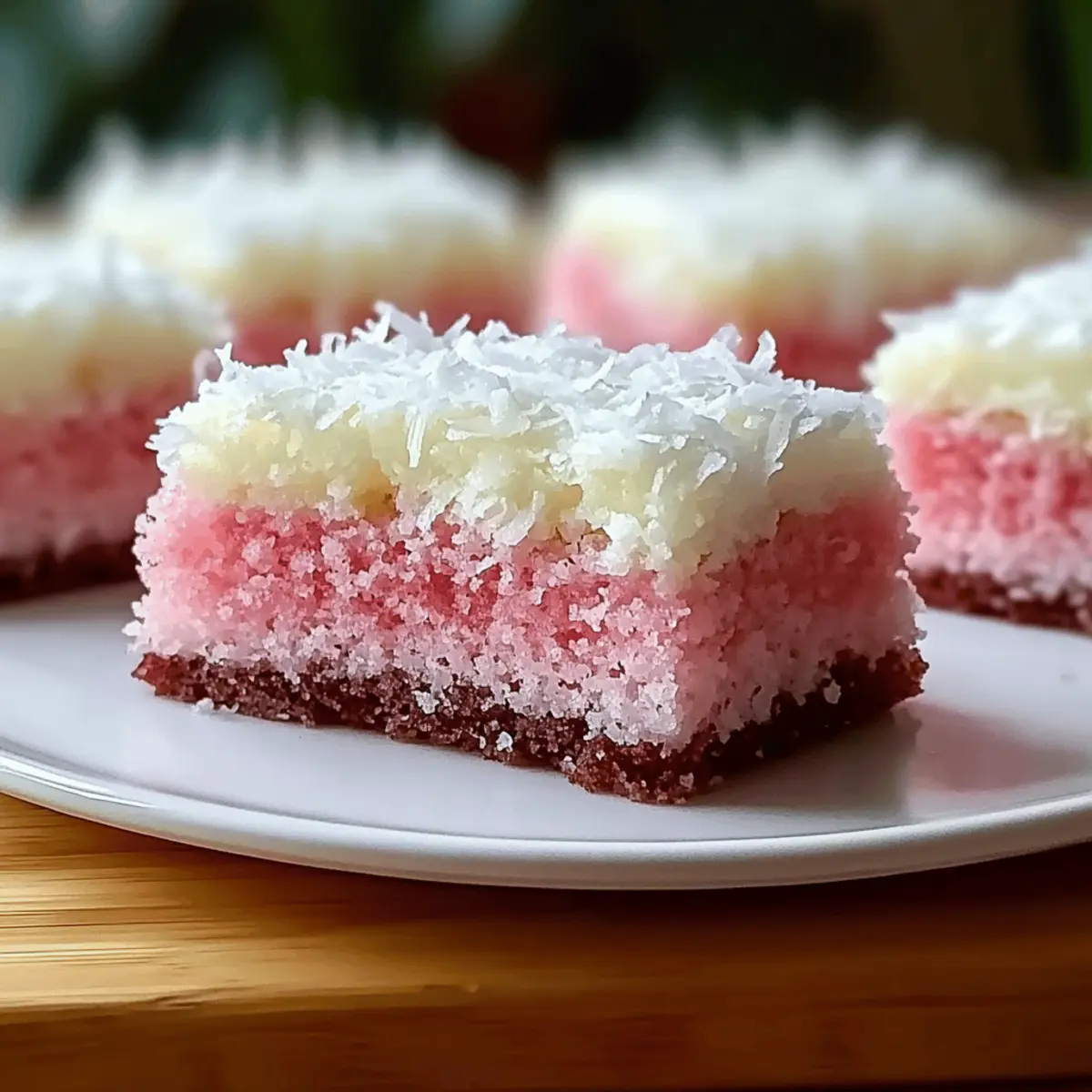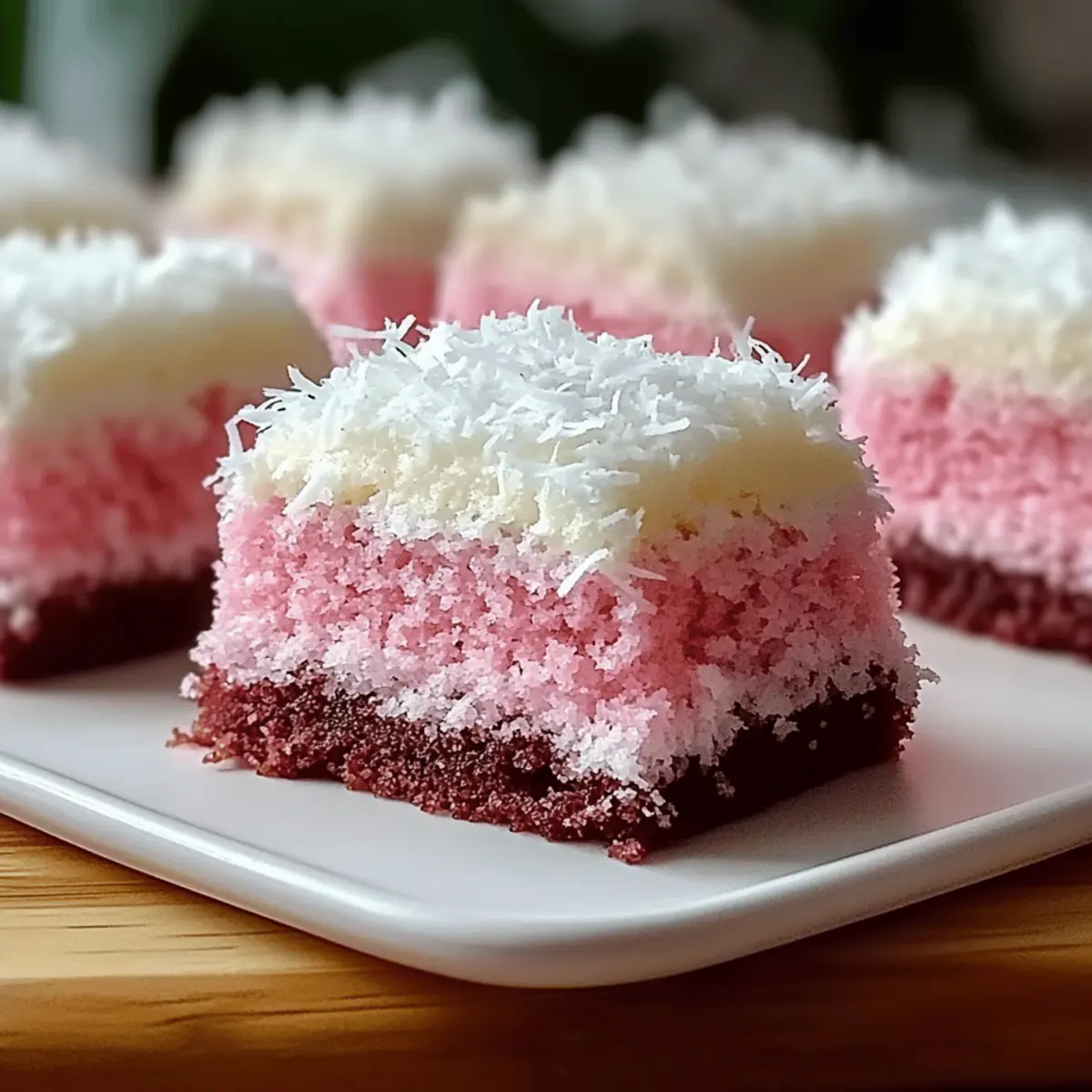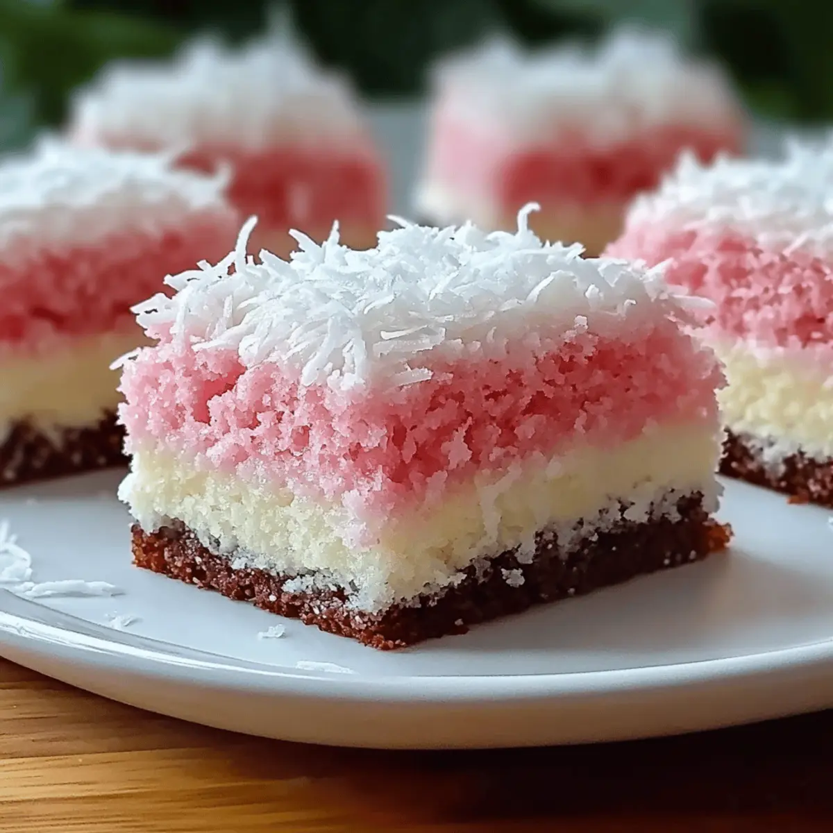 As I stood in my kitchen, the sweet aroma of baking coconut filled the air, instantly transporting me to a tropical paradise. That’s the magic of my Pink Coconut Snowball Cake Bars. Not only do these vibrant bars captivate the senses with their lovely pink hue, but they also deliver a creamy, coconut-infused sweetness that’s hard to resist. What I adore most about this recipe is how easy it is to whip up, making it perfect for any gathering—or just a delightful afternoon treat for yourself! Plus, with options for gluten-free substitutions, everyone can indulge in this delightful dessert. Ready to dive into a slice of paradise? Let’s bring some sunshine to your baking day! Why Are These Cake Bars So Irresistible? Vibrant Color: The eye-catching pink hue makes these bars not just a treat for the palate but also a feast for the eyes, perfect for gatherings or celebrations. Easy to Make: With just a few simple ingredients, these bars can be whipped up in no time—ideal for busy bakers or those new to baking. Versatile Options: Add your favorite nuts or a chocolate drizzle for a personalized touch, making it easy to switch up flavors anytime! Crowd-Pleasing Appeal: These bars are sure to impress your friends and family, leaving them asking for seconds. Want to try something different? Pair them with a refreshing tropical drink or a scoop of ice cream, just like with my Coconut Lime Fish recipe for a complete dessert experience! Gluten-Free Possibility: With a simple flour swap, these bars become gluten-free, ensuring that everyone at the table can enjoy them without worry. Dive in and enjoy a slice of summer bliss! Pink Coconut Snowball Cake Bars Ingredients • Perfect for a delightful baking adventure! For the Cake Bars 2 cups all-purpose flour – Provides structure and ensures a tender crumb. Note: Can substitute with a gluten-free flour blend for a gluten-free version. 1 cup sugar – Adds sweetness and moisture. No direct substitutes recommended, but can decrease if desired. 1/2 cup butter, softened – Adds richness and flavor. Can be replaced with coconut oil for a dairy-free option. 2 eggs – Bind ingredients and provide moisture. Flaxseed meal can be used as an egg substitute for a vegan version. 1 teaspoon vanilla extract – Enhances flavor depth. Almond extract can be used for an alternative flavor. 1/2 teaspoon baking powder – Provides leavening for lightness. Ensure it is fresh for optimal rise. 1/4 teaspoon salt – Balances sweetness and enhances other flavors. There are no substitutions necessary. Optional Toppings Shredded coconut – Sprinkle on top before baking to enhance the coconut flavor. Chopped nuts (pecans, almonds) – Add to the batter for a delightful crunch. Melted chocolate – Drizzle over cooled bars for a decadent finish. Step‑by‑Step Instructions for Pink Coconut Snowball Cake Bars Step 1: Preheat and Prepare Start by preheating your oven to 350°F (175°C). While the oven warms up, grease a 9×13-inch baking pan with butter or cooking spray to ensure your Pink Coconut Snowball Cake Bars release easily after baking. Set aside your prepared pan and gather your mixing bowls and electric mixer for the next steps. Step 2: Cream Butter and Sugar In a large mixing bowl, combine the softened butter and sugar. Using an electric mixer, beat the mixture on medium speed for about 3–5 minutes until it becomes light and fluffy, showcasing a pale yellow color. This step is vital for creating the perfect texture in the cake bars, so take your time. Step 3: Incorporate Eggs and Vanilla Next, add the eggs one at a time to the butter-sugar mixture, mixing well after each addition to ensure they are fully incorporated. Then stir in the teaspoon of vanilla extract, enhancing the flavors of your Pink Coconut Snowball Cake Bars. Continue mixing until the batter is smooth and creamy. Step 4: Combine Dry Ingredients In a separate bowl, whisk together the flour, baking powder, and salt until evenly distributed. Gradually add this dry mixture to the wet ingredients while mixing on low speed. Stop when just combined, being careful not to overmix, which helps maintain a tender crumb in your cake bars. Step 5: Spread and Bake Pour the batter into the prepared baking pan, spreading it evenly with a spatula to ensure uniform baking. Place the pan in your preheated oven and bake for 25–30 minutes. You’ll know the cake is done when a toothpick inserted in the center comes out clean. The edges should be lightly golden. Step 6: Cool and Cut Once baked, remove the cake from the oven and allow it to cool completely in the pan, as this will help your Pink Coconut Snowball Cake Bars firm up for easier cutting. This may take about 30–45 minutes. Once cool, use a sharp knife to slice it into bars, and prepare for a delicious treat! Pink Coconut Snowball Cake Bars Variations Feel free to let your creativity shine and take these bars to the next level with some delightful twists! Gluten-Free: Swap all-purpose flour for a gluten-free blend to ensure everyone can enjoy these bars. Dairy-Free: Replace butter with coconut oil for a rich, dairy-free alternative that maintains the yummy coconut flavor. Nutty Crunch: Add a cup of chopped nuts like pecans or almonds to the batter for an extra delightful crunch in every bite. Chocolate Drizzle: After cooling, drizzle melted chocolate on top for a creamy, indulgent finish that pairs beautifully with the coconut. Coconut Topping: Sprinkle shredded coconut on top before baking to amplify that tropical vibe and create a gorgeous, textured topping. Flavor Infusion: Substitute vanilla extract with almond or coconut extract for a unique flavor twist that adds depth to your bars. Fruit Infusion: Fold in finely diced strawberries or crushed pineapple to give your cake bars a fruity kick that complements the coconut beautifully. Spicy Kick: Add a pinch of cayenne or some chopped jalapeños for a surprising heat that contrasts wonderfully with 