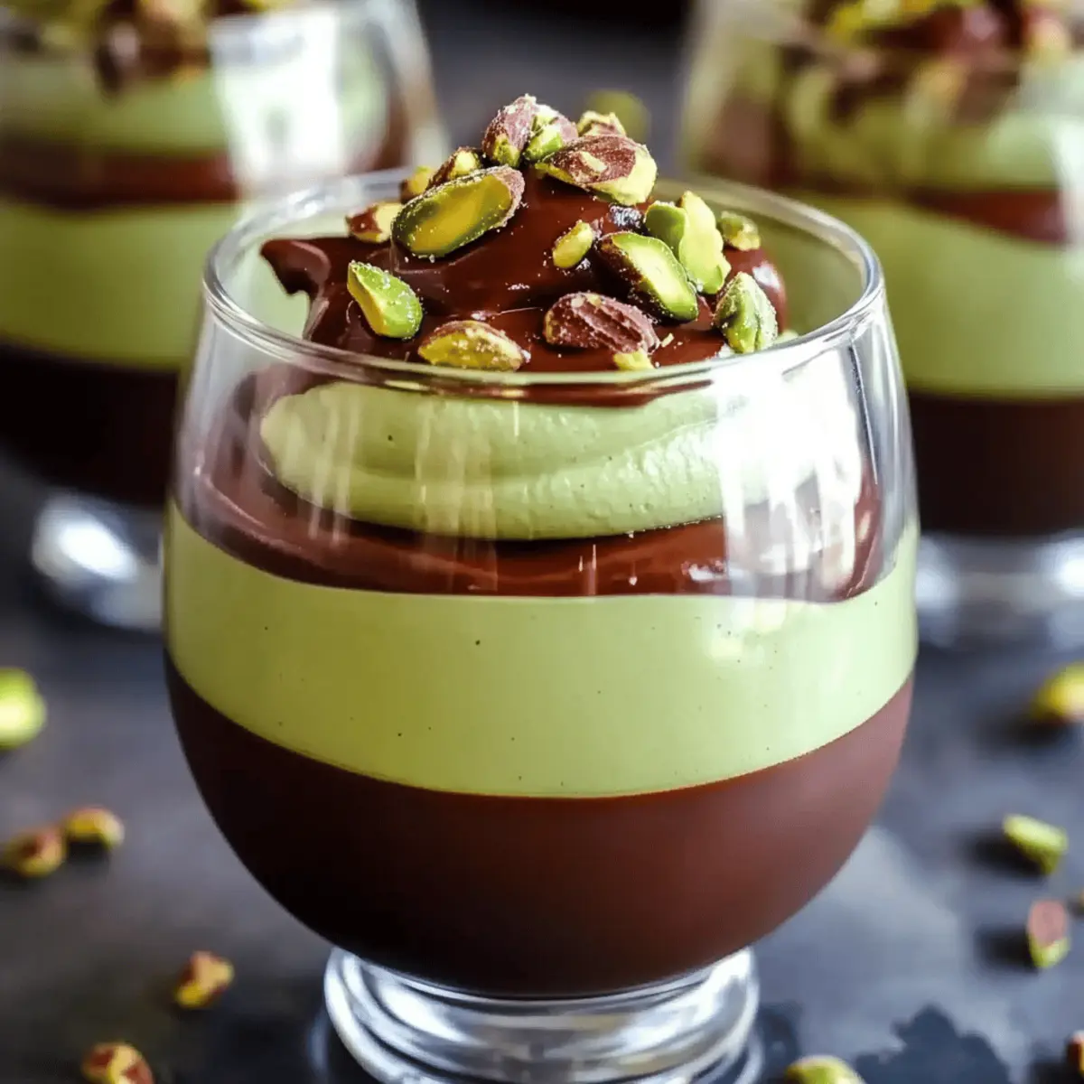 As I stood in my kitchen, the nutty aroma of pistachios filled the air, instantly evoking memories of festive gatherings and decadent dinners. This Pistachio Mousse with Chocolate Ganache is an elegant twist on classic desserts, sure to impress both your palate and your guests. What makes this treat truly special is its effortless preparation—perfect for busy cooks seeking a stunning, make-ahead dessert. Combining rich mascarpone and fluffy whipped cream, this mousse offers a light yet indulgent experience, while the silky dark chocolate ganache elevates it to a whole new level. Whether you’re hosting a dinner party or simply treating yourself after a long week, this dish promises to deliver a satisfying blend of flavors and textures. Isn’t it time you brought a little elegance to your dessert table? Why is Pistachio Mousse So Irresistible? Decadent layers: The pistachio mousse is not only delicious but visually stunning with its rich chocolate ganache topping. Effortlessly elegant: This recipe packs a sophisticated punch, yet it’s incredibly simple to whip up, making it perfect for any occasion. Make-ahead convenience: Prepare it in advance and let it chill—ideal for busy schedules or hosting last-minute gatherings! Flavor harmony: The creamy nuttiness of pistachios paired with the chocolate’s rich depth offers an irresistible taste experience. Versatile treat: Customize it with a zesty orange twist or a fruity layer of raspberry for your unique touch! For more delightful ideas, check out my Decadent Chocolate Peanut Butter Brownies and Pistachio Mushroom Cheesecake. Pistachio Mousse with Chocolate Ganache Ingredients • An easy list for an elegant dessert. For the Mousse Mascarpone Cheese – Creates a rich and creamy consistency; substitute with cream cheese for a tangy twist. Heavy Whipping Cream – Adds fluffiness and lightness when whipped; coconut cream works for dairy-free. Pistachios – Provides a delightful nutty flavor and crunch; any unsalted nut can work if needed. Powdered Sugar – Sweetens the mousse seamlessly; monk fruit or stevia serve as low-sugar alternatives. Vanilla Extract – Enhances the dessert’s flavor profile; consider almond extract for a unique twist. For the Ganache Dark Chocolate – A rich topping that complements the mousse perfectly; feel free to use chocolate chips or milk chocolate, adjusting the sweetness as needed. This Pistachio Mousse with Chocolate Ganache is designed to elevate any event, adding a splash of elegance to your dessert table! Step‑by‑Step Instructions for Pistachio Mousse with Chocolate Ganache Step 1: Prepare the Mousse In a mixing bowl, beat 1 cup of mascarpone cheese until it’s incredibly smooth and creamy. In a separate bowl, whip 1 cup of heavy whipping cream until soft peaks form—this should take about 3-4 minutes. Gently fold the whipped cream into the mascarpone, followed by 1 cup of finely chopped pistachios, 1/2 cup of powdered sugar, and 1 teaspoon of vanilla extract. Be careful not to deflate the mix! Step 2: Set in Glasses Once your mousse mixture is ready, take elegant serving glasses and spoon the delicious pistachio mousse into them, filling each glass halfway. Use a spatula to smooth the tops for a neat presentation. You can also tap the glasses gently on the counter to settle the mousse. This layered dessert looks stunning, even at this early stage! Step 3: Make the Ganache Next, it’s time to prepare the chocolate ganache. In a heatproof bowl, melt 6 ounces of dark chocolate over a double boiler or microwave in 30-second intervals, stirring frequently until completely smooth. Allow the melted chocolate to cool slightly for about 5 minutes until it thickens a bit. This rich chocolate layer will be the crowning glory for your Pistachio Mousse. Step 4: Layer the Ganache Once the ganache has cooled slightly, carefully pour it over the layered mousse in each glass, filling them to the brim. Use the back of a spoon or a small spatula to smooth the top if necessary. The contrasting layers of the mousse and ganache not only elevate the taste but also create a visually appealing dessert that will impress your guests. Step 5: Chill Cover the filled glasses with plastic wrap and refrigerate them for at least 4 hours or overnight to allow the mousse to set completely. This chilling time is essential for achieving that delightful, airy texture in your Pistachio Mousse with Chocolate Ganache. The flavors meld together beautifully as they chill, making it even more irresistible. Step 6: Serve When you’re ready to serve, remove the mousse from the fridge. Optionally, garnish each glass with additional chopped pistachios or sprinkles of chocolate shavings for added texture and elegance. Serve chilled, and watch as your guests indulge in this decadent treat, savoring each delightful bite! Make Ahead Options These Pistachio Mousse with Chocolate Ganache cups are perfect for meal prep, allowing you to spend less time in the kitchen and more time enjoying the moment. You can prepare the mousse mixture and layer it in glasses up to 24 hours in advance, keeping the airy texture intact. Just make sure to cover the glasses tightly with plastic wrap to prevent moisture or fridge odors from affecting the dessert. The ganache can also be made ahead—just refrigerate it in an airtight container for up to 3 days. When you’re ready to serve, simply reheat the ganache gently before pouring it over the mousse. This way, you’ll have a stunning dessert ready with minimal last-minute effort! How to Store and Freeze Pistachio Mousse with Chocolate Ganache Fridge: Store your Pistachio Mousse with Chocolate Ganache in airtight containers for up to 3 days to maintain its freshness and texture. Freezer: While freezing is not recommended due to potential texture changes, you can freeze any unused mousse for up to 1 month. Just remember that the creamy consistency may alter upon thawing. Serve Chilled: When ready to enjoy,
