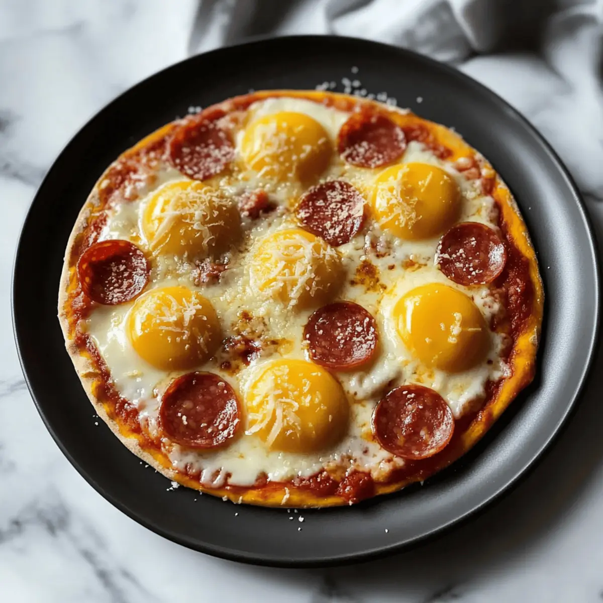 “Breakfast doesn’t have to be boring!” I overheard my friend exclaim as she whipped up her latest creation. A spark of inspiration hit me, knowing I had the perfect recipe to share: Cheesy Pizza Eggs. This delightful meal transports the beloved flavors of pizza into a wholesome breakfast, all within a speedy 15-minute prep. With only 3g of carbs and a hearty 28g of protein per serving, these low-carb gems are a fabulous choice for anyone looking to start the day on a healthy note without sacrificing taste. Plus, you can customize them to fit your cravings, layering in your favorite toppings, from vegetables to various cheeses. Curious about how to make this breakfast wonder? Let’s dive into the delicious details! Why Love These Pizza Eggs? Quick and Easy: You can whip up these tasty Pizza Eggs in just 15 minutes, making them perfect for busy mornings or last-minute brunch plans. Health-Conscious Delight: With only 3g of carbs and a whopping 28g of protein, they cater to your low-carb lifestyle without compromising on flavor. Customizable Toppings: Whether you’re in the mood for savory salami or vibrant veggies, these eggs can be tailored to fit your cravings. Satisfying Texture: Enjoy the gooey cheese melded with fluffy eggs; this dish is truly like having pizza for breakfast! If you’re a fan of unique breakfast ideas, don’t miss out on our Tzatziki Chicken Pizza or snack-worthy Martini Deviled Eggs for more delicious culinary inspiration! Pizza Eggs Ingredients • Get ready to create the magic of pizza for breakfast! For the Base Eggs – Choose large eggs for a fluffy and rich texture. Reduced-Fat Cheese – Opt for this for a cheesy flavor without guilt; full-fat cheese can be used for creaminess. For the Sauce Passata – This acts as your pizza sauce base; ideal for that authentic flavor, or substitute with tomato purée if needed. For the Toppings Salami – Adds a savory note; feel free to replace with sautéed veggies like bell peppers or mushrooms for a vegetarian twist. Mixed Herbs – Enhance the flavor profile by using oregano or Italian seasoning for an aromatic touch. Each bite of these Pizza Eggs will remind you why breakfast can be both delicious and nutritious! Step‑by‑Step Instructions for Pizza Eggs Step 1: Melt Cheese Base In a medium non-stick frying pan, sprinkle half of the grated reduced-fat cheese over medium heat. Allow it to melt for about 3-4 minutes until it becomes golden and bubbly, forming a delightful cheese base ready for your Pizza Eggs. Step 2: Whisk Eggs While the cheese is melting, crack 4 large eggs into a bowl and whisk them vigorously until smooth and well combined. This step is crucial for ensuring your eggs will become fluffy and light once cooked, setting the stage for a delicious breakfast. Step 3: Cook Eggs Pour the whisked eggs over your melted cheese in the pan, ensuring an even distribution. Cover the pan with a lid and let it cook for 4-5 minutes until the bottom is firm and golden brown, creating a delicious egg-cheese foundation for your Pizza Eggs. Step 4: Flip Once the bottom is set, carefully slide a spatula under the egg-cheese base to flip it. This step requires a gentle touch to maintain its integrity. Cook the other side for about 2 minutes, ensuring it gets a nice golden color while completing the cooking process. Step 5: Add Toppings After flipping, spread a generous layer of passata over the cooked side, mimicking your favorite pizza sauce. Top with salami slices (if using) and sprinkle the remaining cheese on top. Cover the pan once more and let it cook for an additional 2-3 minutes, until the cheese melts beautifully. Step 6: Serve When the cheese has fully melted, carefully slide your Pizza Eggs onto a serving plate. Sprinkle with mixed herbs for an aromatic finish and serve hot. Enjoy the fulfilling flavors of pizza transformed into a wholesome breakfast delight! How to Store and Freeze Pizza Eggs Fridge: Store any leftovers in an airtight container for up to 24 hours to keep them fresh and prevent moisture loss. Freezer: These Pizza Eggs can be frozen for up to 1 month. Before freezing, wrap them tightly in plastic wrap and then place in a freezer-safe container. Reheating: To reheat, thaw overnight in the fridge and warm gently in a non-stick frying pan over low heat. This will help retain their fluffy texture and cheesy goodness. Room Temperature: It’s best to avoid leaving Pizza Eggs at room temperature for more than 2 hours to ensure food safety. Make Ahead Options These Cheesy Pizza Eggs are fantastic for meal prep enthusiasts looking to save time! You can whisk the eggs and assemble your toppings up to 24 hours in advance, keeping them covered in the refrigerator. To ensure the best quality, store the passata separately to prevent the base from becoming soggy. When you’re ready to enjoy your breakfast, simply melt the cheese in the pan, add the prepped eggs, and follow the usual cooking instructions, adjusting the time slightly as the ingredients will be cold. This way, you’ll have a delicious, low-carb meal ready in no time on those busy mornings! What to Serve with Cheesy Pizza Eggs? A medley of delightful sides and drinks can elevate your Cheesy Pizza Eggs into a well-rounded breakfast experience, tantalizing every taste bud. Fresh Garden Salad: Crisp greens and vibrant veggies add a refreshing crunch that perfectly balances the richness of the eggs. Each bite will brighten your meal, making it feel lighter and satisfying. Avocado Toast: Creamy avocados on toasted bread create a fantastic contrast with the gooey cheese and fluffy eggs. This combination brings a hit of healthy fats to your breakfast, ensuring you feel full and energized. Roasted Cherry Tomatoes: Sweet and slightly caramelized, these add a burst of flavor alongside your pizza-inspired dish. Their juicy texture complements the hearty cheese and eggs, enhancing the overall experience. Sautéed Spinach: Lightly sautéed spinac