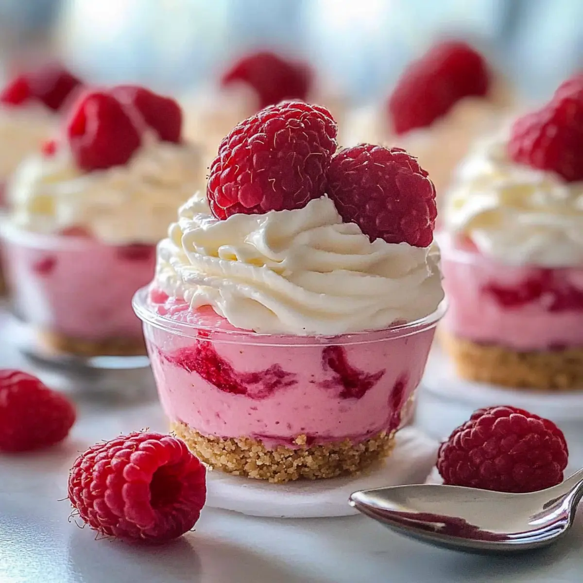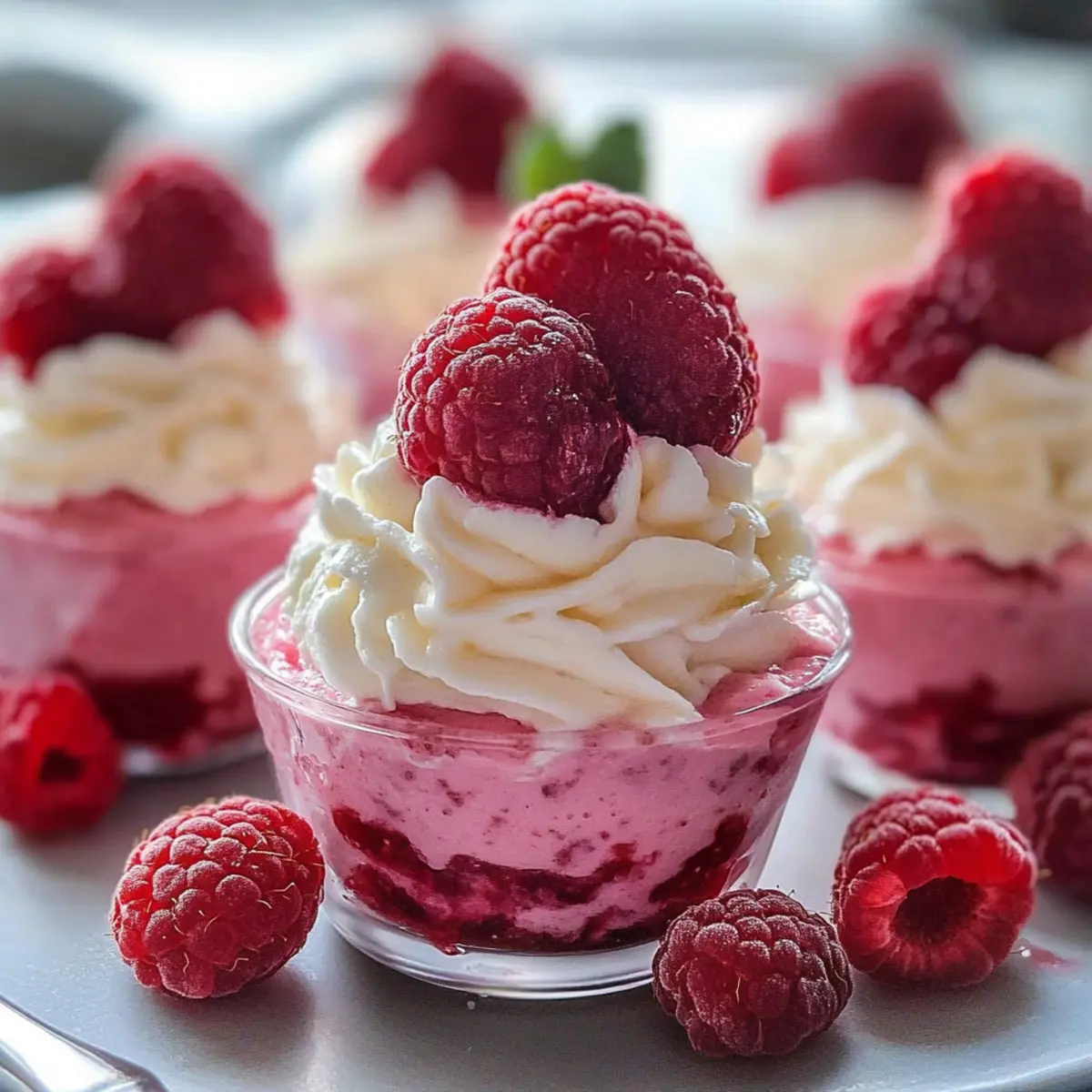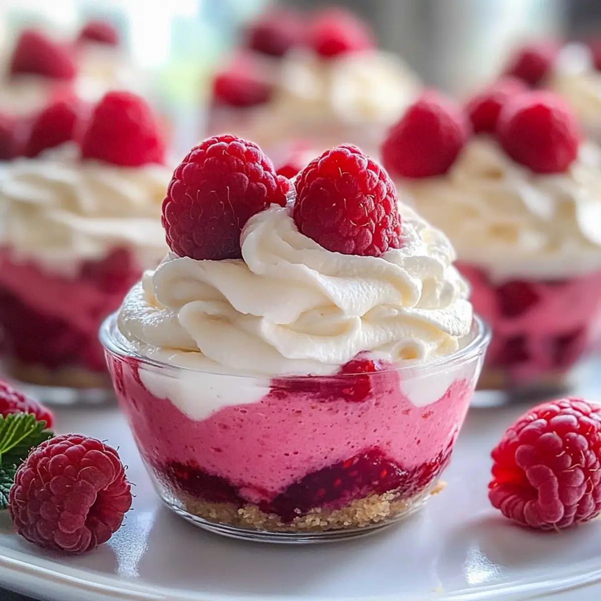 Delight in these No-Bake Raspberry Cheesecake Mousse Cups, combining creamy texture and vibrant raspberry flavor.