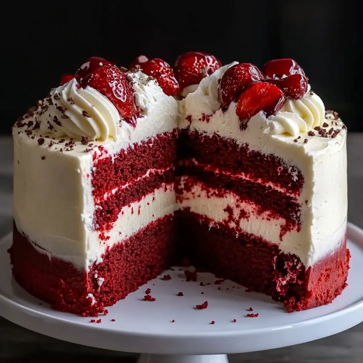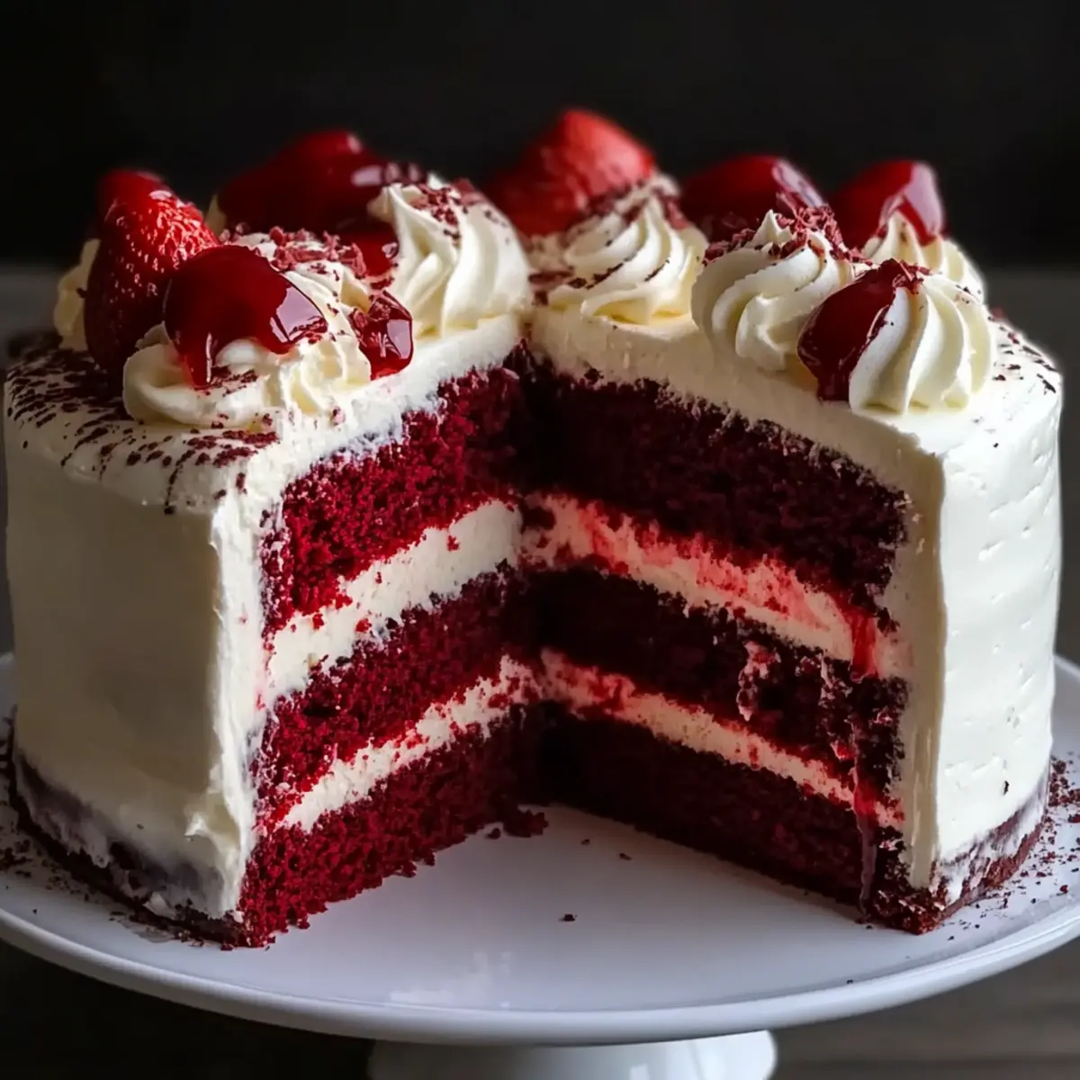 As I stood in my kitchen, the intoxicating scent of freshly baked cake filled the air, instantly transporting me to a world of celebration and delight. That’s when I decided to whip up a stunning Red Velvet Cheesecake Cake—an indulgent dessert that perfectly marries fluffy, moist red velvet layers with a rich, creamy cheesecake center. This cake isn’t just visually striking; it’s a showstopper that elevates any occasion, whether it’s a birthday bash, a holiday feast, or a casual weeknight treat. Plus, it’s surprisingly simple to put together, making it a great option for both novice and experienced bakers alike. Are you ready to create a memorable masterpiece that will leave your taste buds dancing? Let’s dive into this decadent recipe! Why is this cake a must-try? Indulgent Delight: Each bite of this Red Velvet Cheesecake Cake delivers a luxurious combination of flavors, making it a decadent treat for any celebration. Visual Appeal: Its stunning red and white layers are not only eye-catching but also a conversation starter at any gathering. Versatile Recipe: Perfect for birthdays or holidays, you can even transform the cake into cupcakes, offering a delightful twist to your dessert spread. Easy Preparation: With straightforward steps, this recipe is approachable for bakers of all skill levels, making it a stress-free option for those busy occasions. Crowd-Pleasing Flavor: The harmonious blend of rich cream cheese and moist red velvet is sure to delight family and friends, ensuring no leftovers remain. Ready for more delightful recipes? Try the Brownie Cheesecake Indulge for another layer of joy! Red Velvet Cheesecake Cake Ingredients For the Cake Layers • Red Velvet Cake Mix – Provides base structure and flavor; for richer taste, consider using a homemade red velvet cake recipe. • Eggs – Bind the ingredients together and add moisture; using room-temperature eggs helps achieve better incorporation. • Granulated Sugar – Sweetens both the cake and cheesecake layers; swap with brown sugar for a hint of caramel flavor. • Butter – Adds richness to the cake; be sure to use unsalted butter for better control of seasoning. • Cocoa Powder (natural) – Contributes to the chocolate flavor and color; avoid Dutch-processed as it won’t react properly in the recipe. • Vinegar – Reacts to create the signature red velvet color, ensuring a moist cake. • Buttermilk – Enhances tenderness in the cake layers and adds a delightful tang. For the Cheesecake Layer • Cream Cheese – Essential for that luscious cheesecake layer, offering a rich and tangy flavor; mascarpone works as a great substitute for an alternative taste. • Granulated Sugar (for cheesecake) – Adds sweetness to the cheesecake; ensure it’s well blended for a smooth texture. • Eggs (for cheesecake) – Creates creamy texture and binds the cheesecake; use room temperature for best results. For the Cream Cheese Frosting • Cream Cheese – Vital for making the frosting luxuriously creamy; make sure it’s softened for proper mixing. • Butter – Adds creaminess to the frosting and helps with stability; use unsalted for control over the sweetness. • Powdered Sugar – Sweetens the frosting and gives it a light texture; sift before mixing to remove lumps. • Vanilla Extract – Enhances the flavors in the frosting, adding a lovely aromatic quality. Now that you have everything prepared, get ready to enjoy the sweet journey of crafting your very own Red Velvet Cheesecake Cake! Step‑by‑Step Instructions for Red Velvet Cheesecake Cake Step 1: Prepare Cake Layers In a large mixing bowl, combine the red velvet cake mix, eggs, melted butter, sugar, vinegar, and buttermilk. Whisk until the batter is smooth and well blended, about 2-3 minutes. Preheat your oven to 350°F (175°C). Grease and flour three 9-inch round cake pans, then evenly divide the red velvet mixture among them. Step 2: Bake the Cake Layers Place the cake pans in the preheated oven and bake for 40-50 minutes, or until a toothpick inserted in the center comes out clean. Keep an eye on them—when they spring back lightly when touched, they’re done! Once baked, remove the pans and let the layers cool in the pans for about 10 minutes before transferring them to a wire rack. Step 3: Make the Cheesecake Layer While the cake layers cool, prepare the cheesecake layer. In a separate mixing bowl, beat the softened cream cheese and sugar together until creamy, about 3-4 minutes. Add the eggs one at a time, mixing well after each addition. Pour the cheesecake batter into a lined 9-inch round cake pan and smooth the top with a spatula. Step 4: Bake the Cheesecake Layer Bake the cheesecake layer in the oven at 325°F (160°C) for about 45-50 minutes, or until the edges are set and the center has a slight jiggle. Remove from the oven and allow it to cool in the pan at room temperature for 1 hour before refrigerating for at least 2 hours until firm. Step 5: Assemble the Cake Once all layers are completely cool, it’s time to assemble the Red Velvet Cheesecake Cake. Start with a red velvet layer, add a dollop of frosting on top, and carefully place the cheesecake layer on top. Repeat the layering with another red velvet layer, frosting, and the final layer. Step 6: Frost the Assembled Cake Using a spatula, spread a generous layer of cream cheese frosting over the entire cake, smoothing it out to cover the sides and top evenly. Feel free to create decorative swirls or peaks for a beautiful finish. Make sure the frosting is smooth and even for that professional touch. Step 7: Cool Before Serving Chill the assembled Red Velvet Cheesecake Cake in the refrigerator for at least 4 hours, or overnight if you can wait! This step ensures the layers set beautifully and makes slicing easier. When you’re ready to serve, let the cake sit at room temperature for about 30 minutes for the best flavor experience. How to Store and Freeze Red Velvet Cheesecak