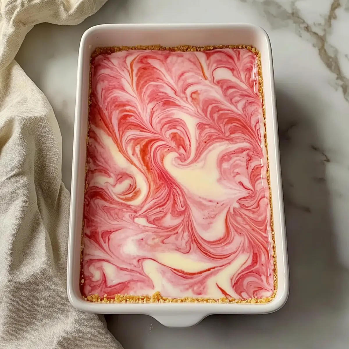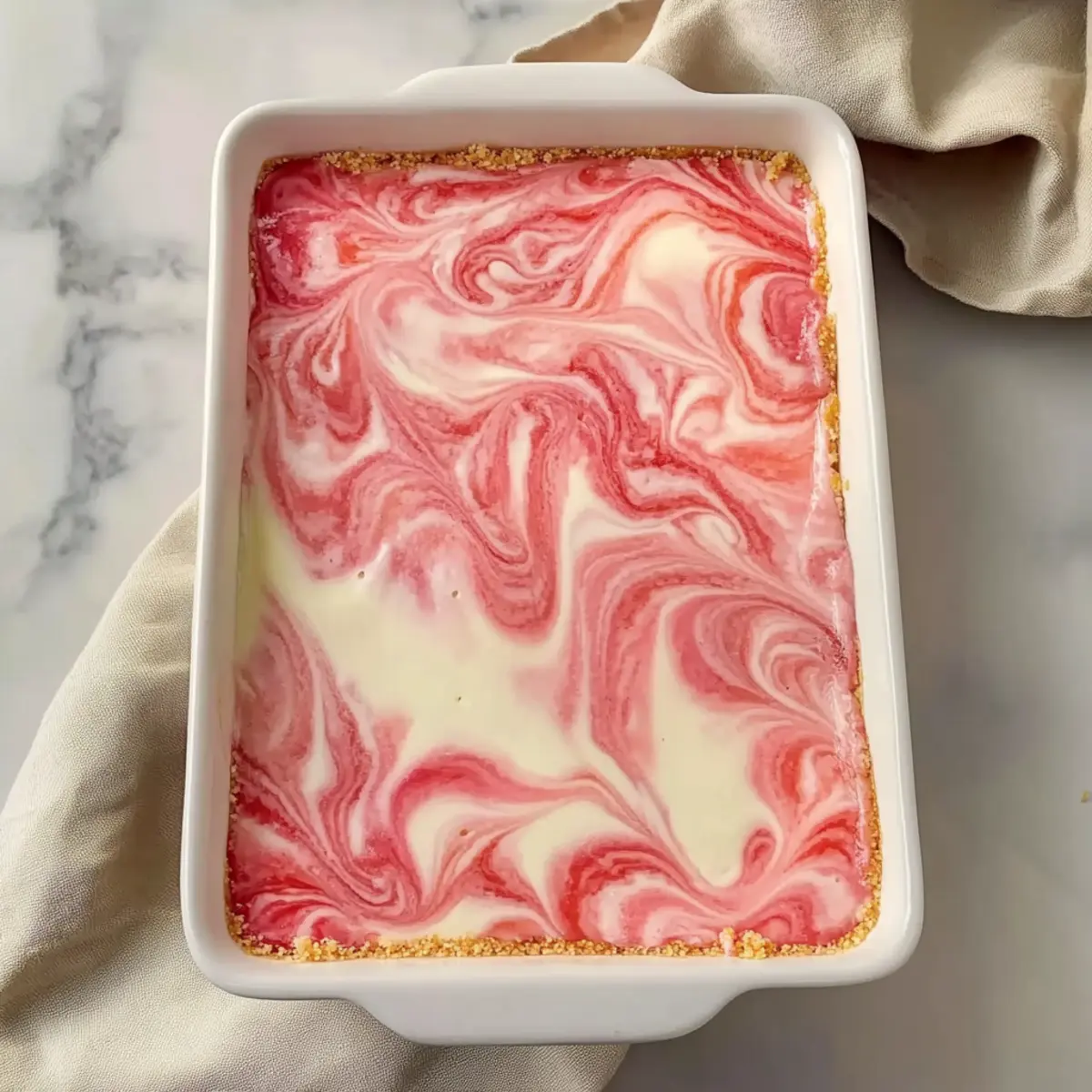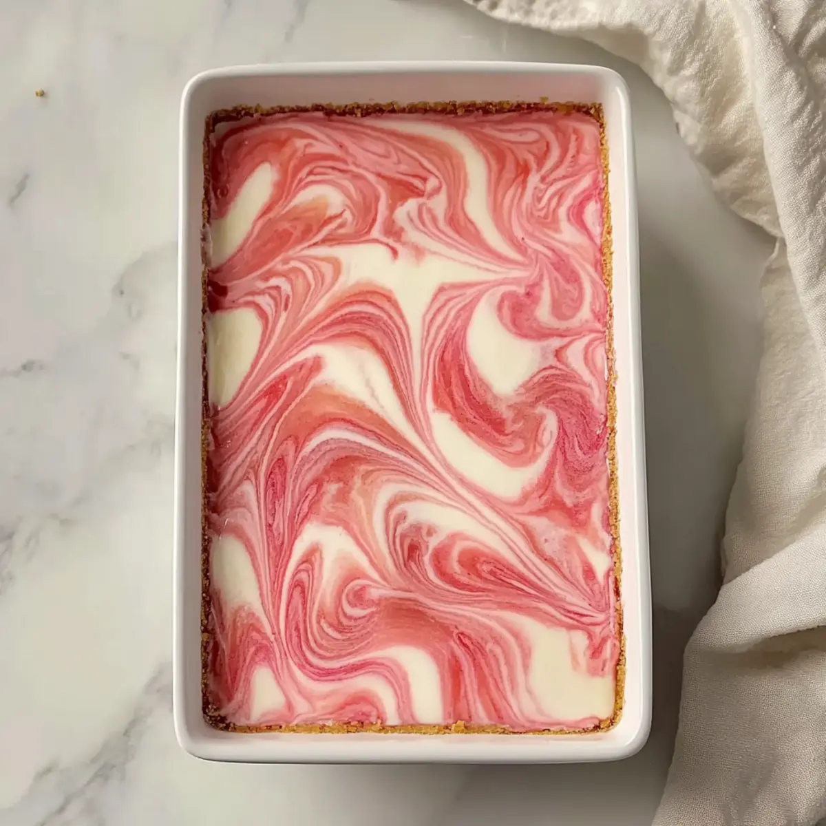 As I strolled through the farmers market, the vibrant green of fresh rhubarb caught my eye, igniting a rush of nostalgia for the sweet-tart desserts of my childhood. Today, I’m excited to share my No-Bake Rhubarb Cheesecake recipe—a creamy delight that’s as refreshing as it is simple to prepare. Perfect for warm spring and summer days, this no-bake dessert allows you to impress guests without ever turning on the oven. With its luscious texture and bright flavors, it makes a charming centerpiece for any occasion. Plus, it’s effortlessly gluten-free if you opt for gluten-free graham crackers! Are you ready to dive into this delightful spring treat? What makes this cheesecake so special? Creamy Texture: The no-bake process yields a luxuriously smooth cheesecake that’s light yet satisfying. Perfectly Tart: Fresh rhubarb adds a delightful tang, balancing the sweetness and awakening your taste buds. Quick and Easy: No need to heat up the oven—this recipe is a breeze, making it ideal for last-minute gatherings or outdoor picnics. Versatile Options: Want to mix it up? Swap rhubarb for your favorite fruit, like strawberries or blackberries, for a personalized twist! Make-Ahead Friendly: Prepare it a day in advance to free up your time for entertaining—it’s just as delicious, if not more, after chilling overnight. Combine your love for fresh ingredients with effortless preparation, making this Rhubarb Cheesecake a perfect dessert alongside a refreshing Cheesecake Fruit Salad or a rich Turtle Cheesecake Dessert. Rhubarb Cheesecake Ingredients • Here’s everything you’ll need to create this creamy, no-bake delight! For the Rhubarb Jam Fresh Rhubarb – Provides the tart flavor; fresh is best, but frozen can work if properly thawed. Granulated Sugar – Adds sweetness; feel free to adjust the amount to suit your taste. Vanilla Extract – Enhances the overall flavor profile, giving it a lovely depth. Lemon Juice – Brightens and balances the sweetness of the rhubarb. Pinch of Salt – Brings all the flavors together, adding essential depth. For the Crust Graham Crackers – Forms the base for the crust; use gluten-free options for a gluten-free rhubarb cheesecake. Unsalted Butter – Binds the crust ingredients together for a solid foundation. For the Cheesecake Filling Heavy Cream – Adds richness; it should be whipped to a light texture for fluffiness. Gelatin Powder – Provides structure without baking, making this a no-bake rhubarb cheesecake. Remember to bloom it properly! Full-fat Cream Cheese – Creates a creamy base; ensure it’s at room temperature for easy mixing. With these ingredients gathered, you’re just steps away from creating a mouthwatering, creamy Rhubarb Cheesecake that is sure to impress! Step‑by‑Step Instructions for Rhubarb Cheesecake Step 1: Prepare Rhubarb Jam In a medium saucepan, combine chopped fresh rhubarb, sugar, vanilla extract, lemon juice, and a pinch of salt. Cook over medium heat for 15–20 minutes, stirring occasionally until the mixture thickens and starts to bubble. Once thickened, carefully puree the mixture using an immersion blender or transfer to a blender. Chill the rhubarb jam in the refrigerator while you prepare the crust. Step 2: Make Crust In a large mixing bowl, combine crushed graham crackers, granulated sugar, ground cinnamon, and salt. Pour in melted unsalted butter and mix until the crumbs are evenly coated. Press this mixture into the bottom of a lined 9-inch baking dish, ensuring a compact layer. Freeze the crust for at least 30 minutes to firm it up, making it easier to cut once assembled. Step 3: Bloom Gelatin In a small saucepan, heat ½ cup of heavy cream over low heat until warm but not boiling. Stir in the gelatin powder, ensuring it dissolves completely. Remove the mixture from the heat and allow it to cool to room temperature to prevent clumping when added to the filling later. Step 4: Whip Cream Using a medium mixing bowl and an electric mixer, whip the remaining heavy cream on medium speed until soft peaks form. This process usually takes about 3-5 minutes. Once whipped, be sure to refrigerate the whipped cream until you’re ready to fold it into the cheesecake filling, ensuring it stays airy. Step 5: Make Filling In a large bowl, blend the room-temperature cream cheese, sugar, vanilla extract, and a pinch of salt until completely smooth, using an electric mixer. Gently fold in the cooled gelatin mixture along with the prepared rhubarb puree, ensuring an even blend. Finally, carefully fold in the whipped cream without deflating it to maintain the light, creamy texture of your rhubarb cheesecake. Step 6: Assemble Pour the creamy filling over the prepared crust in the baking dish, smoothing it out into an even layer. Take the reserved rhubarb puree and drizzle or swirl it on top of the filling for a beautiful finish. Cover the cheesecake with plastic wrap and refrigerate for at least 3 hours or until fully set, allowing the flavors to meld. Step 7: Serve After chilling, remove the cheesecake from the refrigerator and let it sit at room temperature for 10–15 minutes before slicing. For clean cuts, use a warm knife, dipping it in hot water and wiping it dry between slices. This decadent Rhubarb Cheesecake is ready to be enjoyed—a perfect end to any meal! How to Store and Freeze Rhubarb Cheesecake Fridge: Store the cheesecake in an airtight container in the refrigerator for up to 4 days. This will keep it fresh and preserve its creamy texture. Freezer: If you want to keep it longer, freeze individual slices wrapped tightly in plastic wrap, then place in a freezer-safe bag. It will stay good for up to 2 months. Thawing: To thaw, place the frozen slice in the refrigerator overnight. This gradual thawing helps maintain the cheesecake’s delicious flavor and smooth texture. Reheating: Since this is a no-bake cheesecake, it’s best enjoyed chilled straight from the fridge, so no reheating is necessary! Wha